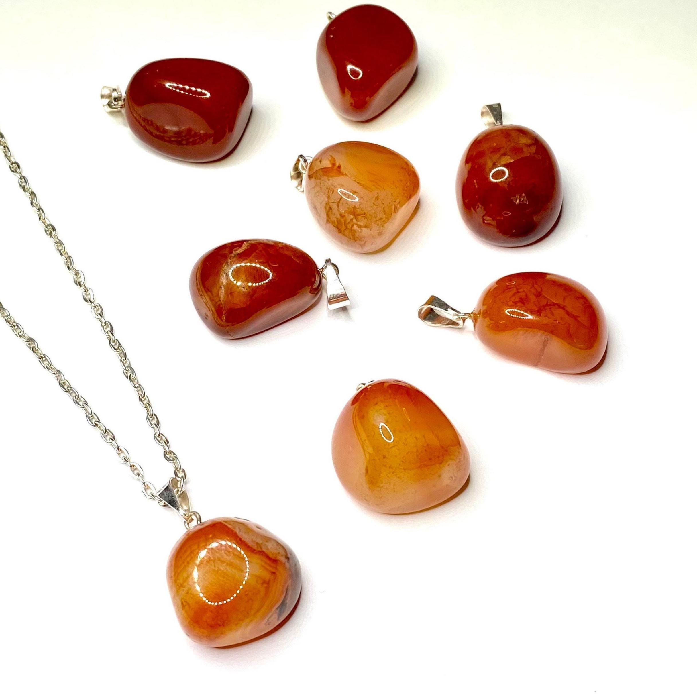 Carnelian Tumbled Pendant Necklace, Carnelian Crystal Pendant with Chain