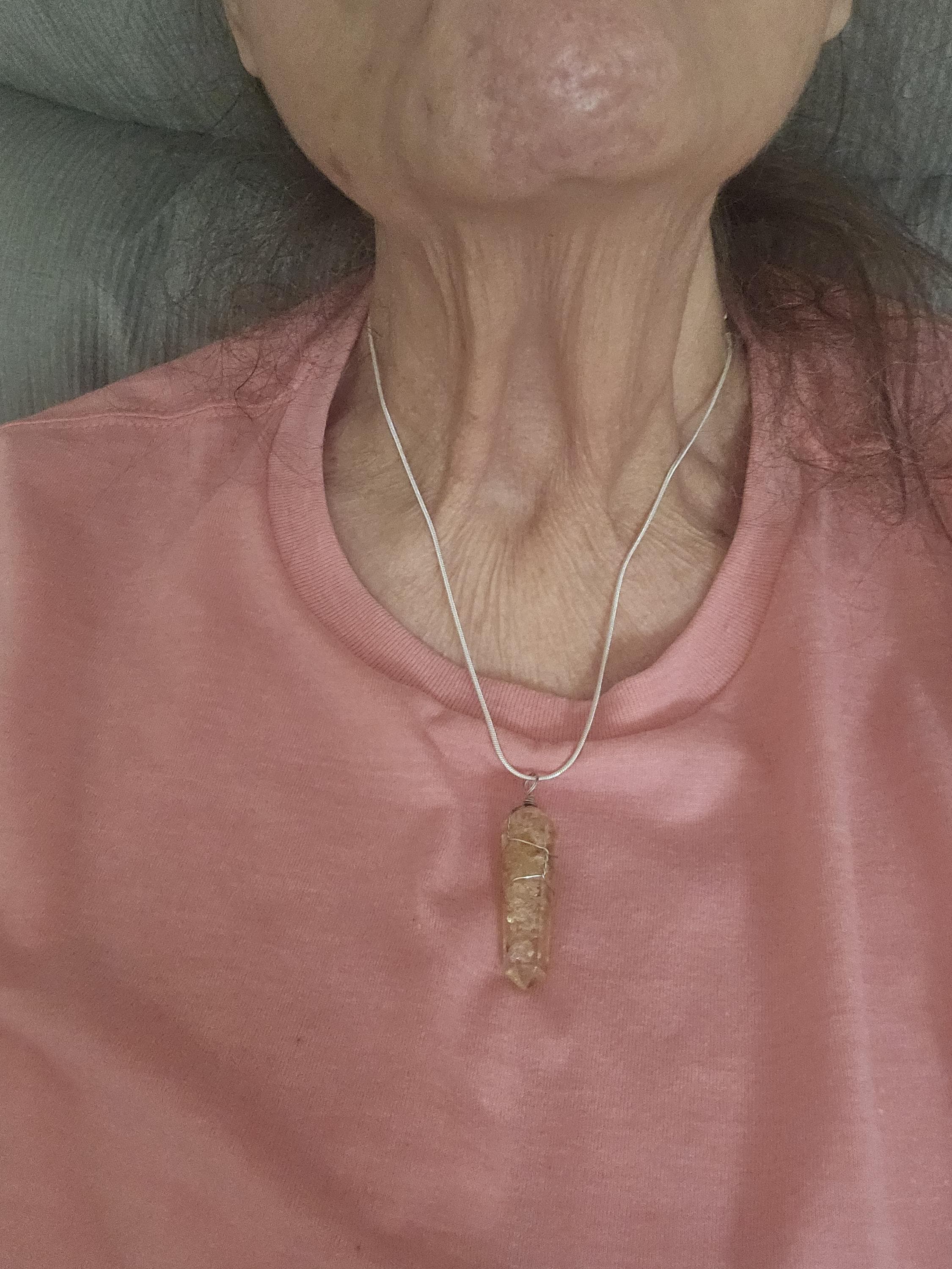 Beautiful necklace, exceeded my expectations. Clear, beautiful citrine wrapped in a beautiful pendant, hung on a beautiful chain!!