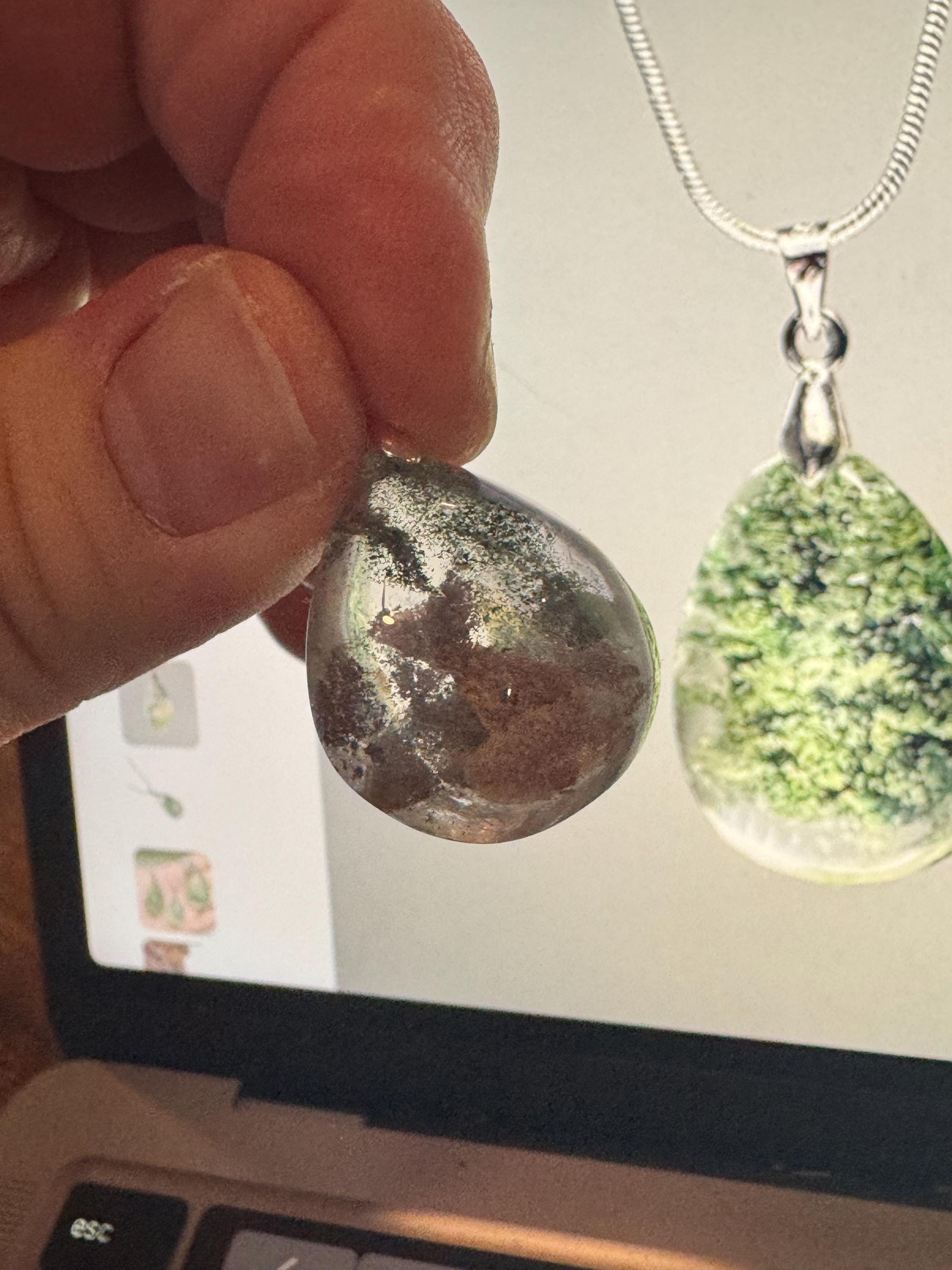 Seller is amazing. They took photos for me and let me choose which one I wanted. The pendant is of great quality and looks like a mini garden inside of quartz.