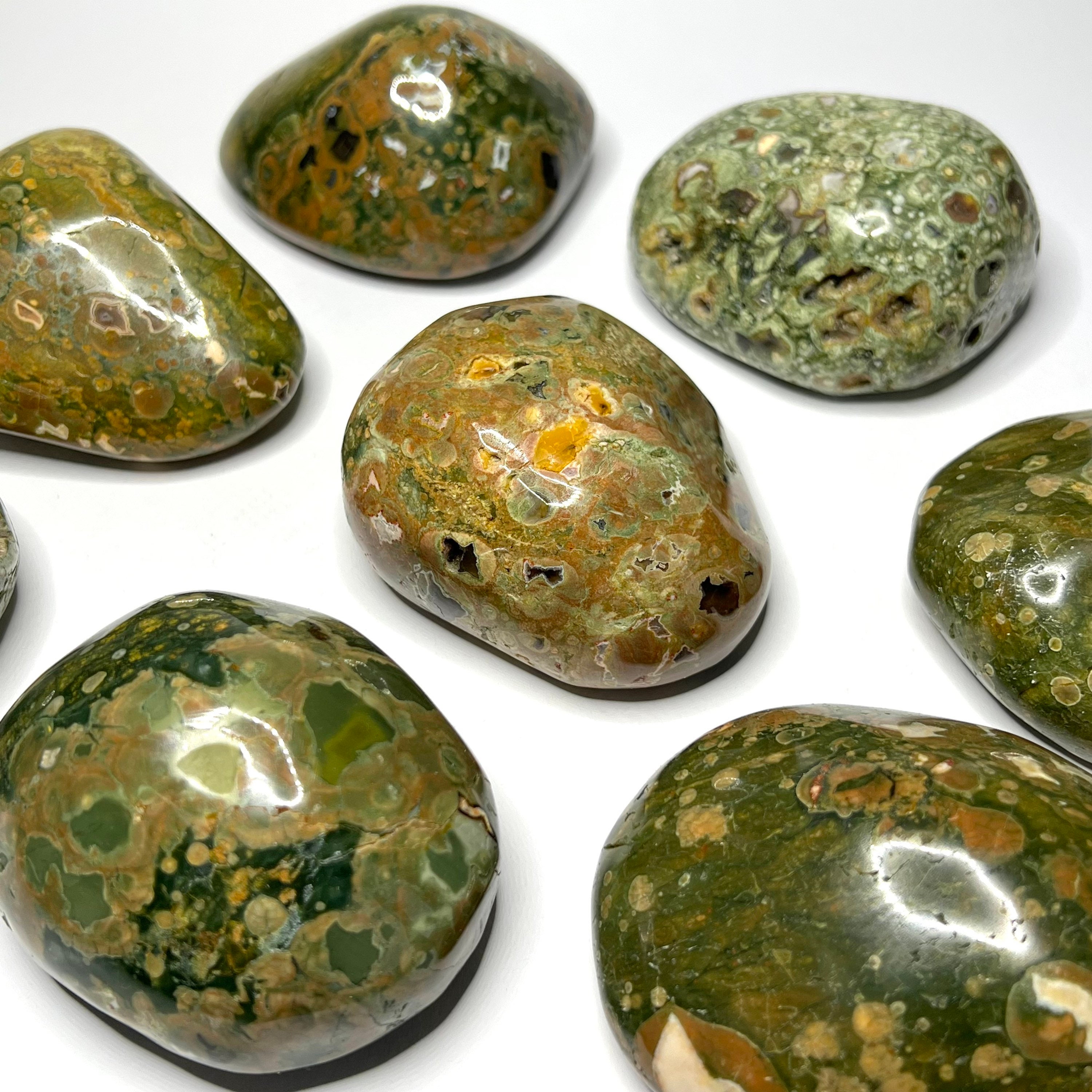 Stunning and awesome chunky, heavy Rhyolite. It's said to strengthen relationships and work with anger issues aiding in dealing with painful situations rationally and calmly. I’m so happy with this seller. They have some items I have not seen anywhere else yet. Recommend - smooth transaction.