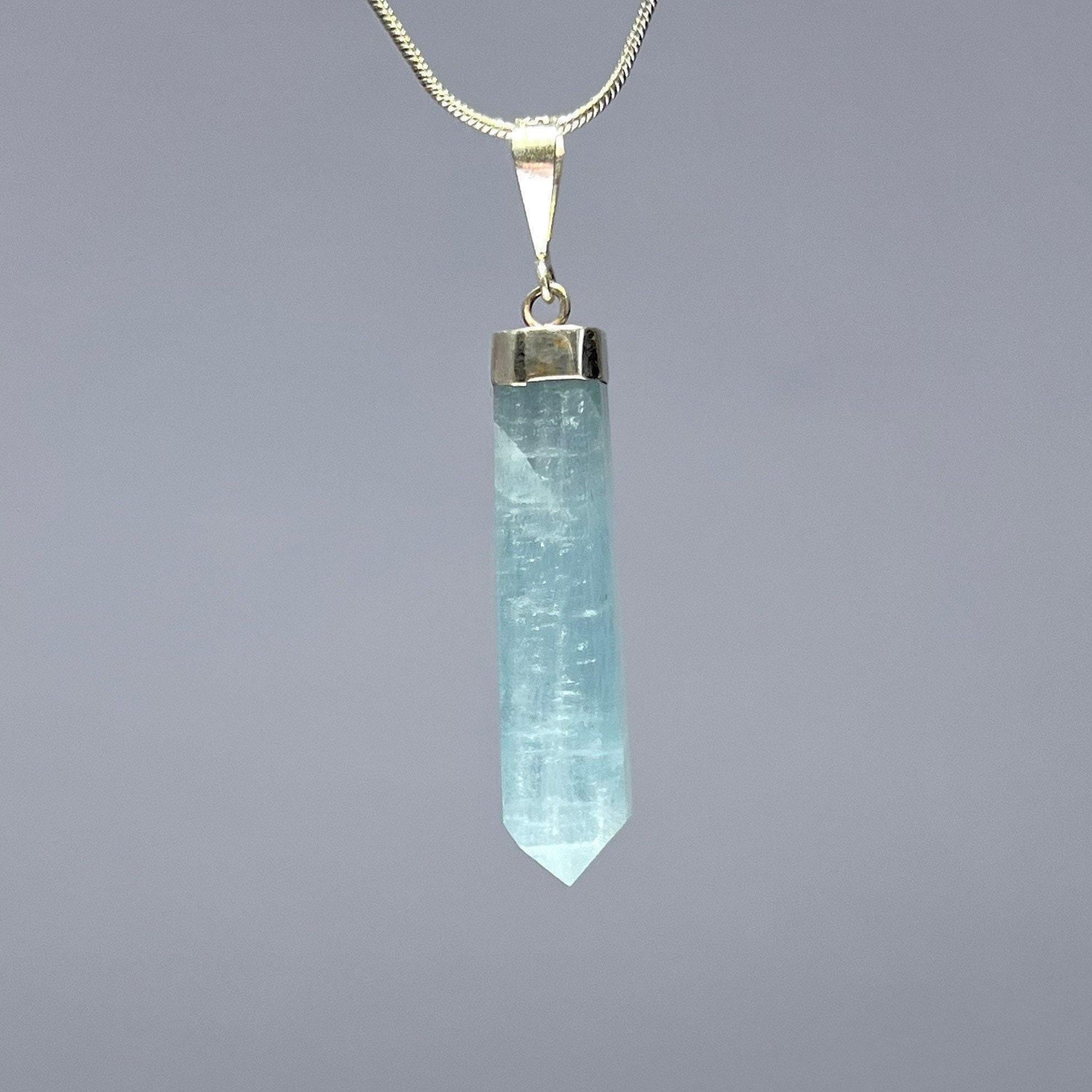 Aquamarine Crystal Necklace, .925 Sterling Silver Pendant with Chain