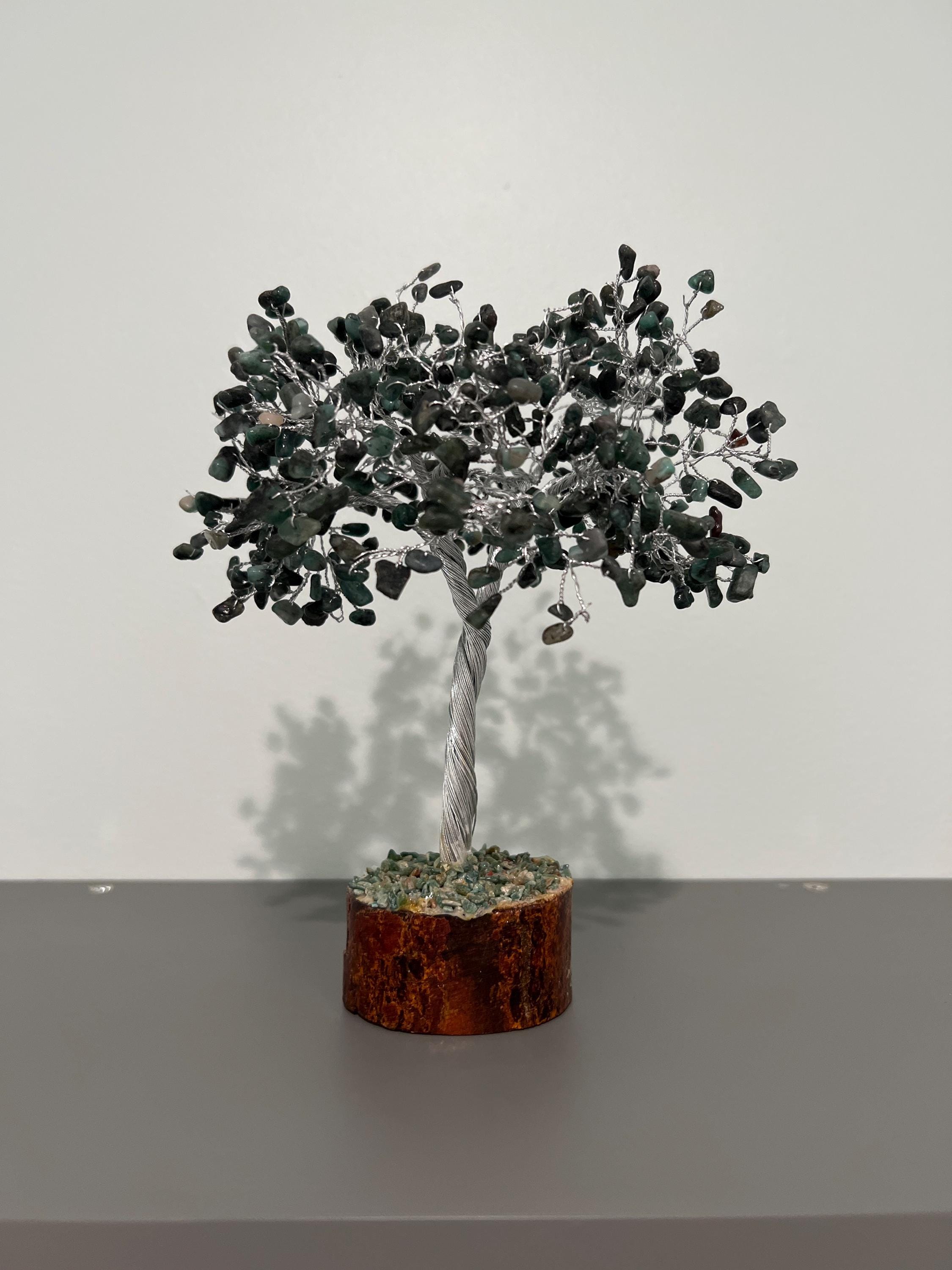 Emerald Crystal Tree, Emerald Gemstone Tree with 100 and 500 Chips and Wood Base