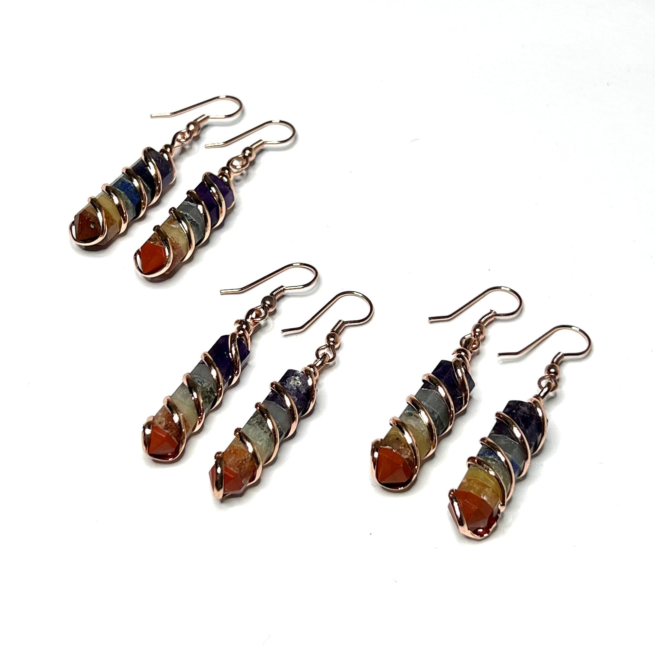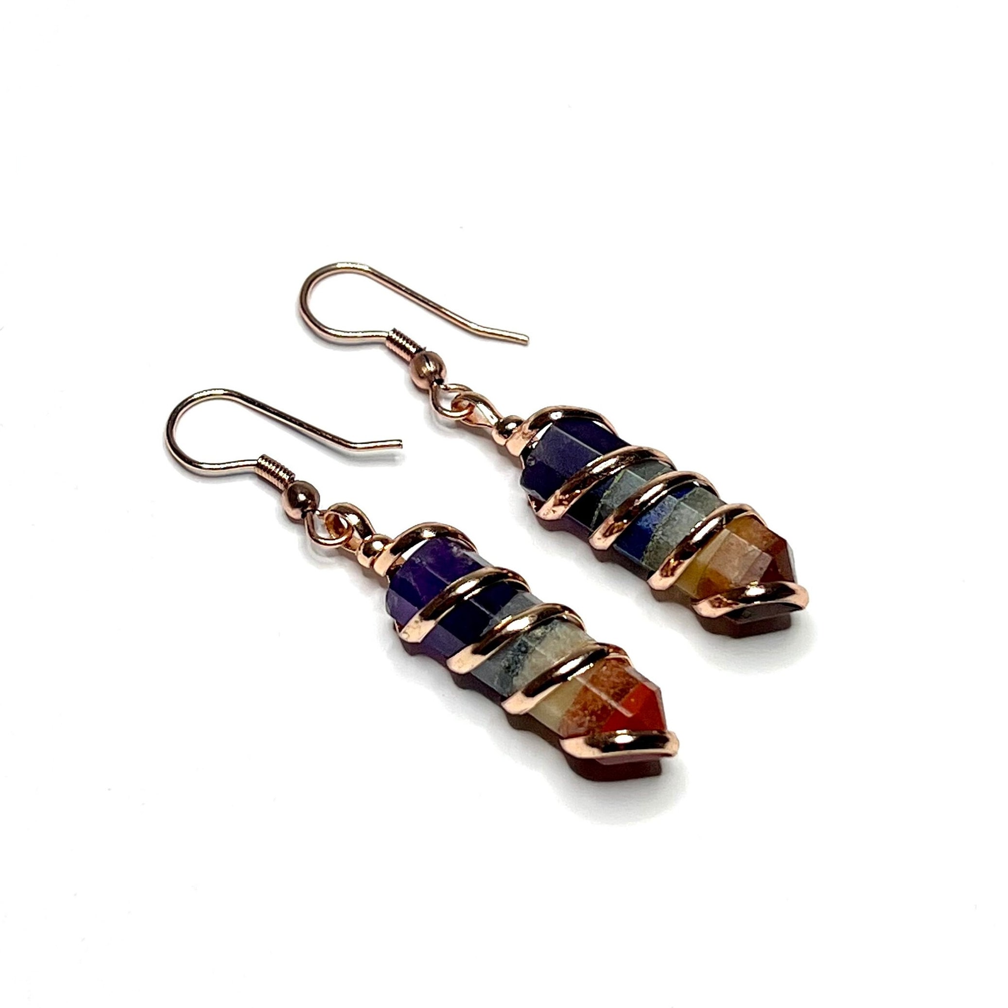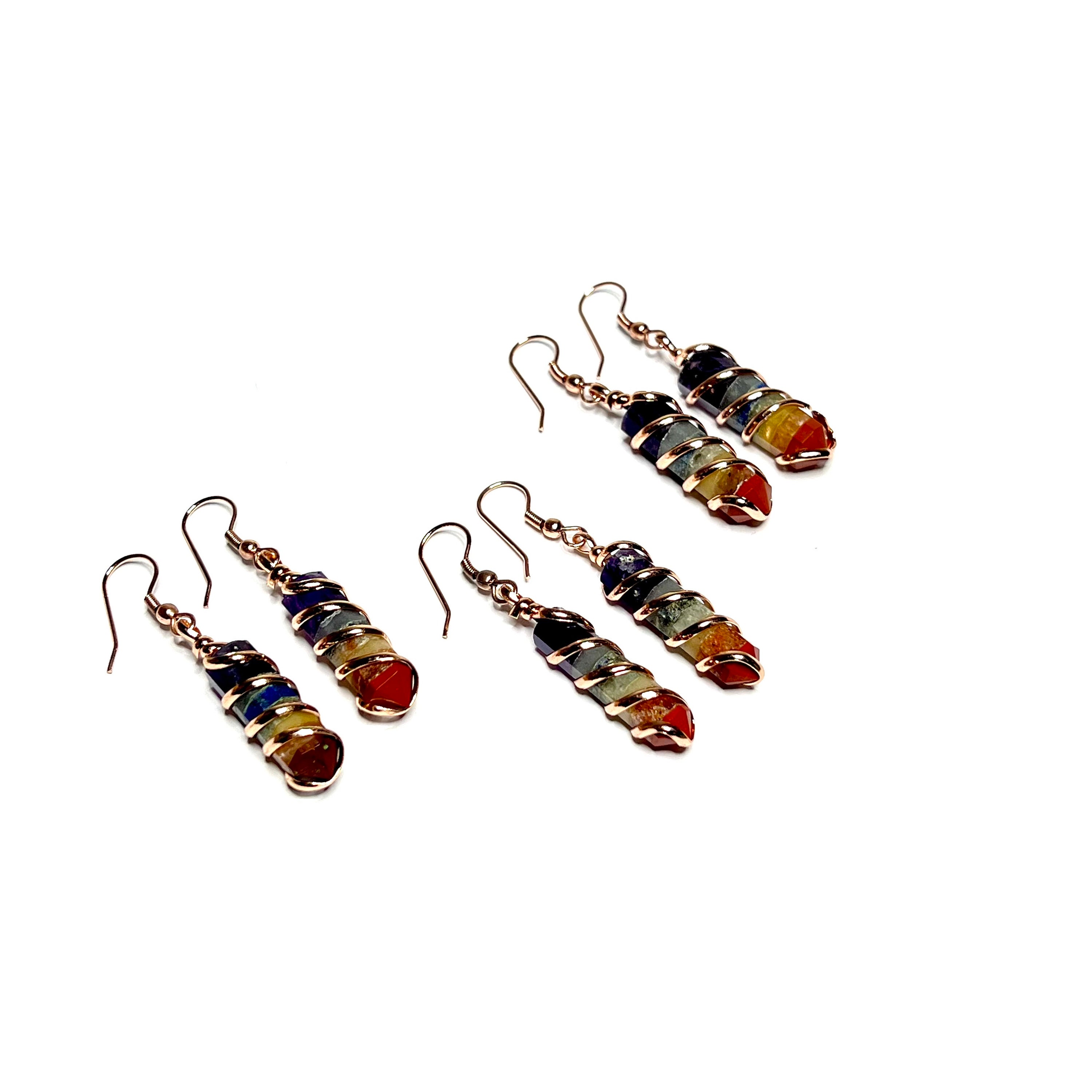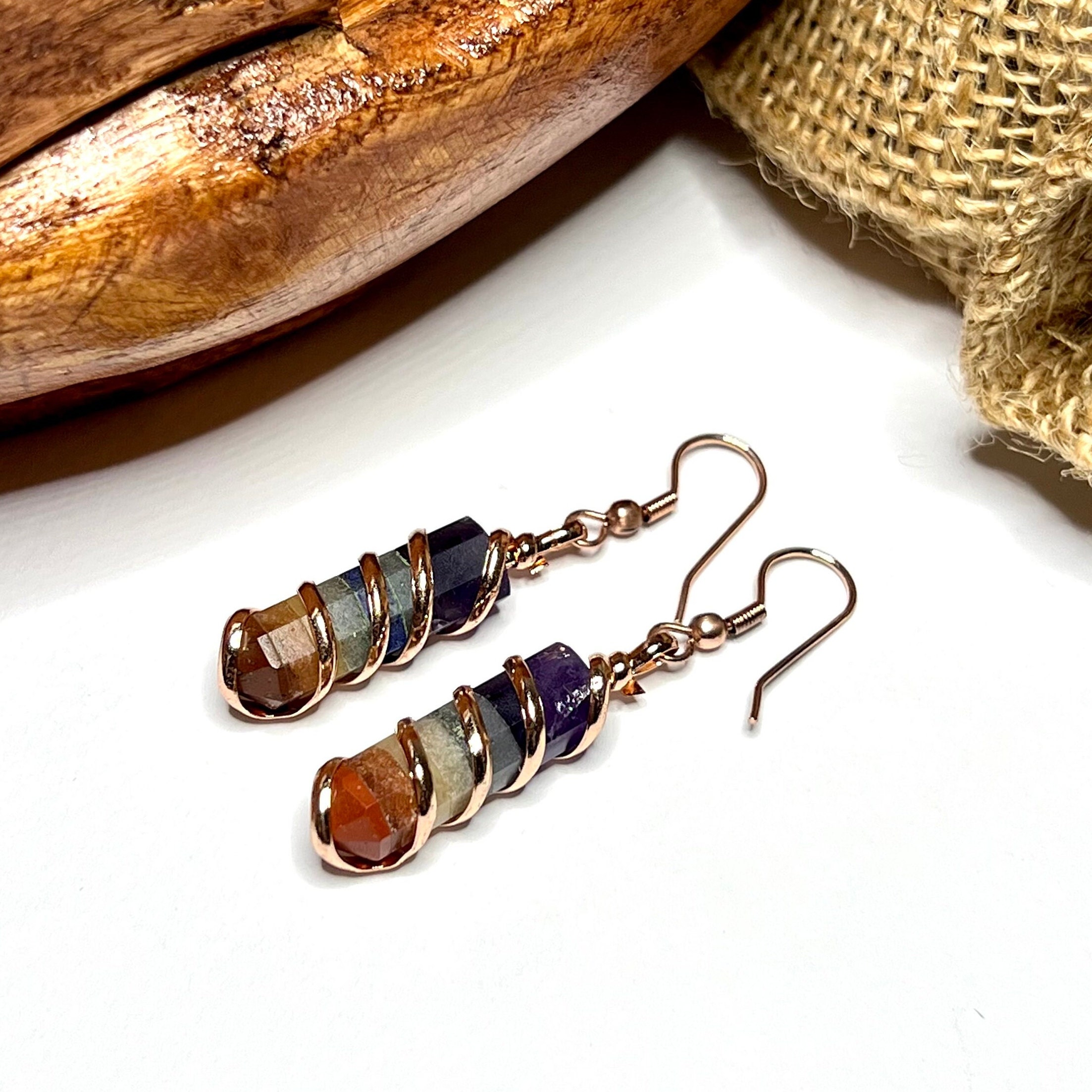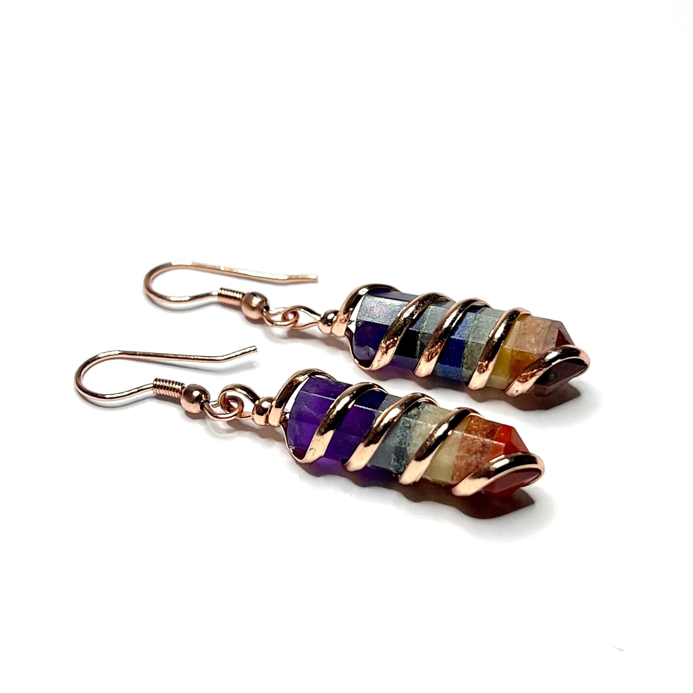 Rainbow Chakra Crystal Earrings, 7 Chakra Gemstone Wire Wrapped Dangle Earrings