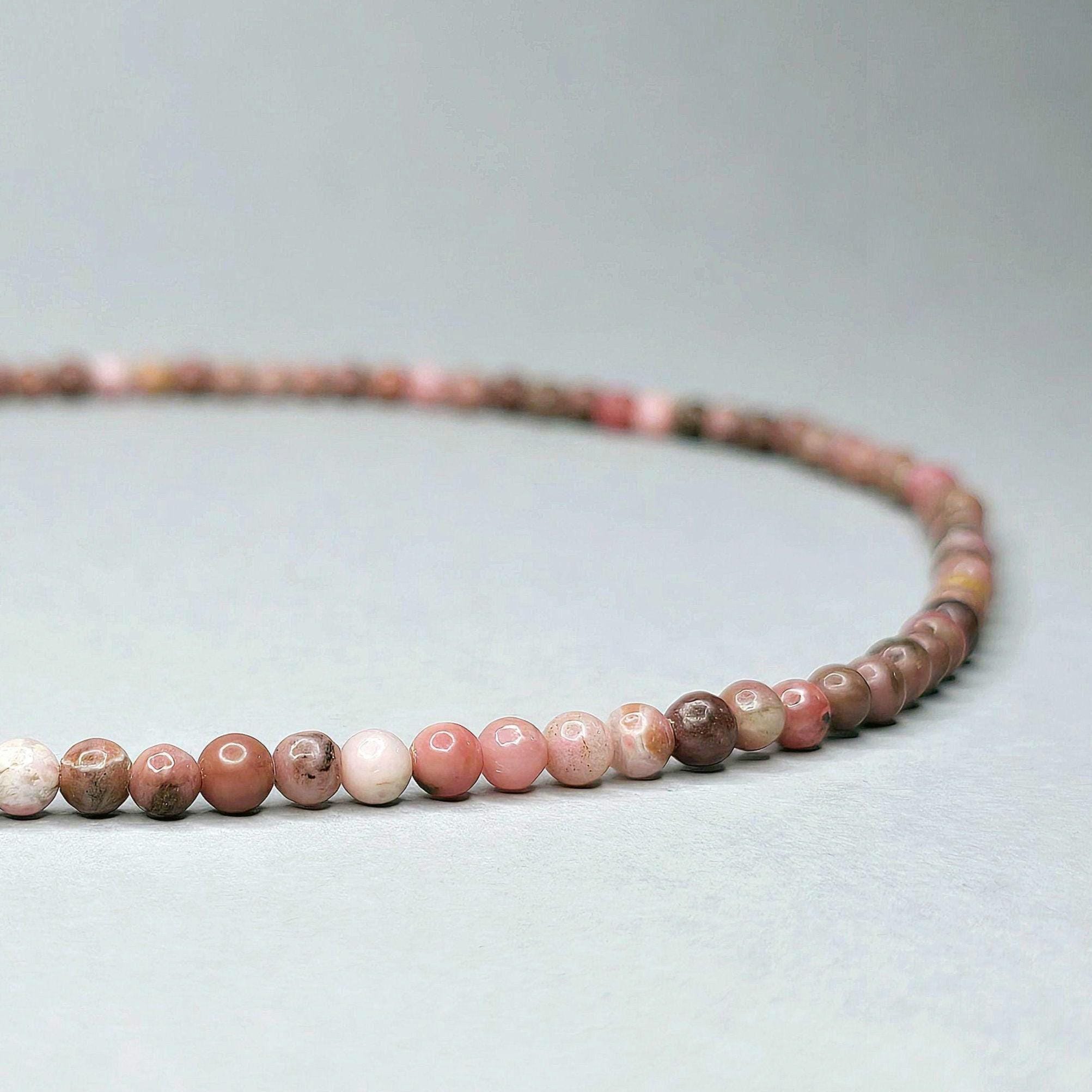 Rhodonite Crystal Beaded Choker Necklace with 4mm Beads