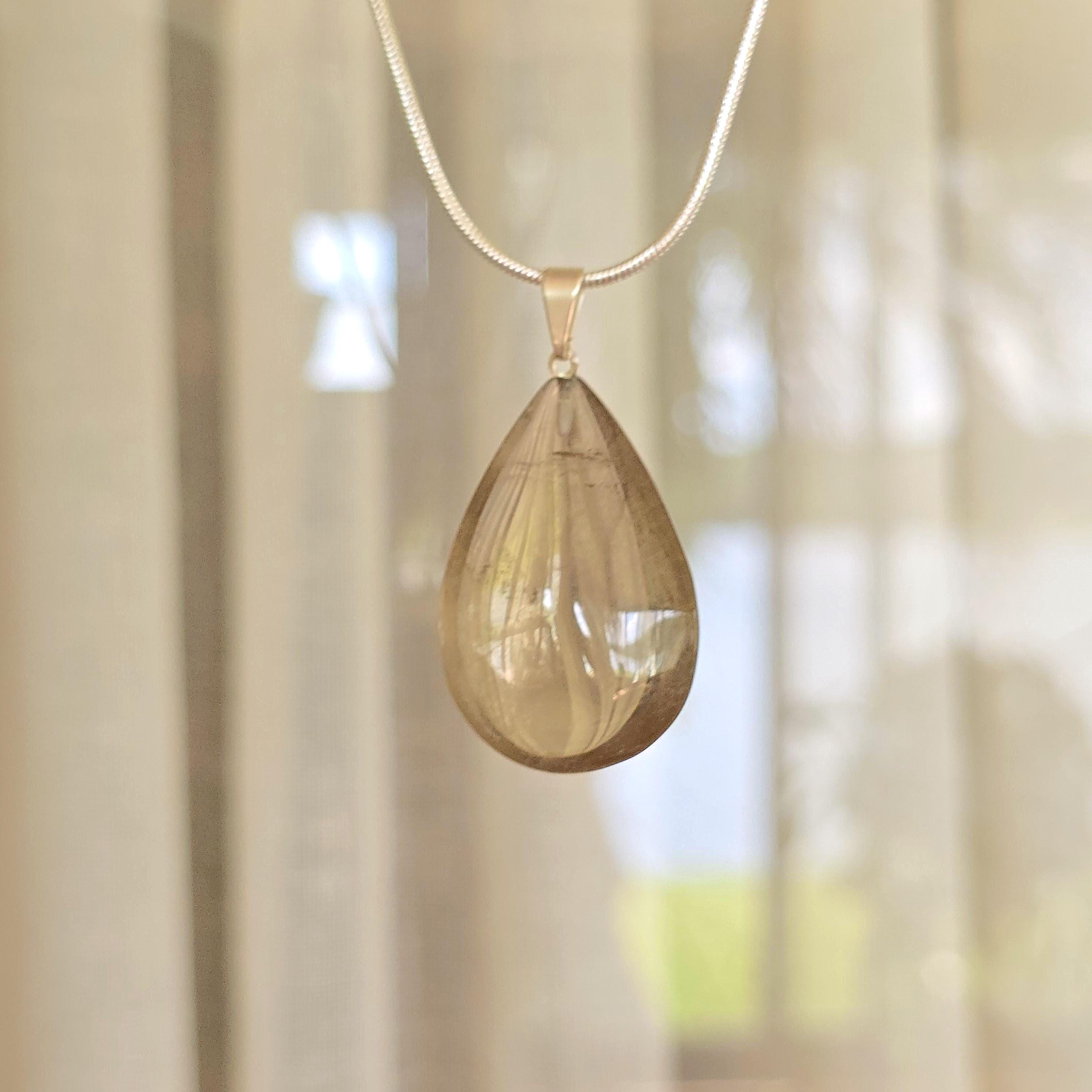 Citrine Crystal Pendant Necklace, Tear Drop Gemstone Pendant with Chain