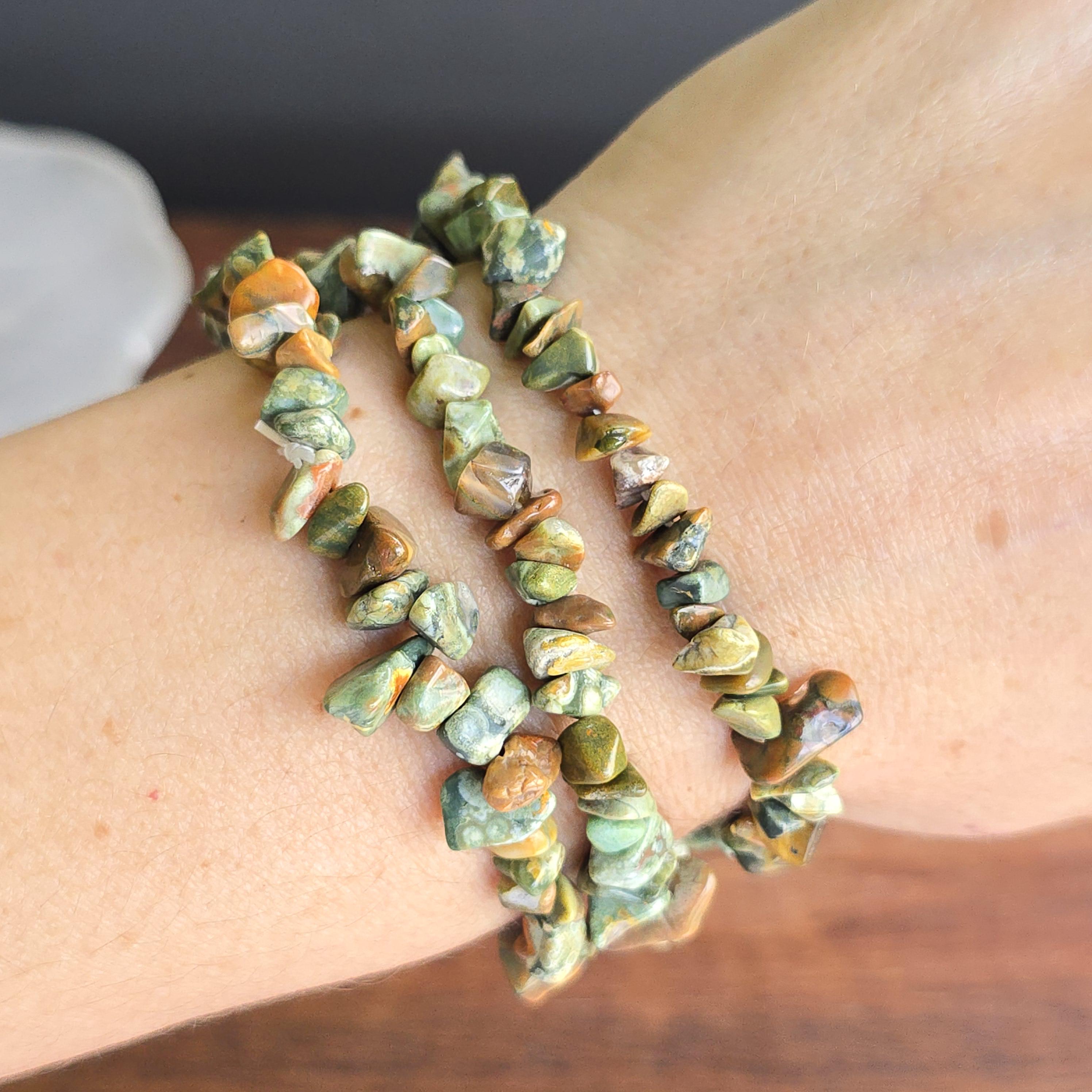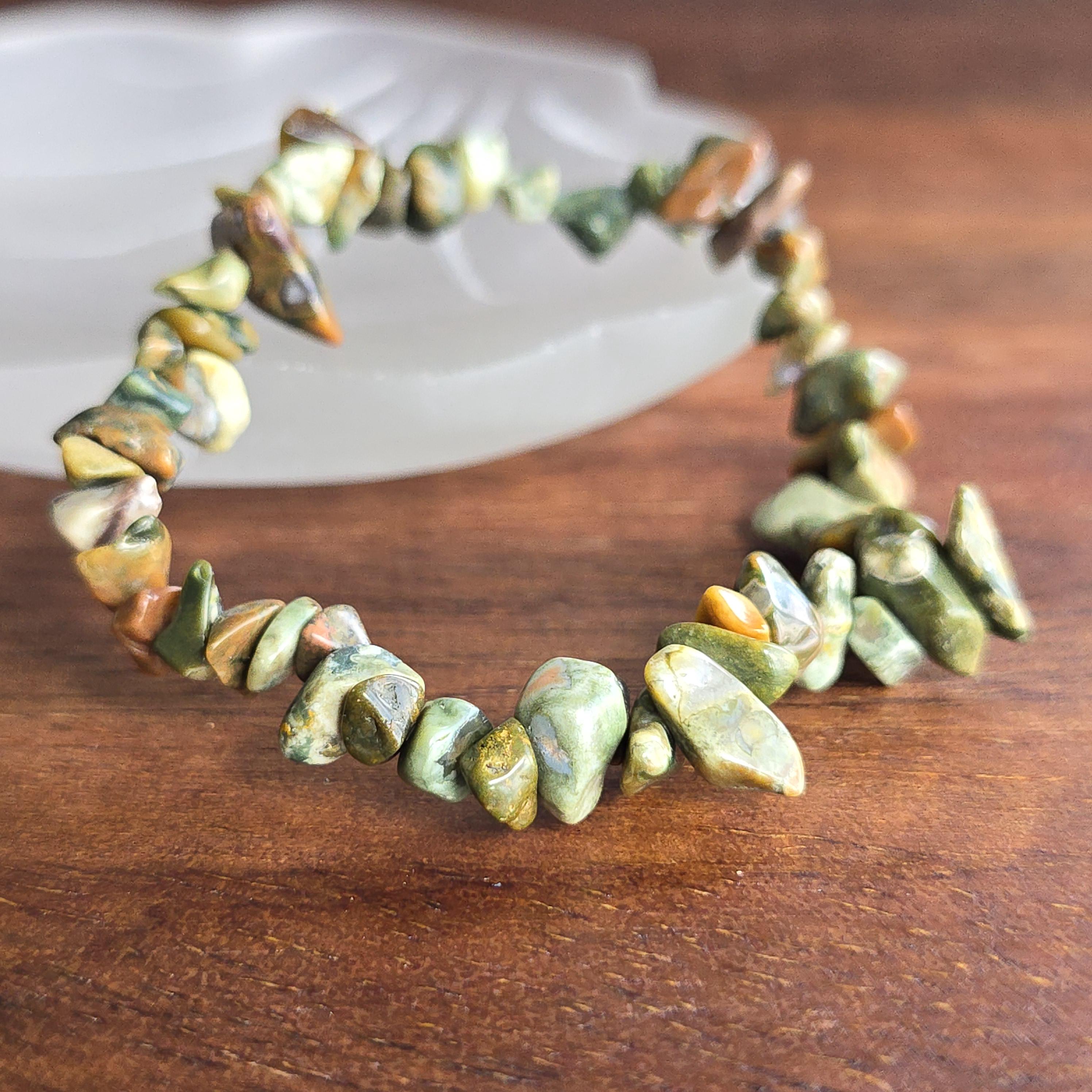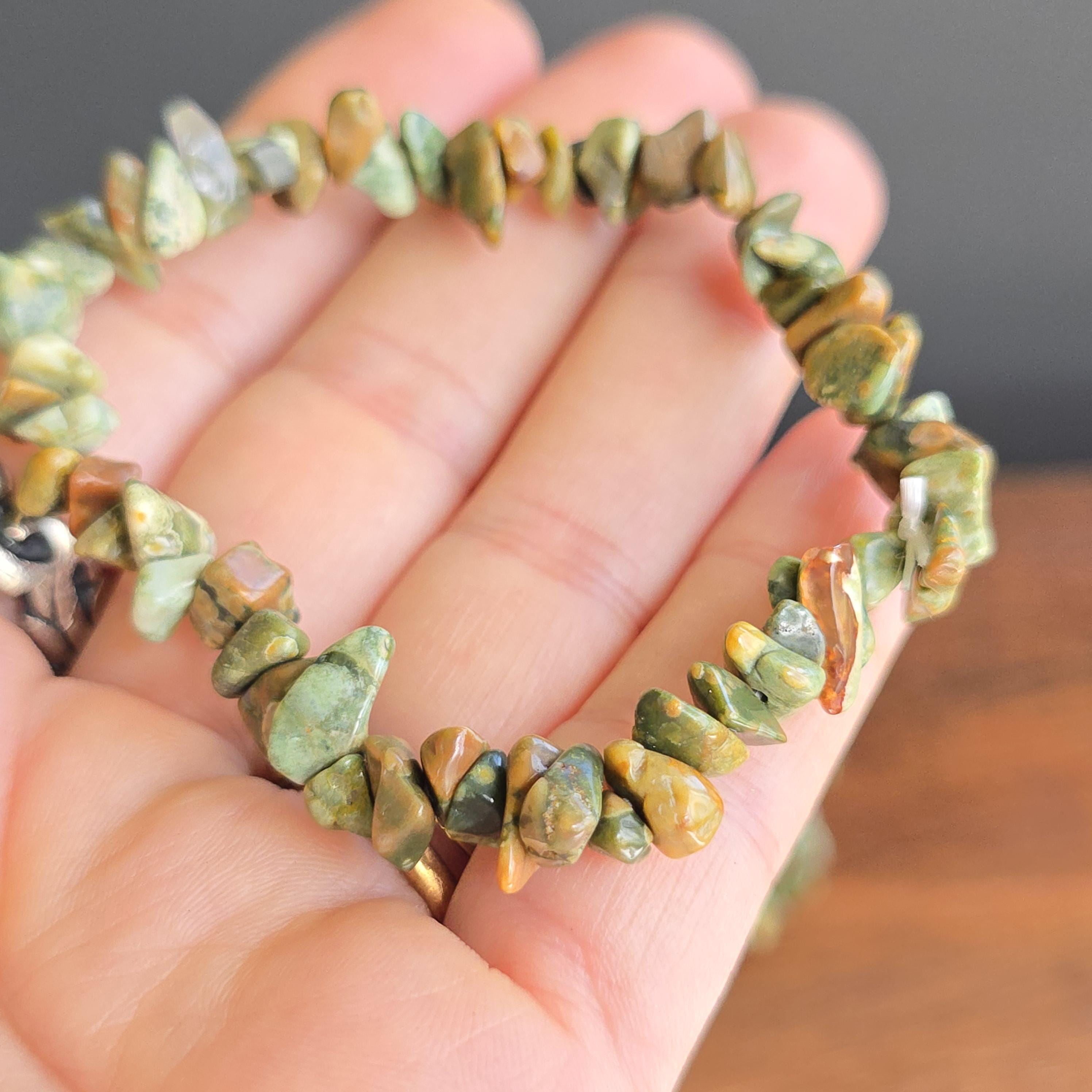Rhyolite Crystal Chips Bracelet: Handmade Gemstone Beaded Bracelet