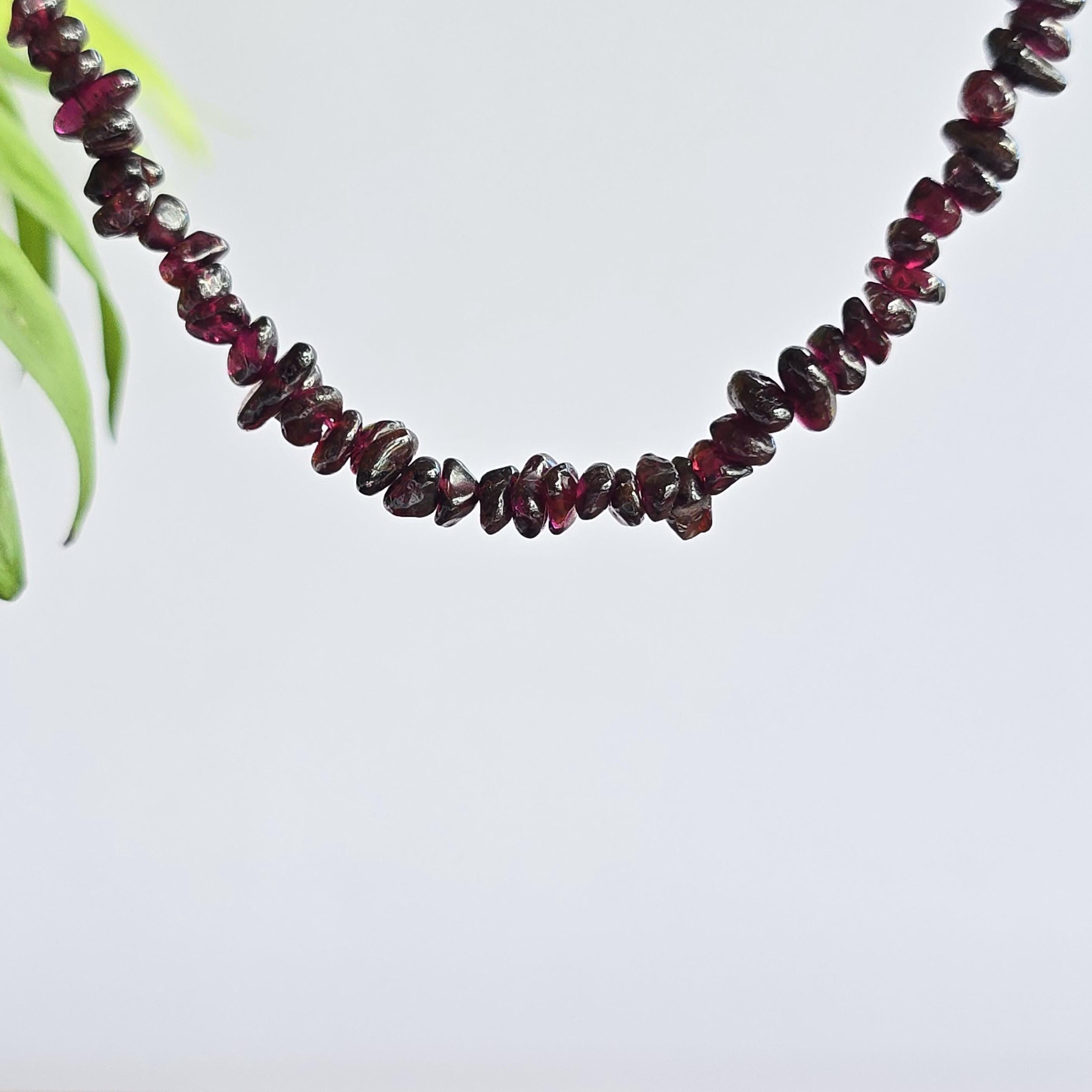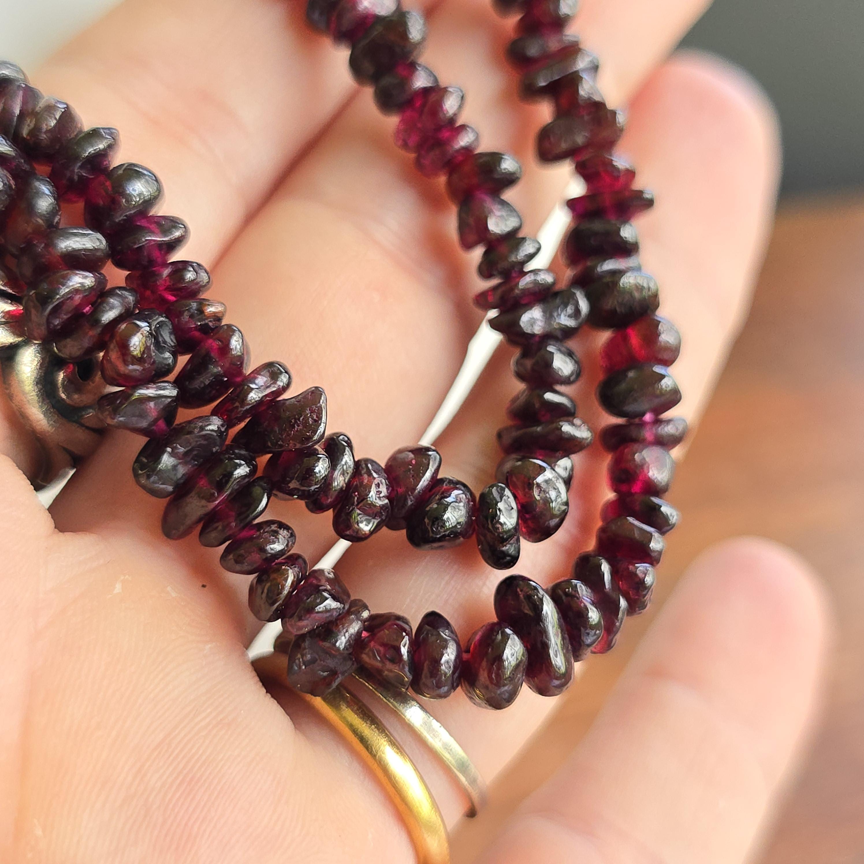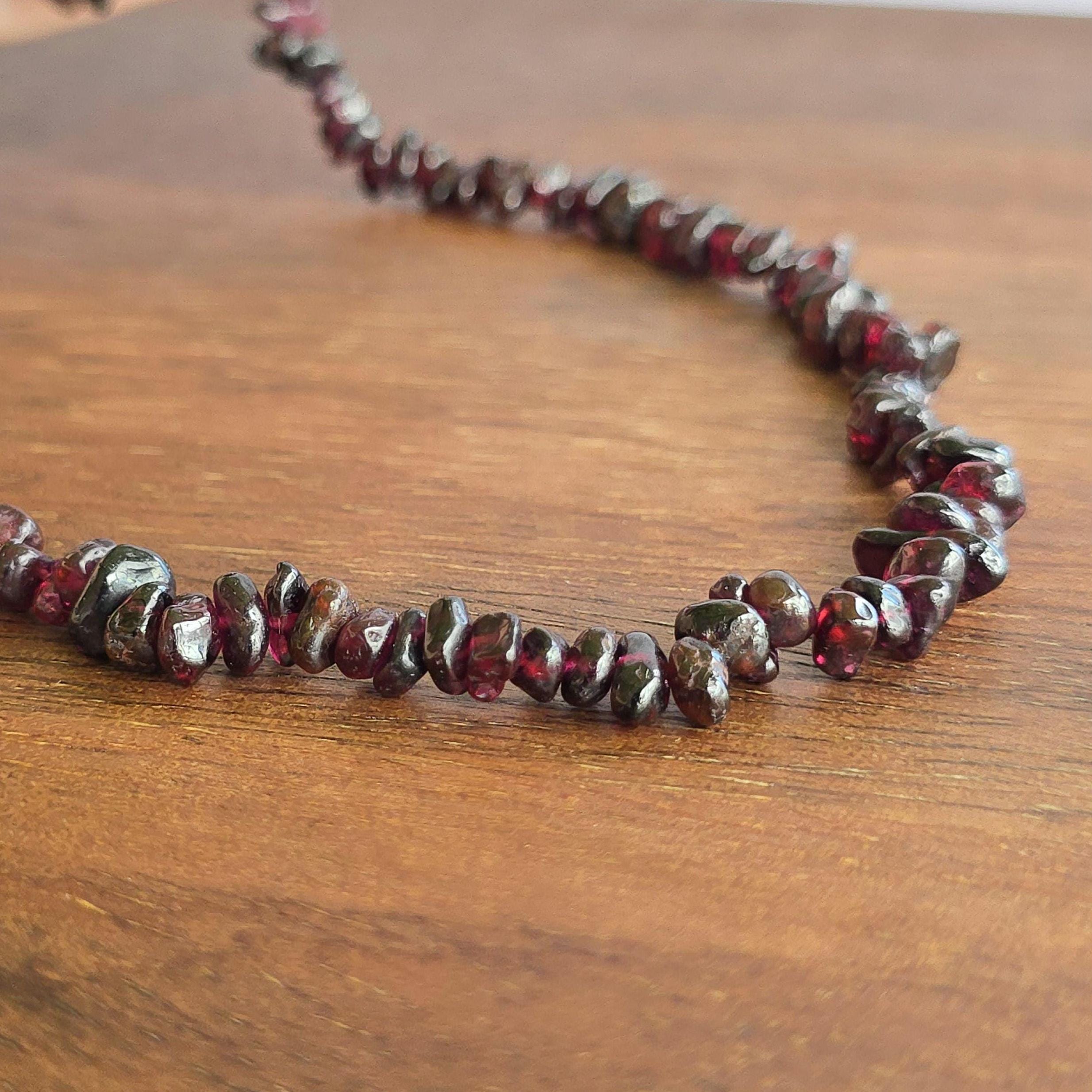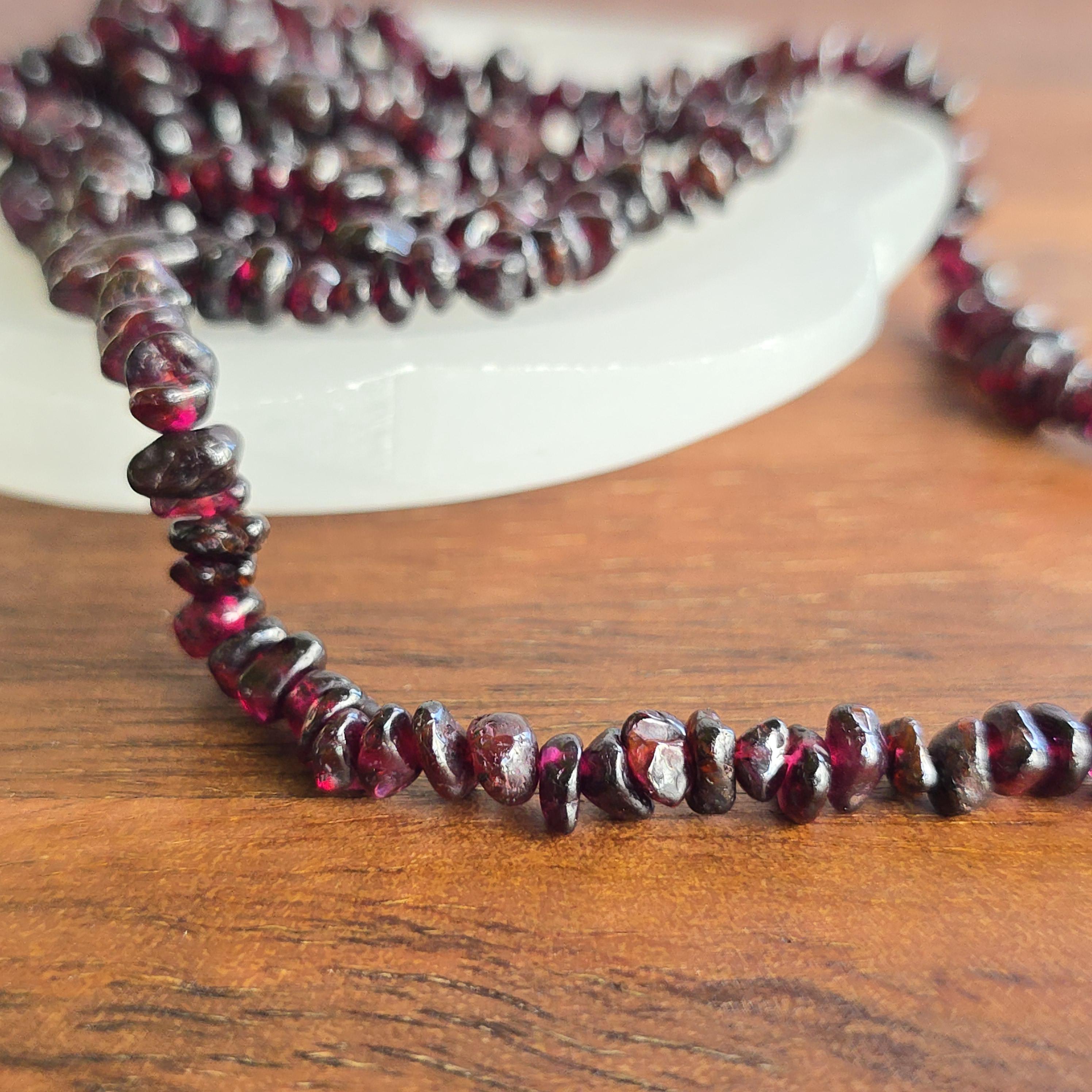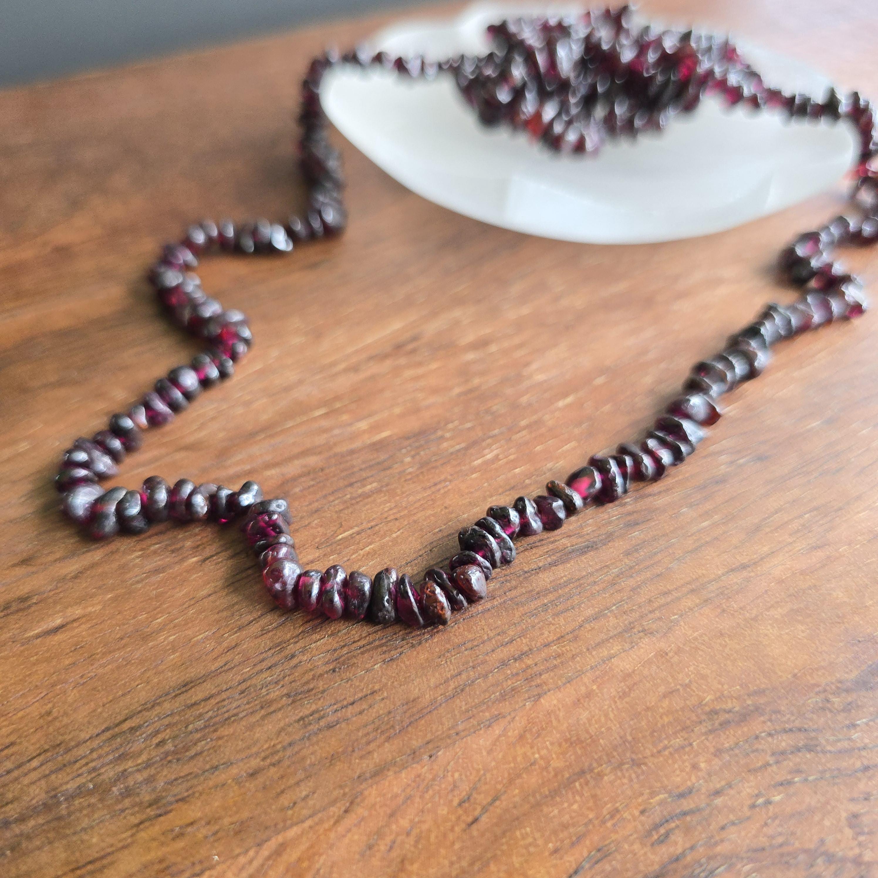 This handcrafted boho necklace is made with genuine garnet chips for a rich red color. At 30 inches, this versatile layering necklace can be worn long, doubled, or stacked with other pieces. Garnet is January’s birthstone and is known to support motivation, creativity, and protection. Handmade garnet jewelry with a smooth hand knotting for everyday comfort and durability.