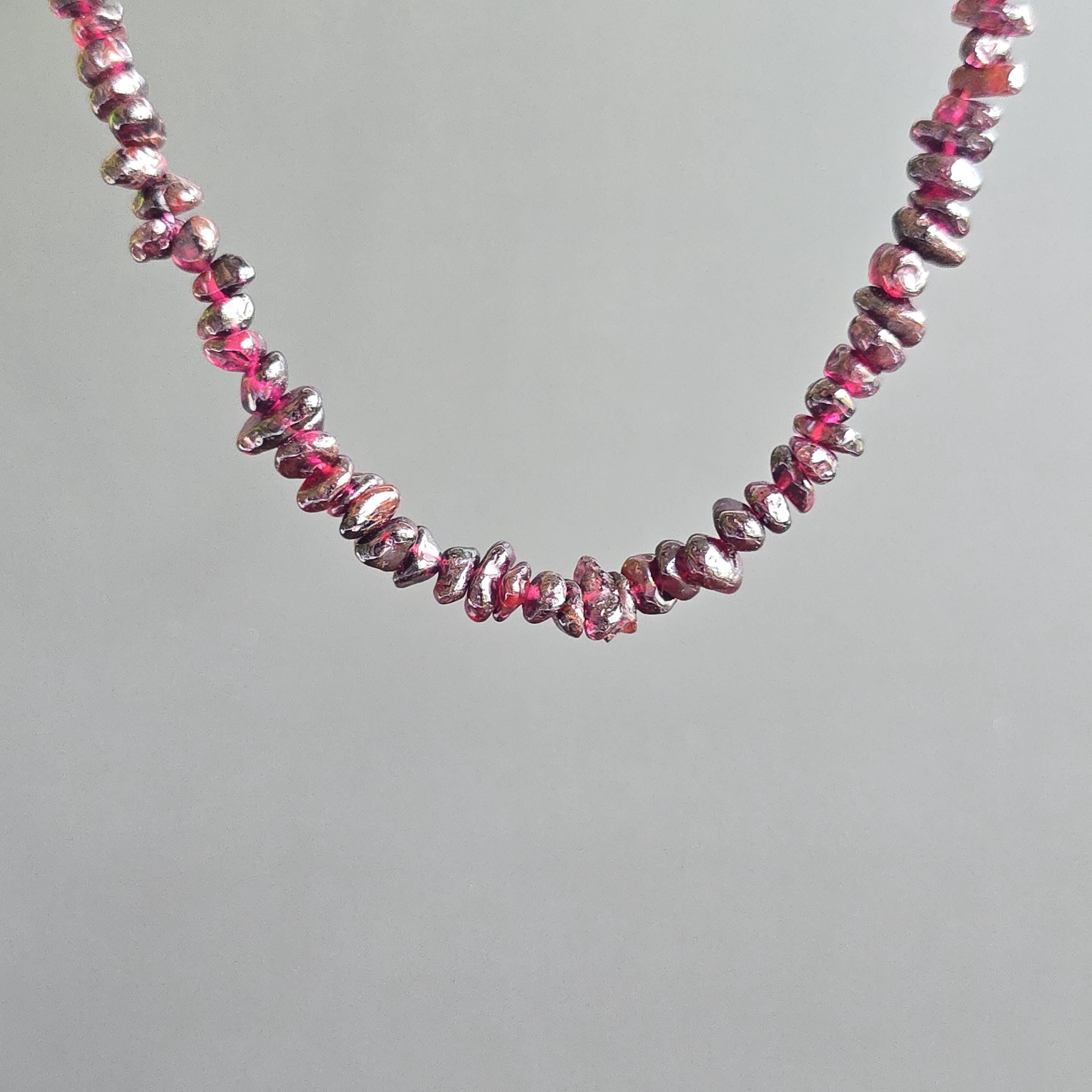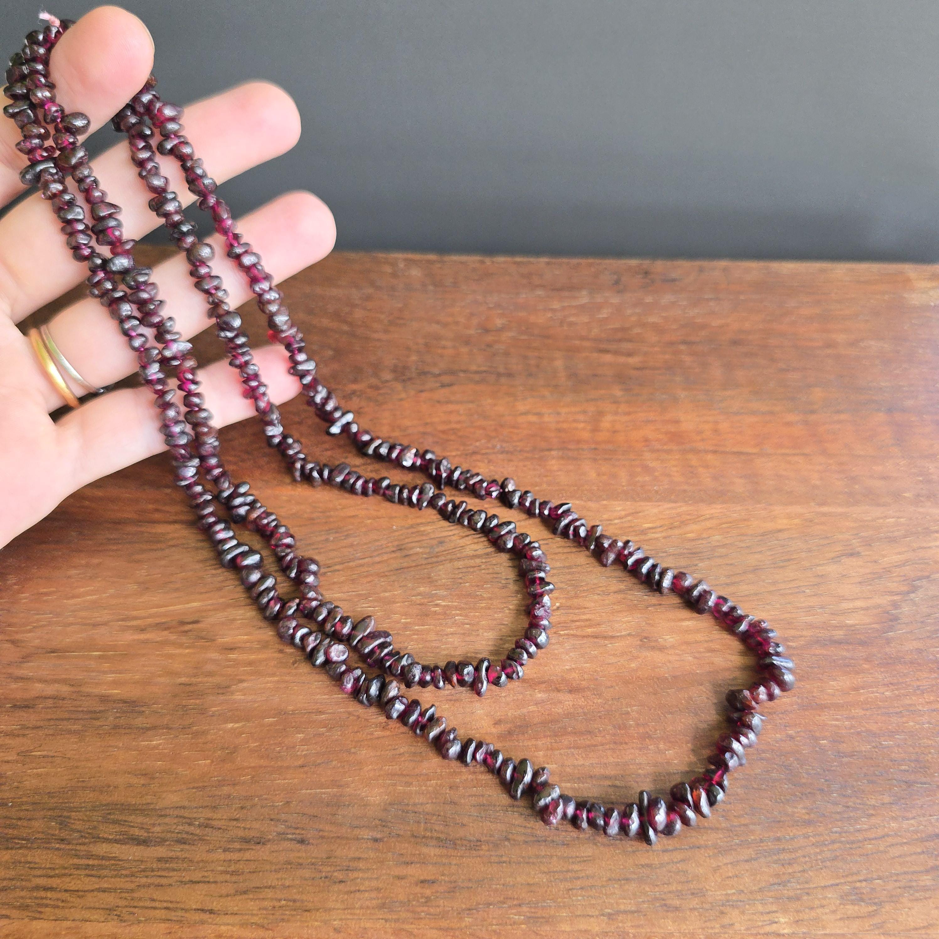 Long Garnet Crystal Necklace, 30 Inch Handmade Gemstone Chips Necklace