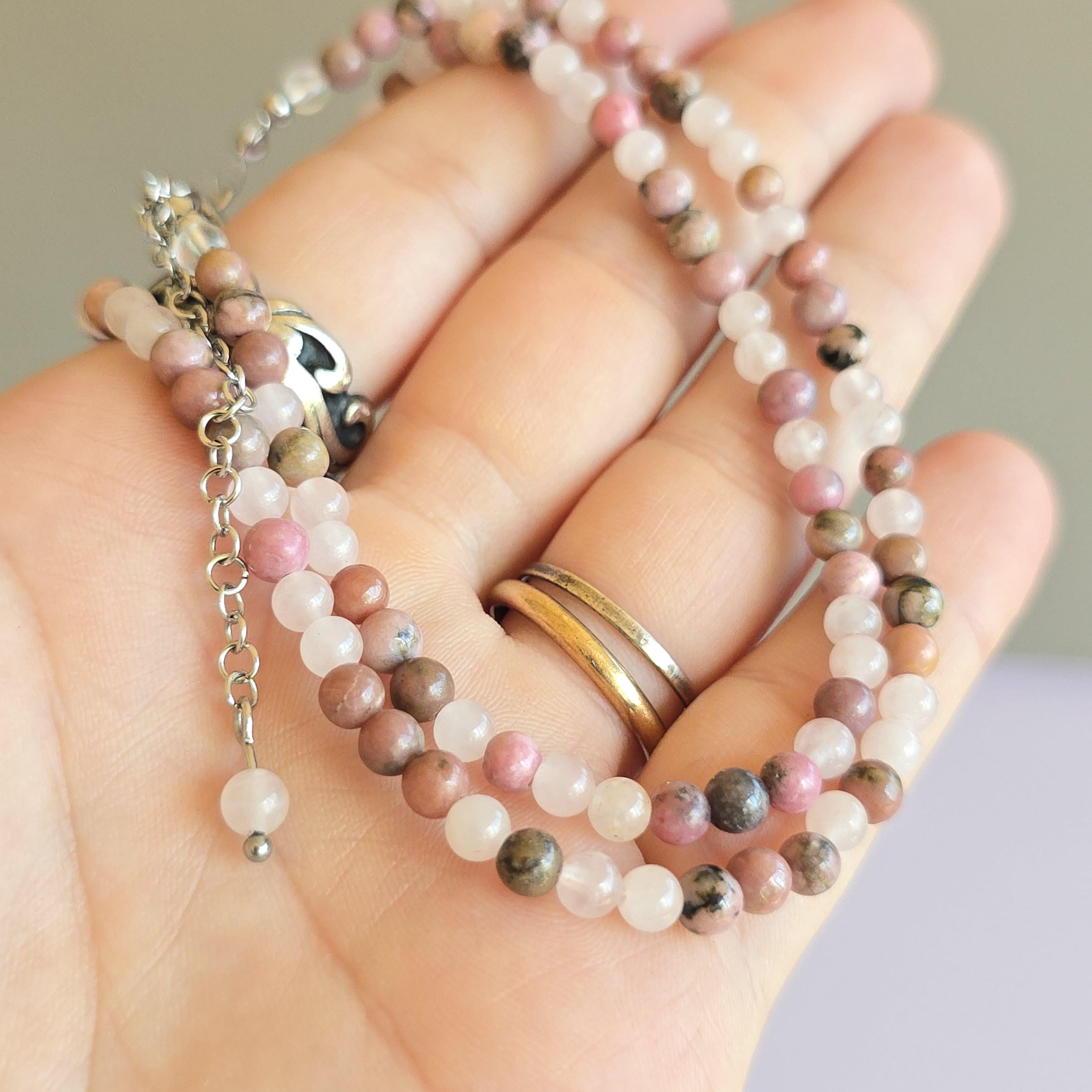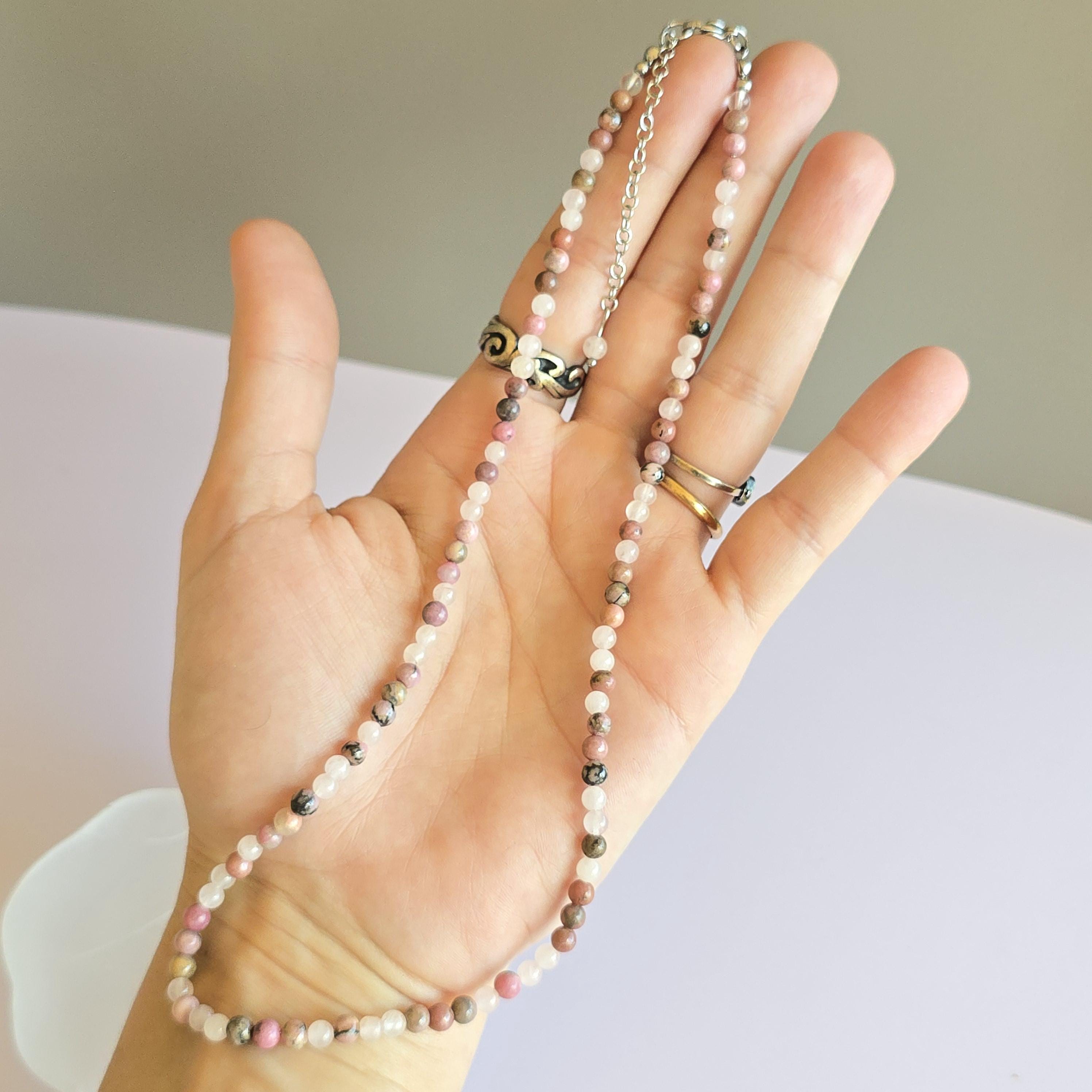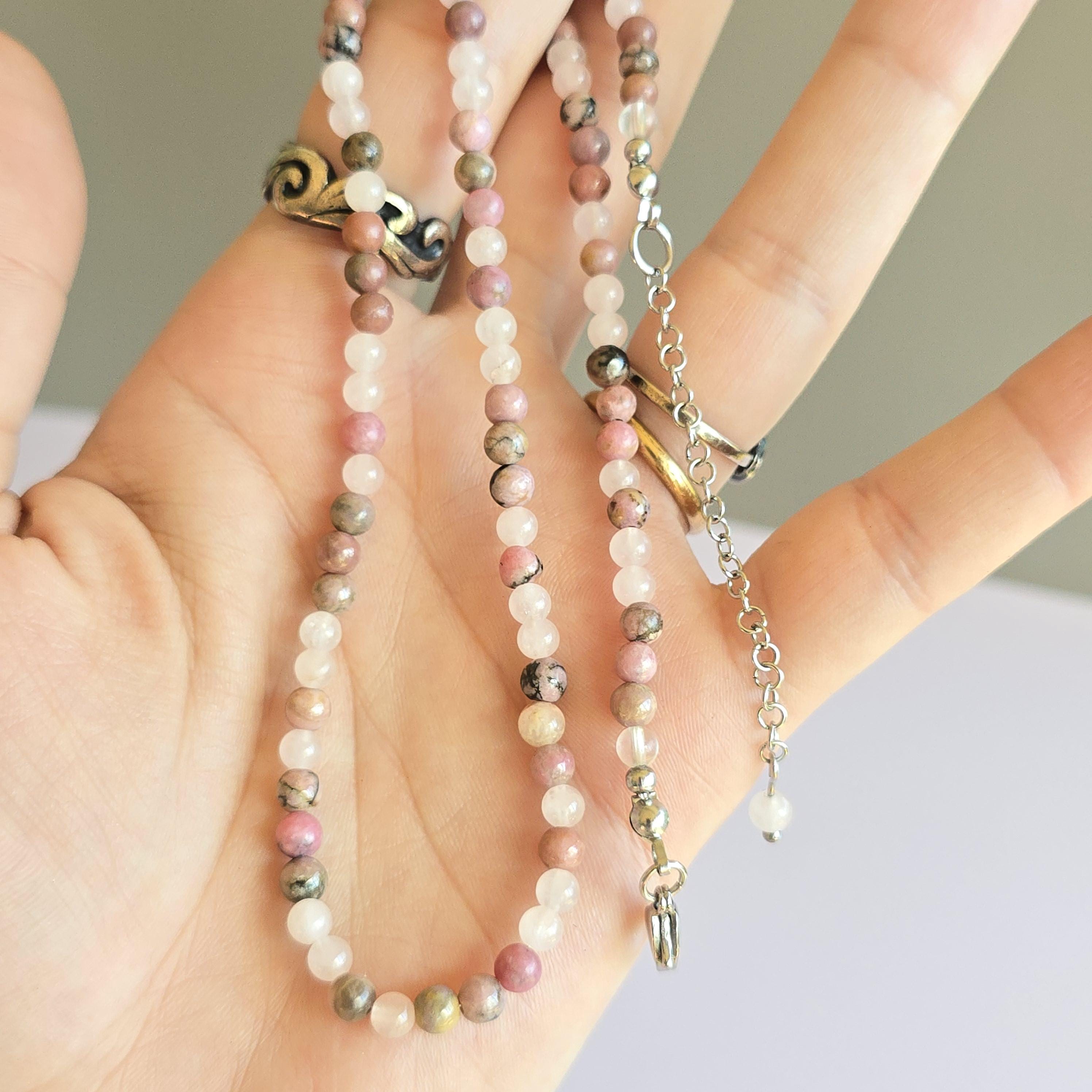 This necklace is adjustable, with a length that can range from 16 to 18 inches, ensuring a comfortable fit for any occasion. With a choice between a sturdy stainless steel or sterling silver chain, this Rhodonite with Rose Quartz Choker Necklace is a stylish addition to your jewelry collection, radiating beauty and inner strength.