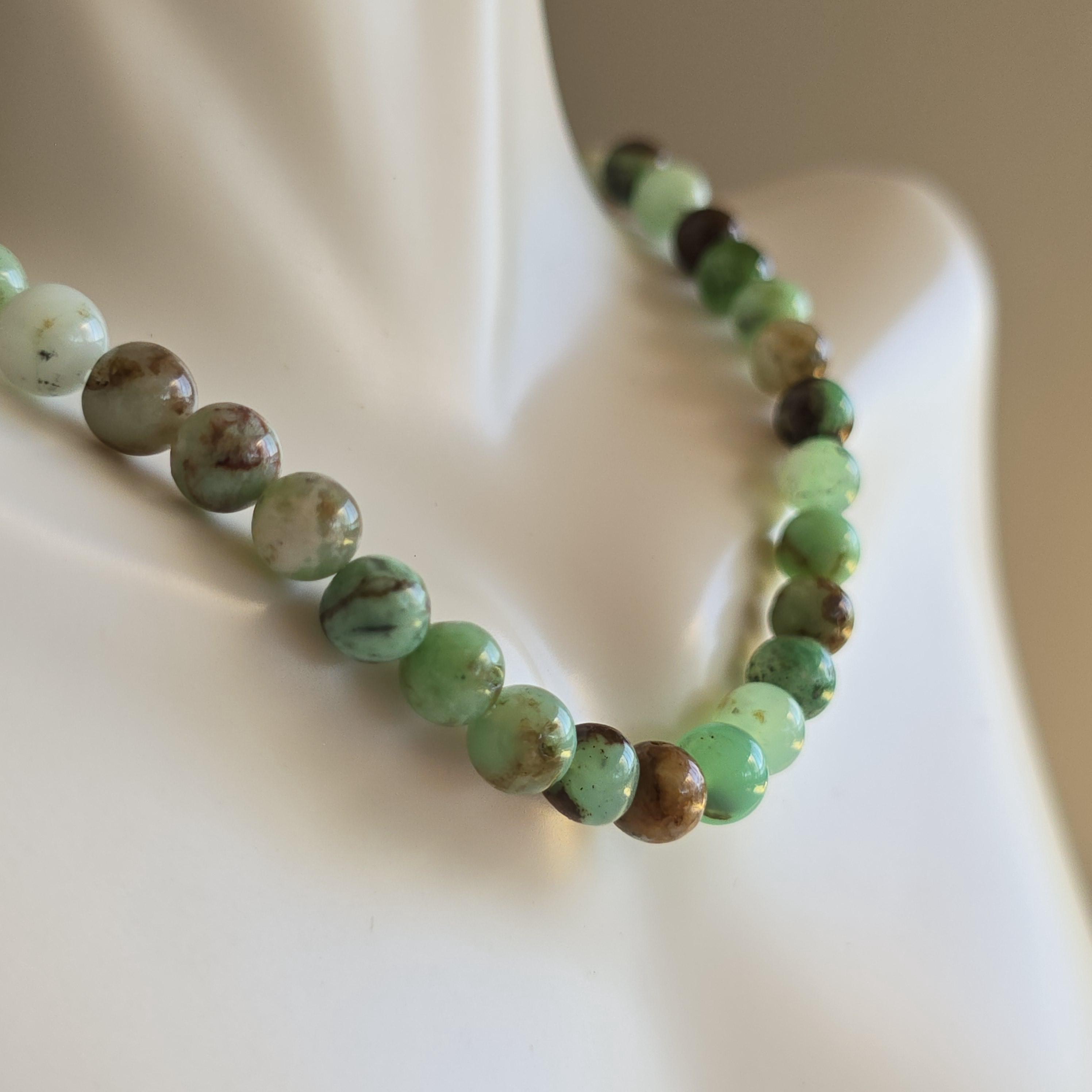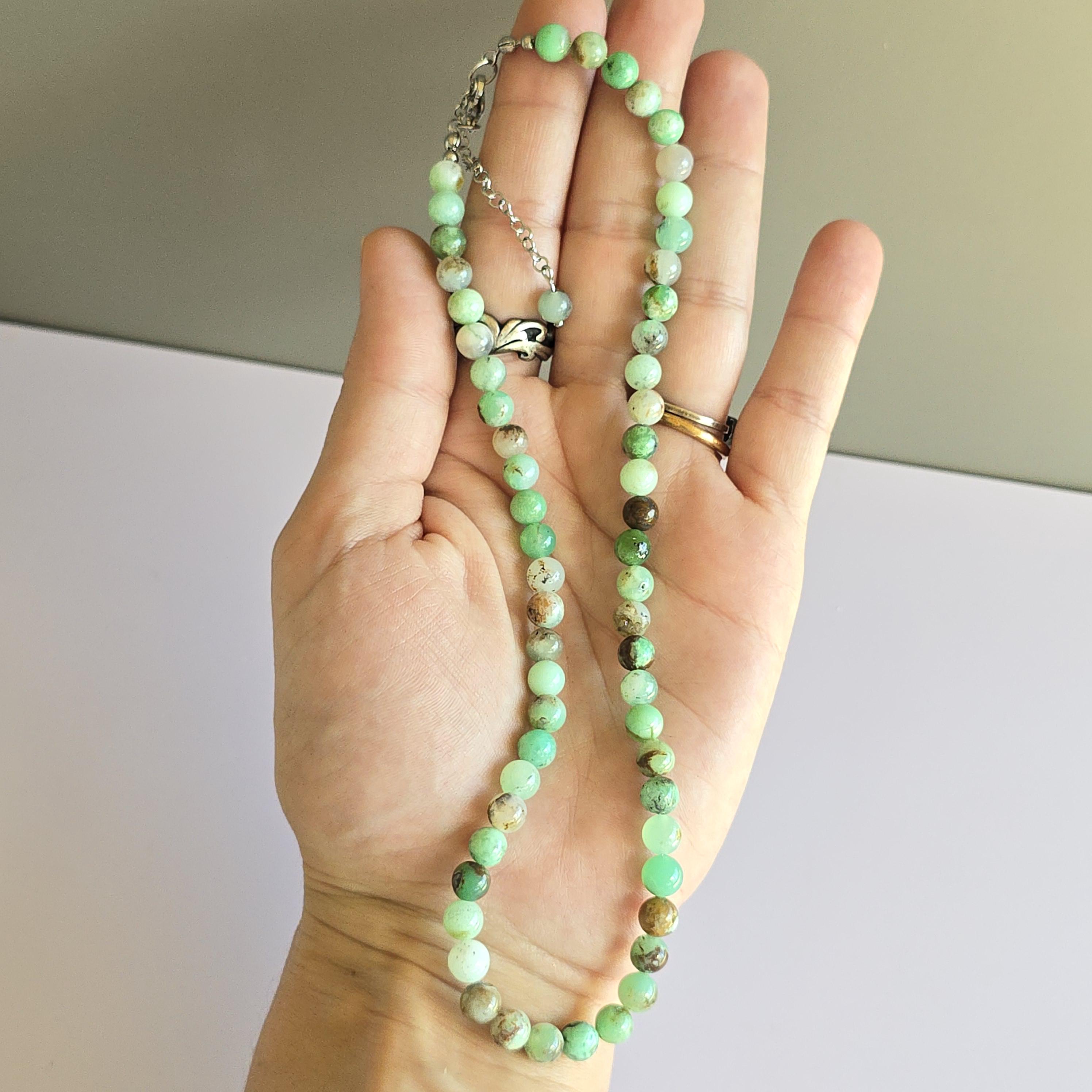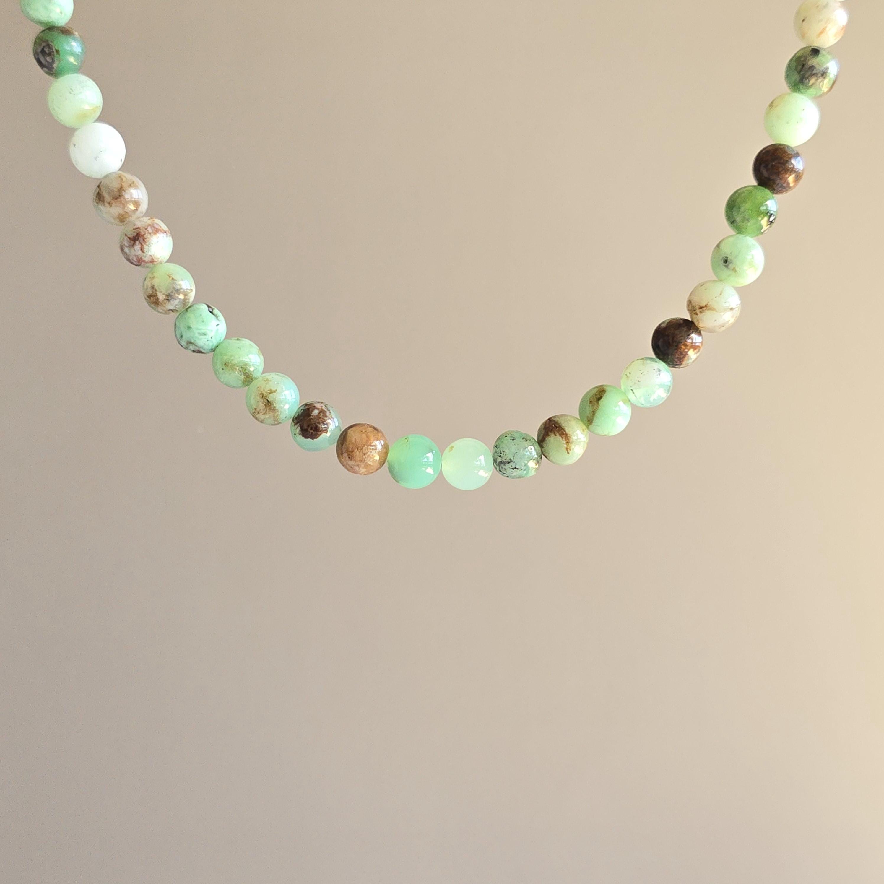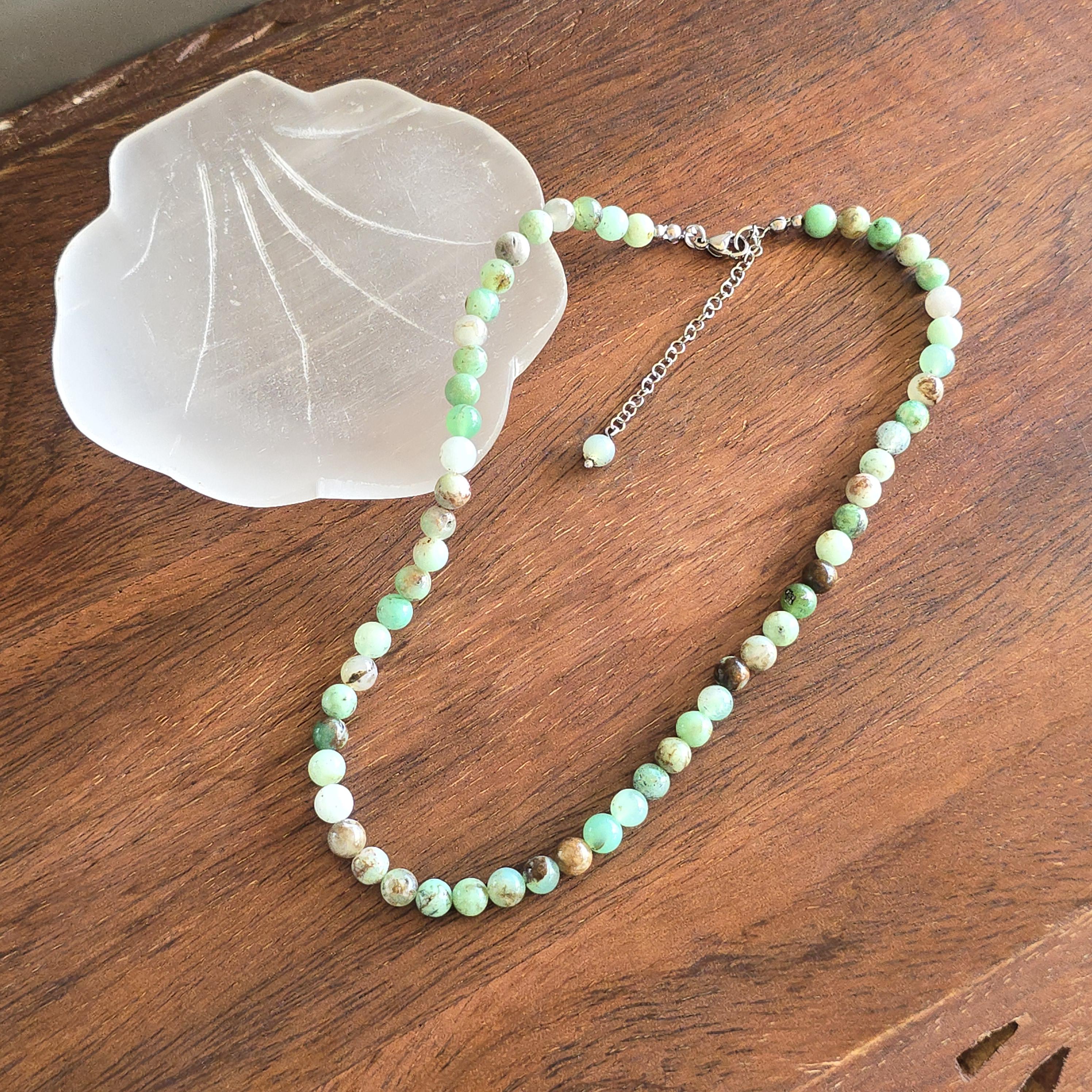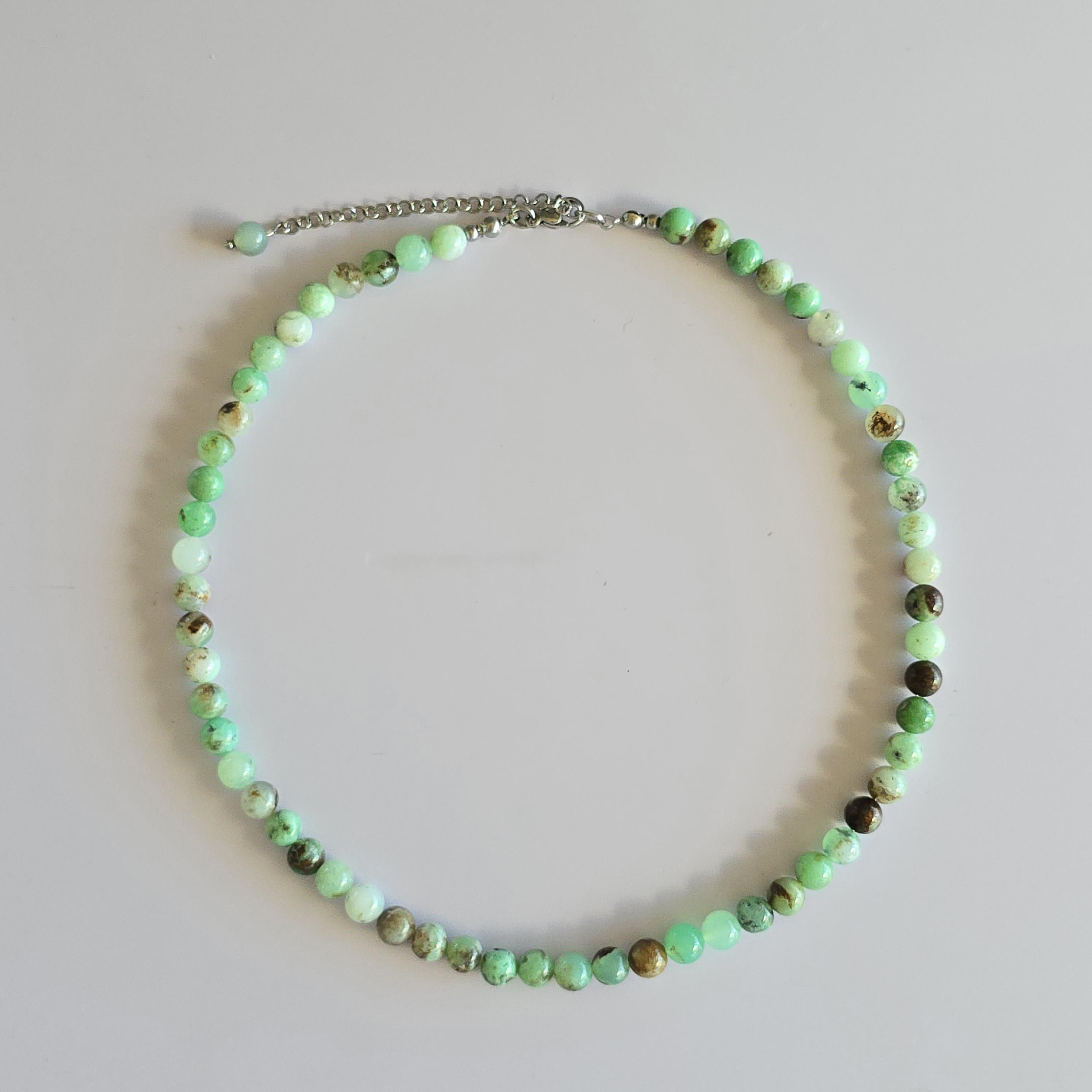 Chrysoprase Crystal Choker Necklace: 16 inch Handmade Gemstone Beaded Necklace