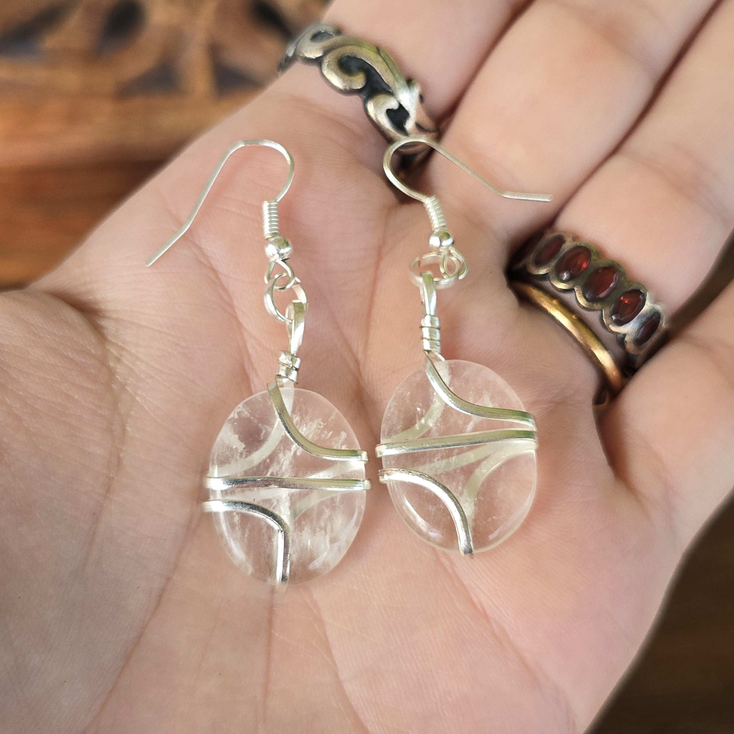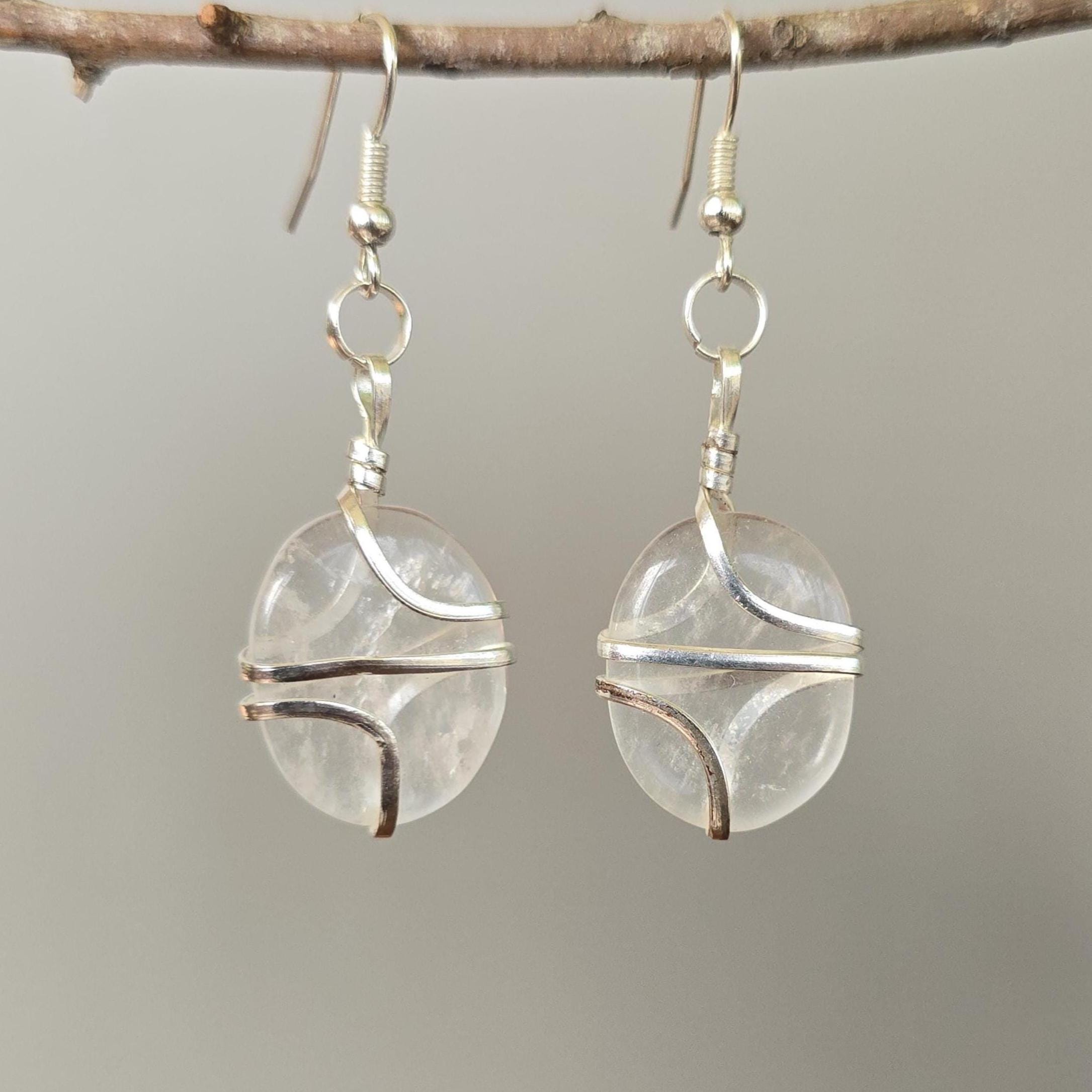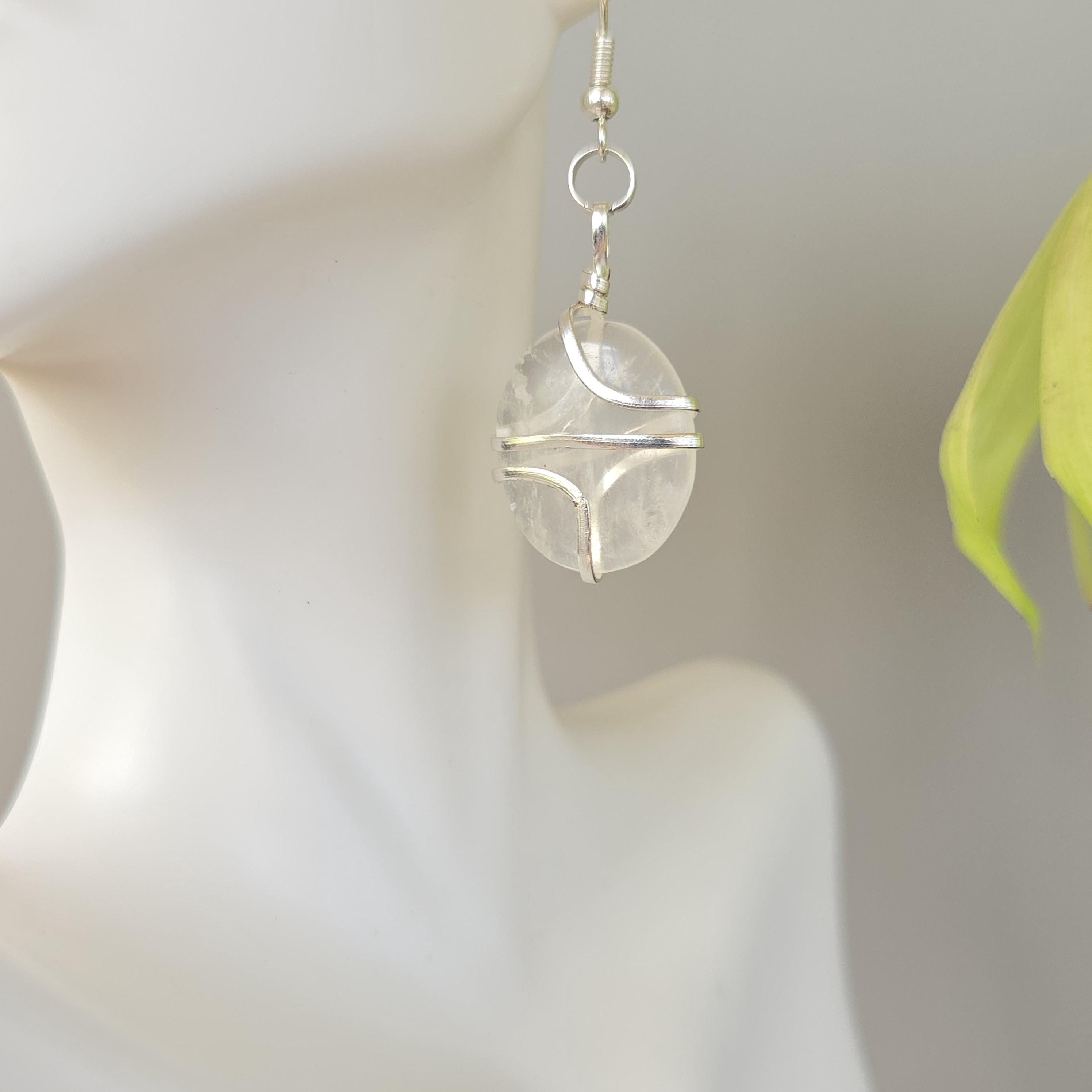 Complete your boho-inspired look with our stunning pair of Clear Quartz Dangle Earrings. These handmade earrings feature Clear Quartz stones elegantly wire wrapped for a touch of sophistication. They measure 50mm in drop length and the Clear Quartz Stones are 20mm x 15mm . These Gemstone Earrings are suitable for various occasions and are a valuable addition to your Crystal Jewelry collection.