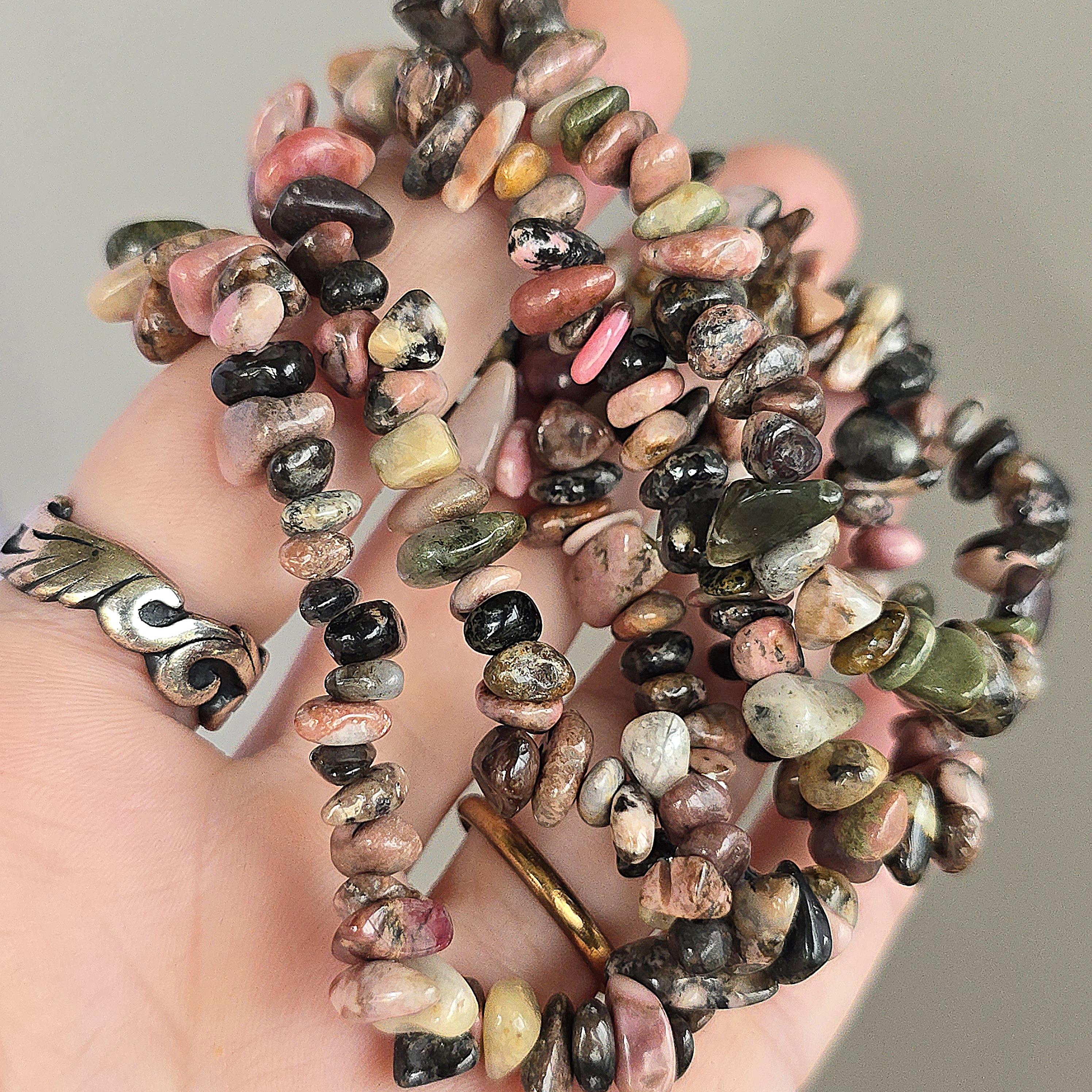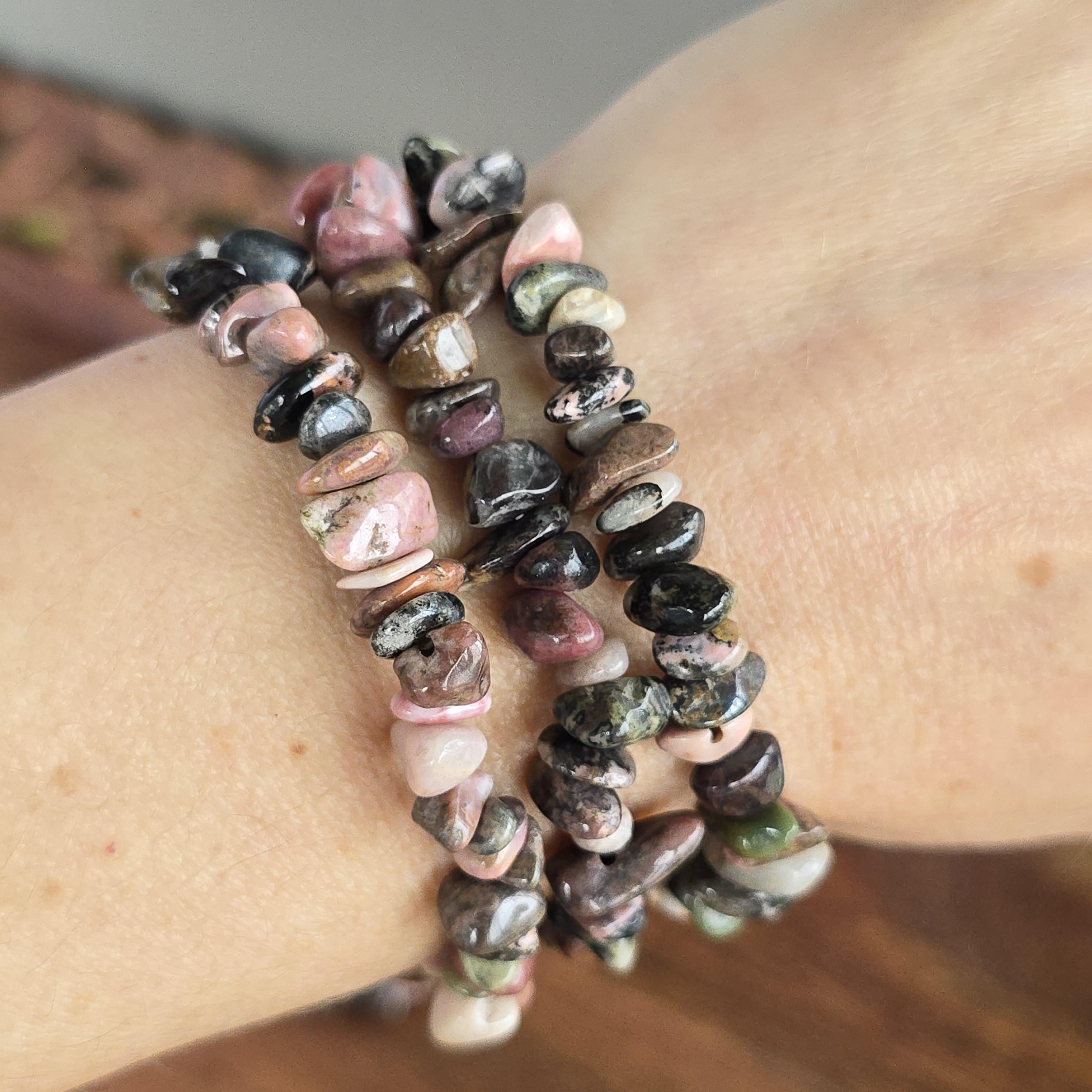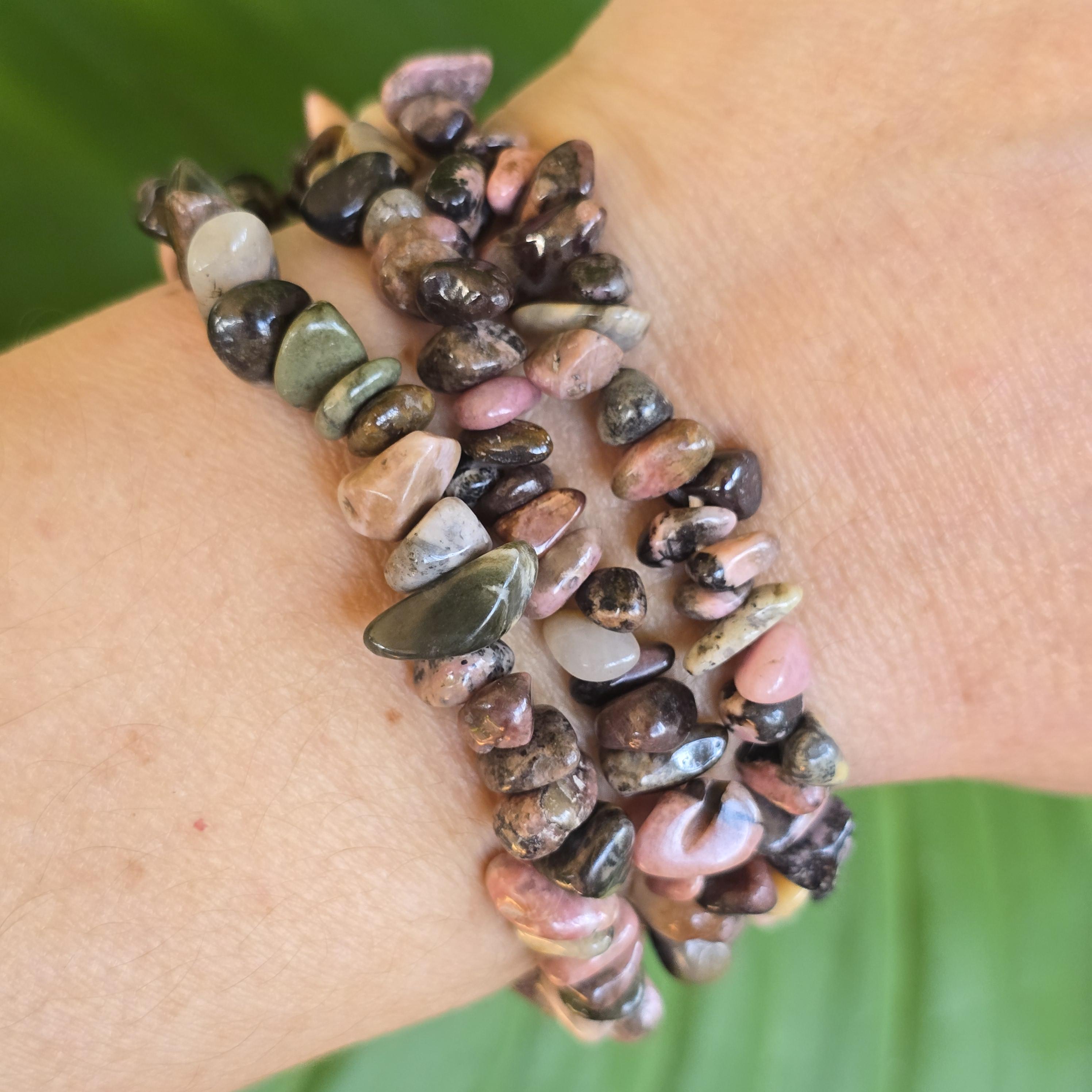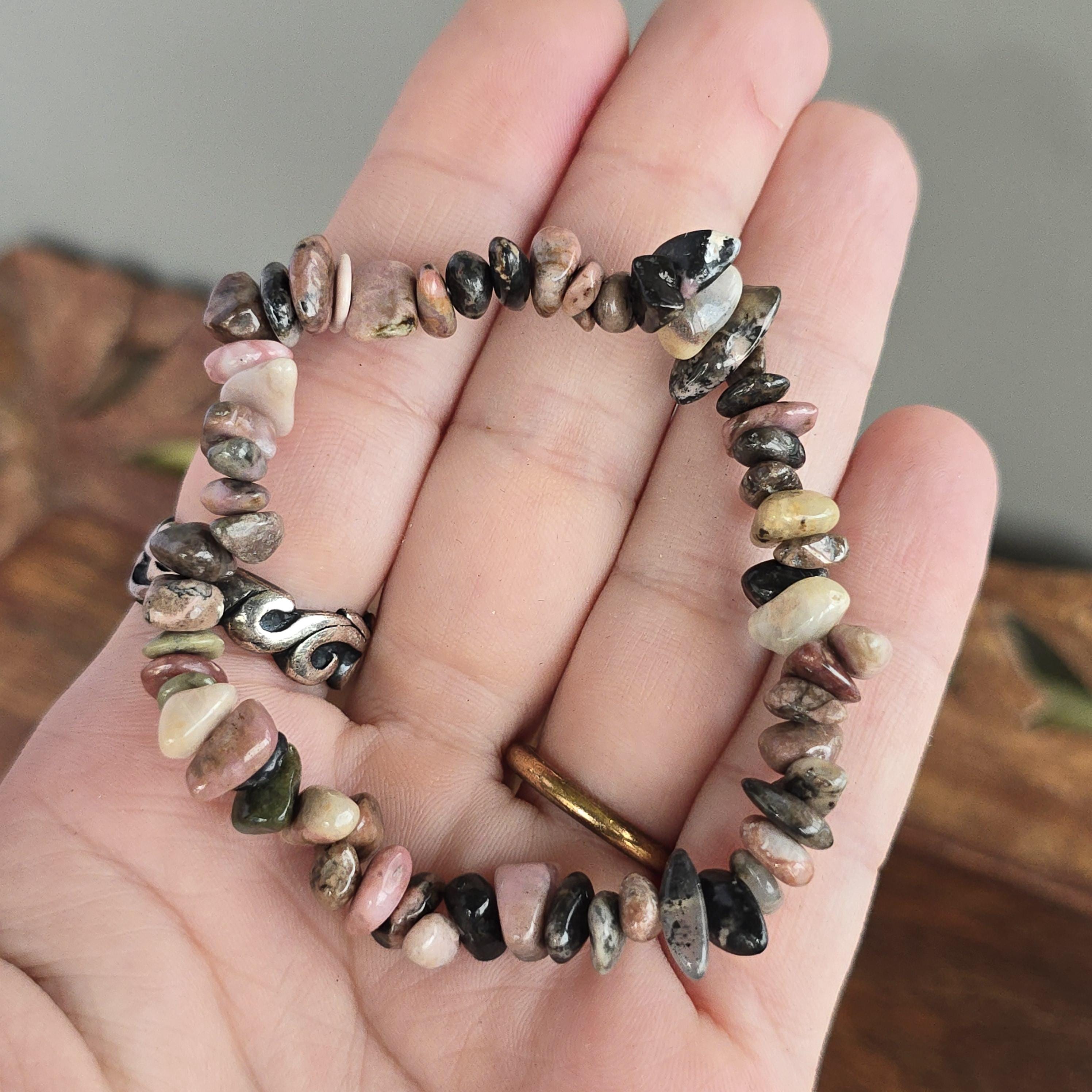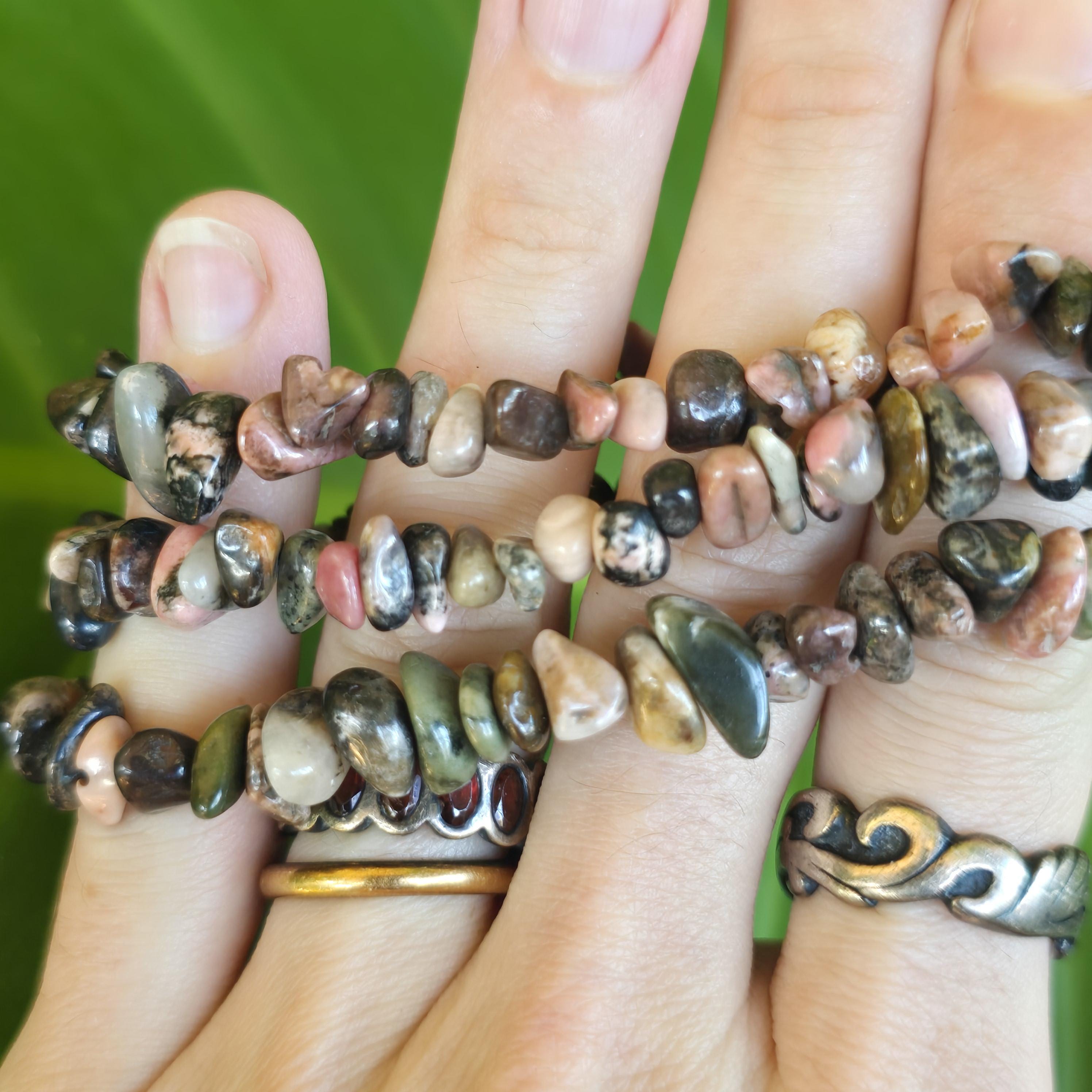 This listing is for 1 (ONE) Rhodonite Chips Bracelet like the item pictured.