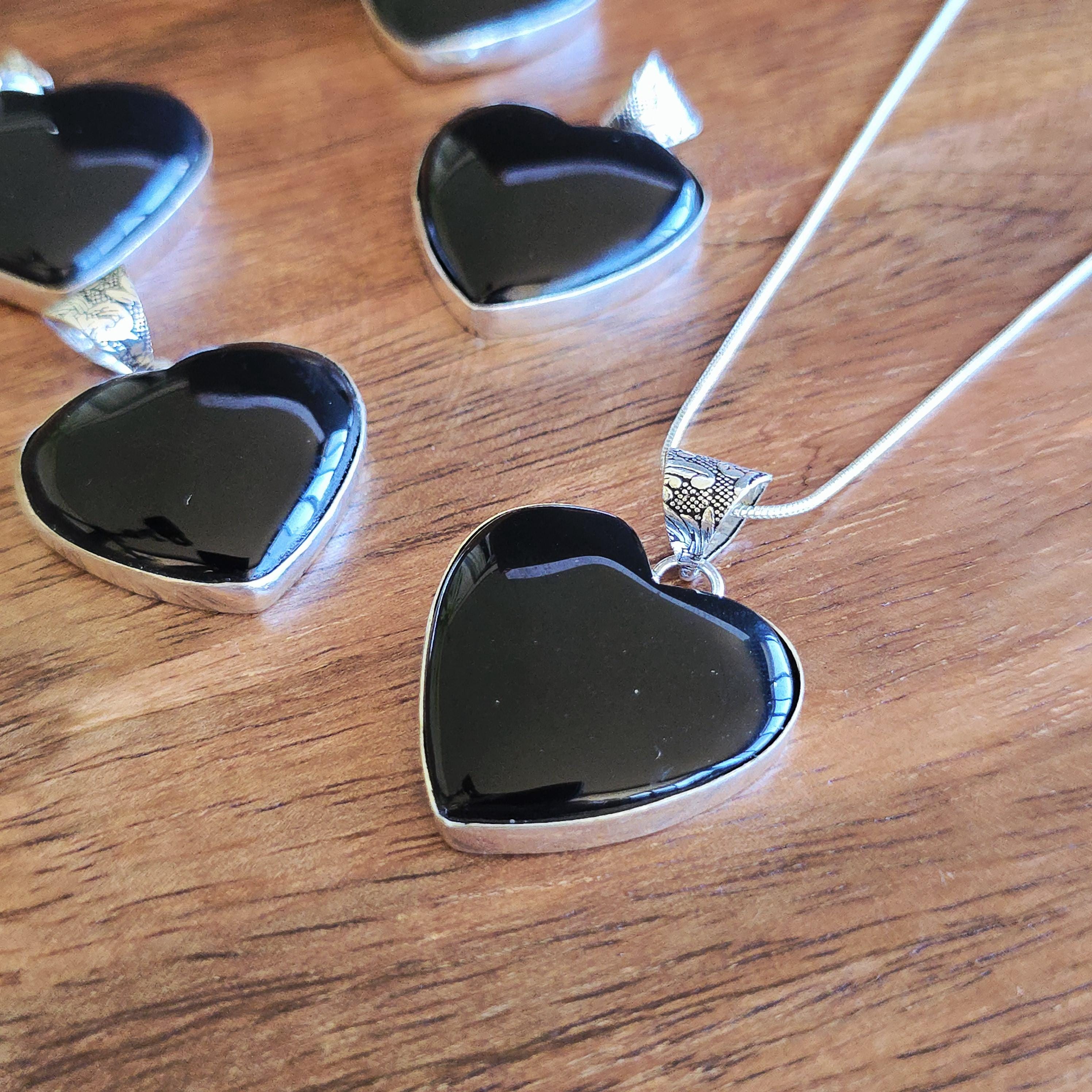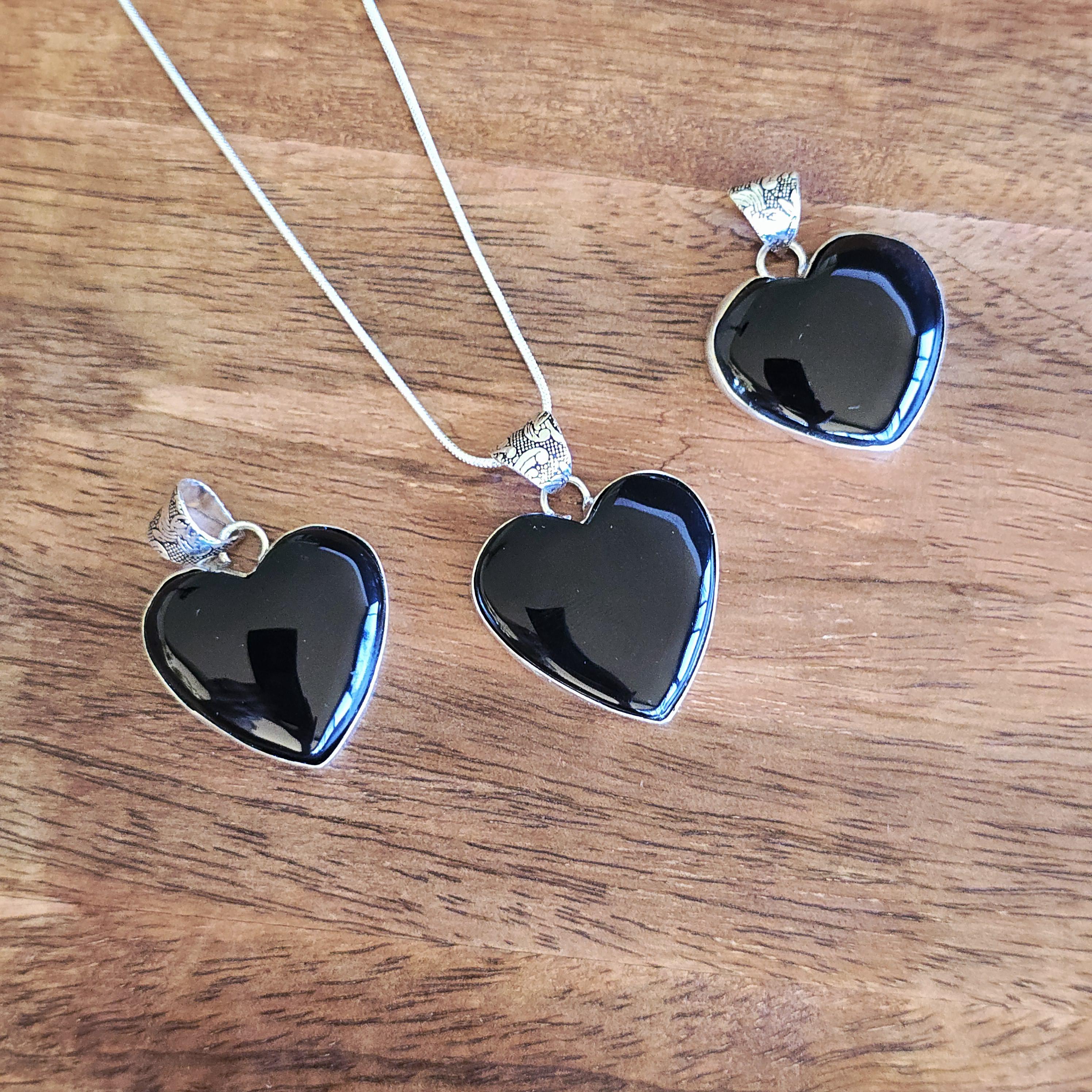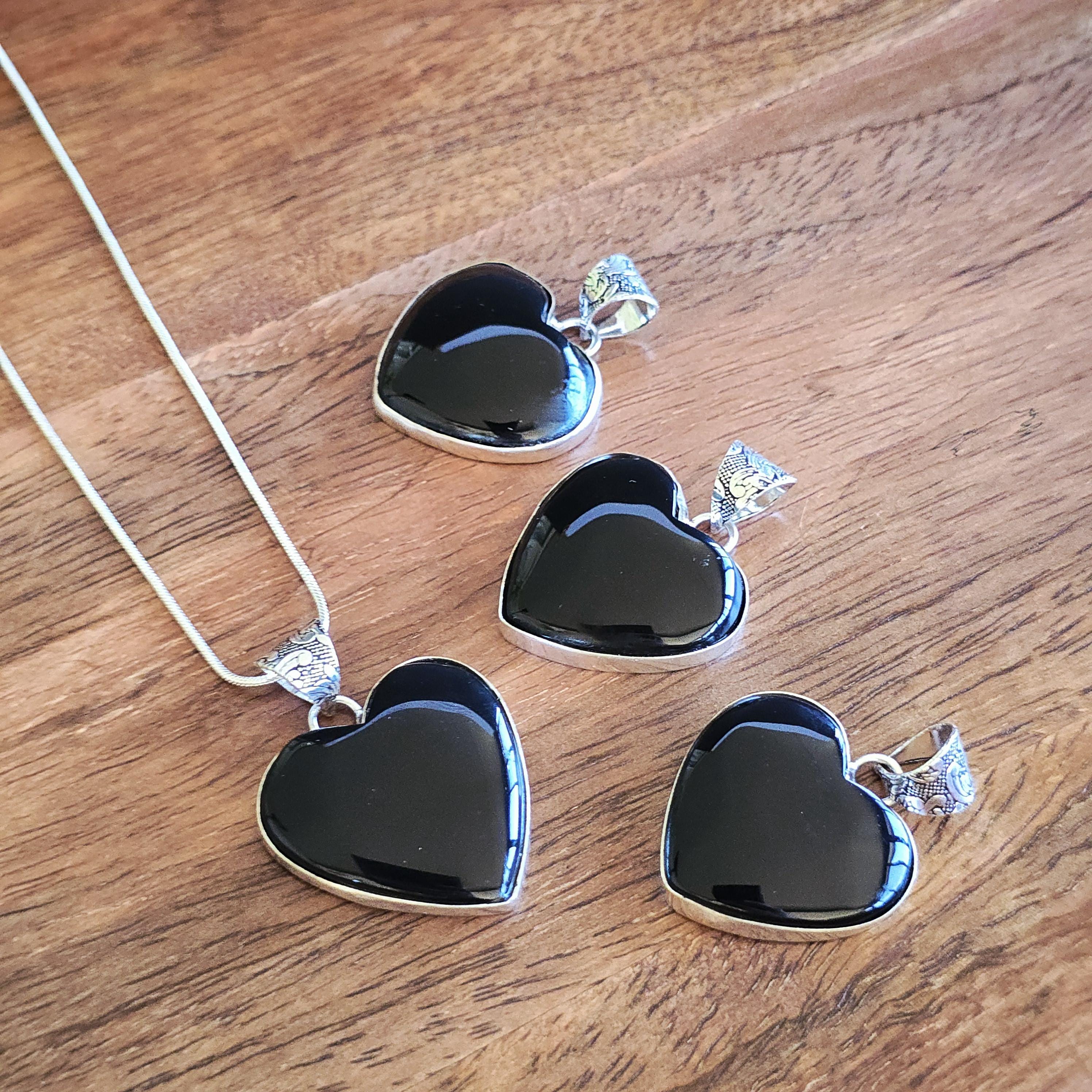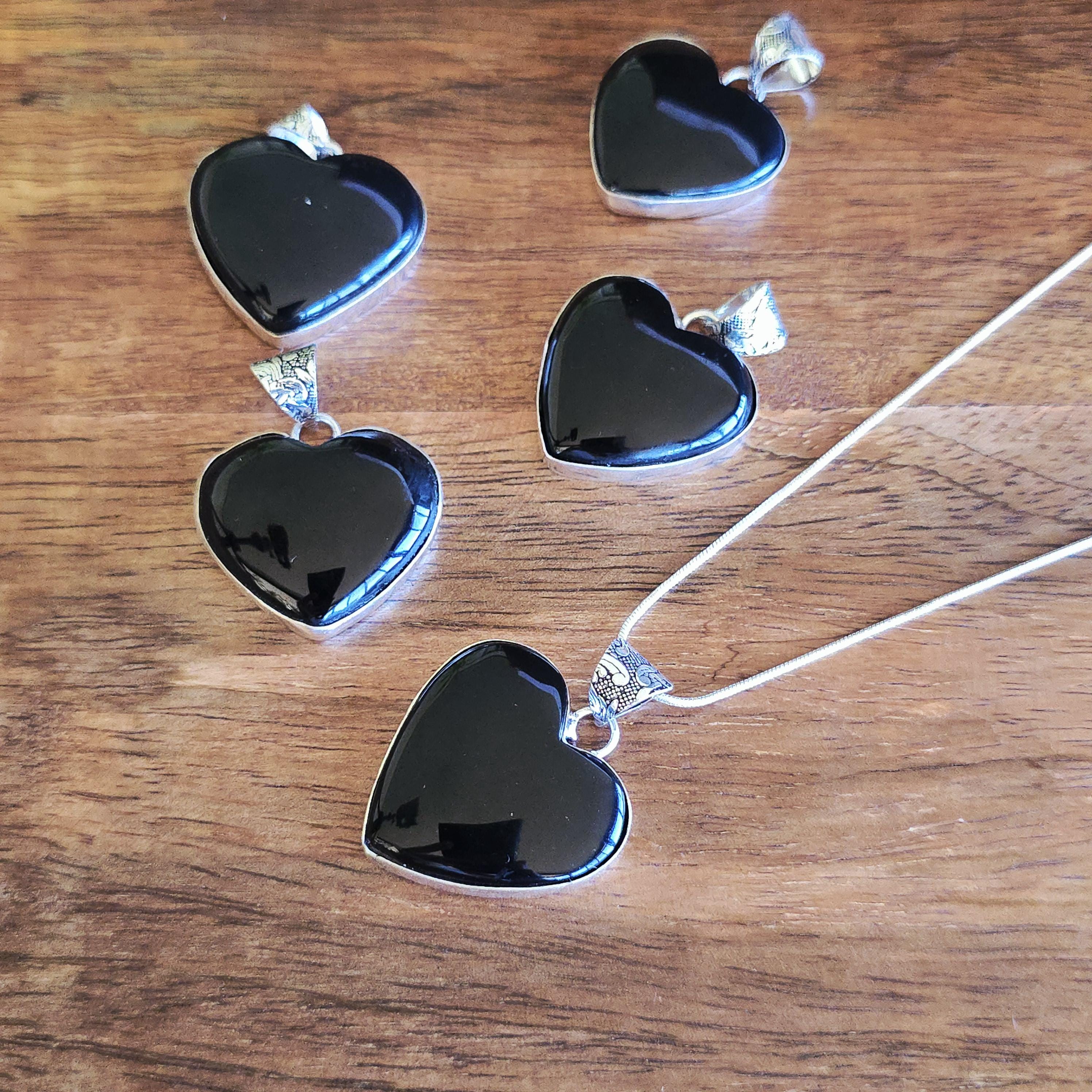Black onyx is a natural black stone widely used in crystal practices for its strong protective and grounding properties. Many associate it with absorbing negative energy, promoting emotional strength, stability, self-control, and inner calm. This polished heart-shaped pendant offers a sleek, elegant look with a mirror-like shine, making it a versatile piece for everyday wear, layering, or as a meaningful accessory for protection and grounding. Each pendant uses genuine black onyx, so natural variations in polish, inclusions, and subtle veining may occur due to the authentic stone.