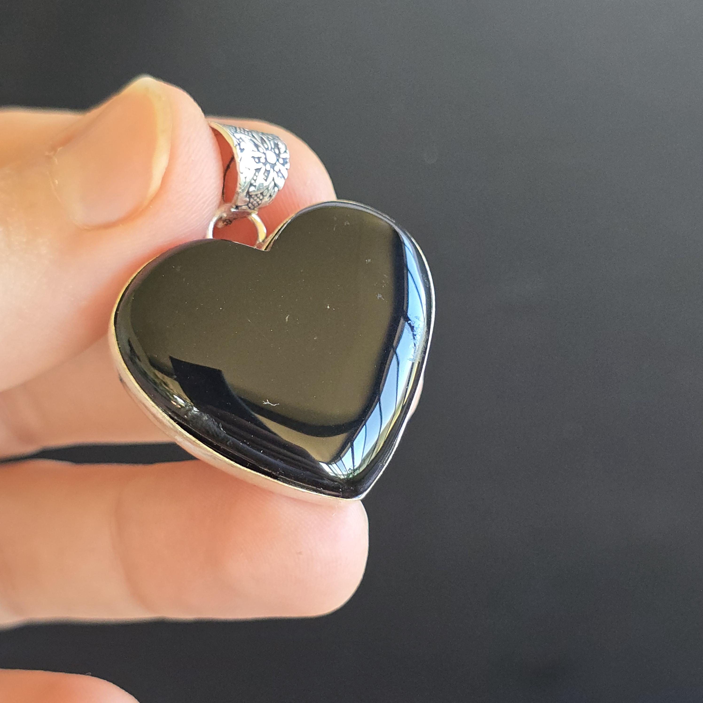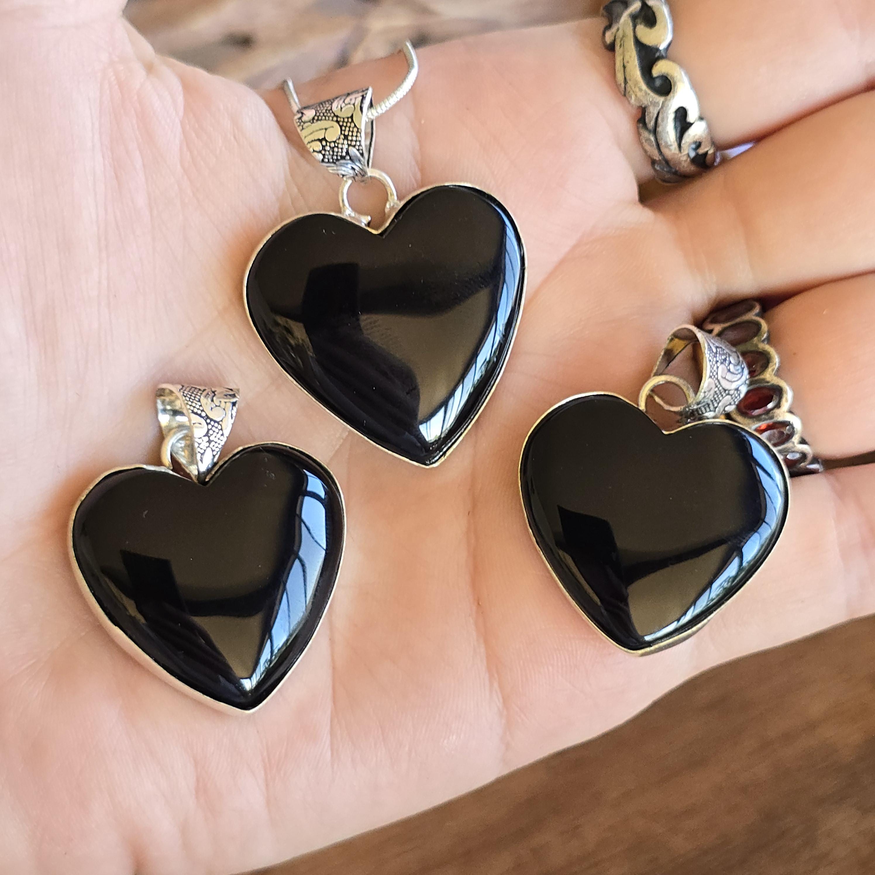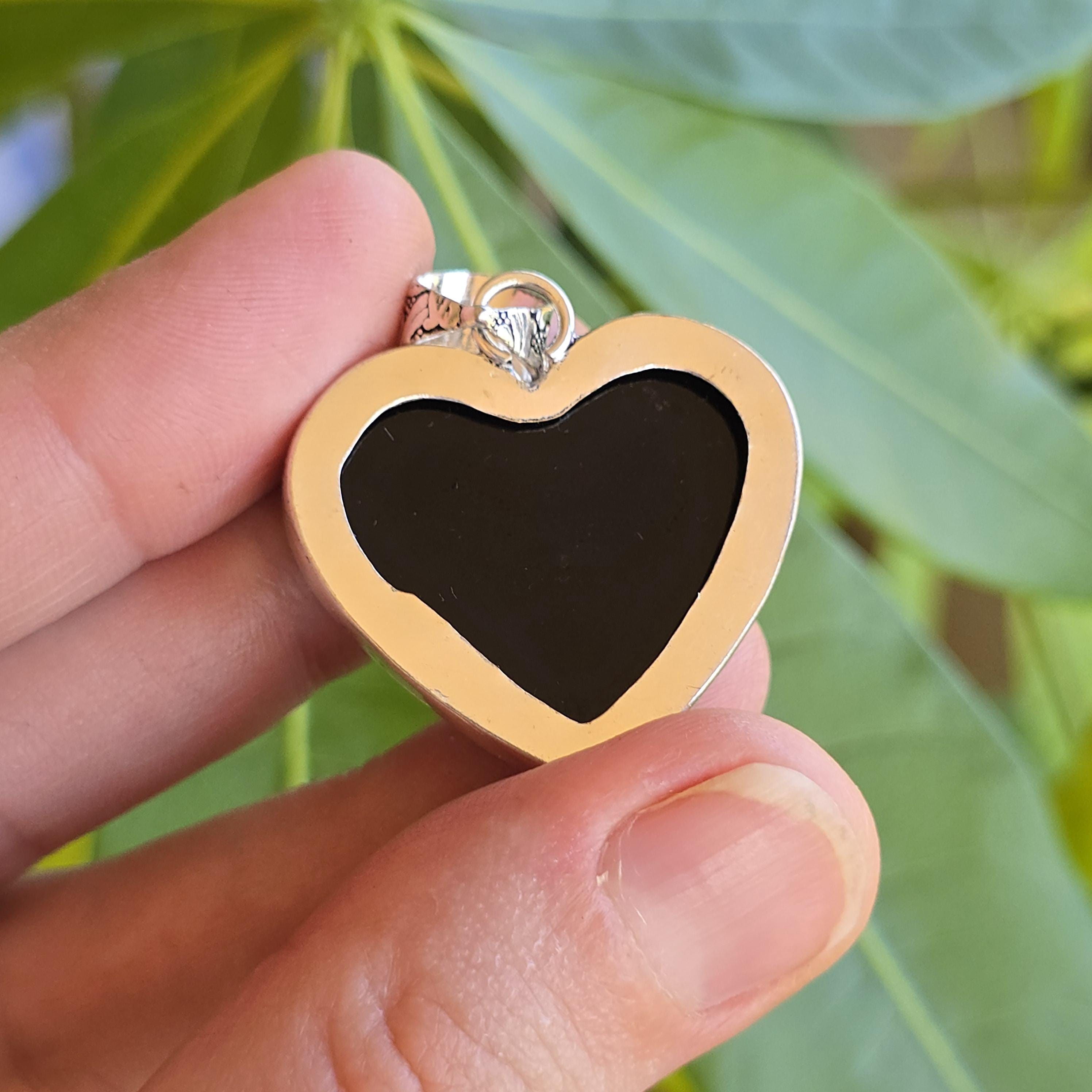 Black onyx is a natural black stone widely used in crystal practices for its strong protective and grounding properties. Many associate it with absorbing negative energy, promoting emotional strength, stability, self-control, and inner calm. This polished heart-shaped pendant offers a sleek, elegant look with a mirror-like shine, making it a versatile piece for everyday wear, layering, or as a meaningful accessory for protection and grounding. Each pendant uses genuine black onyx, so natural variations in polish, inclusions, and subtle veining may occur due to the authentic stone.