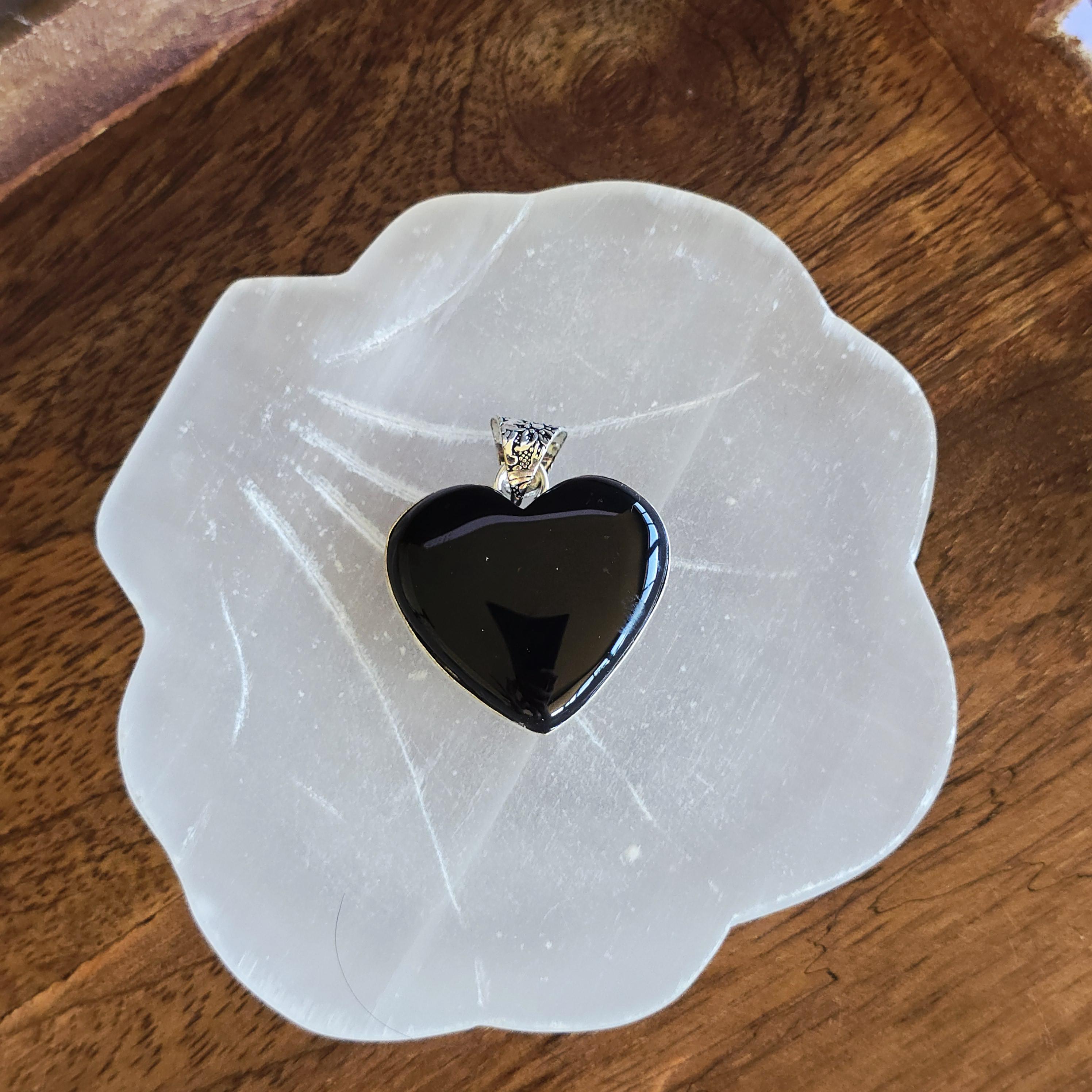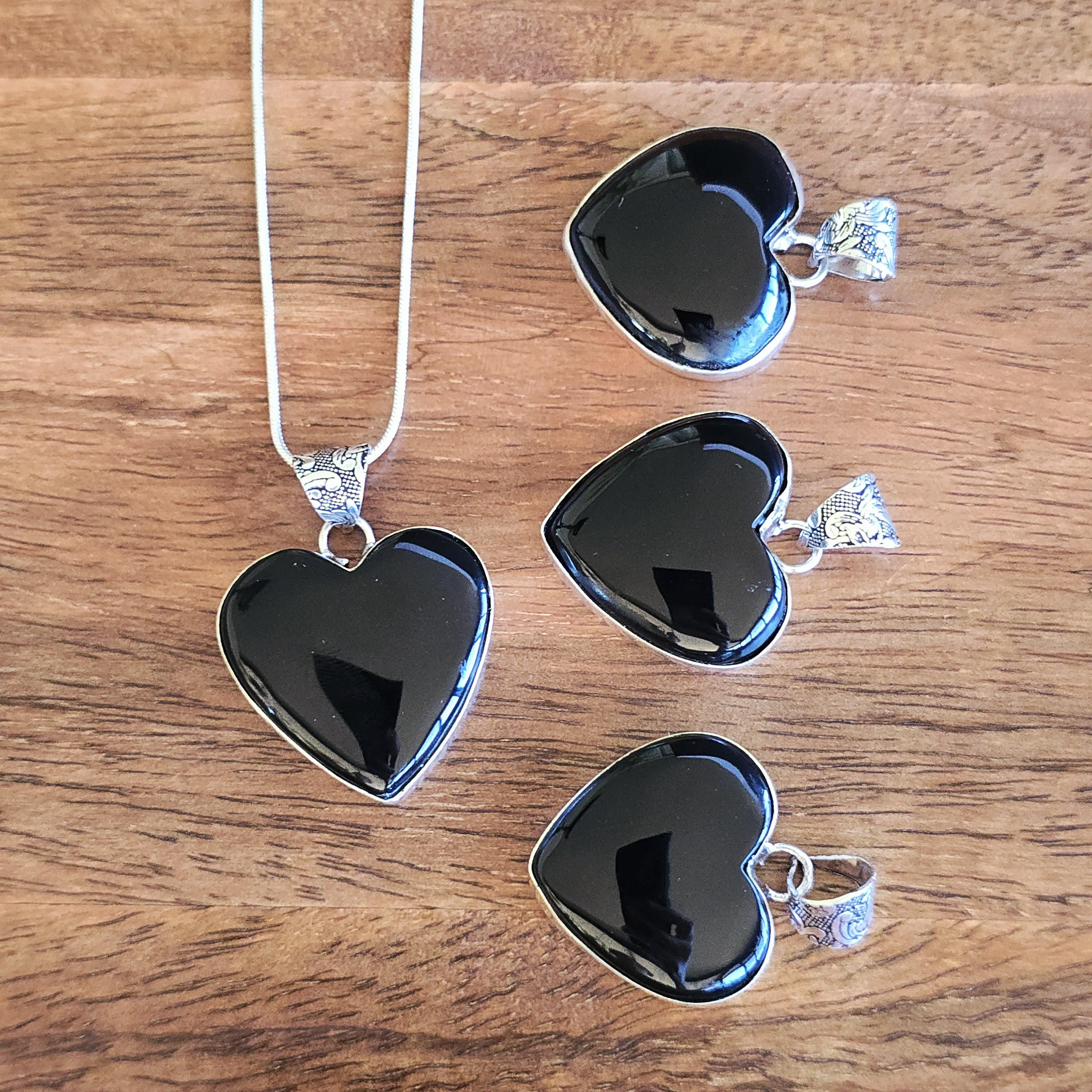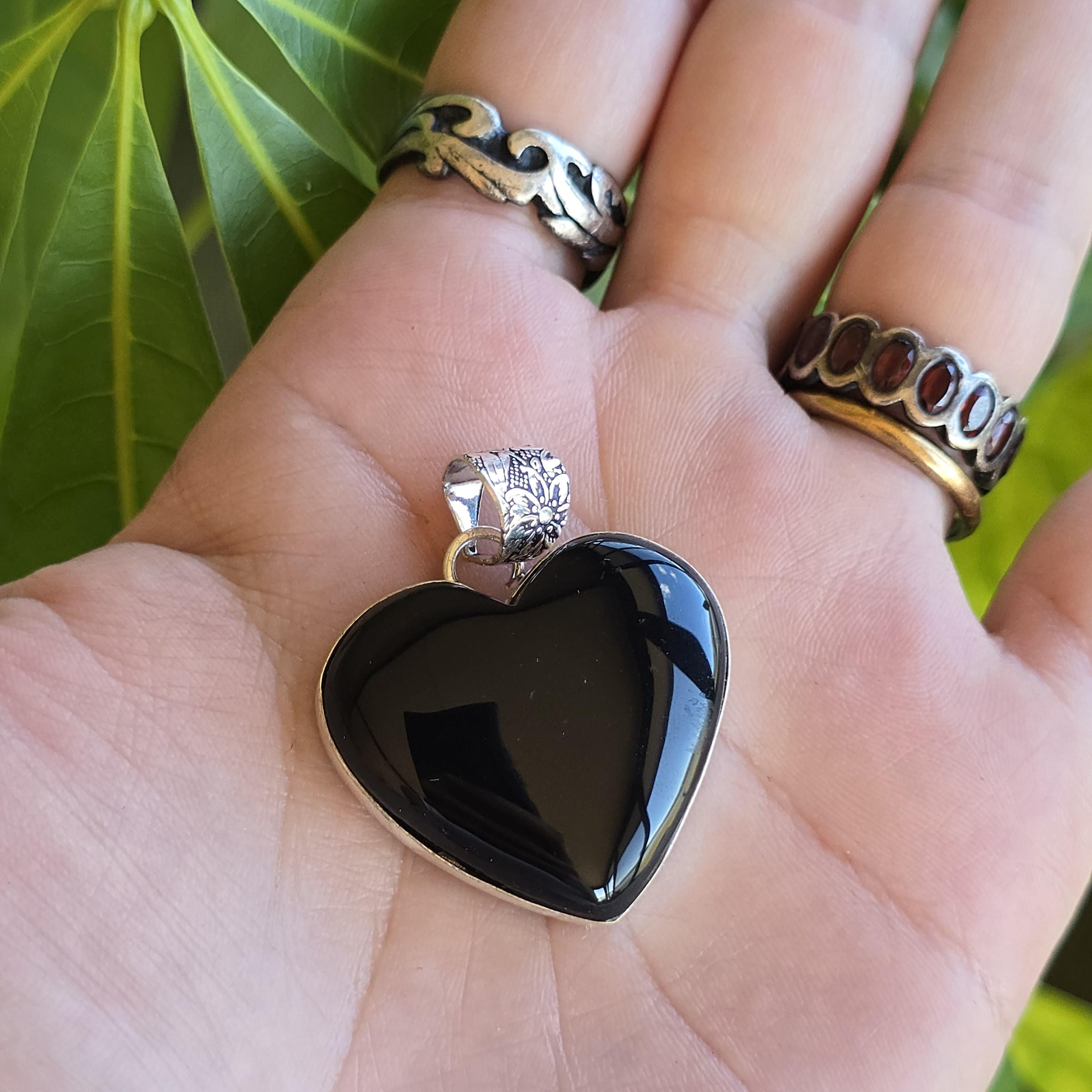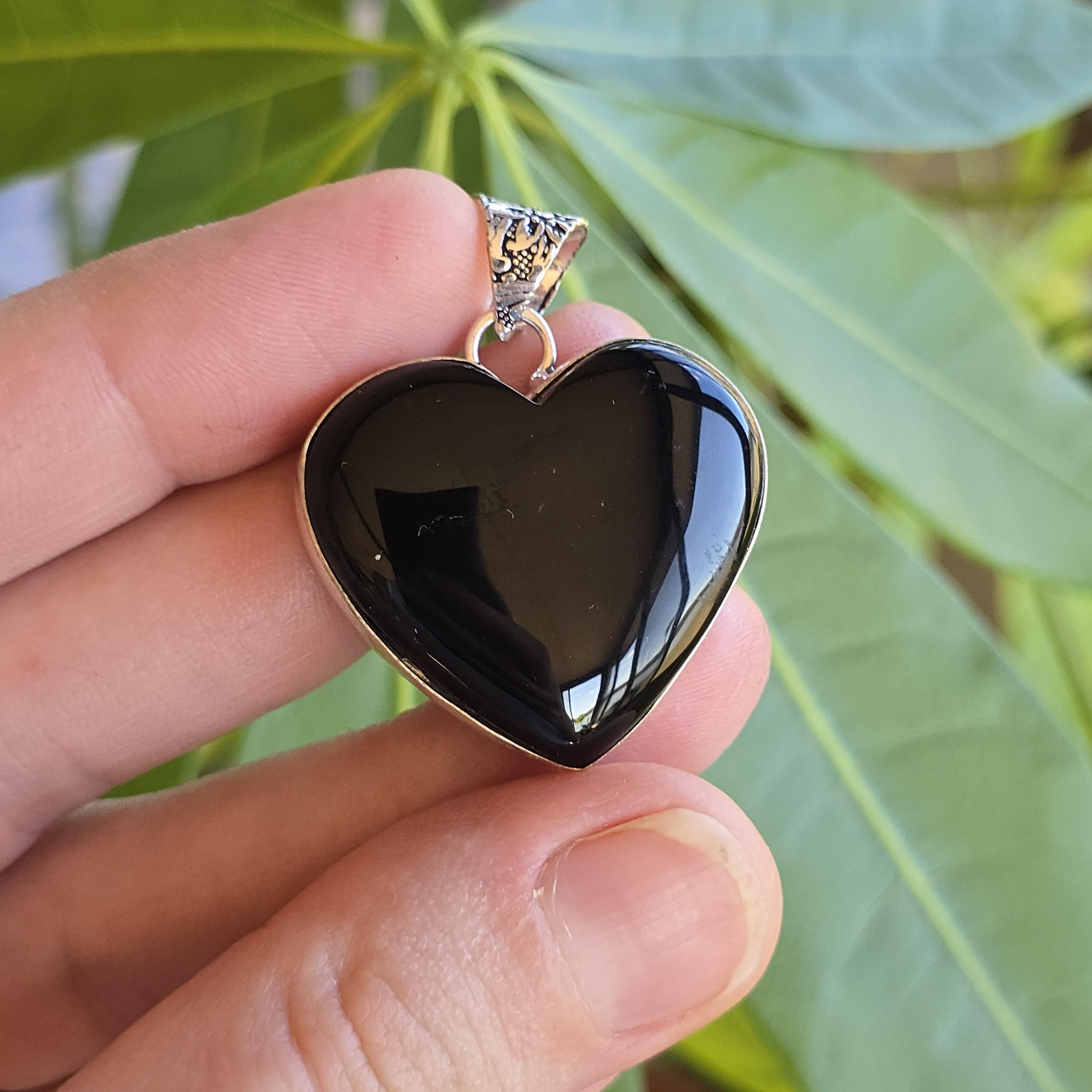 Black onyx is a natural black stone widely used in crystal practices for its strong protective and grounding properties. Many associate it with absorbing negative energy, promoting emotional strength, stability, self-control, and inner calm. This polished heart-shaped pendant offers a sleek, elegant look with a mirror-like shine, making it a versatile piece for everyday wear, layering, or as a meaningful accessory for protection and grounding. Each pendant uses genuine black onyx, so natural variations in polish, inclusions, and subtle veining may occur due to the authentic stone.