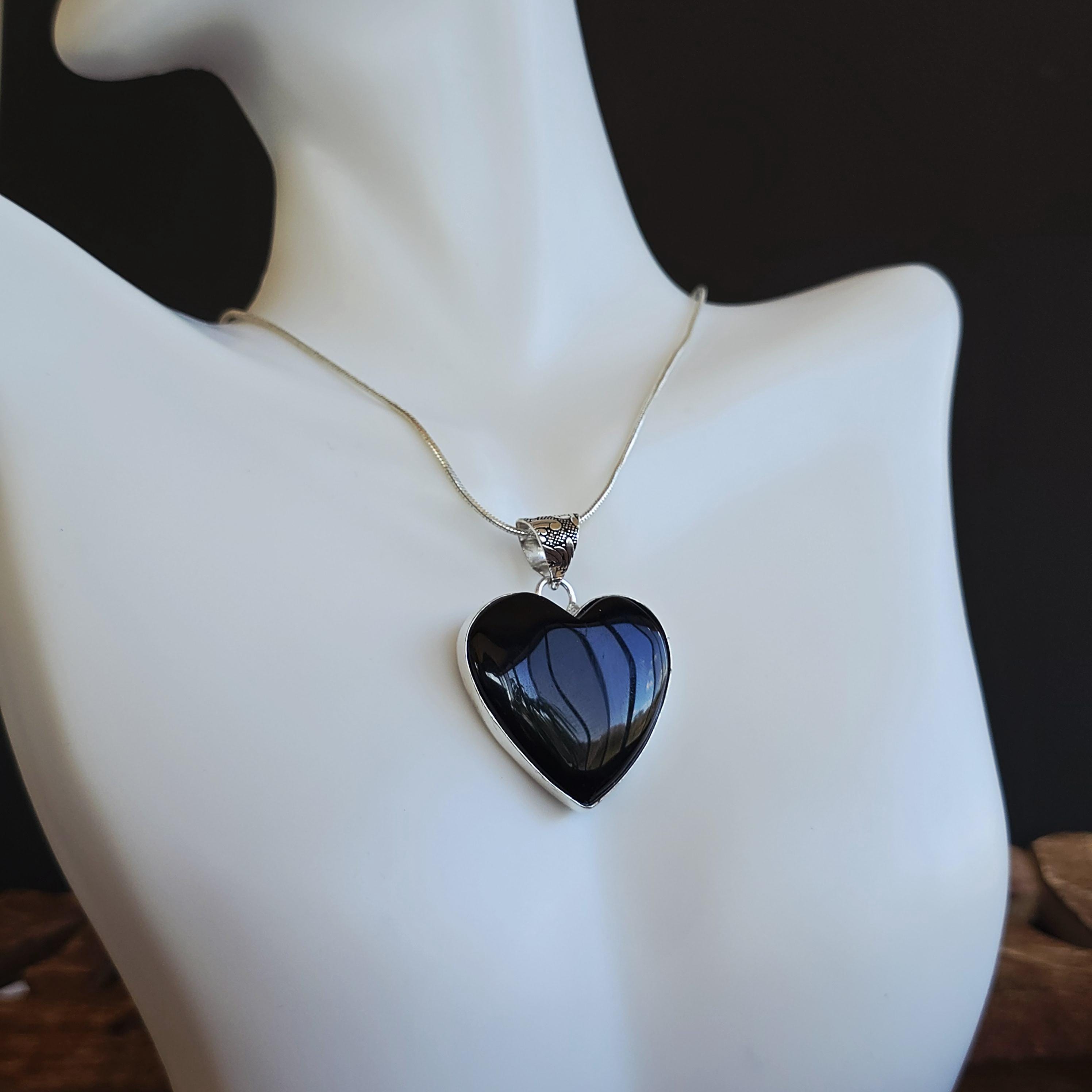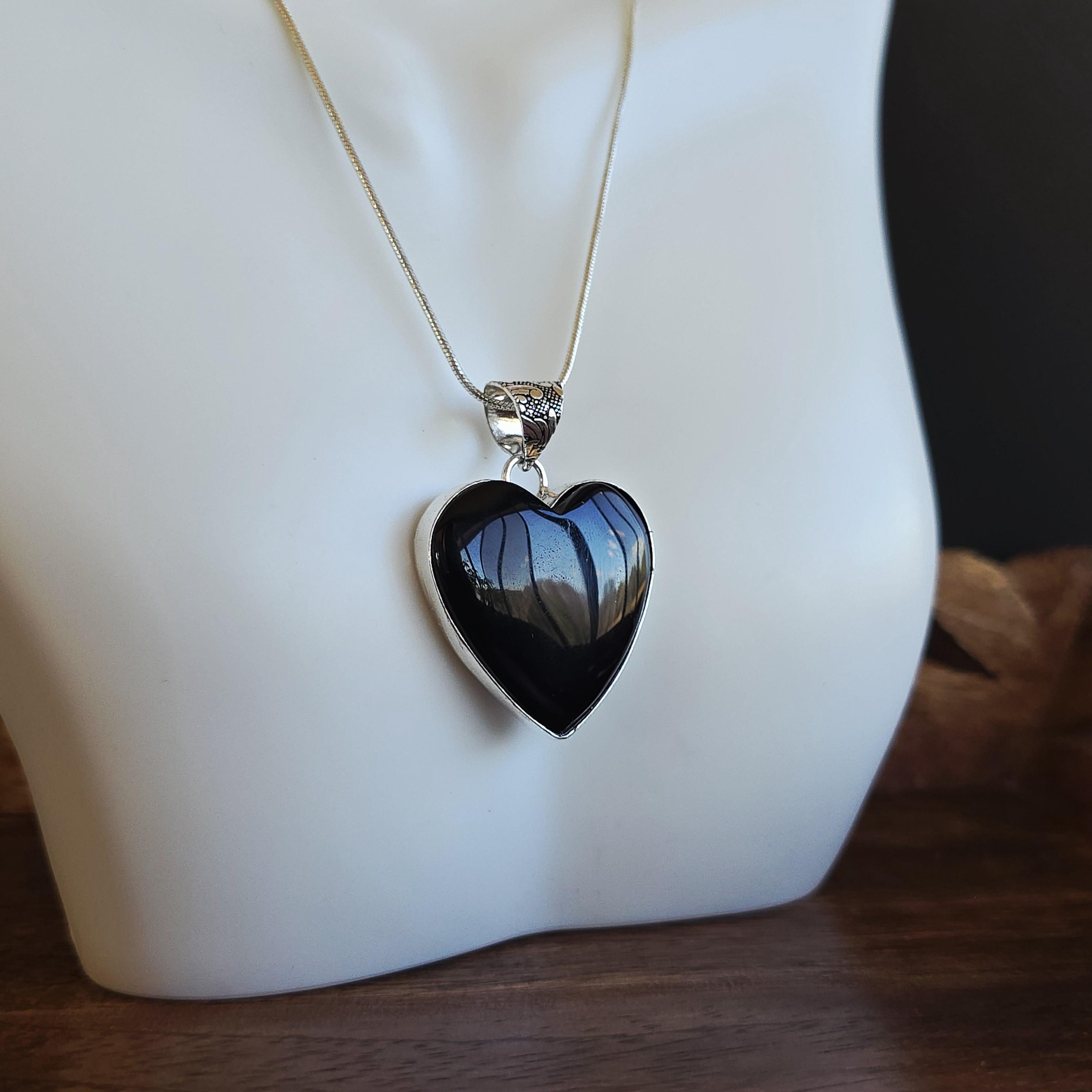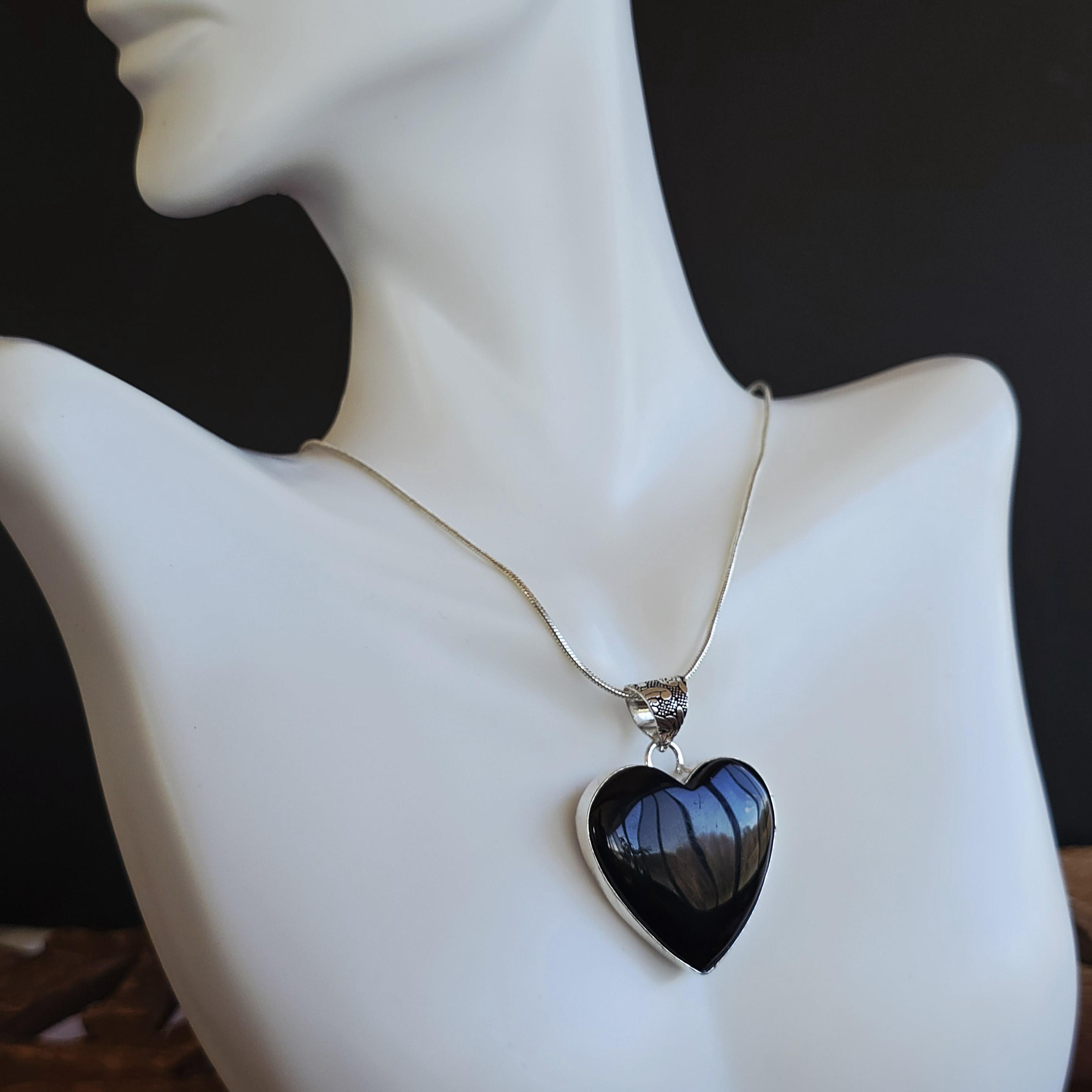 Black Onyx Necklace - Heart Shape Pendant Necklace