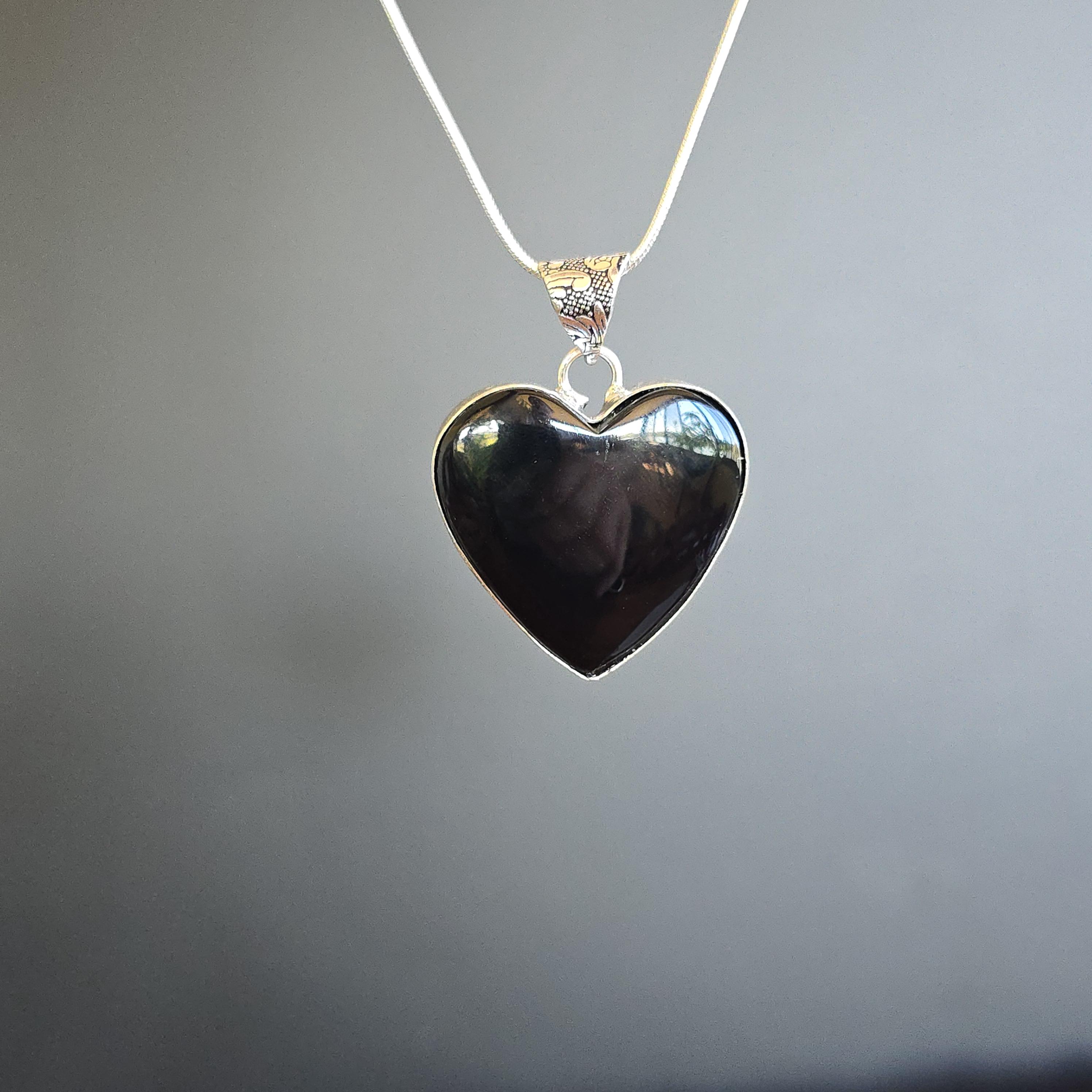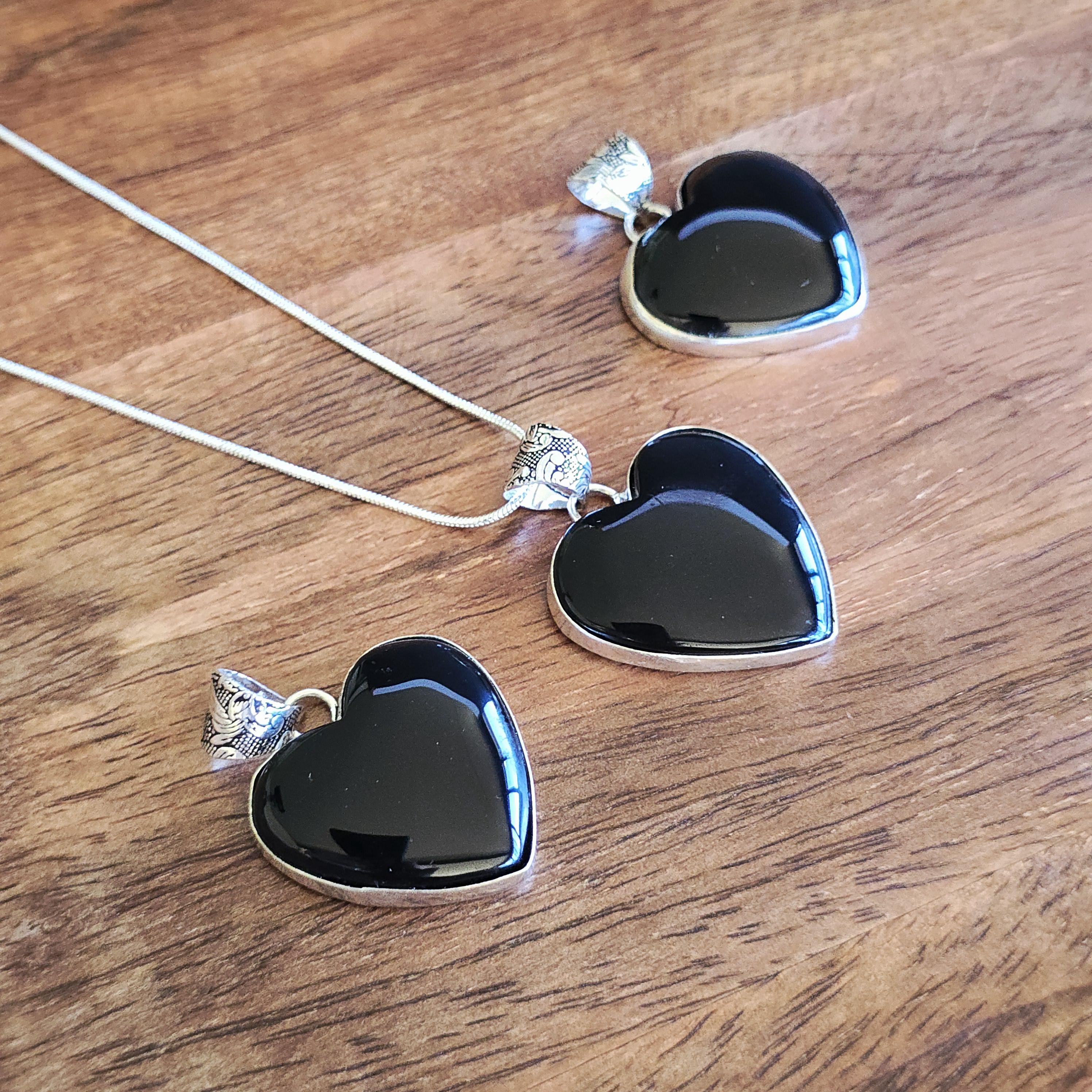 You will receive 1 (ONE) Black onyx heart pendant necklace, complete with an 18-inch snake chain