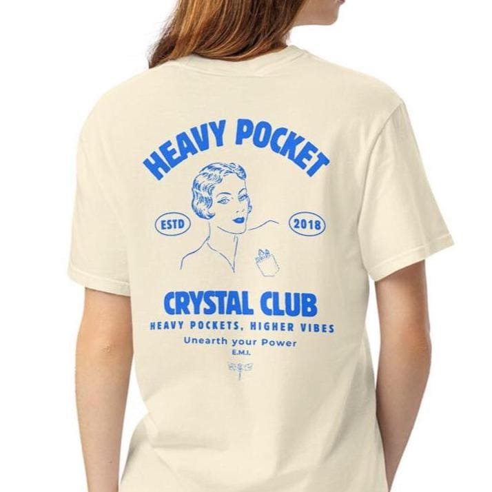 Whether you're out collecting crystals, at a market, or just living your best life, this tee is a lighthearted reminder that heavy pockets = heavy good vibes.