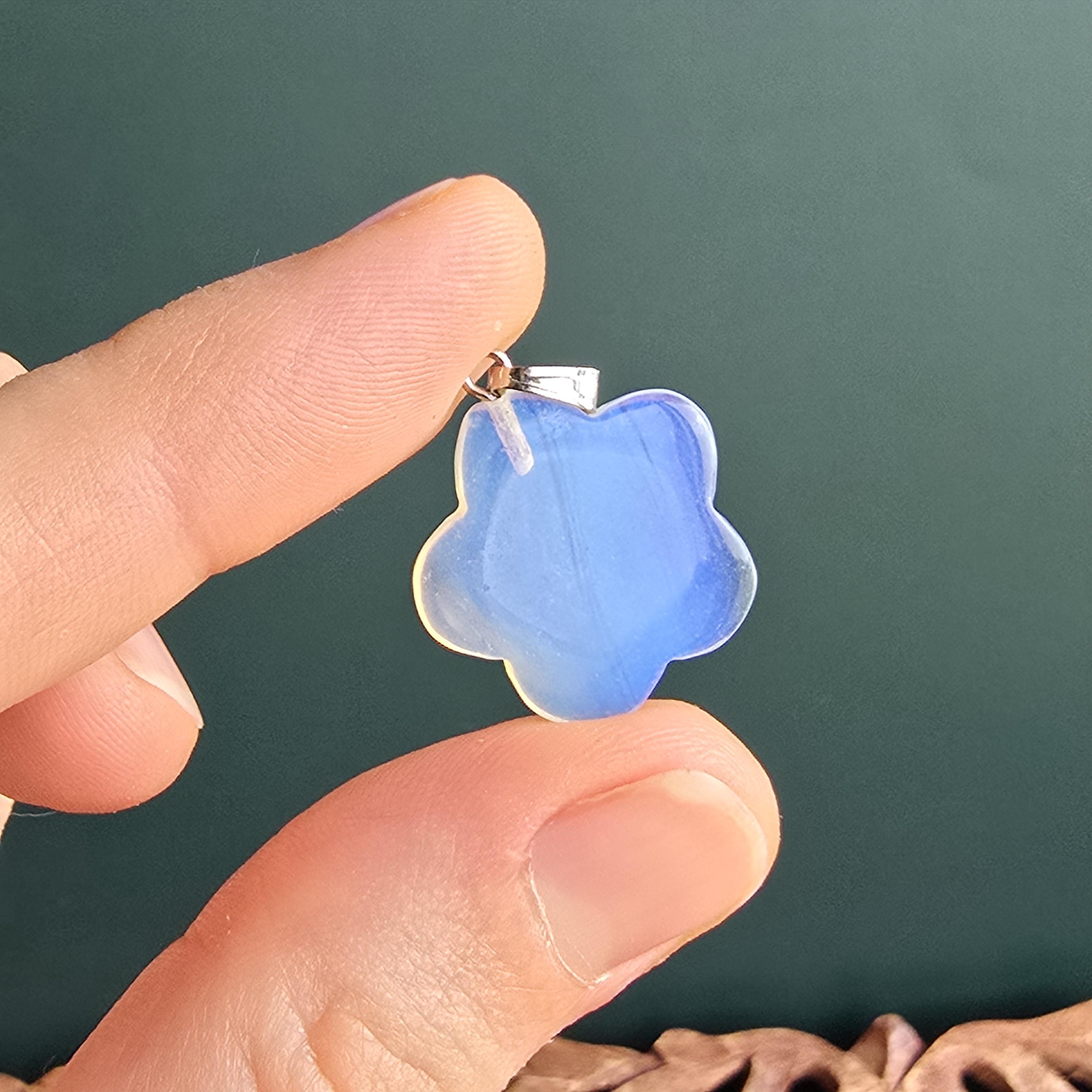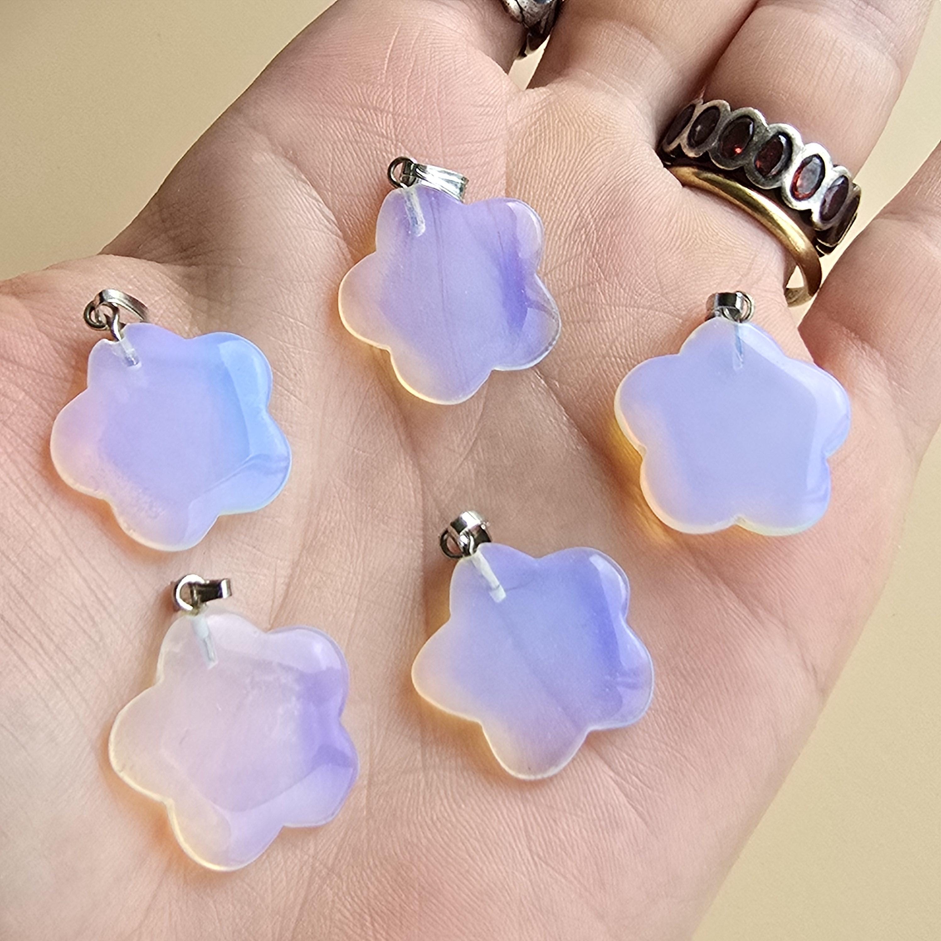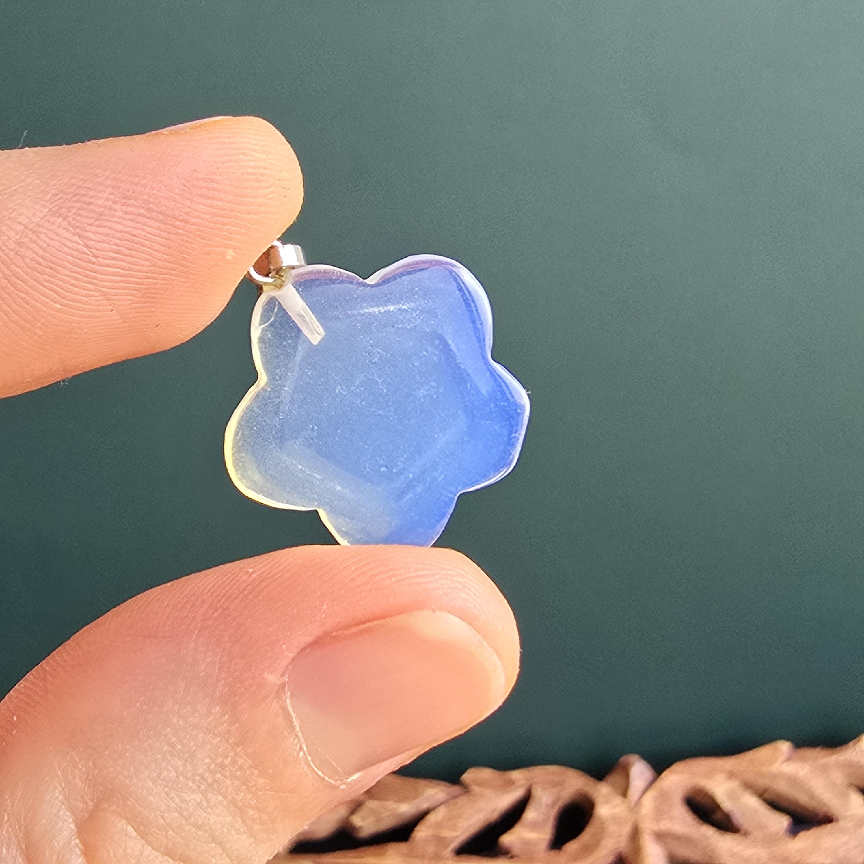 Opalite is a man-made variety of glass. It is said to promote a sense of calmness, peace, and serenity, enhancing feelings of relaxation and emotional balance. Opalite is also believed to enhance communication skills and increase personal power, helping to improve self-esteem and confidence. It is said to stimulate the crown chakra, promoting spiritual awareness and enhancing intuition and psychic abilities.