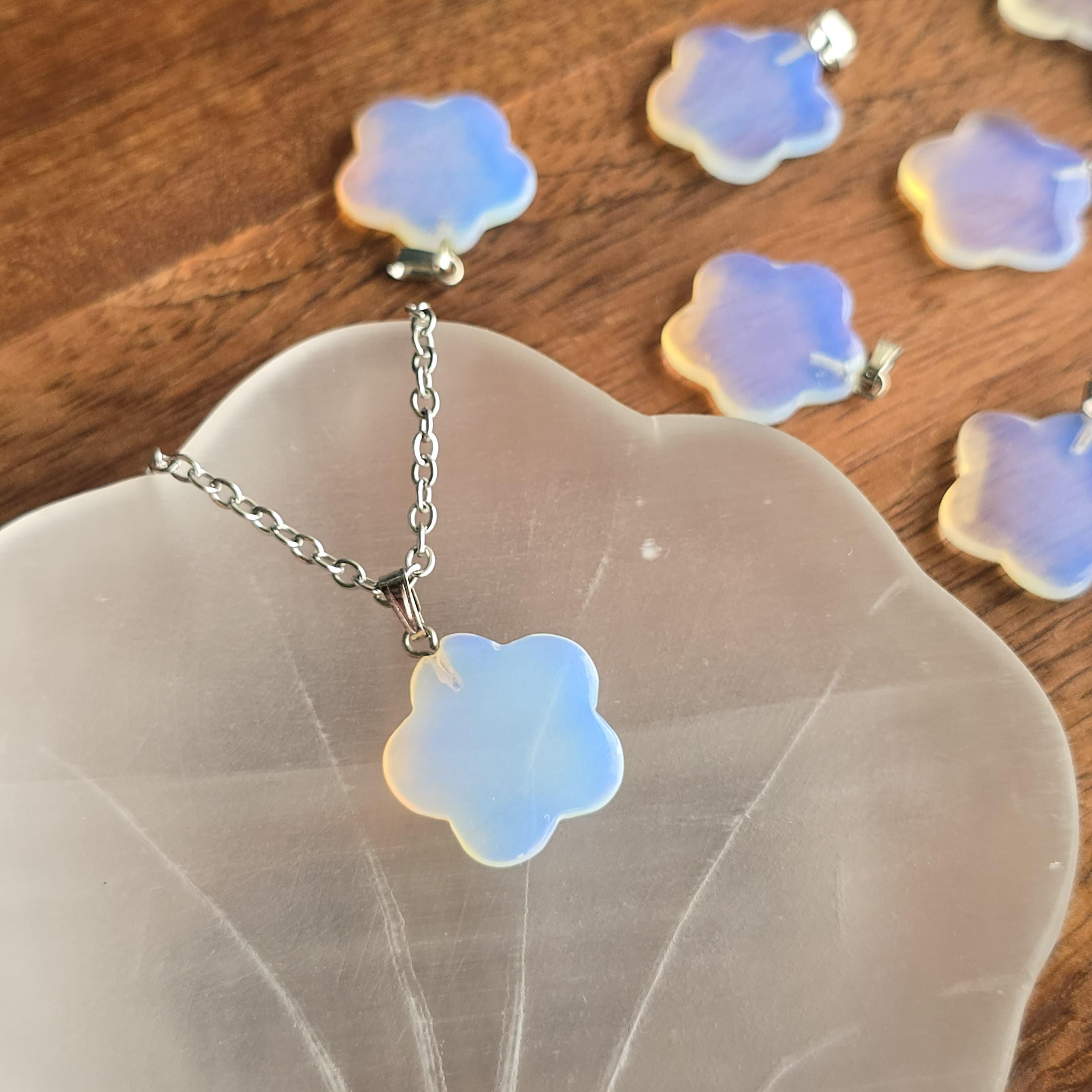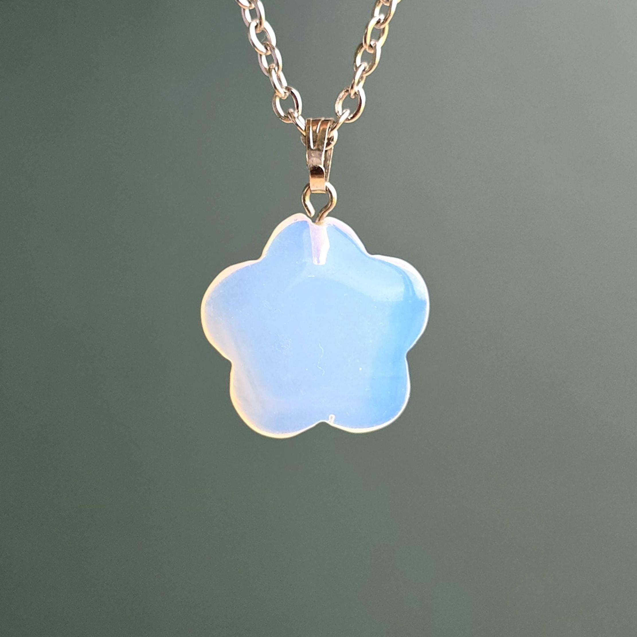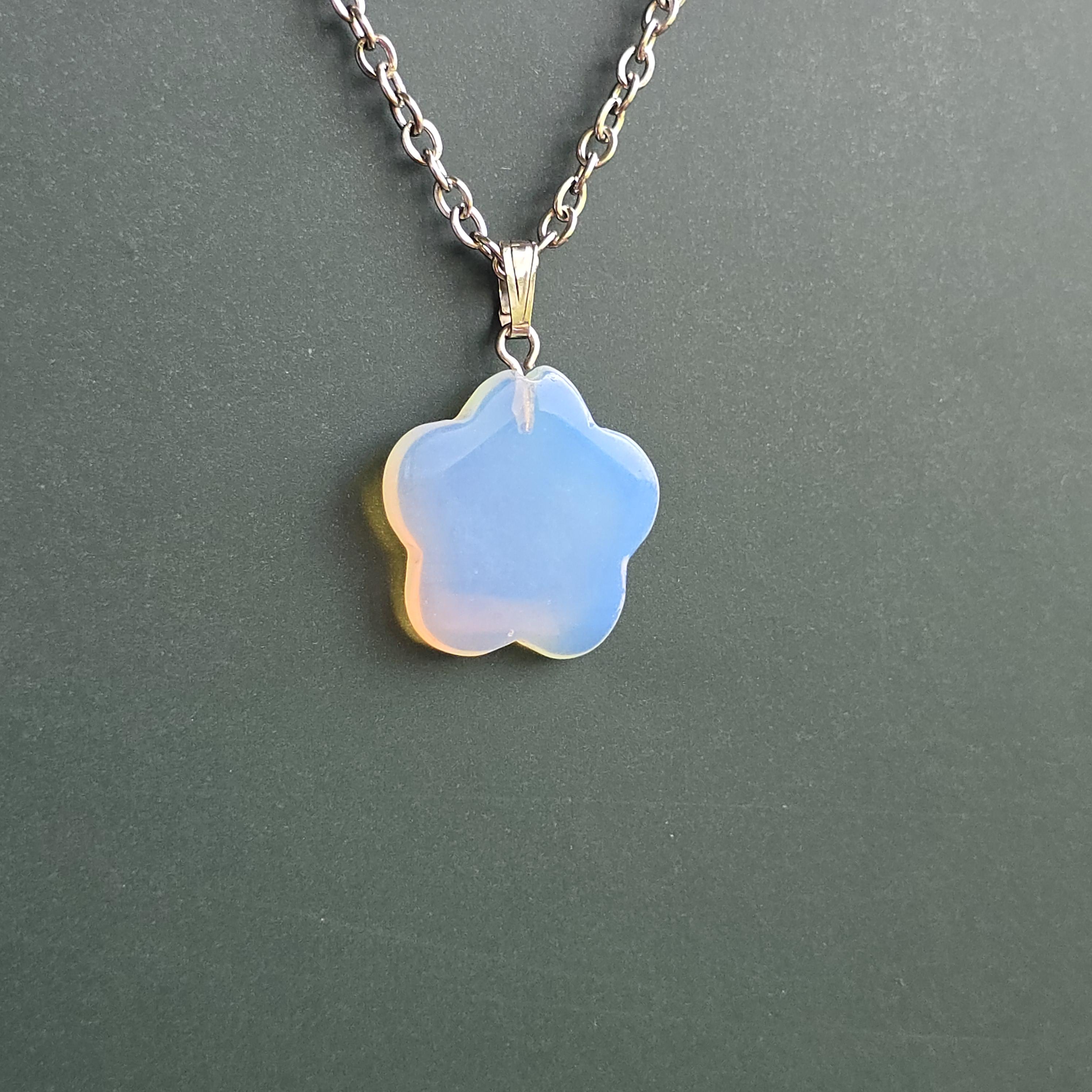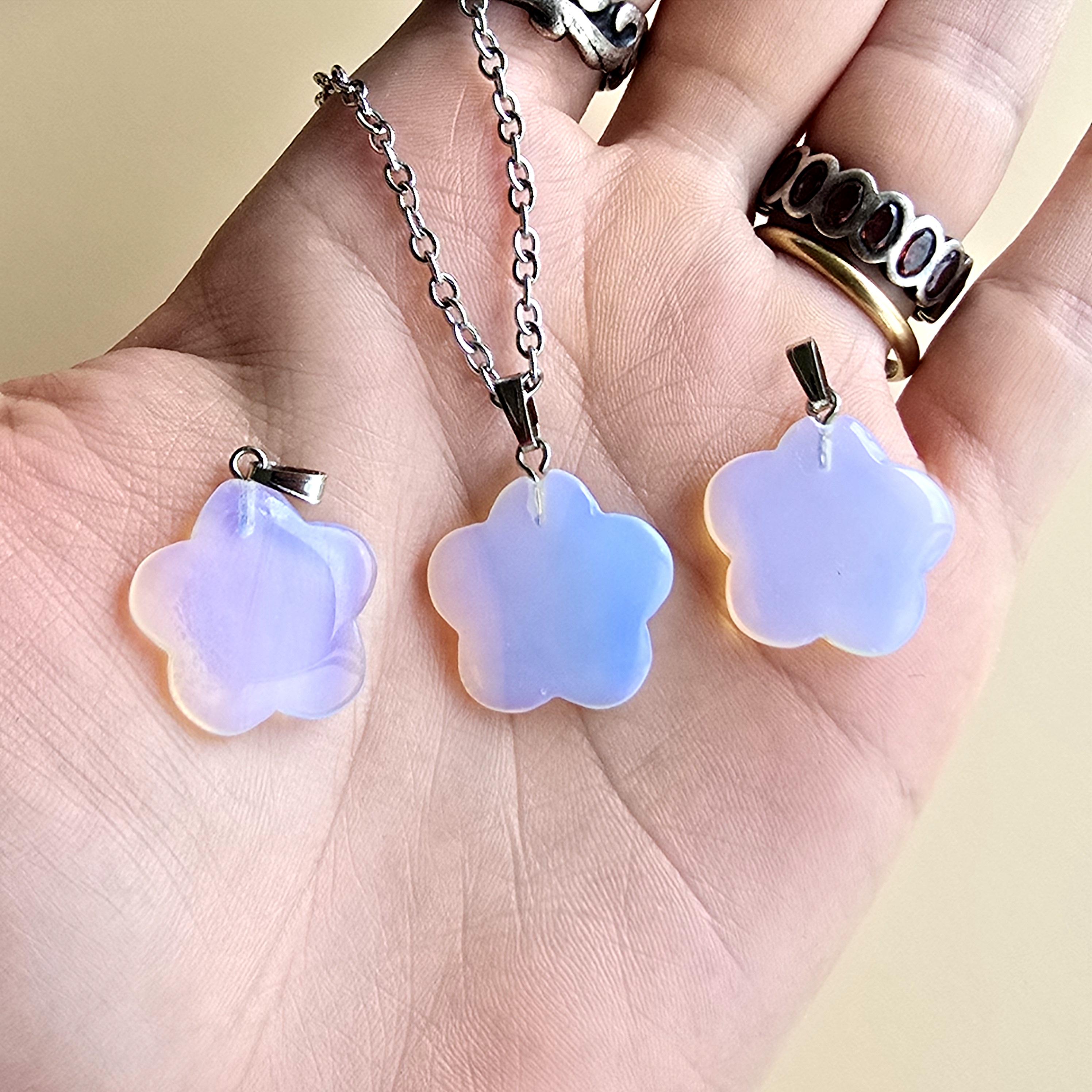 Opalite is a man-made variety of glass. It is said to promote a sense of calmness, peace, and serenity, enhancing feelings of relaxation and emotional balance. Opalite is also believed to enhance communication skills and increase personal power, helping to improve self-esteem and confidence. It is said to stimulate the crown chakra, promoting spiritual awareness and enhancing intuition and psychic abilities.