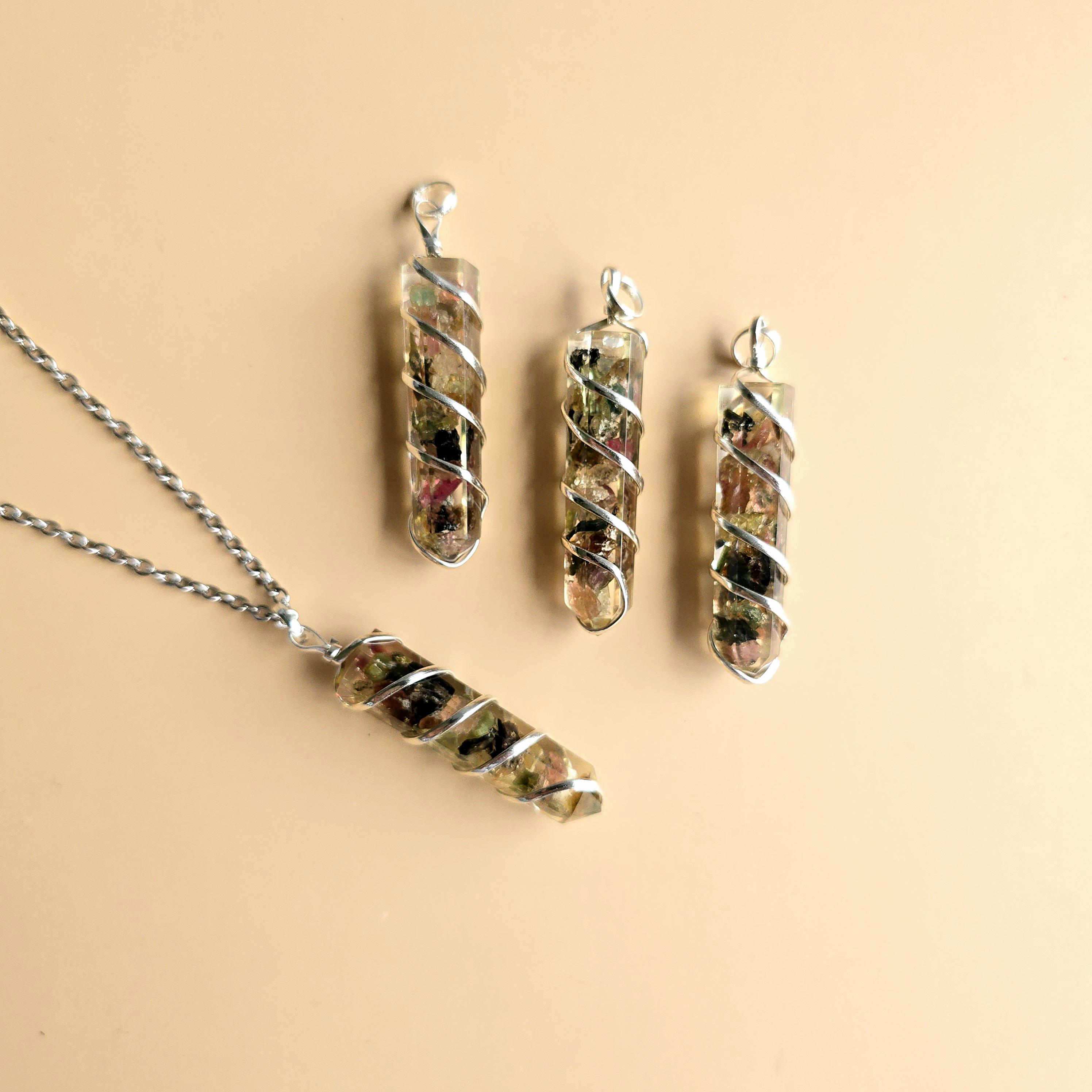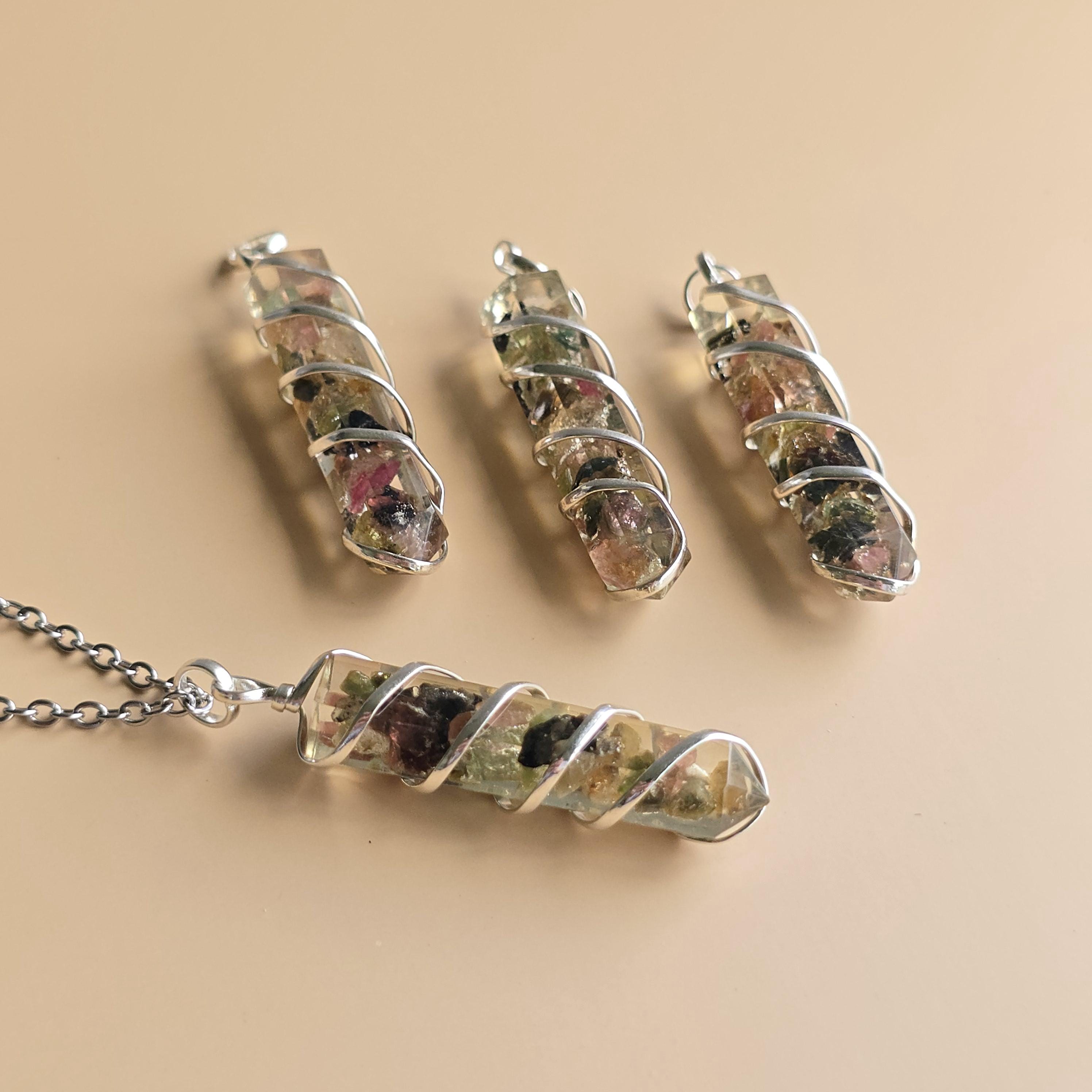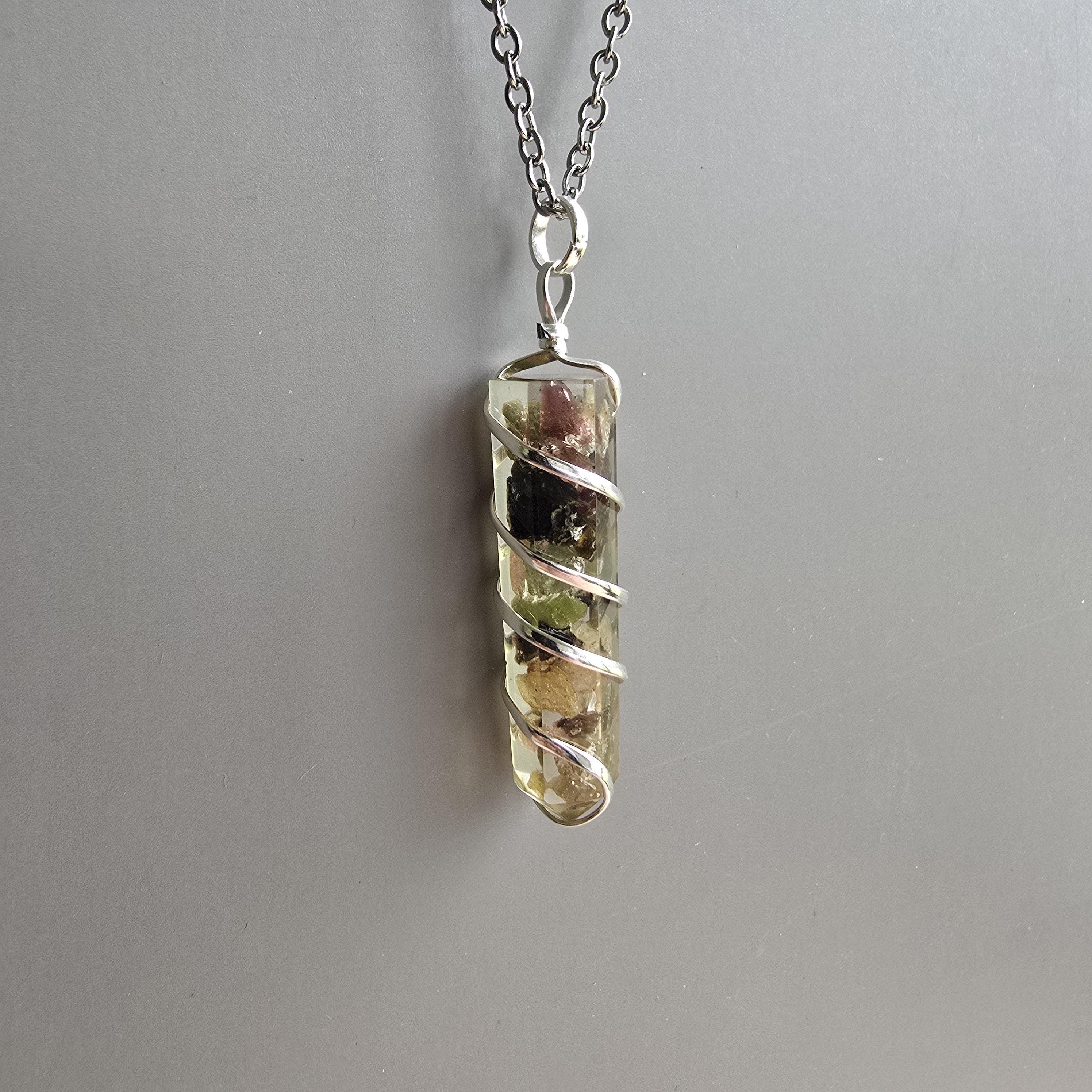 Multi Colored Tourmaline in Orgonite Pendant Necklace