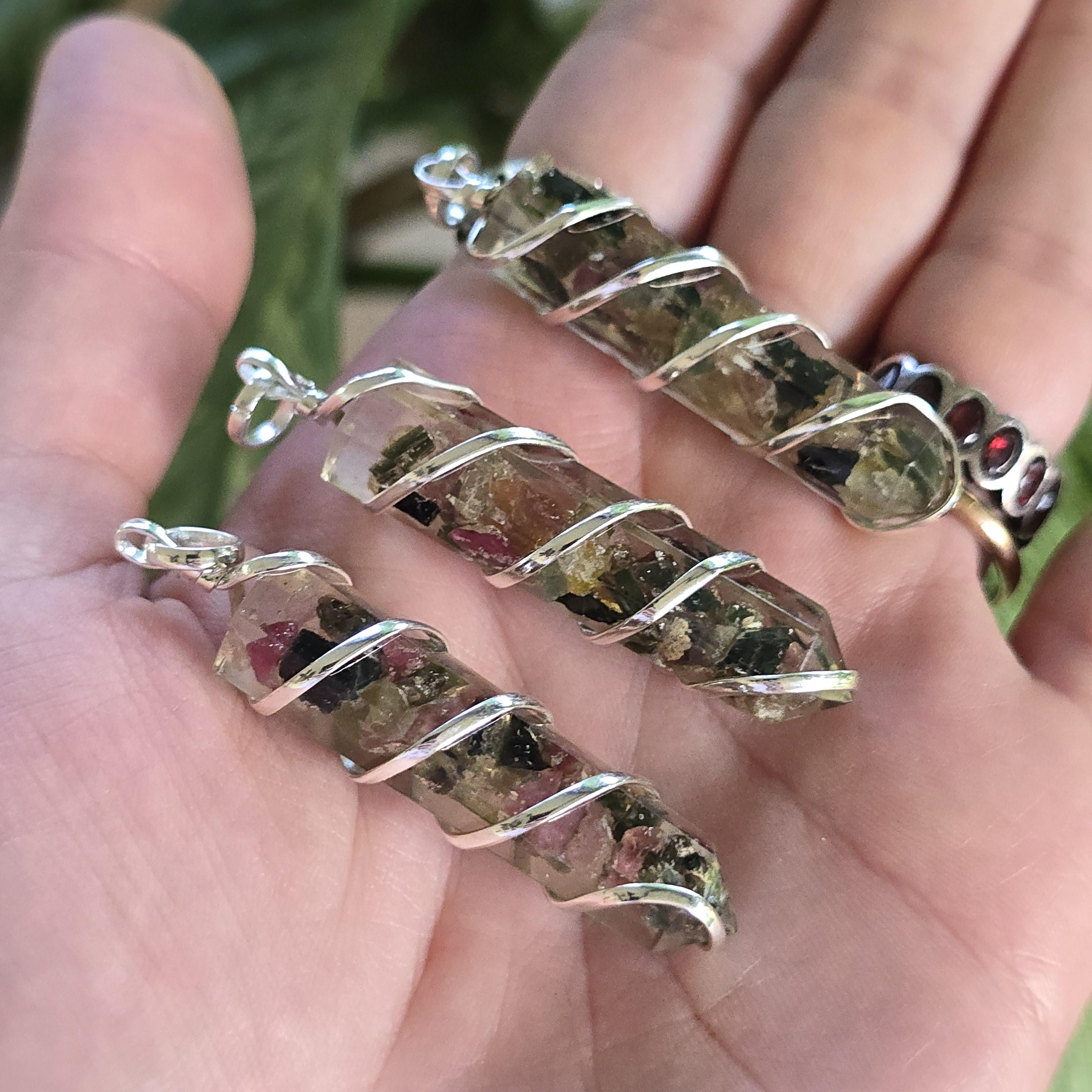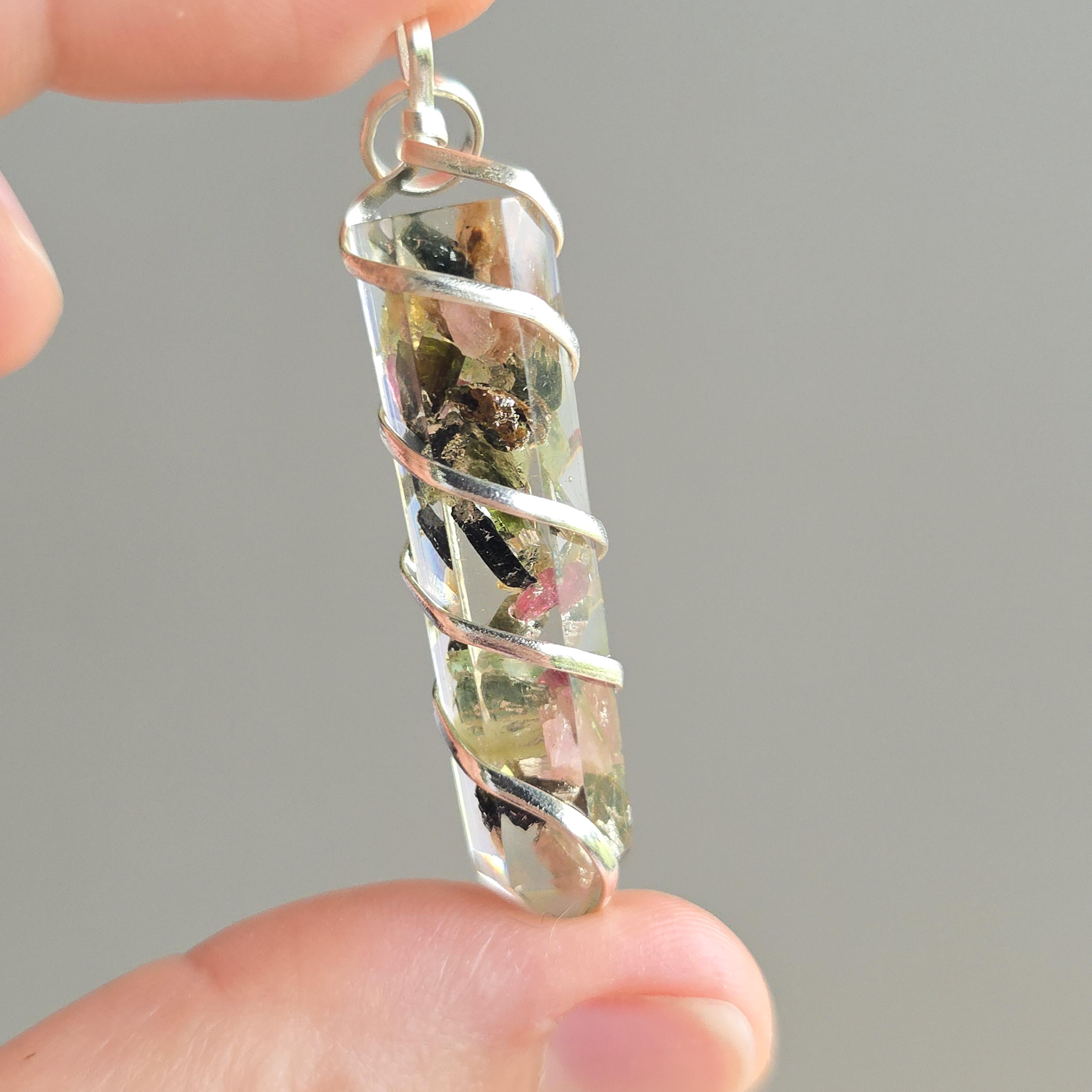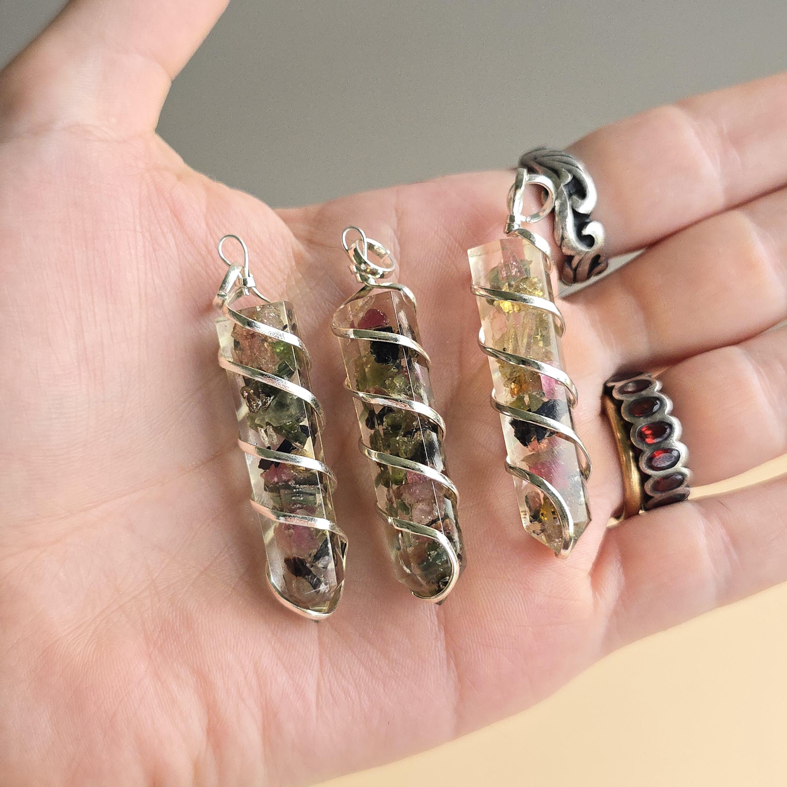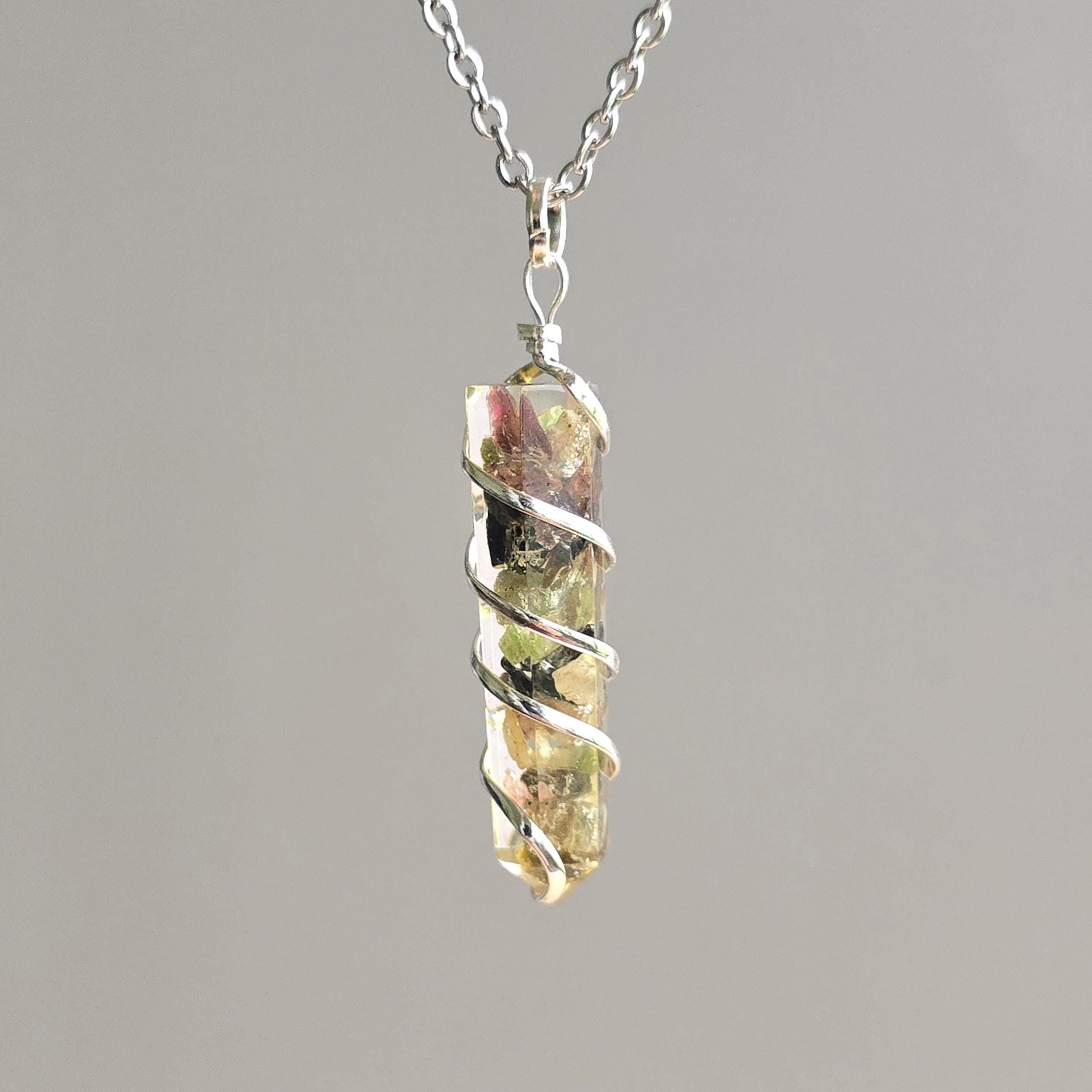 Multi Colored Tourmaline in Orgonite Pendant Necklace