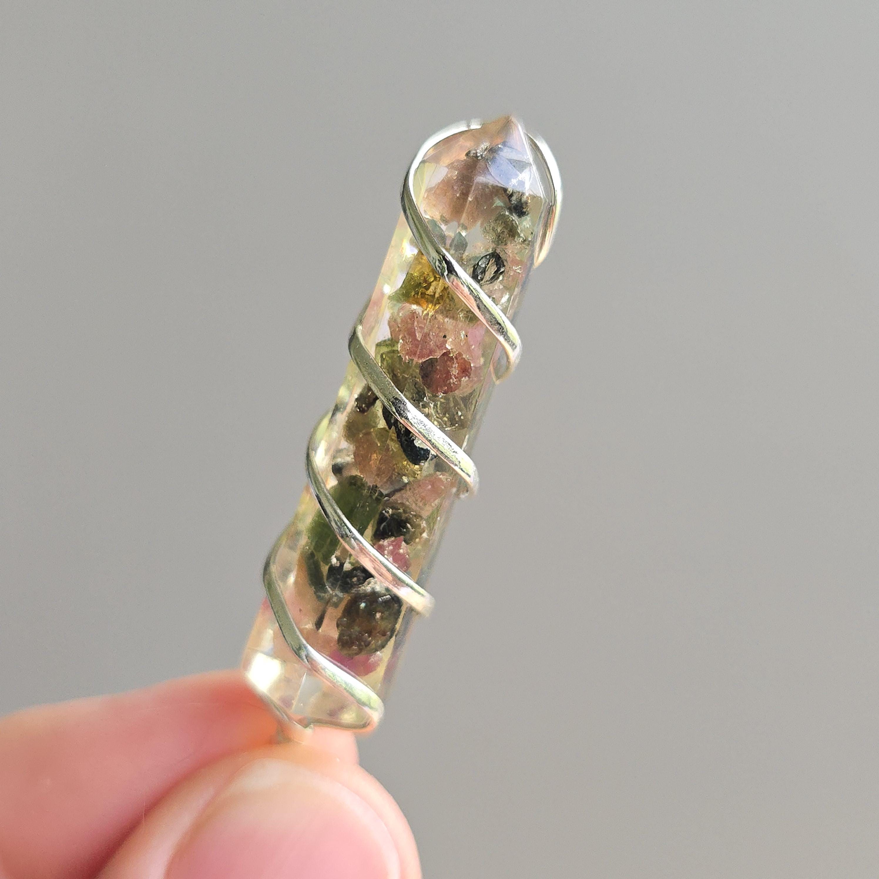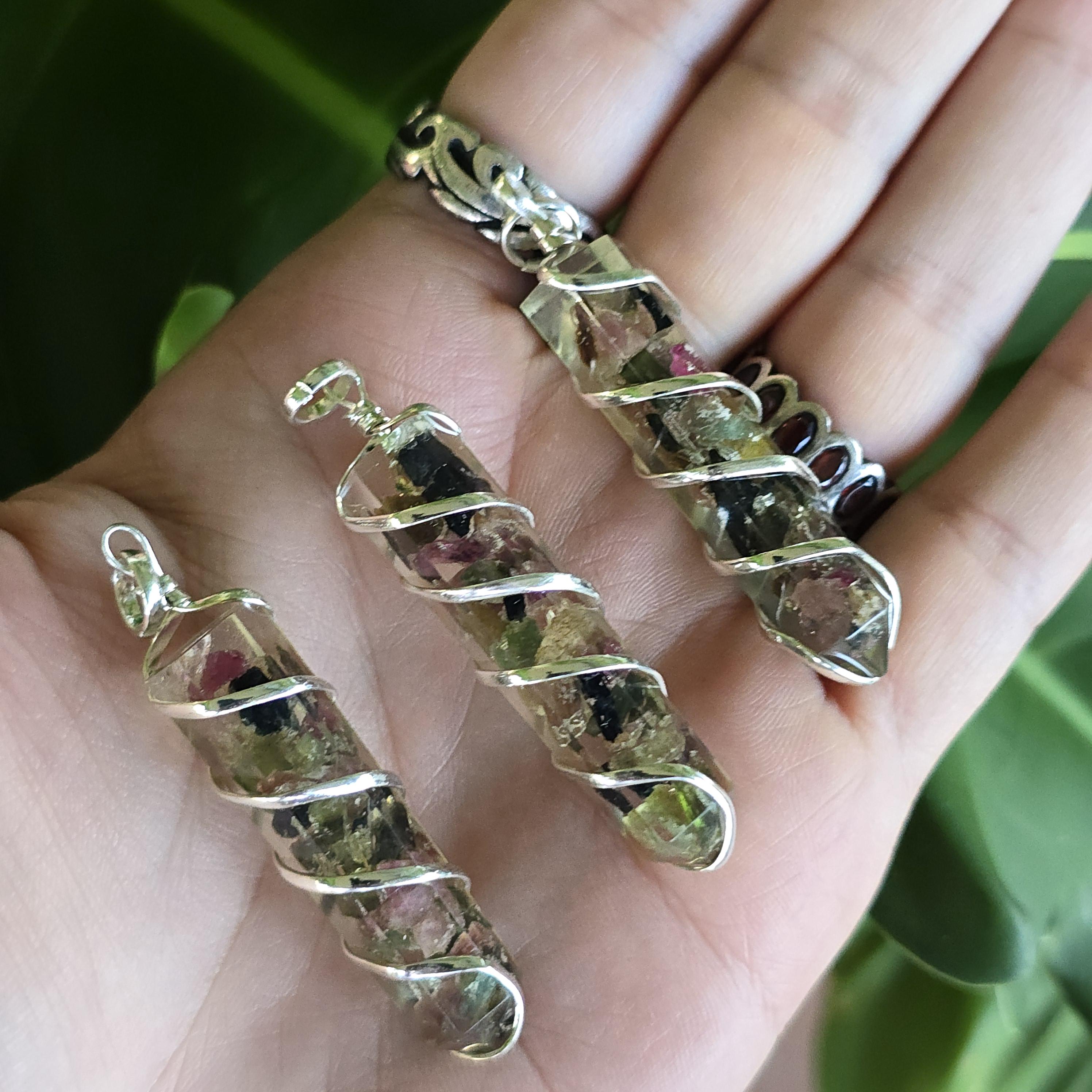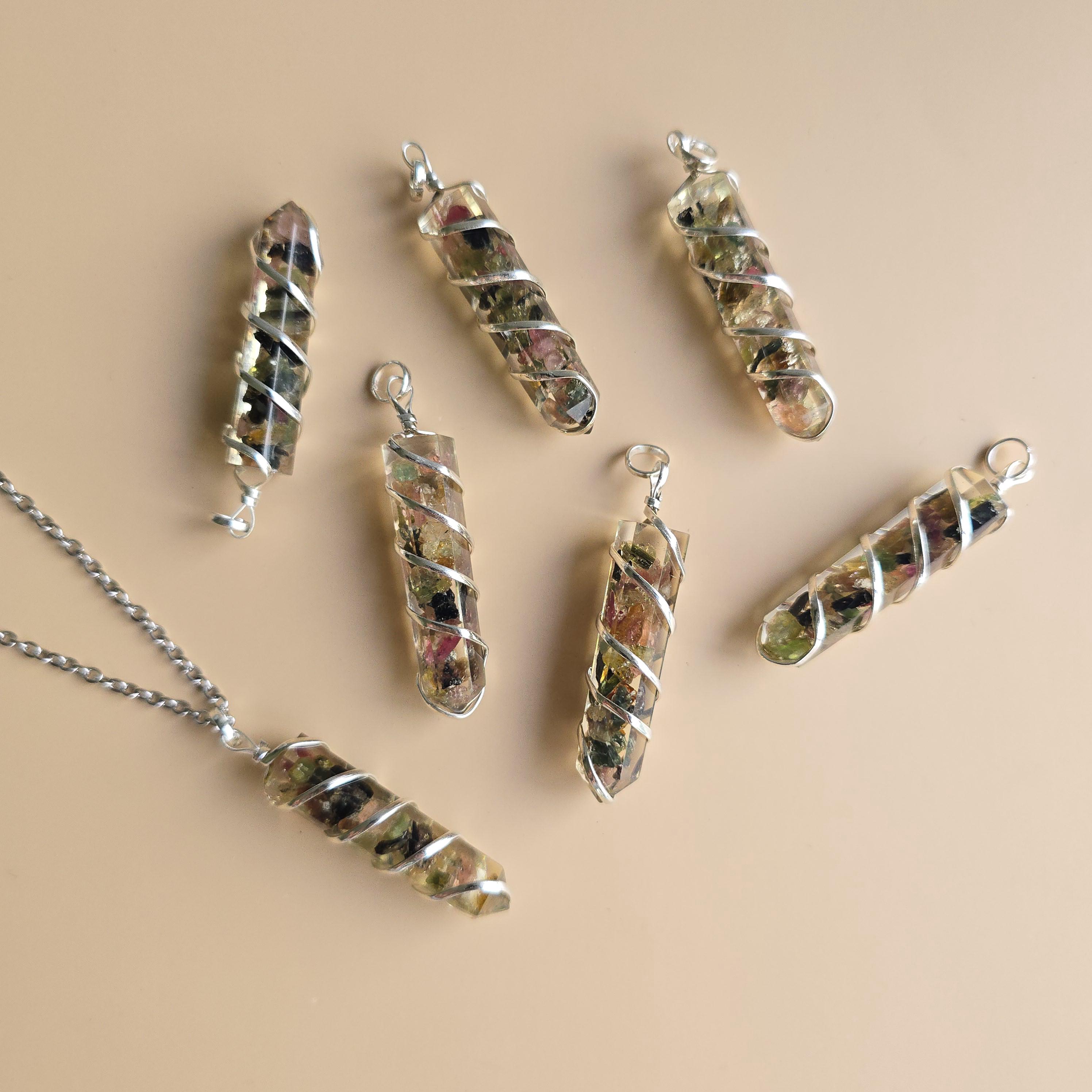 Each Handmade Pendant contains Watermelon Tourmaline Chips carefully placed inside Orgonite Resin.