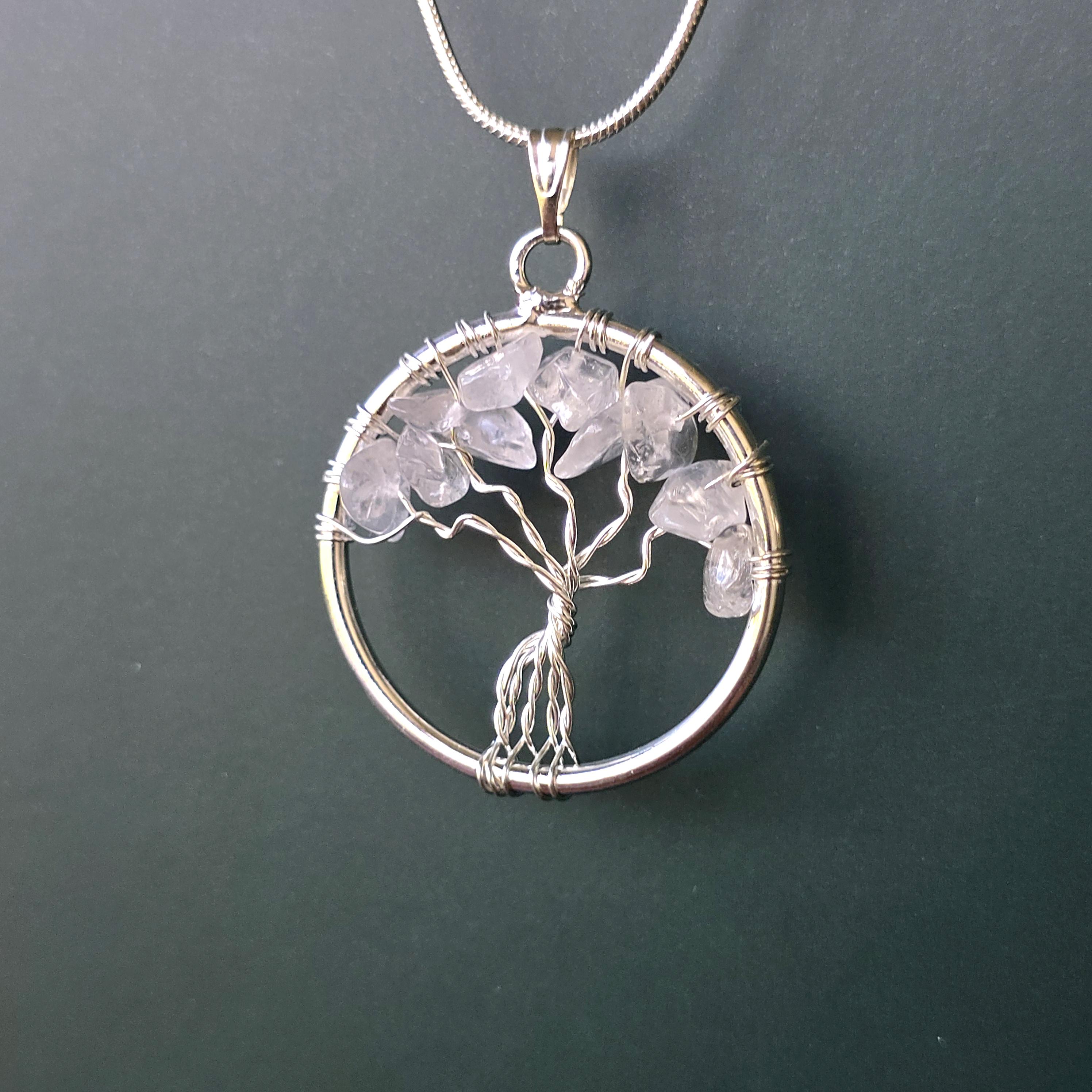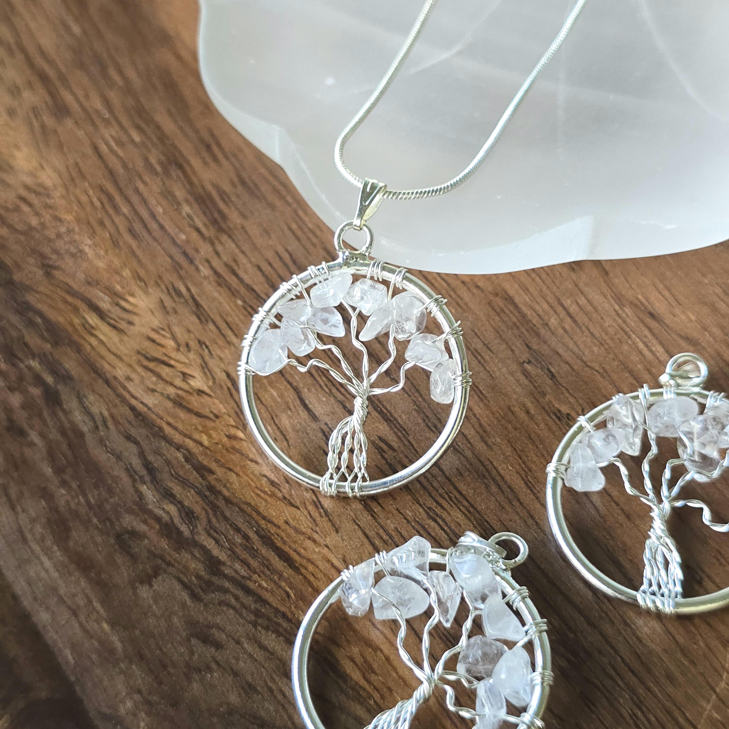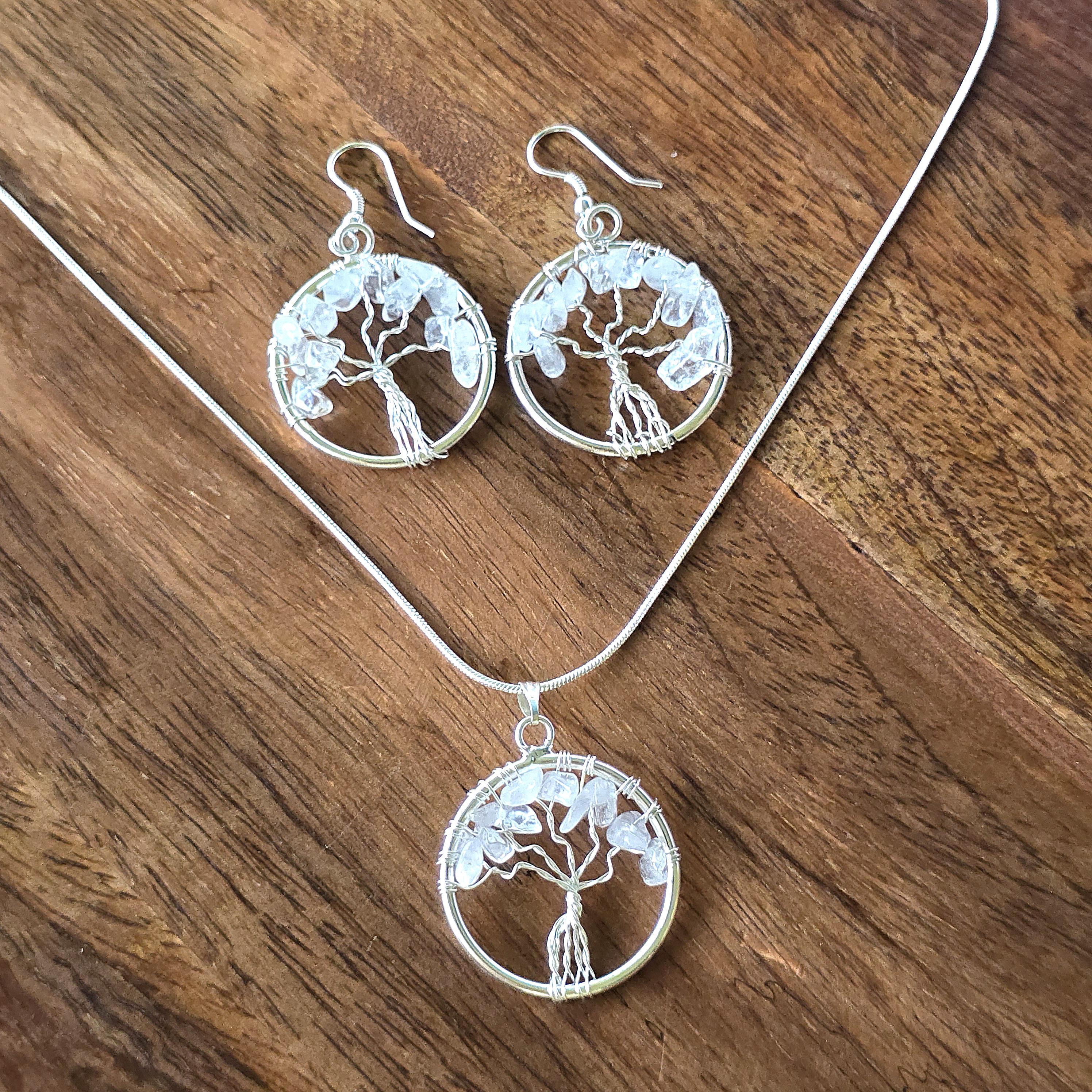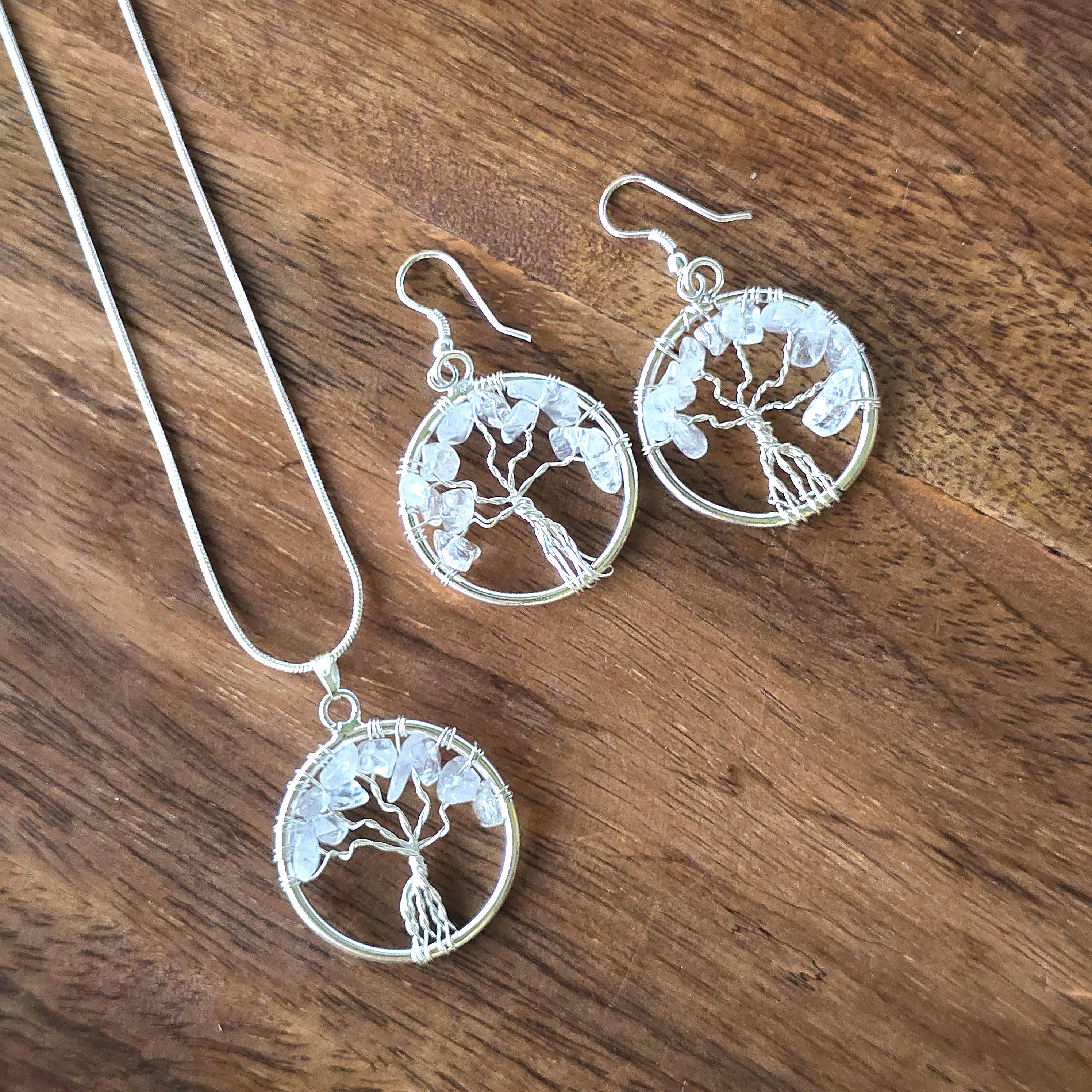 You can also add the matching Clear Quartz Tree of Life Pendant Necklace (18" chain included) for an additional charge. Select from the drop-down menu. Each pair uses natural clear quartz, so inclusions, clarity, and variations occur due to the authentic stone.
