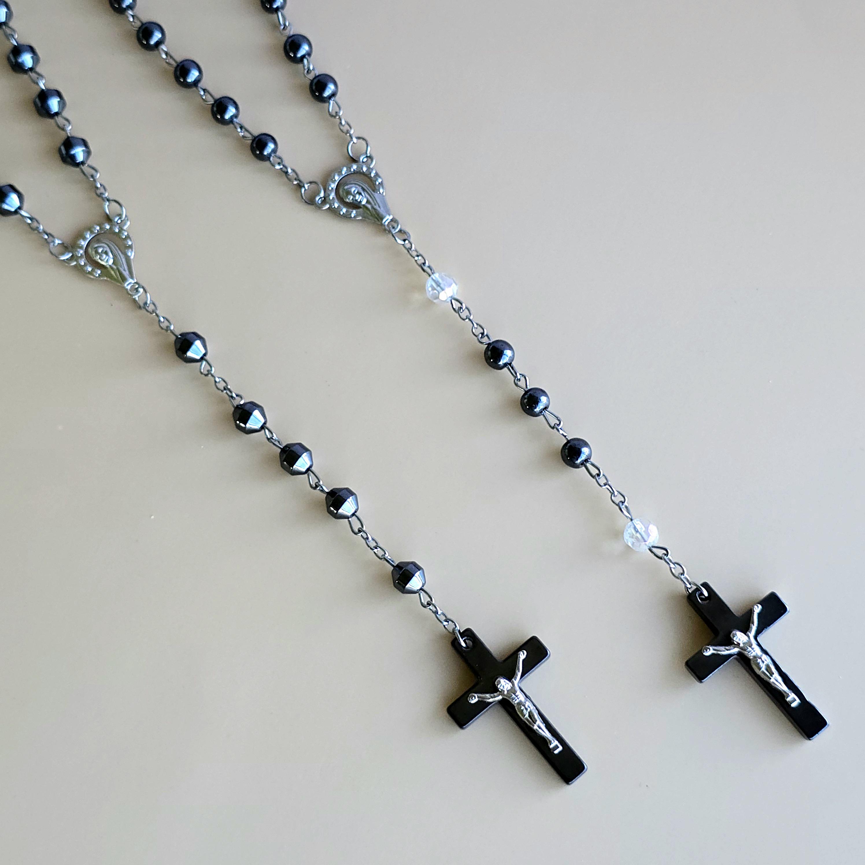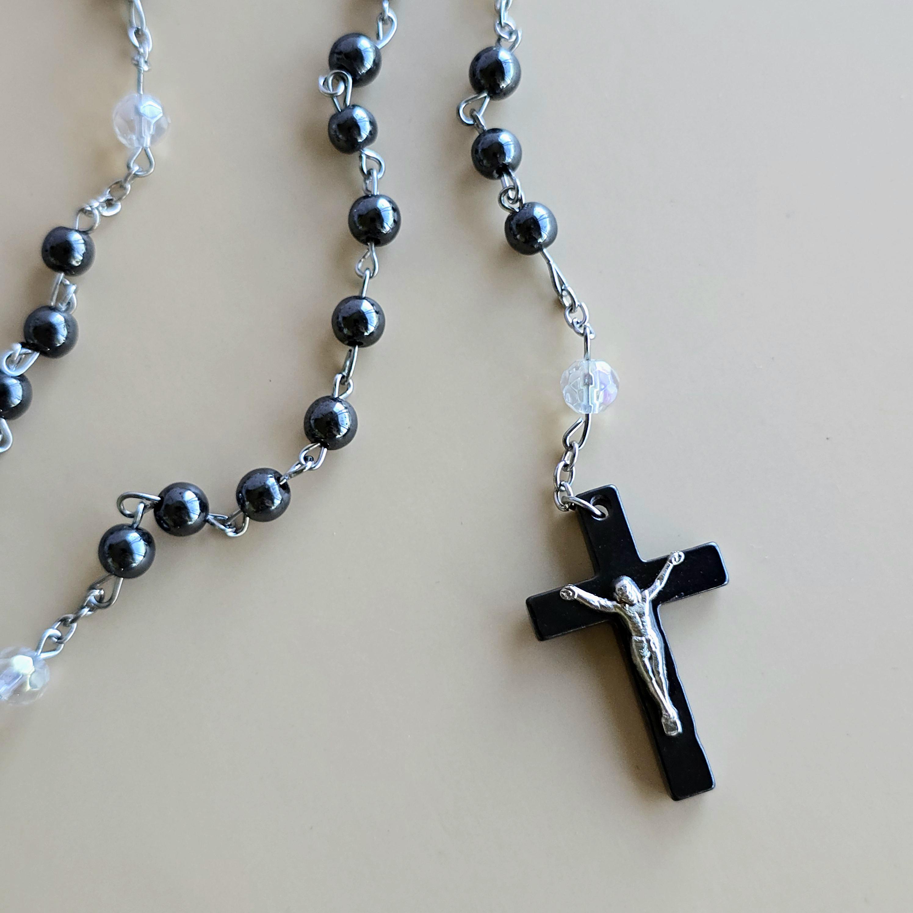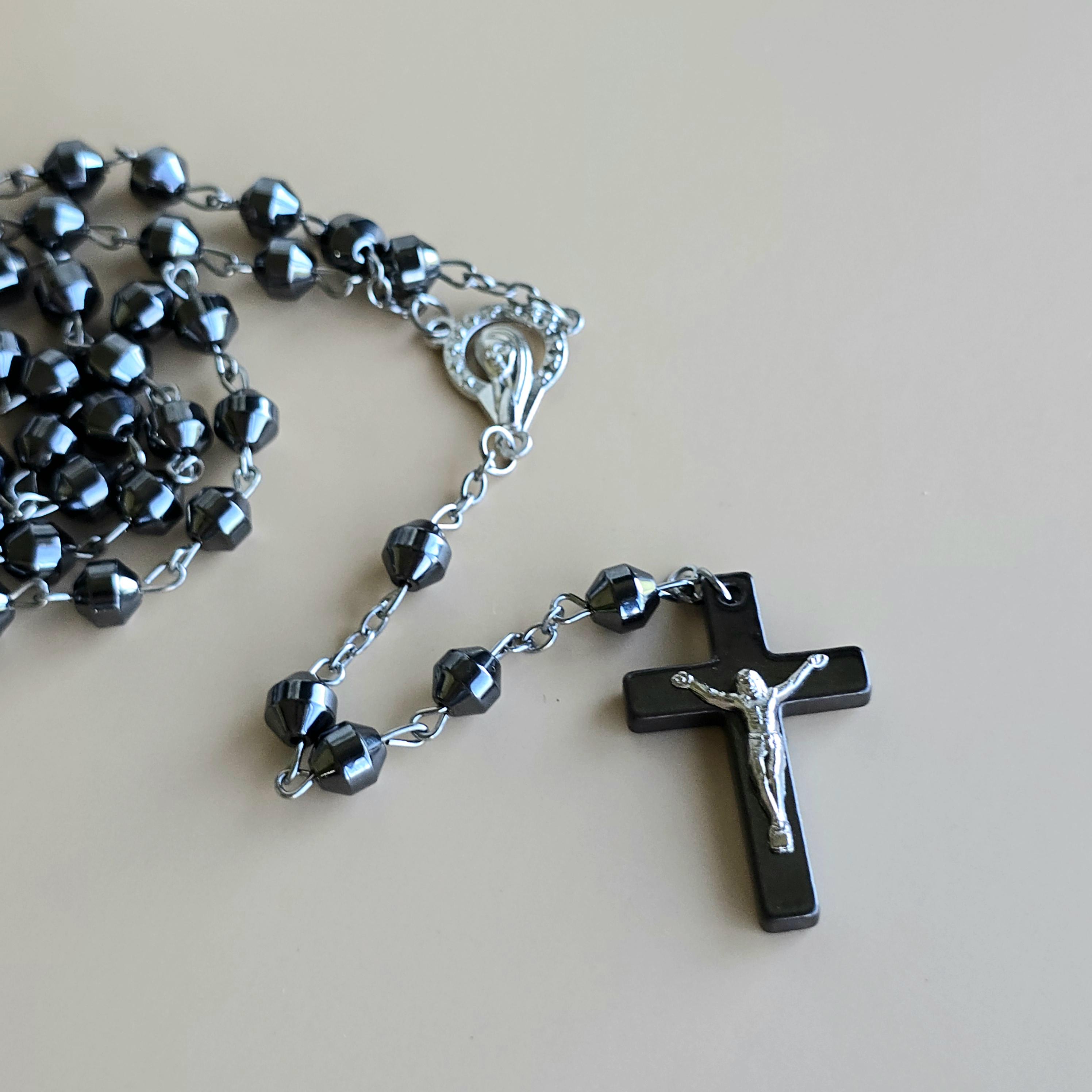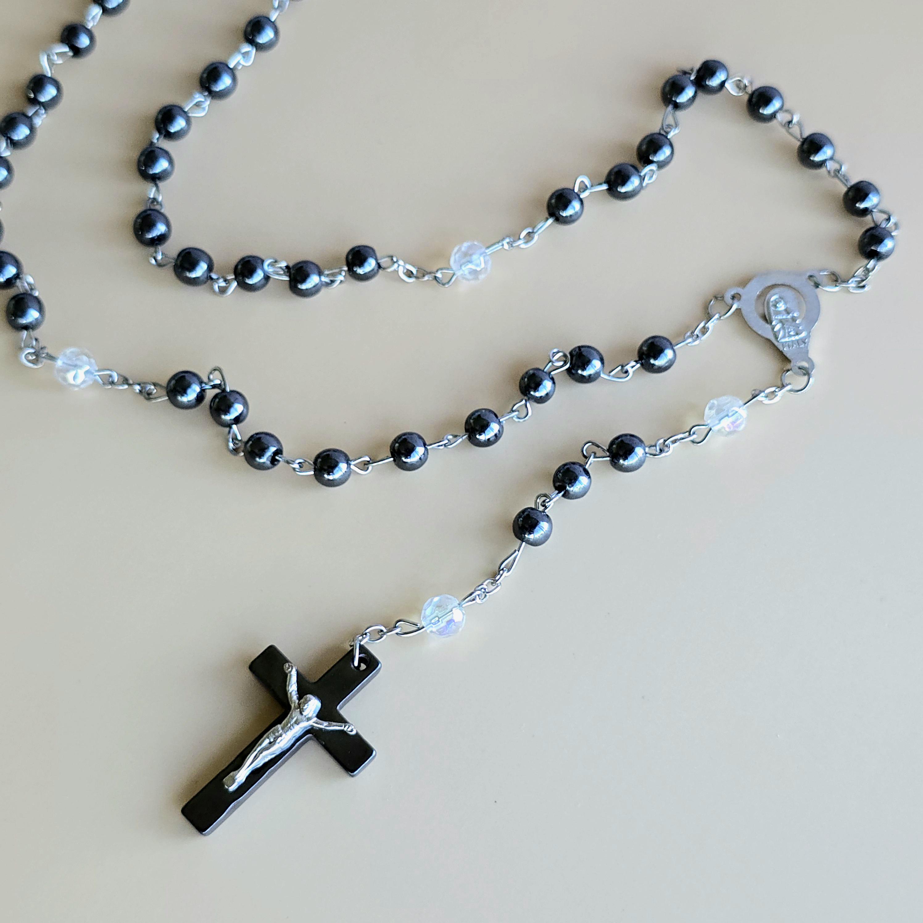 You will receive 1 (ONE) Hematite Rosary Crucifix Necklace (similar to the item pictured).