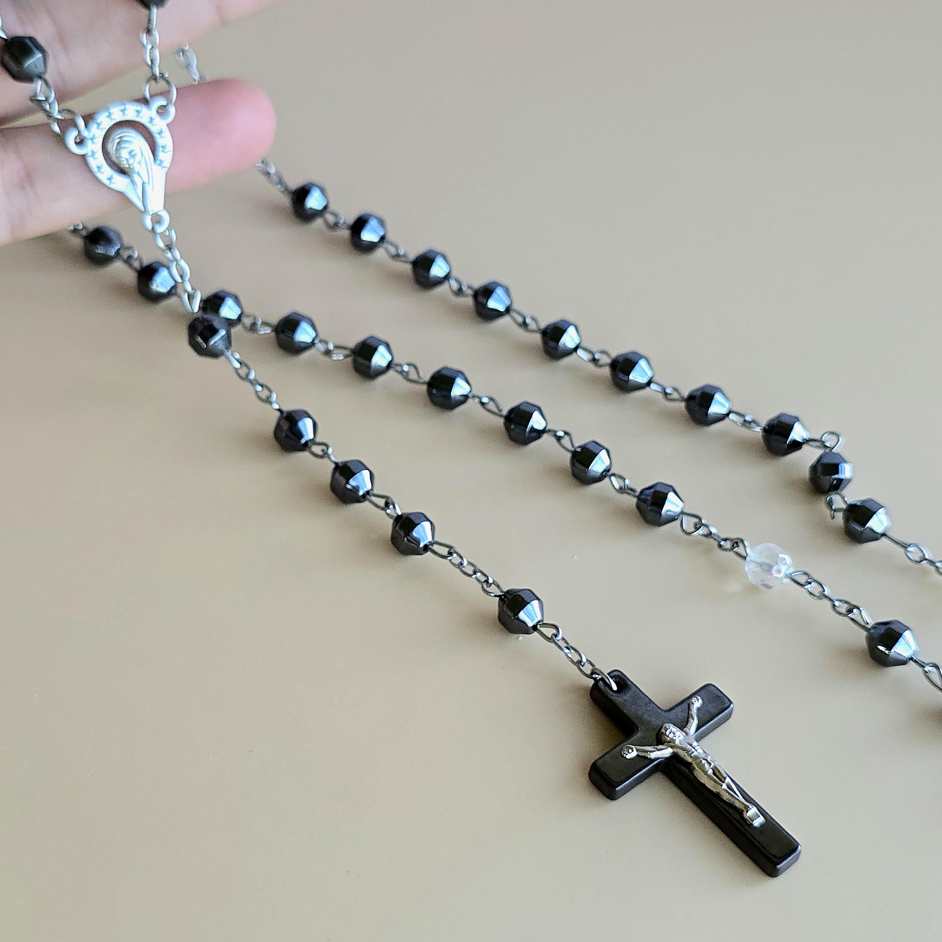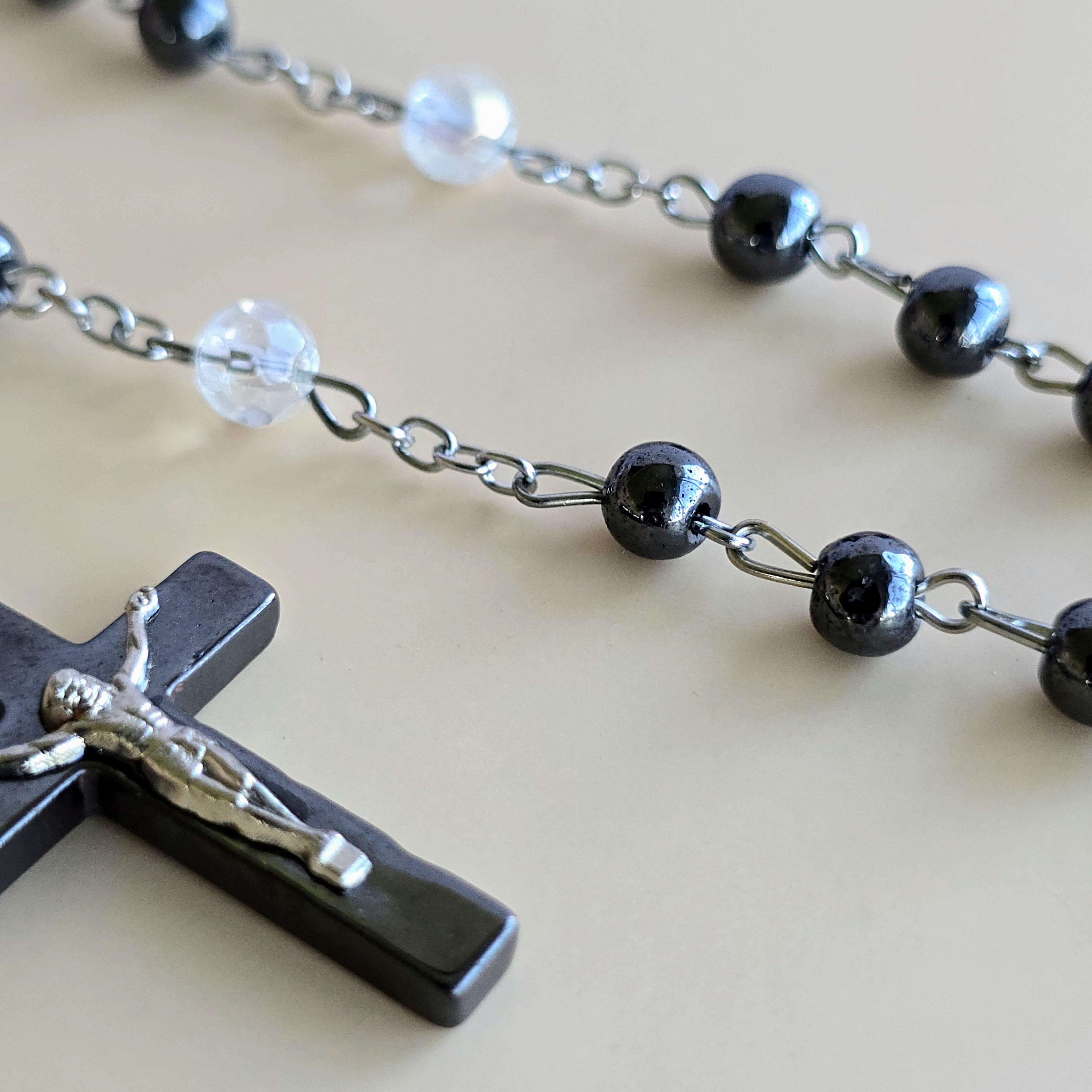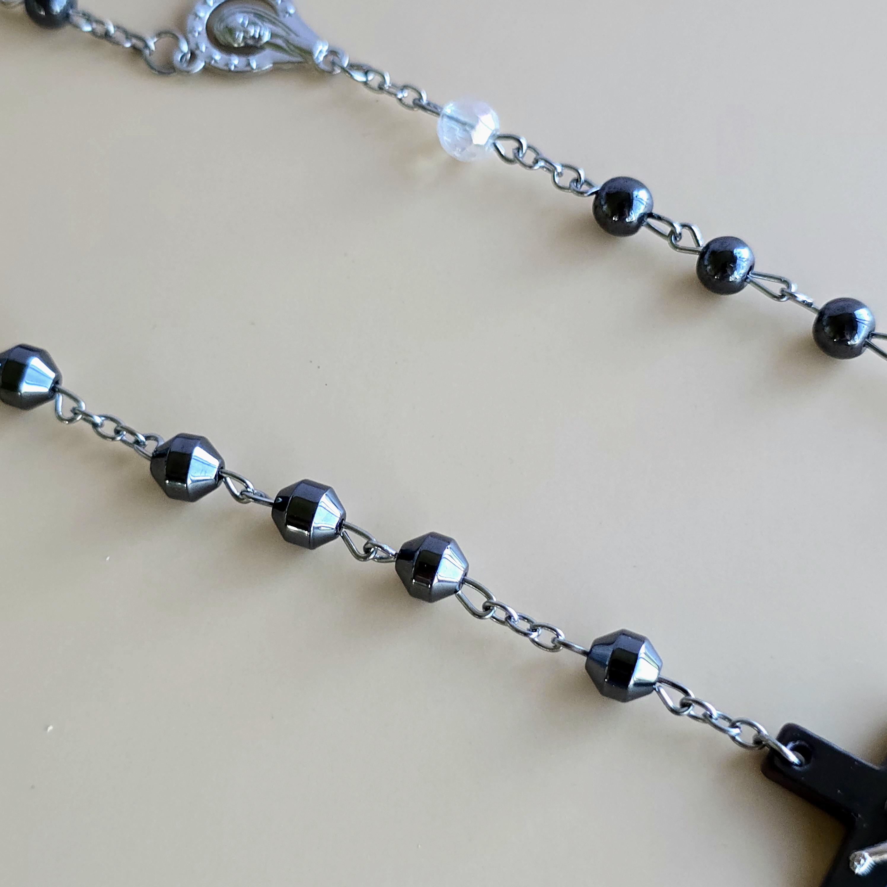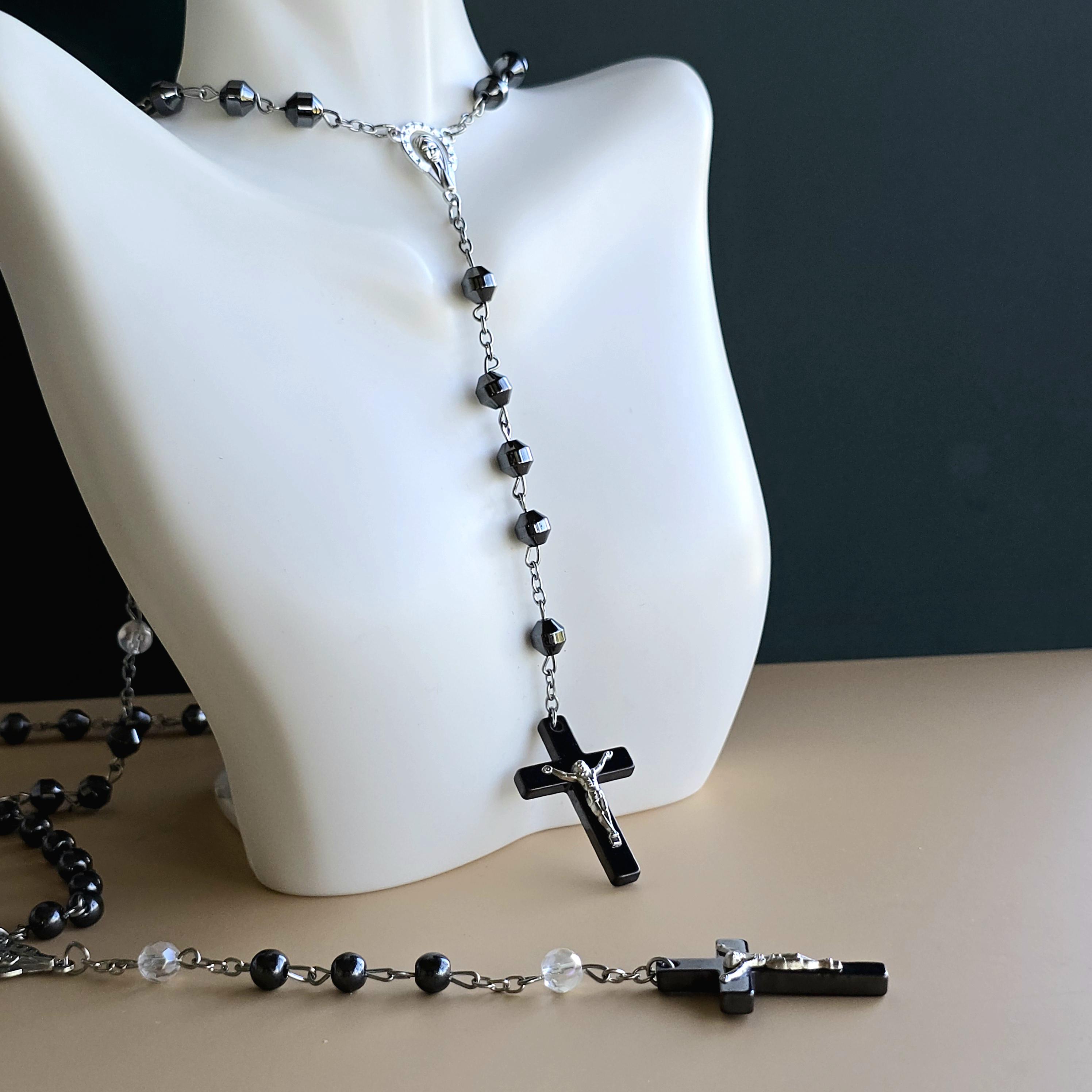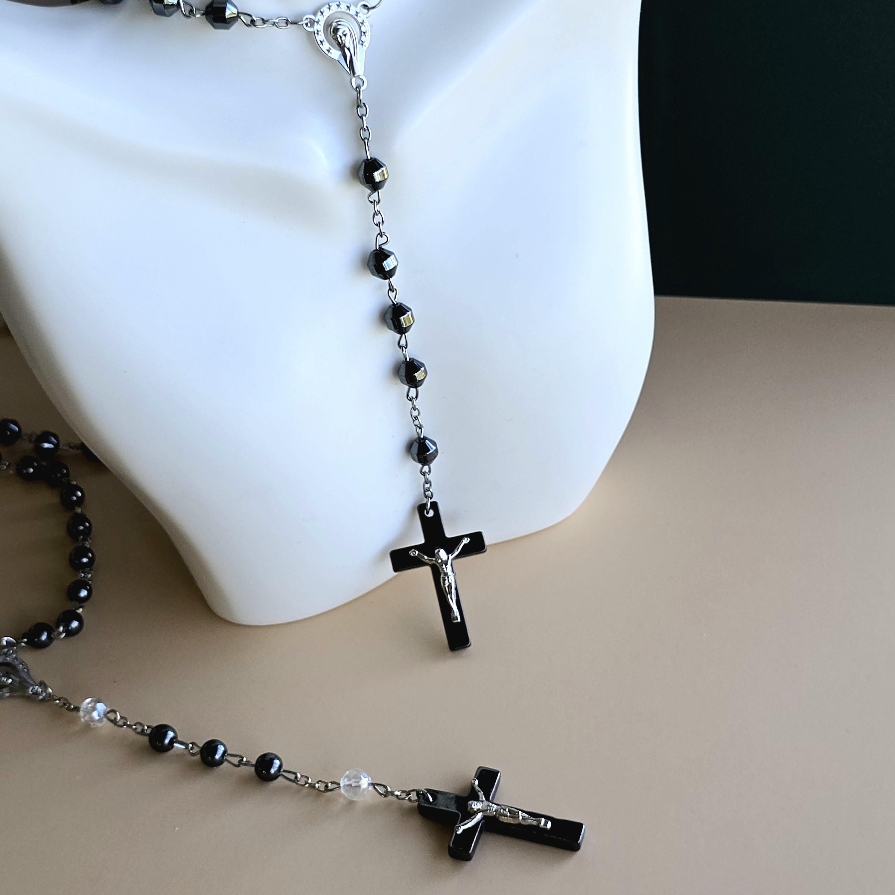 You will receive 1 (ONE) Hematite Rosary Crucifix Necklace (similar to the item pictured).