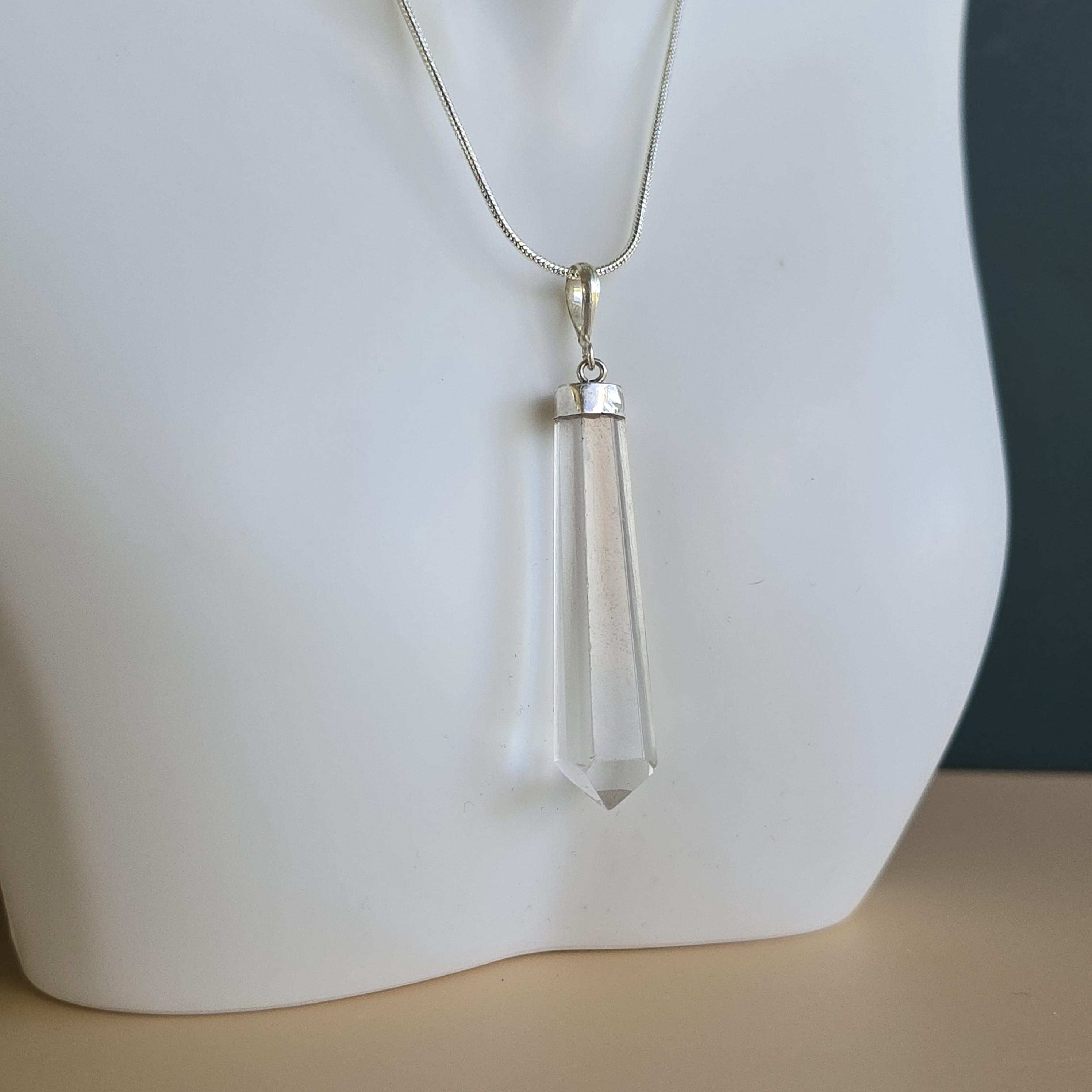 Clear quartz is a natural transparent crystal commonly used as a master healer and energy amplifier. Many associate it with promoting clarity of thought, focus, balance, and positive energy. This polished point pendant is a simple piece suitable for daily wear, layering, or as an all-purpose crystal accessory. Each pendant uses natural clear quartz, so inclusions, clarity, and variations occur due to the authentic stone.