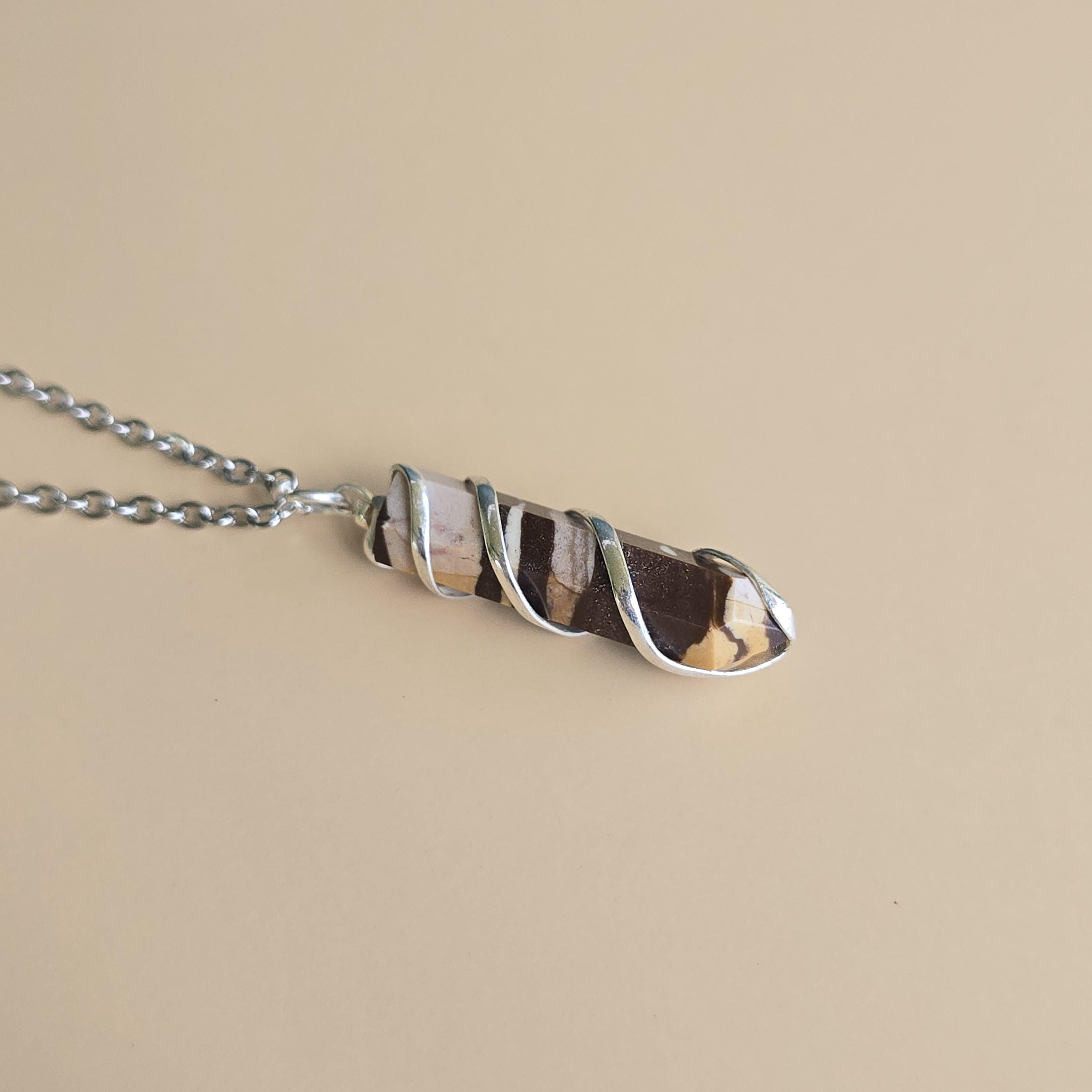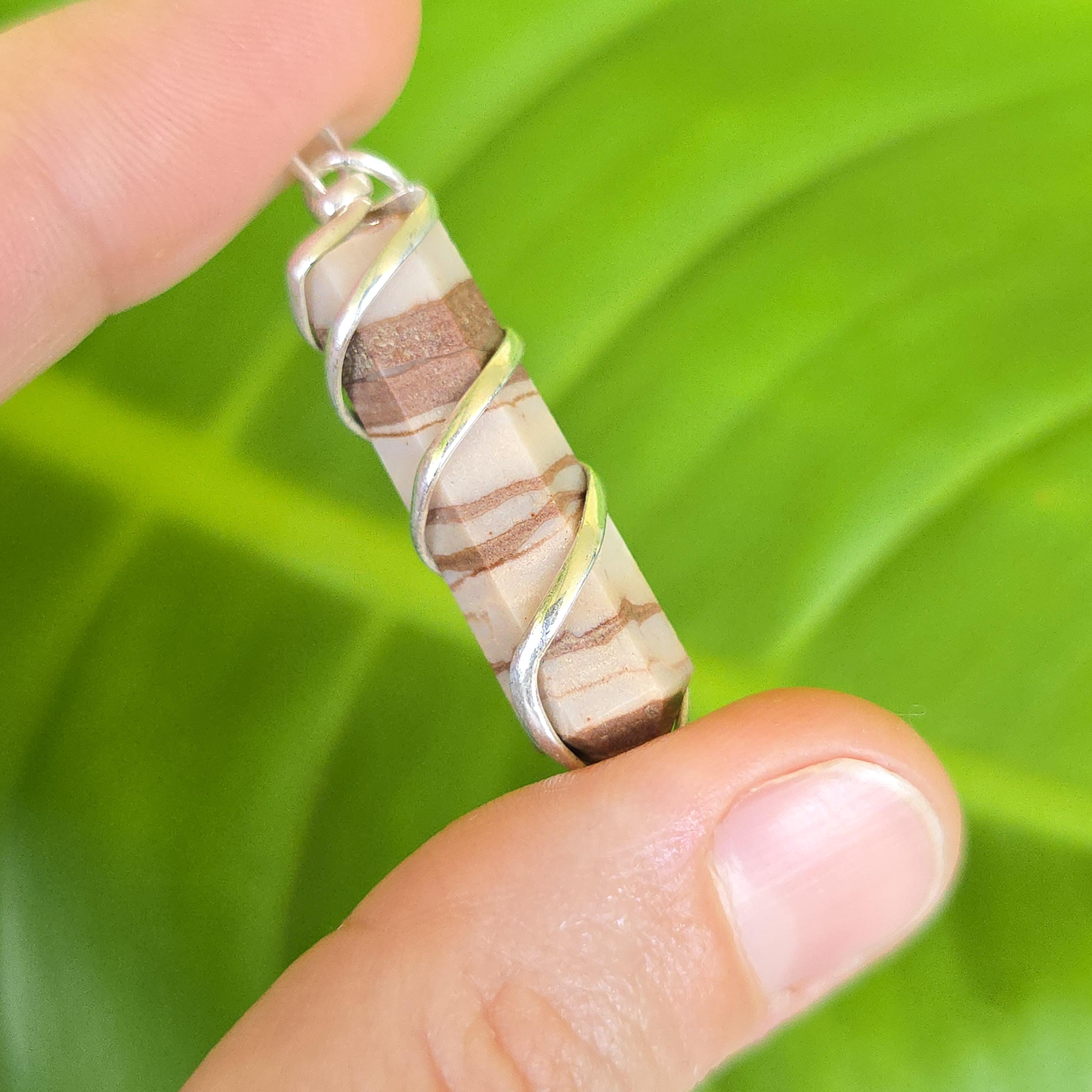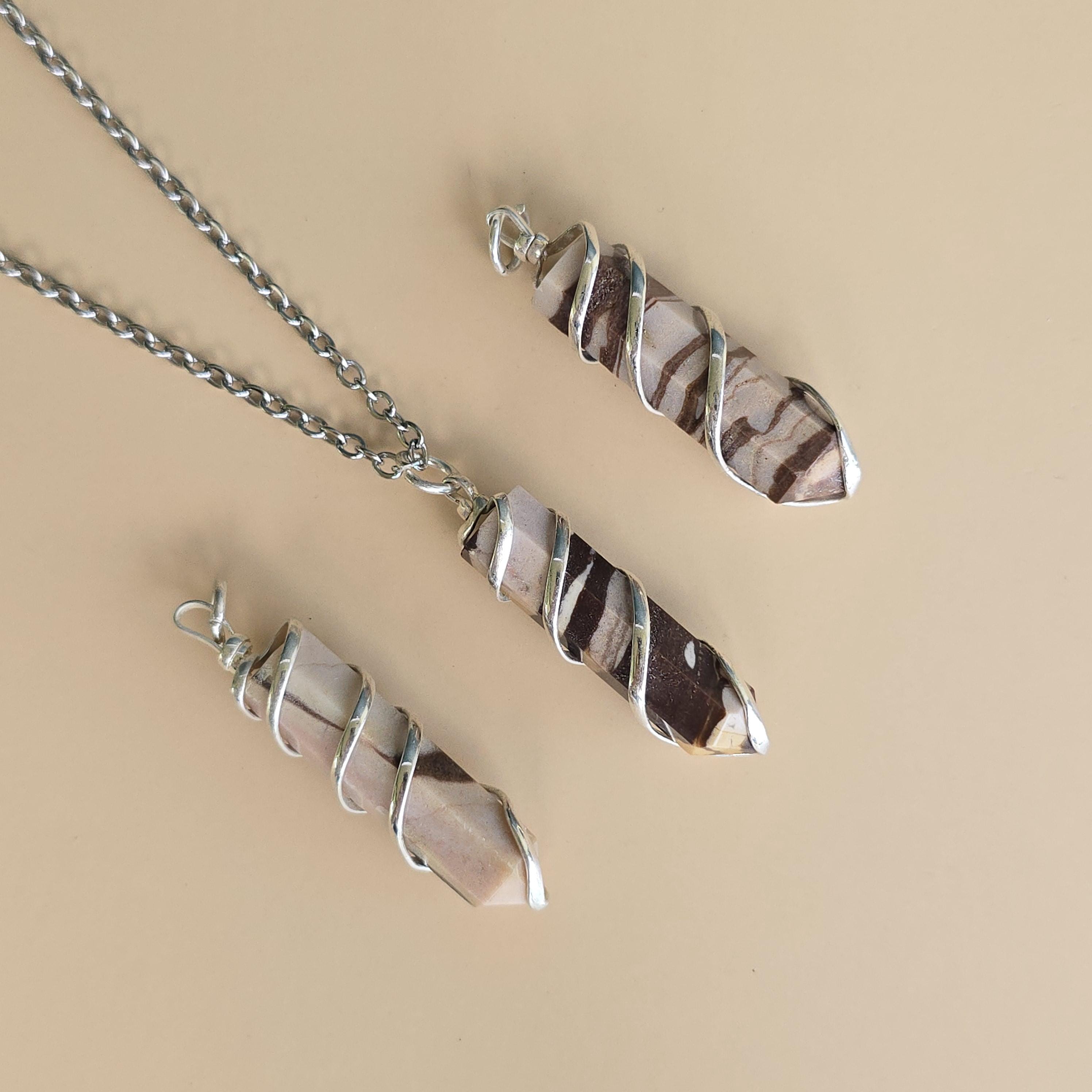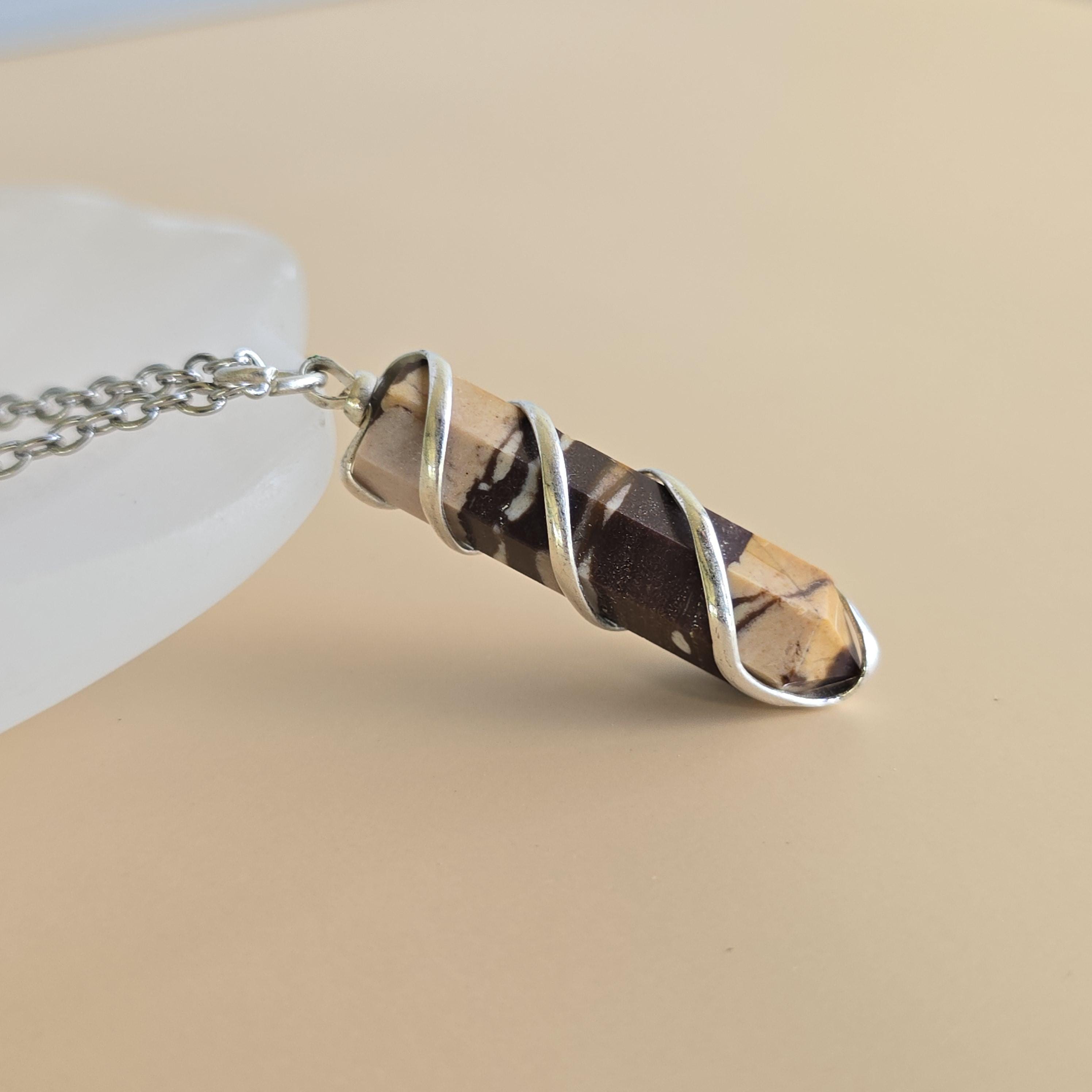 Zebra jasper is a natural stone known for its striking black and white striped patterns. It is commonly used in crystal practices for its grounding and balancing properties. Many associate it with promoting stability, emotional balance, and a sense of harmony. This pendant is a simple piece suitable for daily wear or as a grounding accessory. Each pendant uses natural zebra jasper, so color patterns, stripes, and variations occur due to the authentic stone.