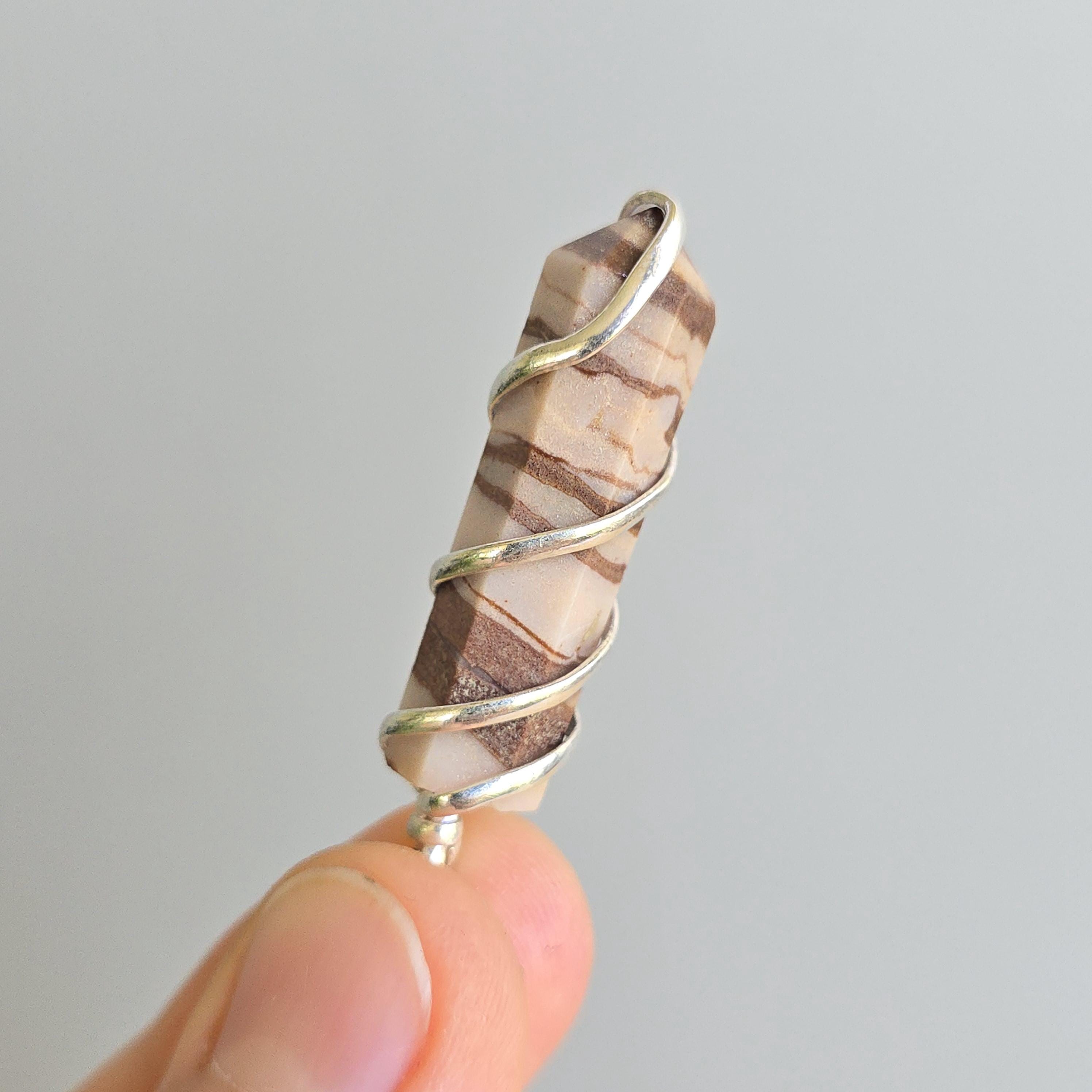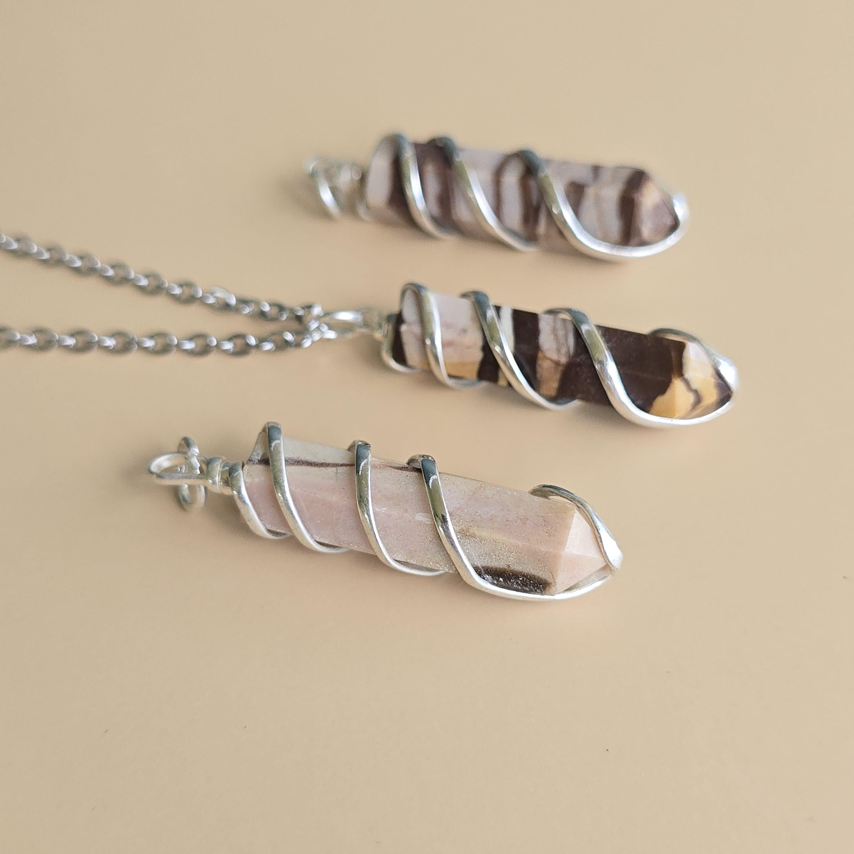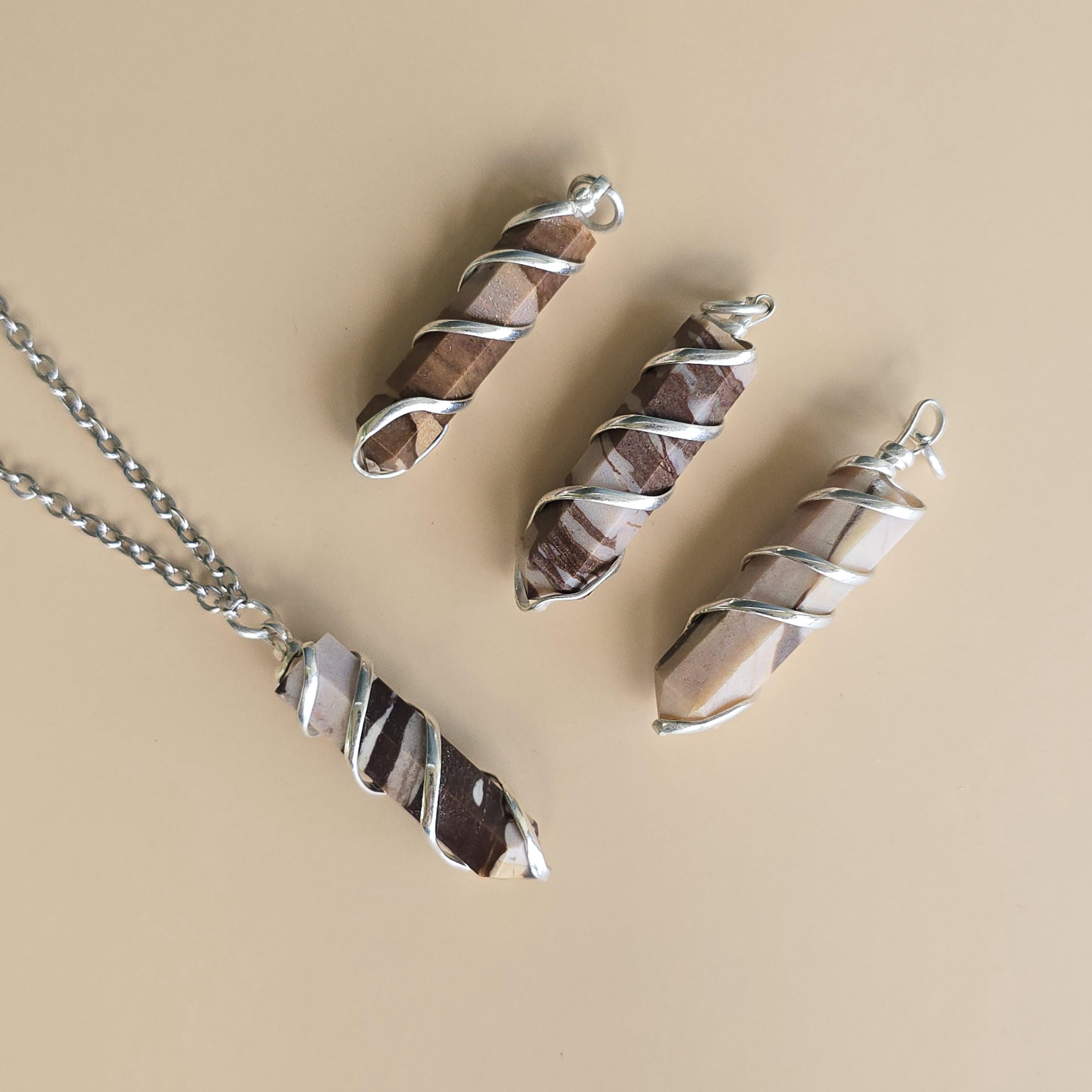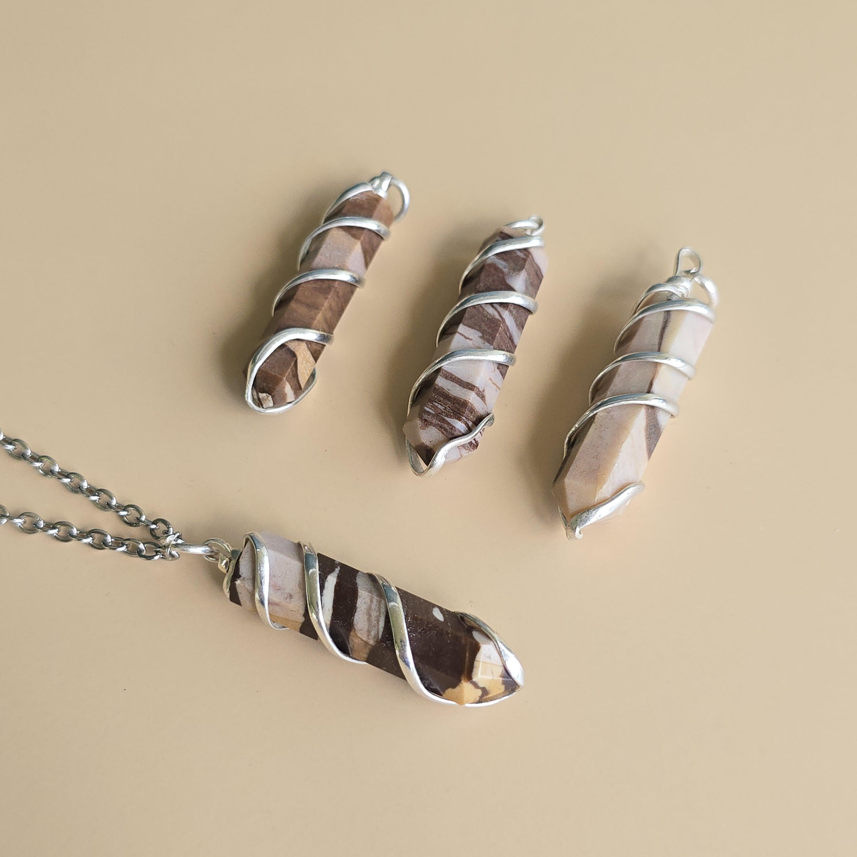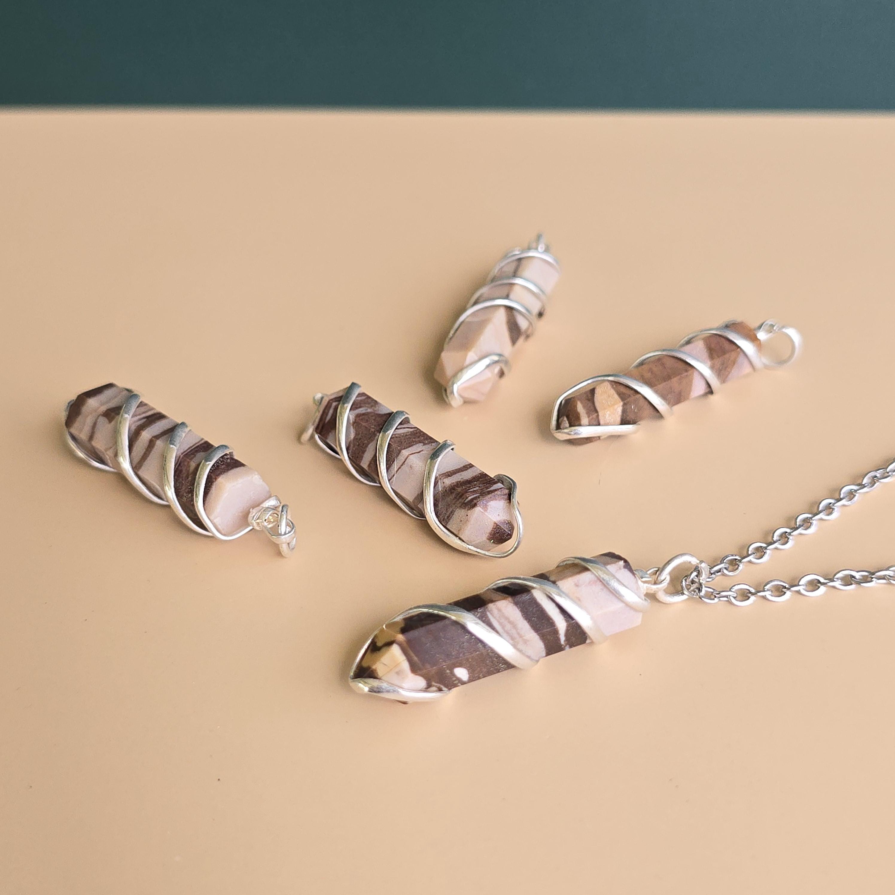 Zebra jasper is a natural stone known for its striking black and white striped patterns. It is commonly used in crystal practices for its grounding and balancing properties. Many associate it with promoting stability, emotional balance, and a sense of harmony. This pendant is a simple piece suitable for daily wear or as a grounding accessory. Each pendant uses natural zebra jasper, so color patterns, stripes, and variations occur due to the authentic stone.