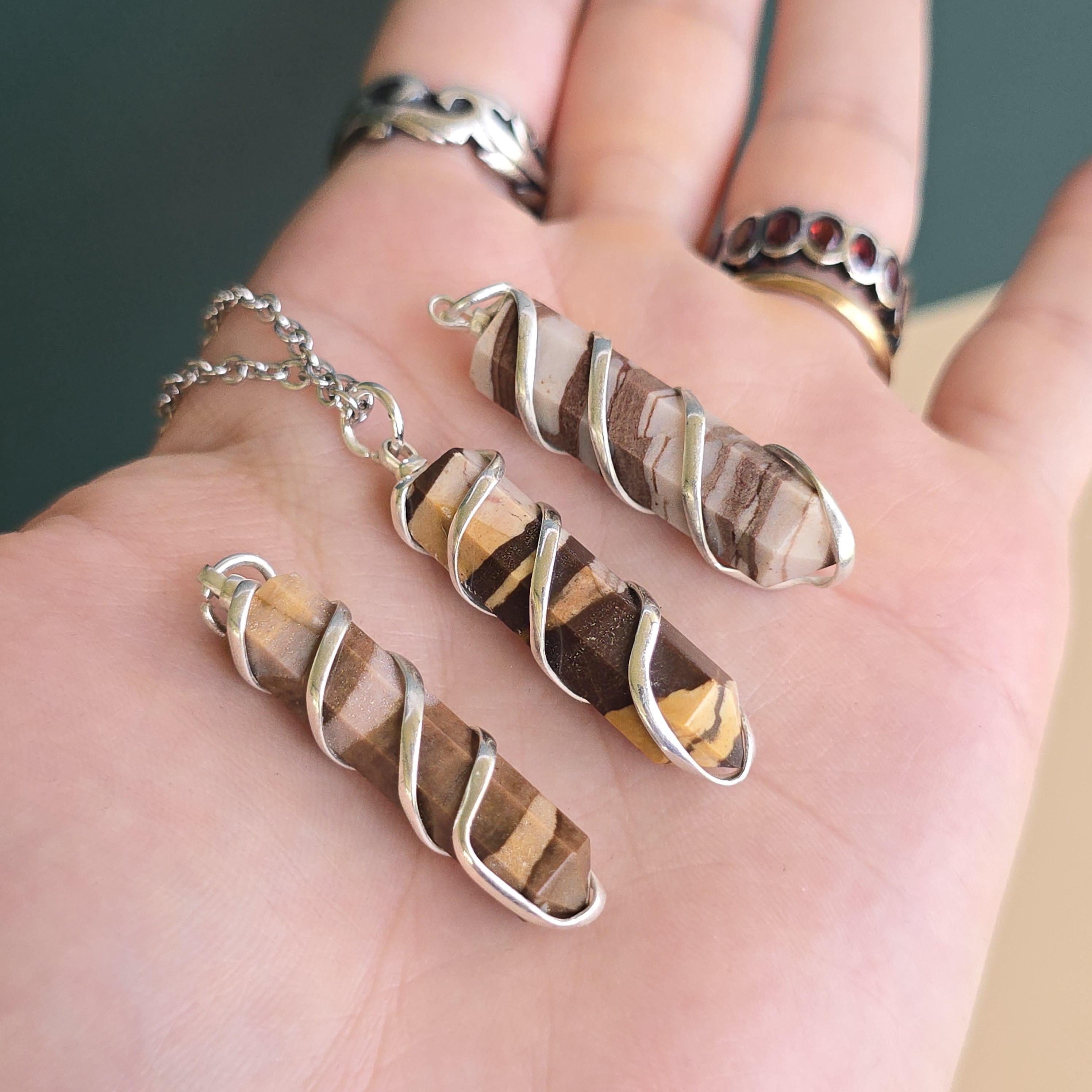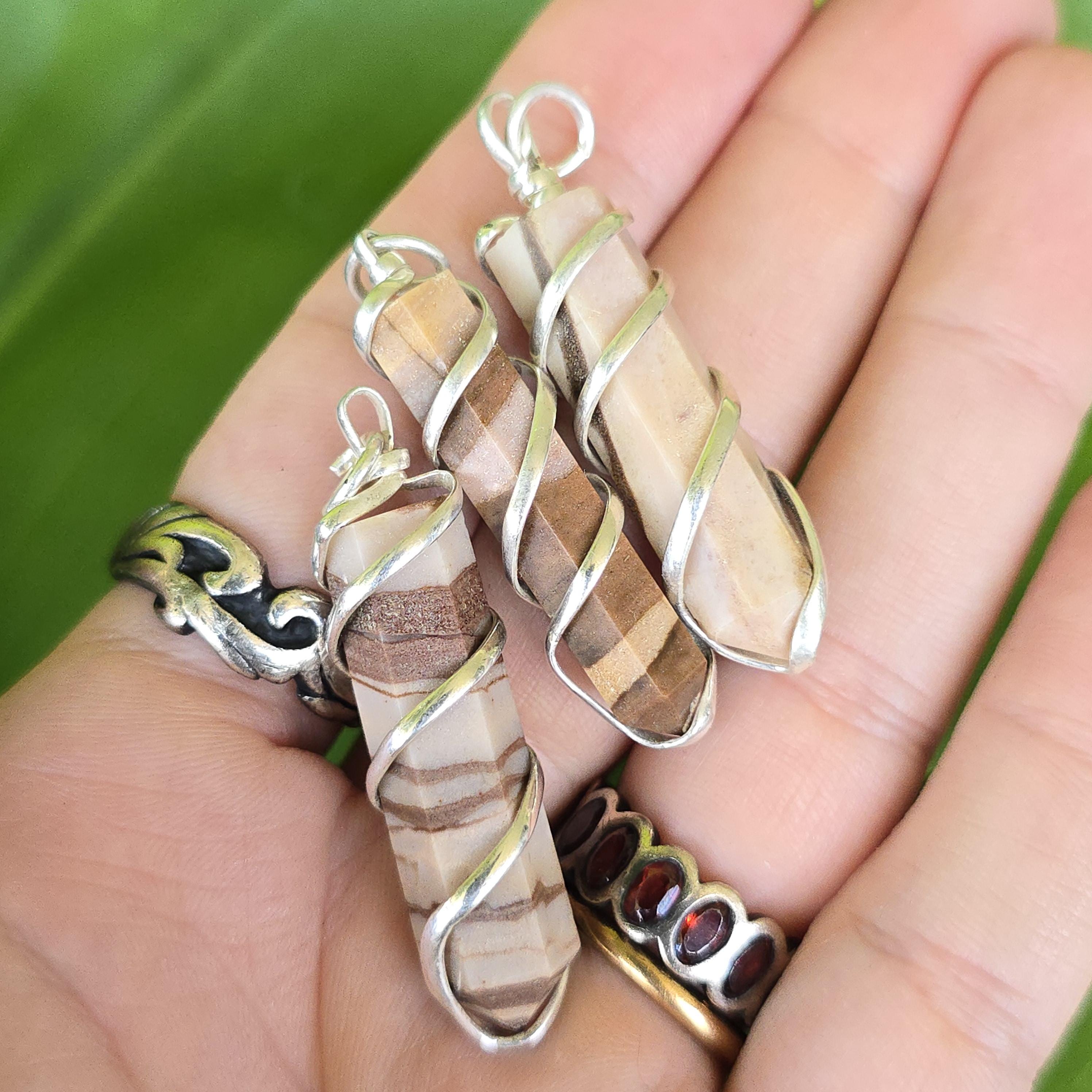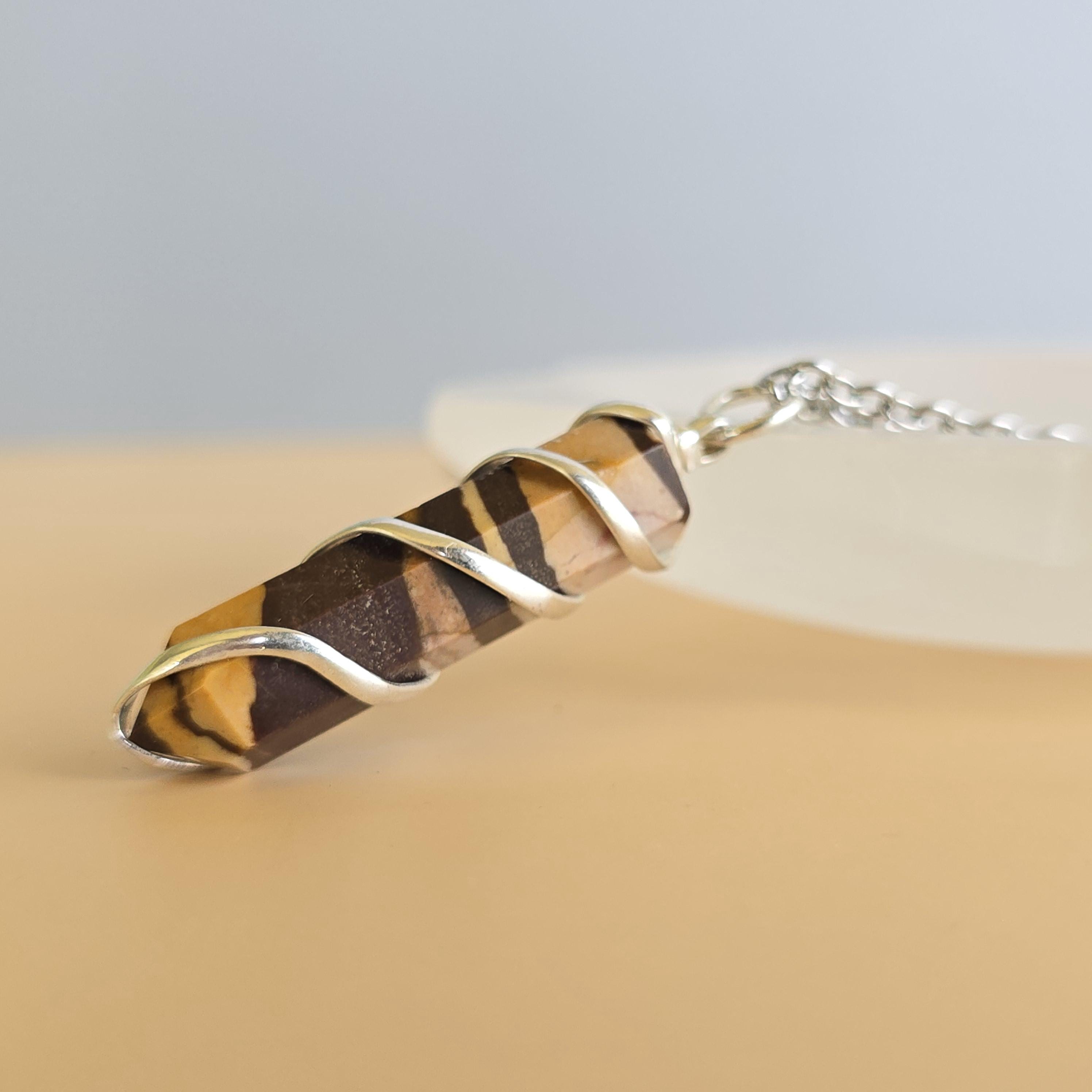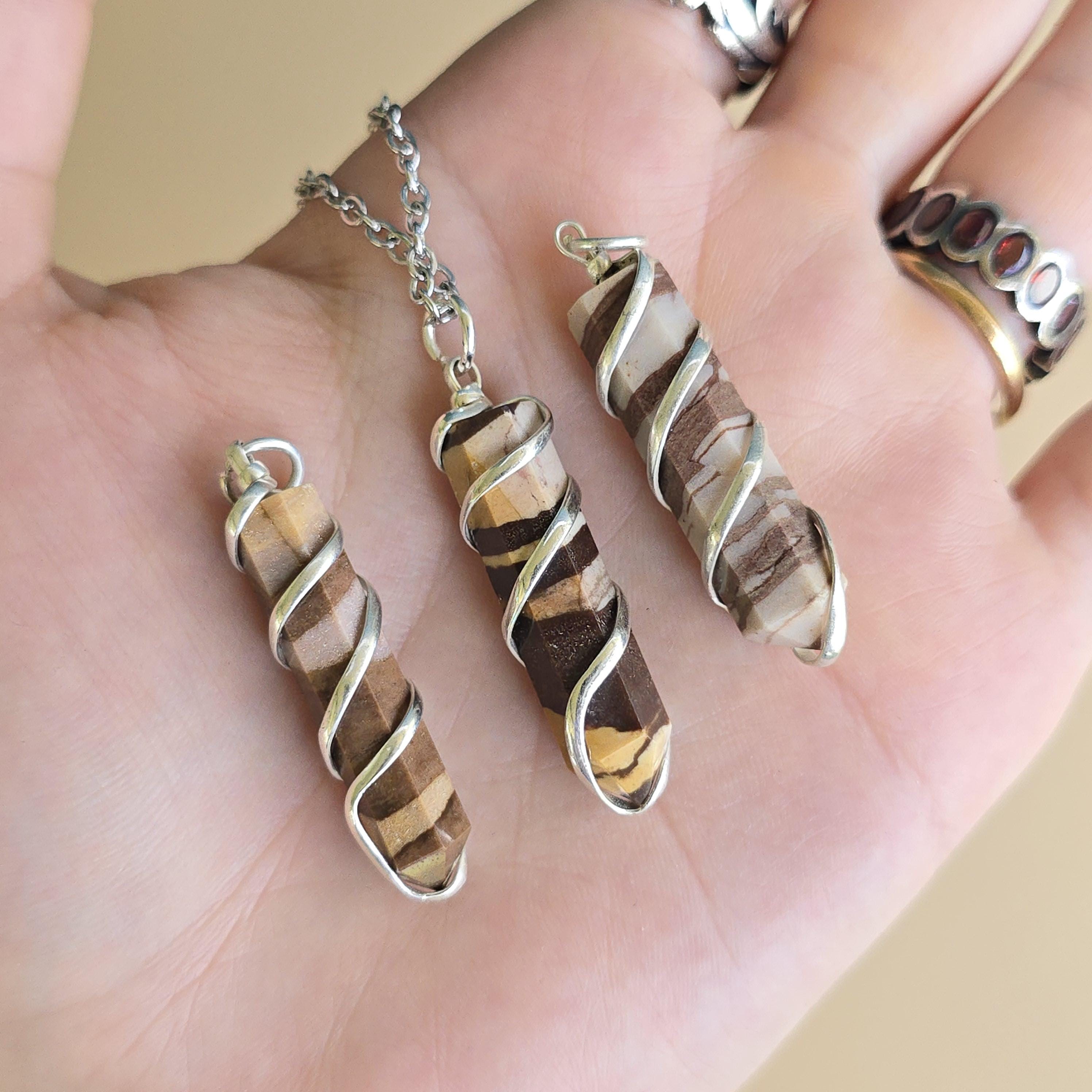 Zebra jasper is a natural stone known for its striking black and white striped patterns. It is commonly used in crystal practices for its grounding and balancing properties. Many associate it with promoting stability, emotional balance, and a sense of harmony. This pendant is a simple piece suitable for daily wear or as a grounding accessory. Each pendant uses natural zebra jasper, so color patterns, stripes, and variations occur due to the authentic stone.