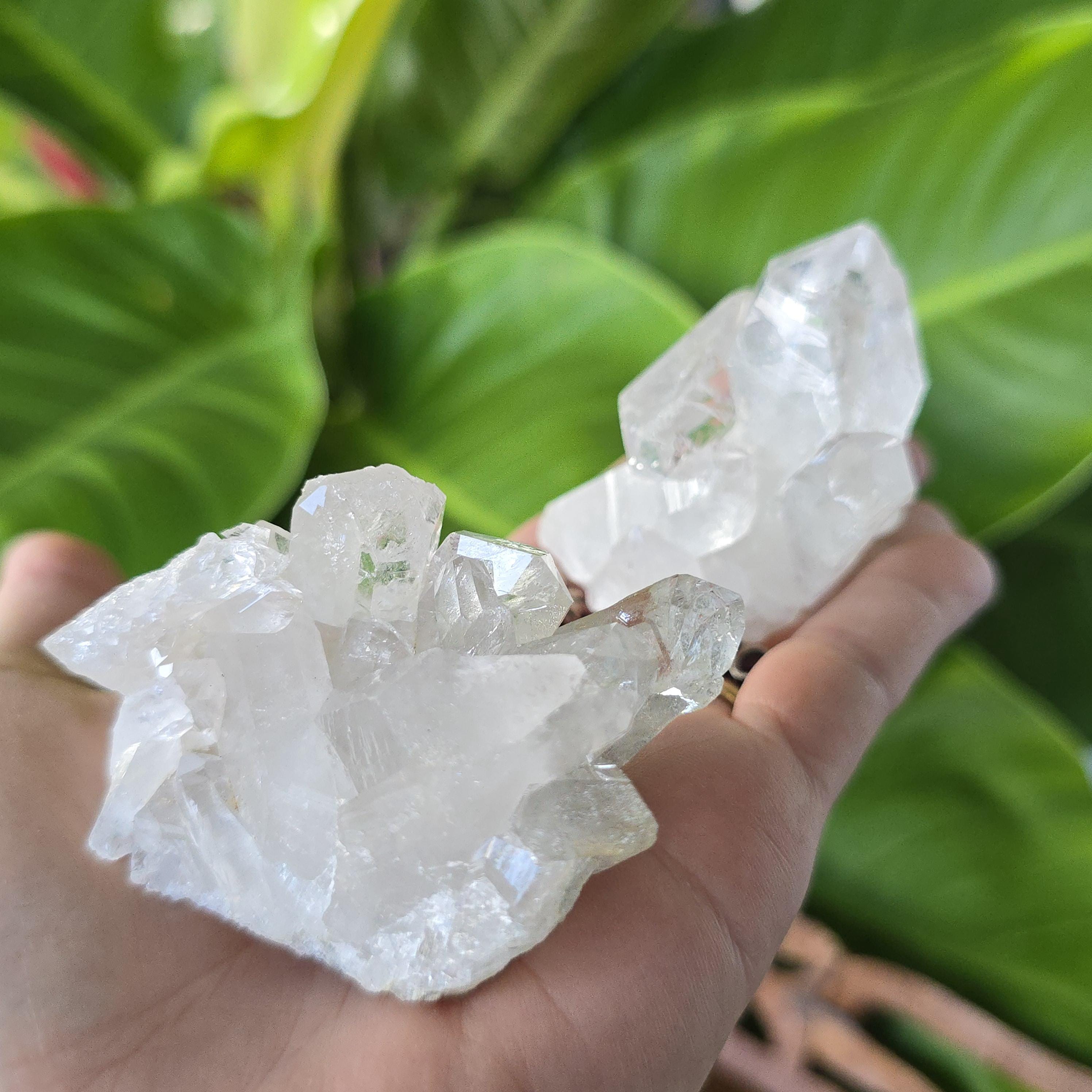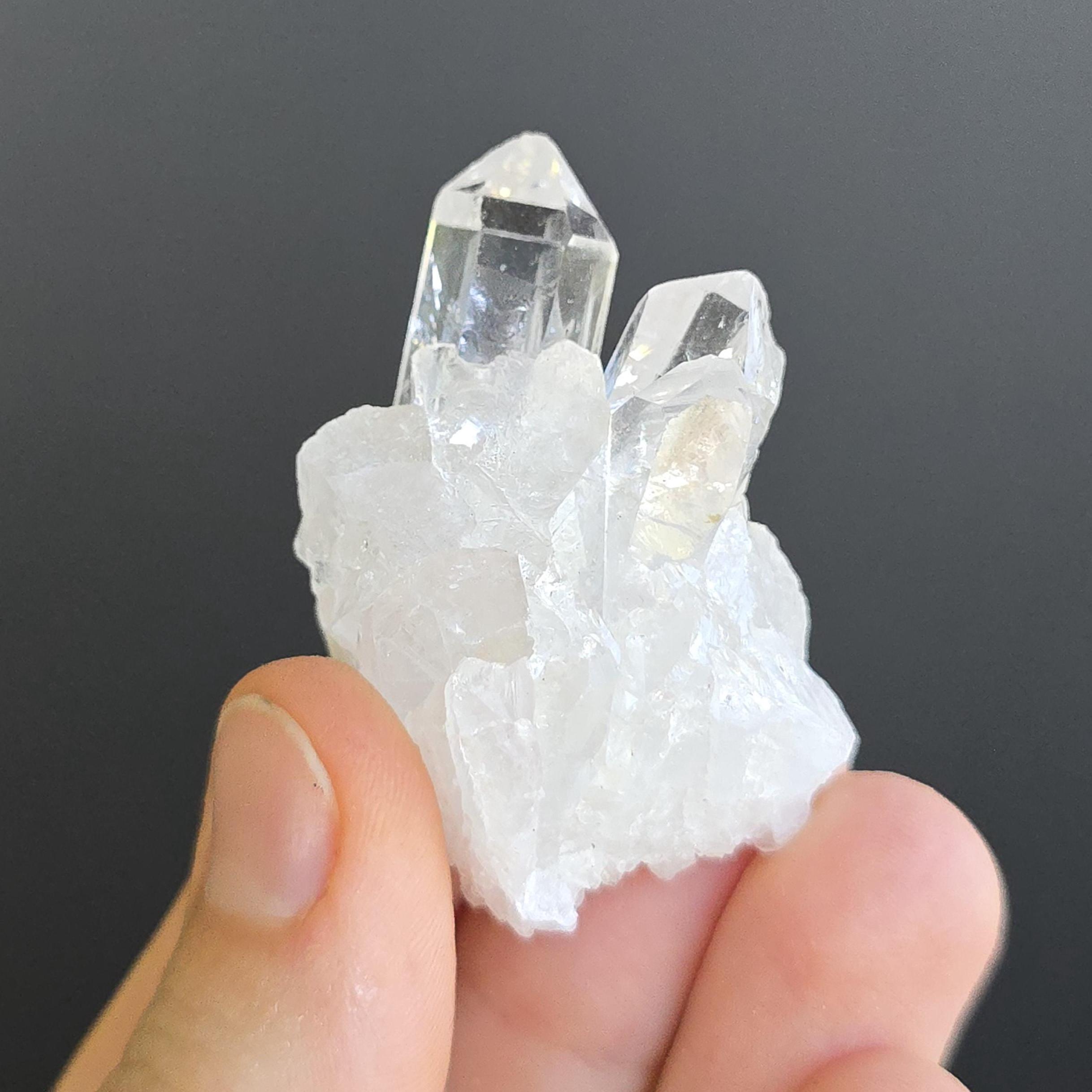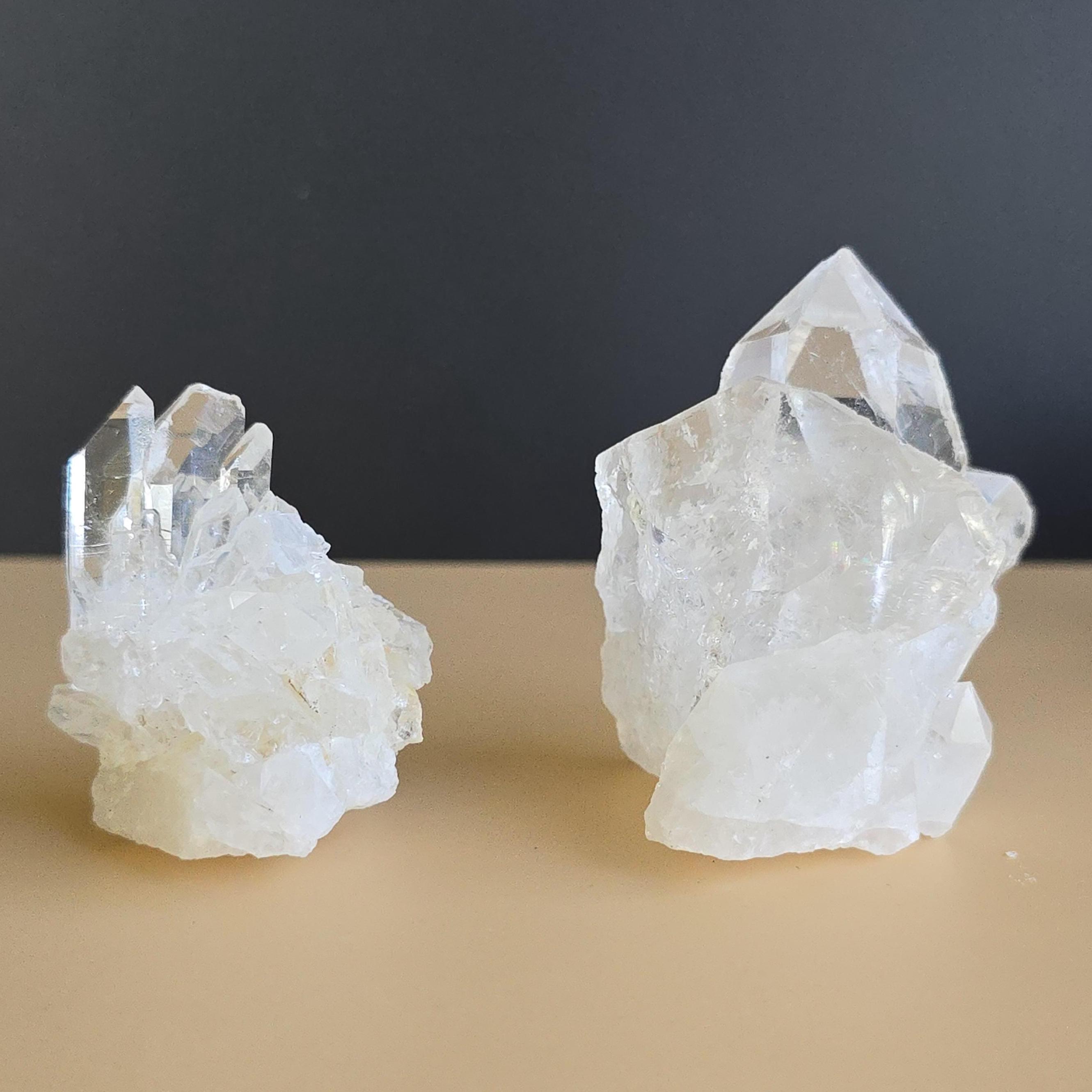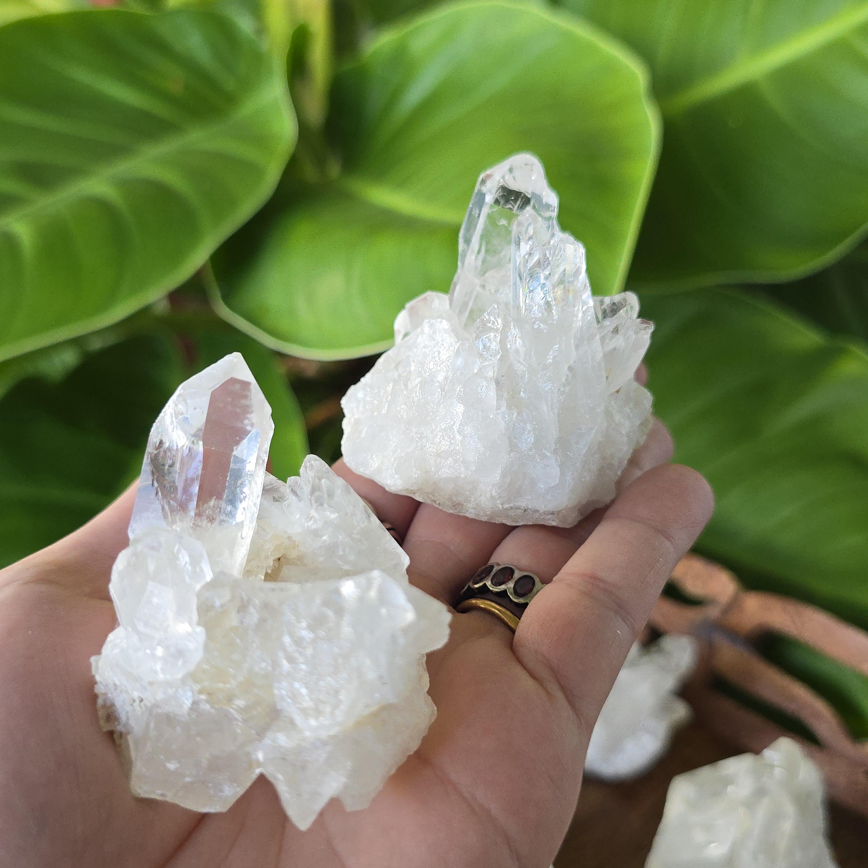 Clear quartz is known as the "master healer" in crystal practices. It is widely used to amplify energy, enhance clarity of thought, remove energy blockages, and support overall balance. Many associate it with stimulating all chakras, expanding consciousness, and magnifying the properties of other crystals. These natural clusters feature multiple points and are ideal for display, meditation, energy work, or placing on an altar. Each cluster is unique, with variations in shape, point formation, clarity, and size. The points are naturally formed and not perfectly symmetrical.
