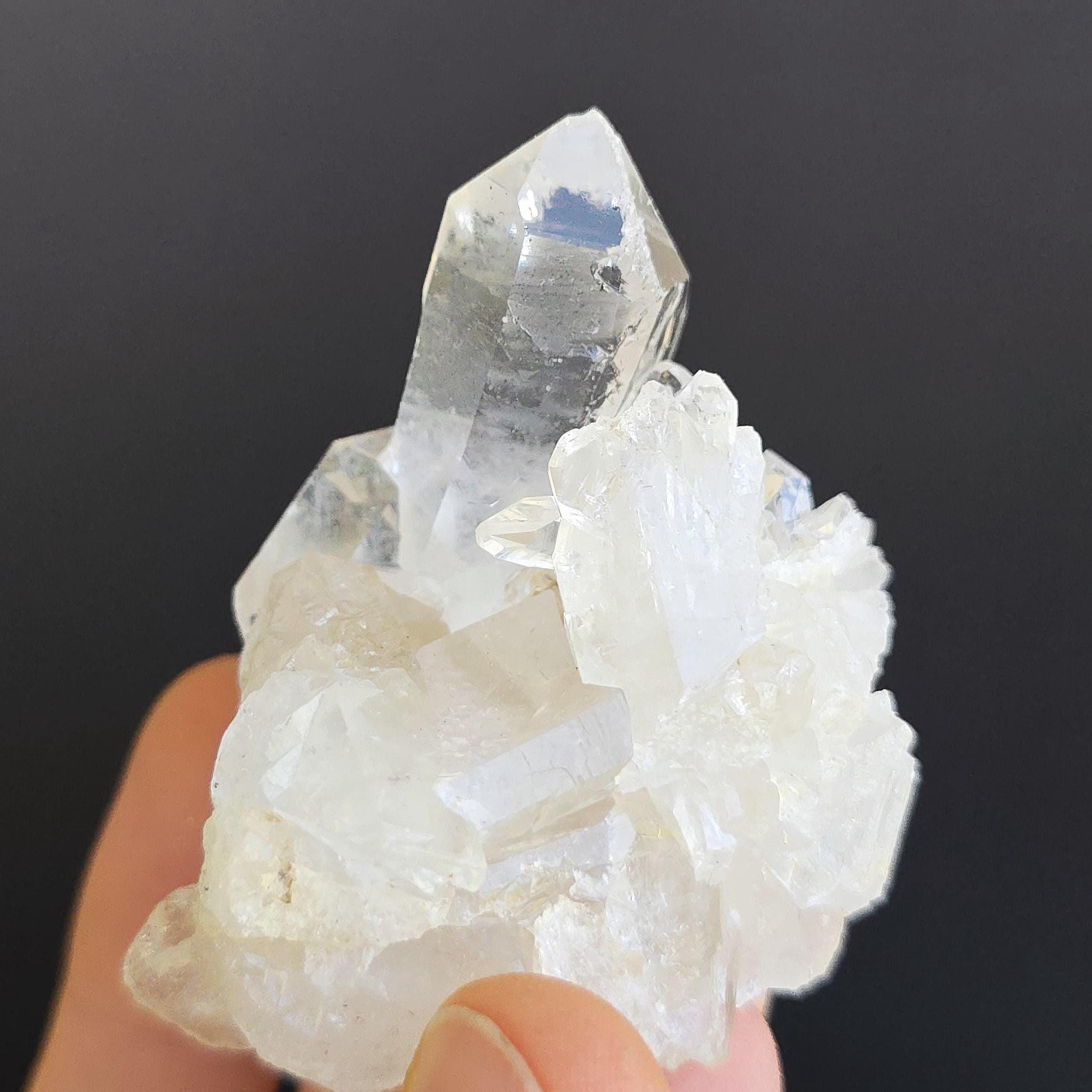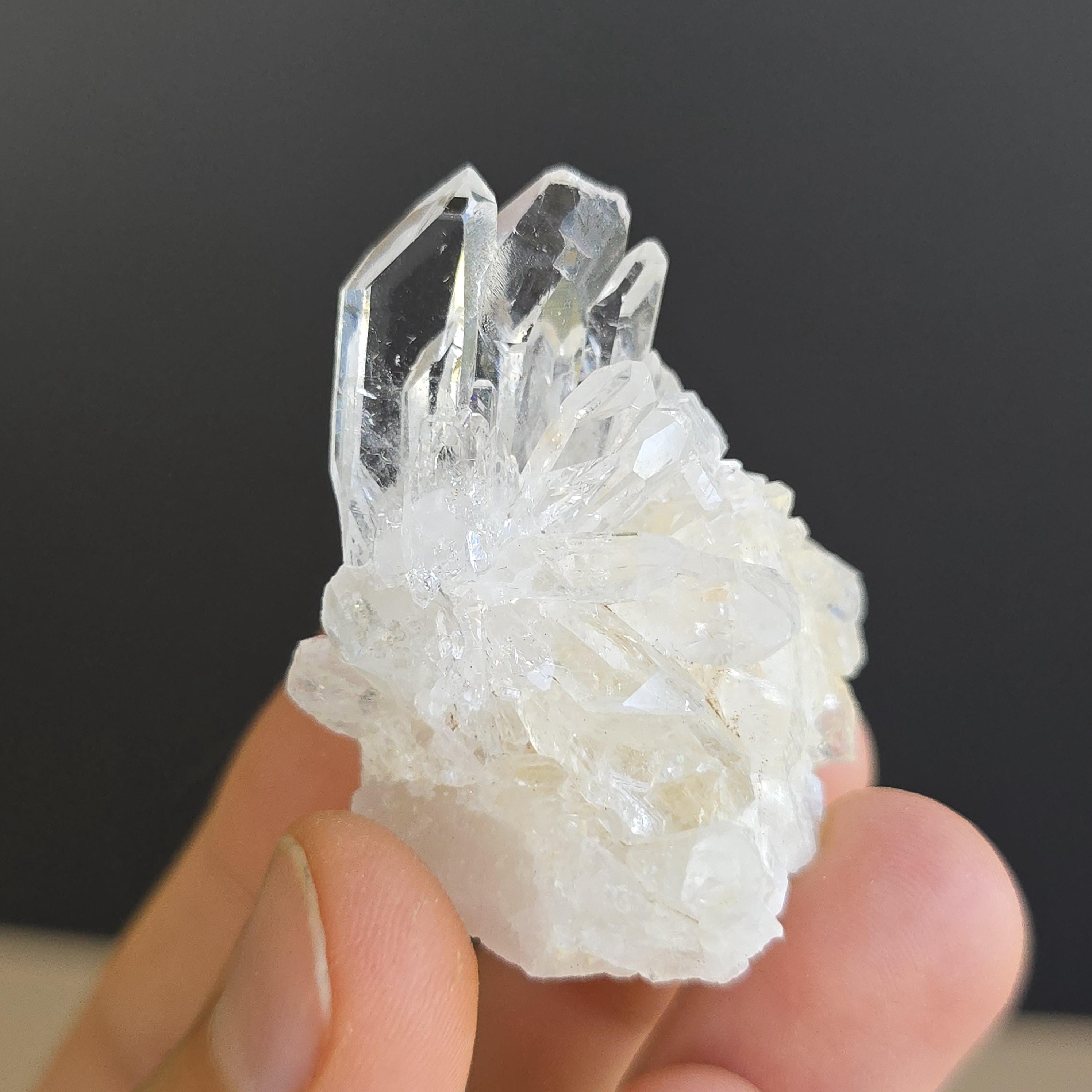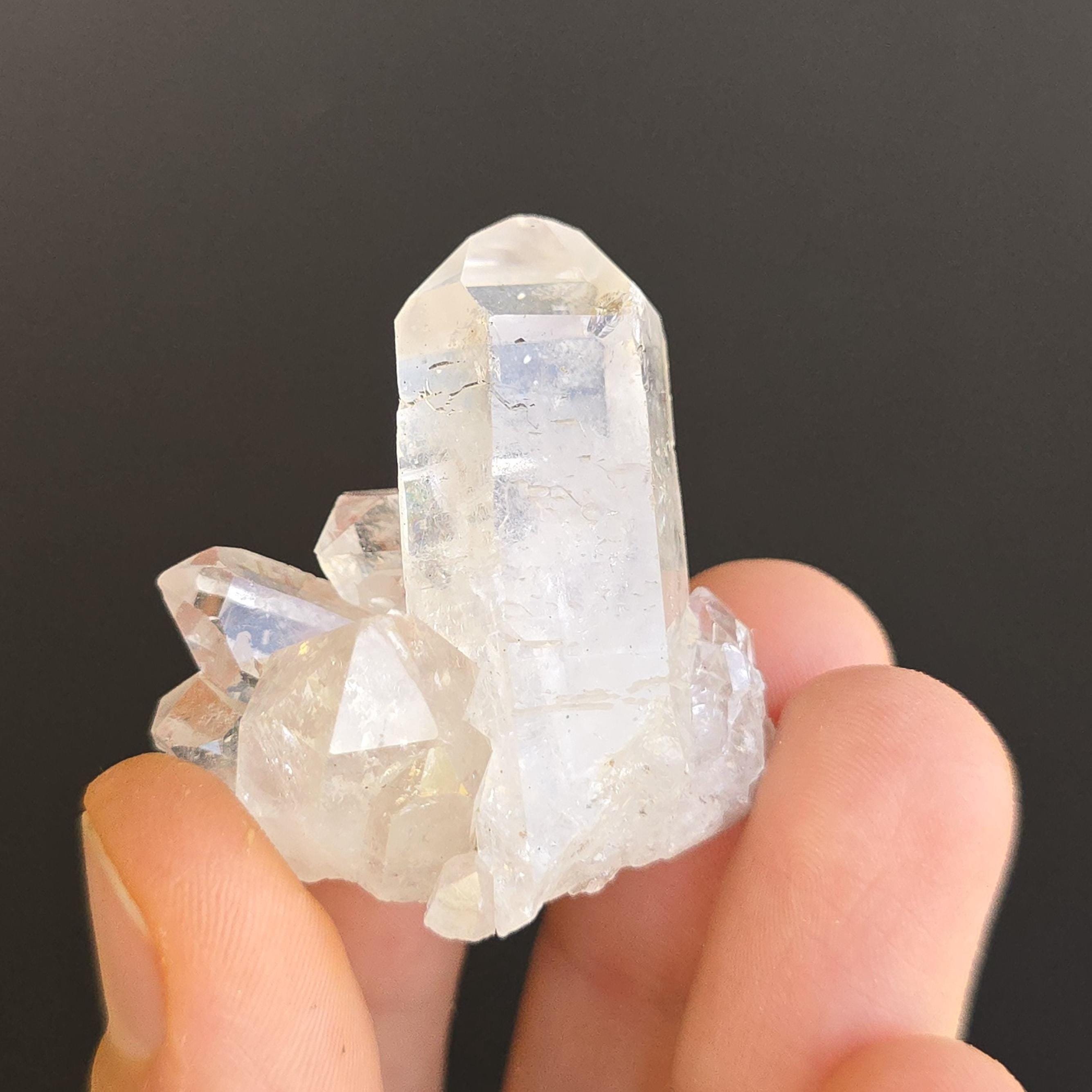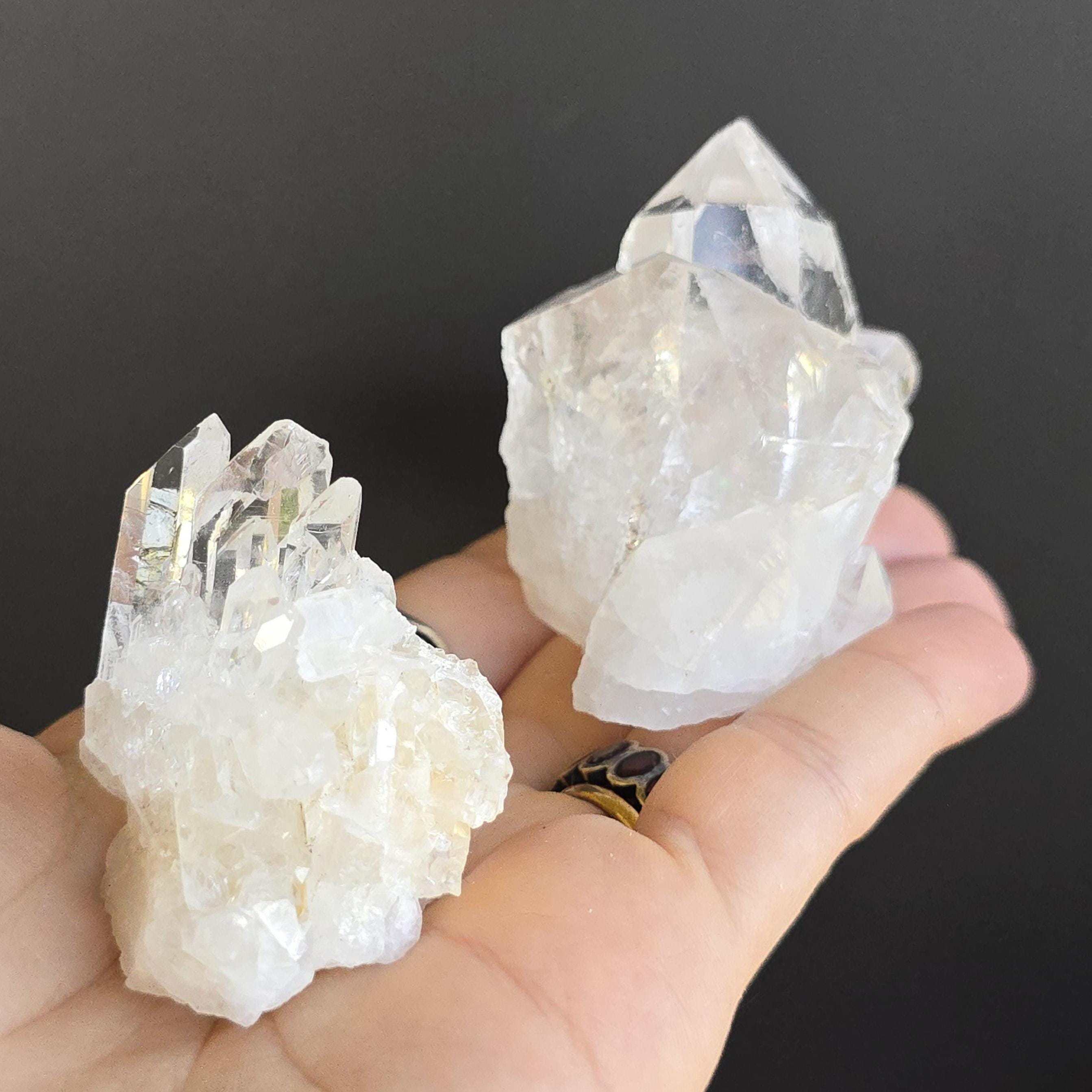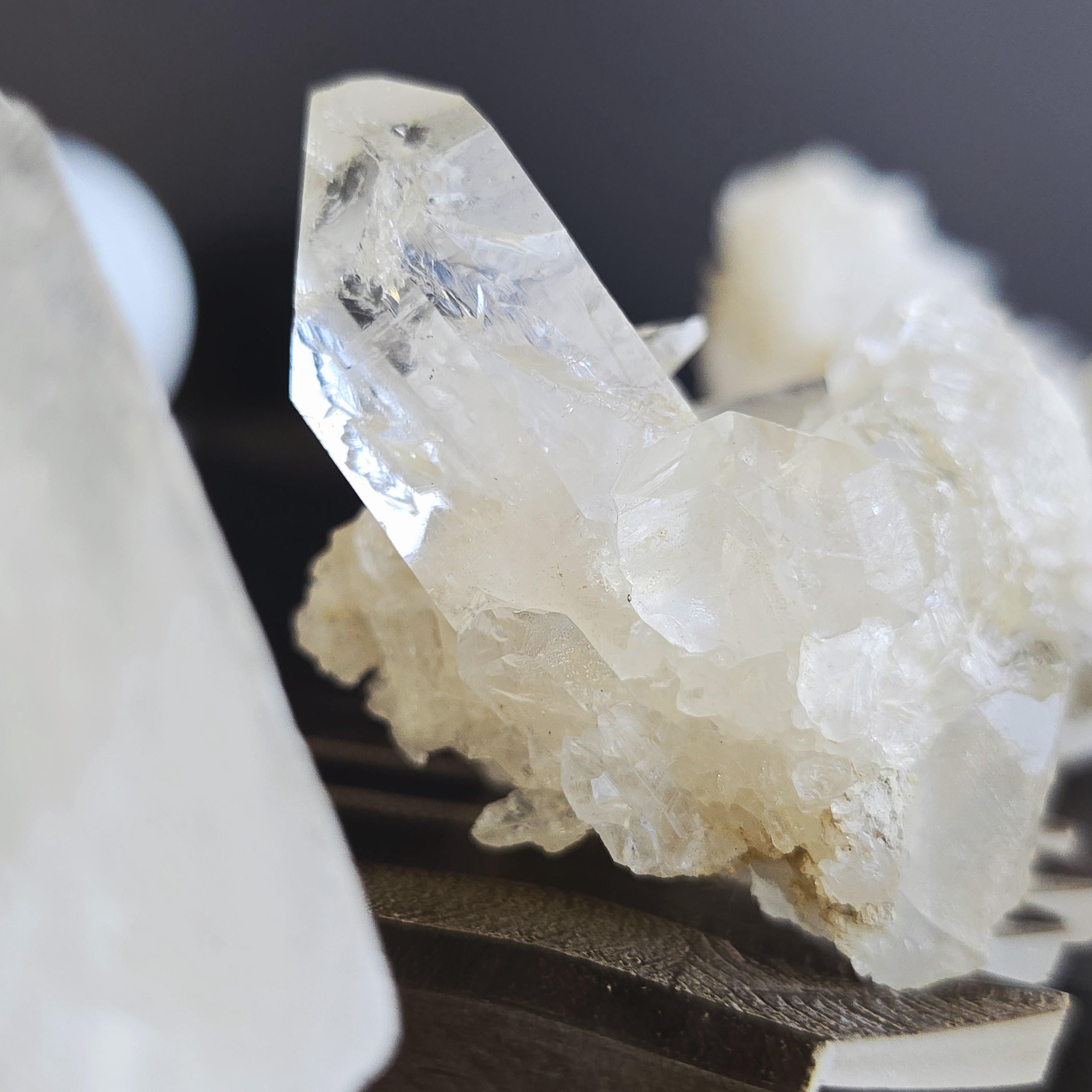 Clear quartz is known as the "master healer" in crystal practices. It is widely used to amplify energy, enhance clarity of thought, remove energy blockages, and support overall balance. Many associate it with stimulating all chakras, expanding consciousness, and magnifying the properties of other crystals. These natural clusters feature multiple points and are ideal for display, meditation, energy work, or placing on an altar. Each cluster is unique, with variations in shape, point formation, clarity, and size. The points are naturally formed and not perfectly symmetrical.