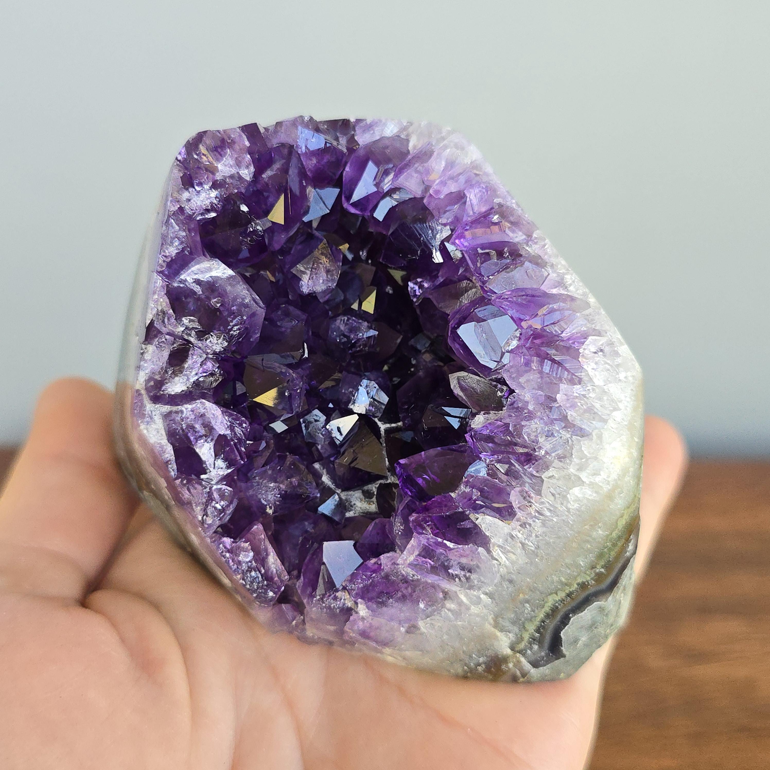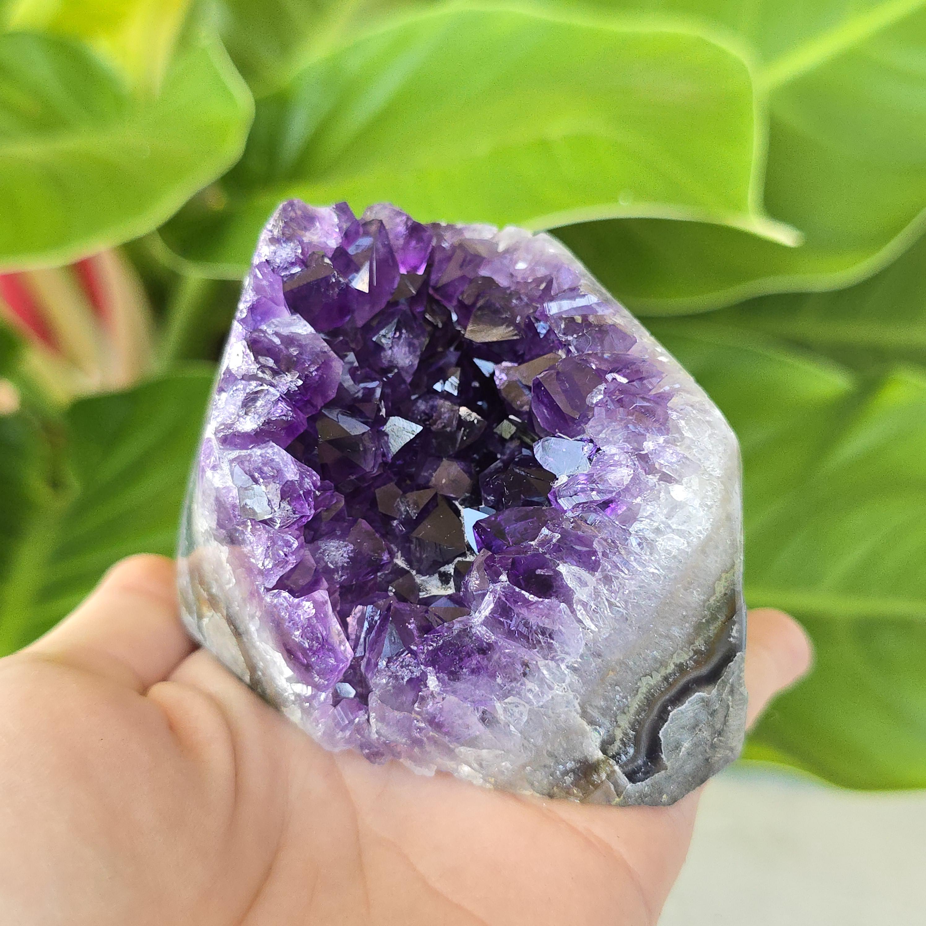 Amethyst Cluster: Raw Amethyst Stone with Cut Base, High grade, Extra Quality from Uruguay.