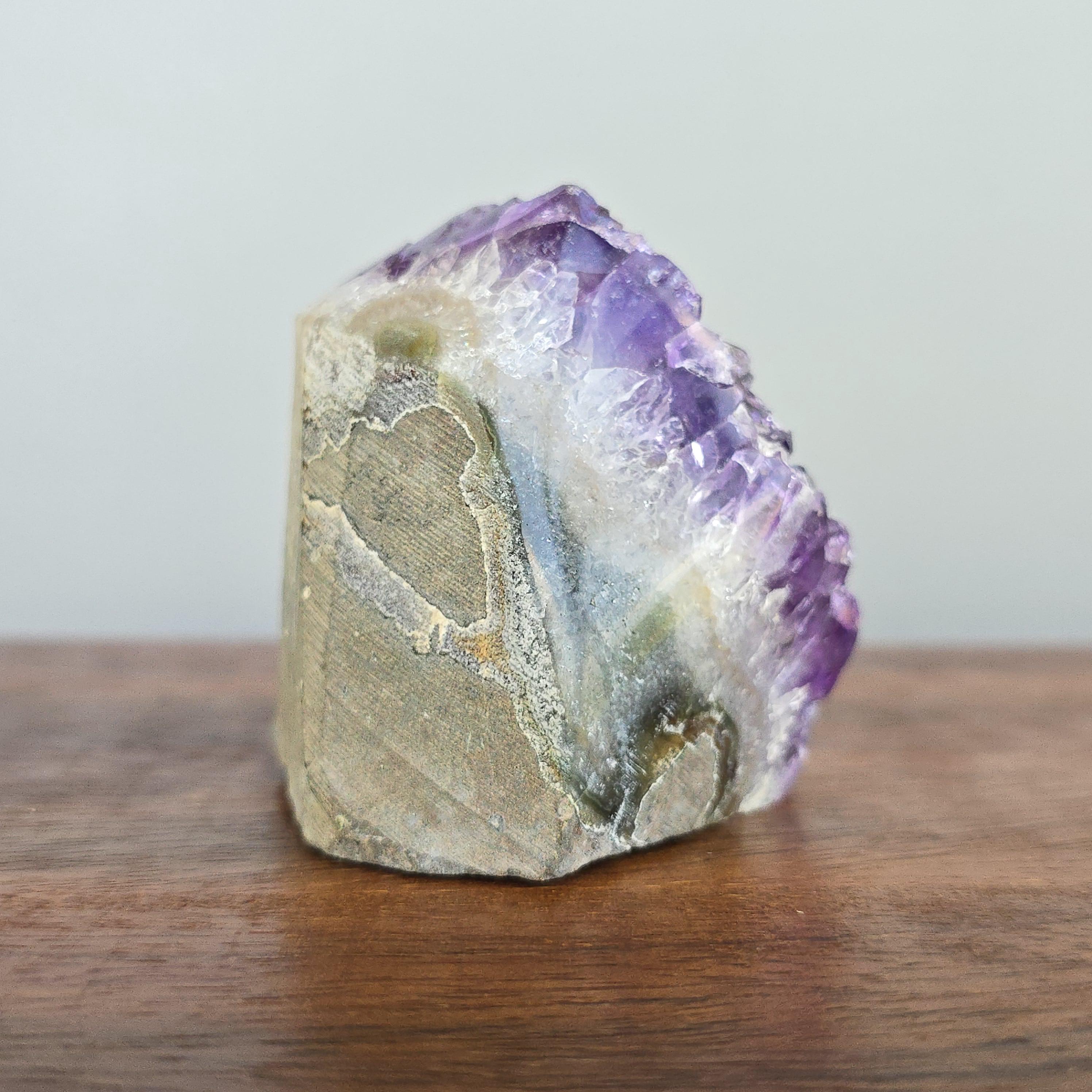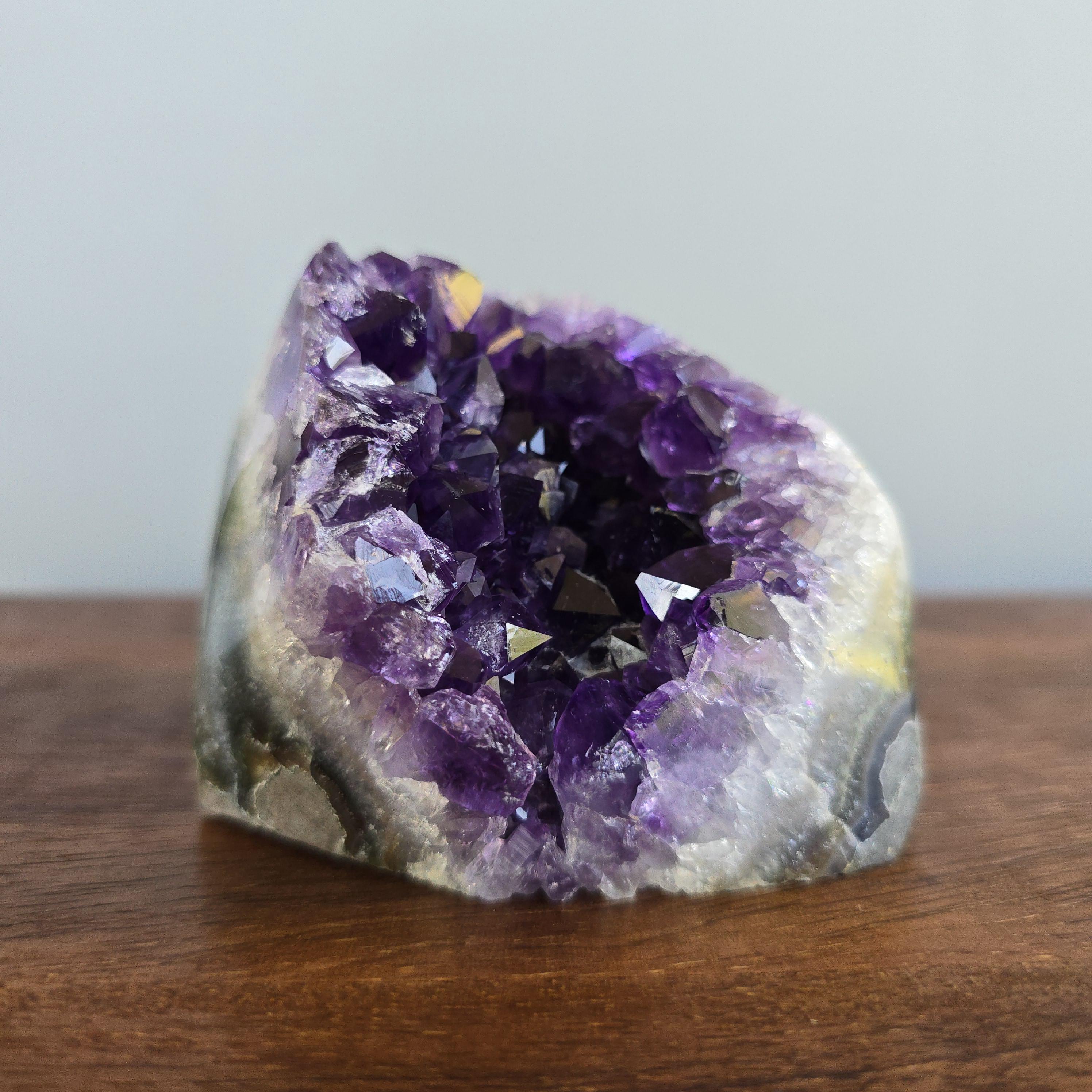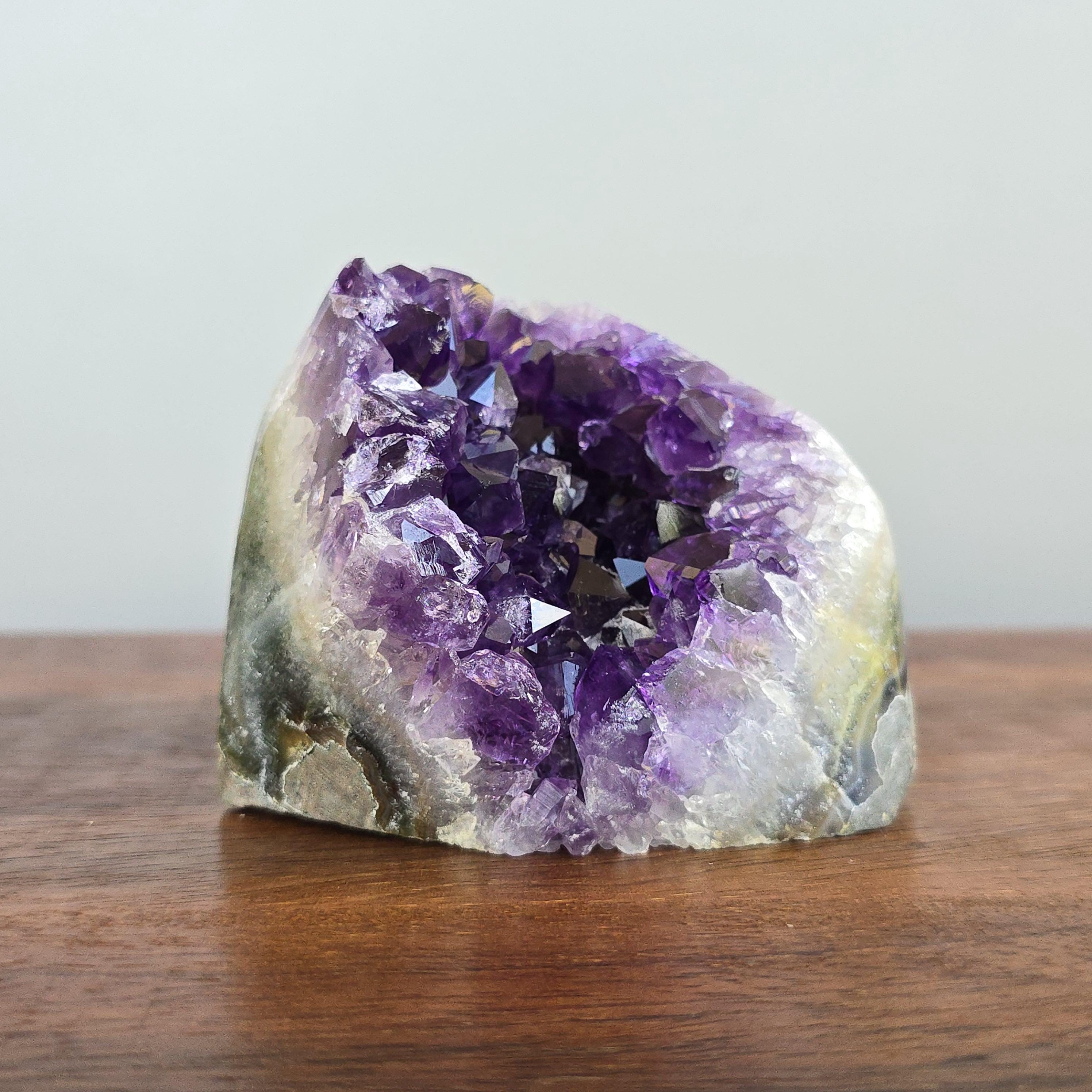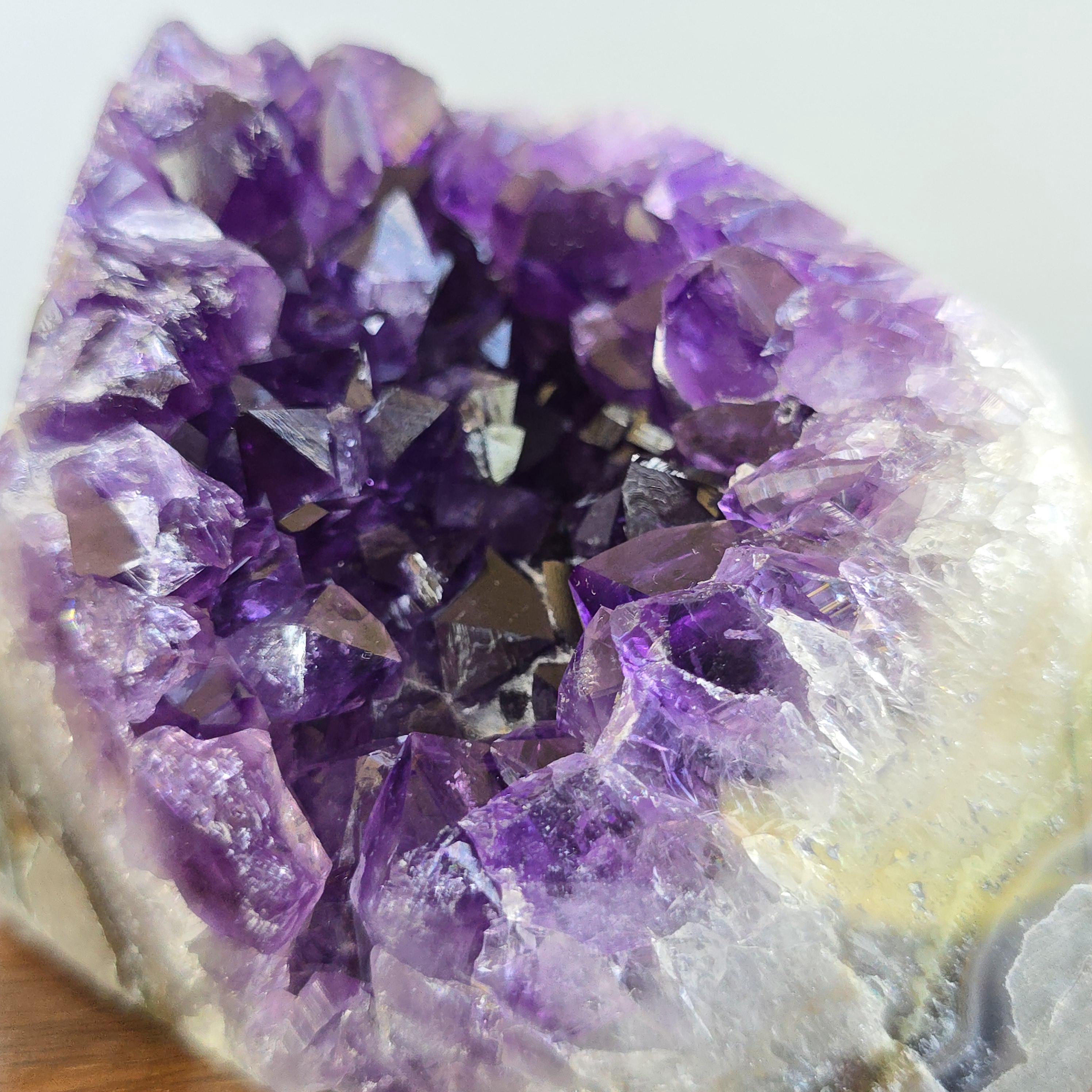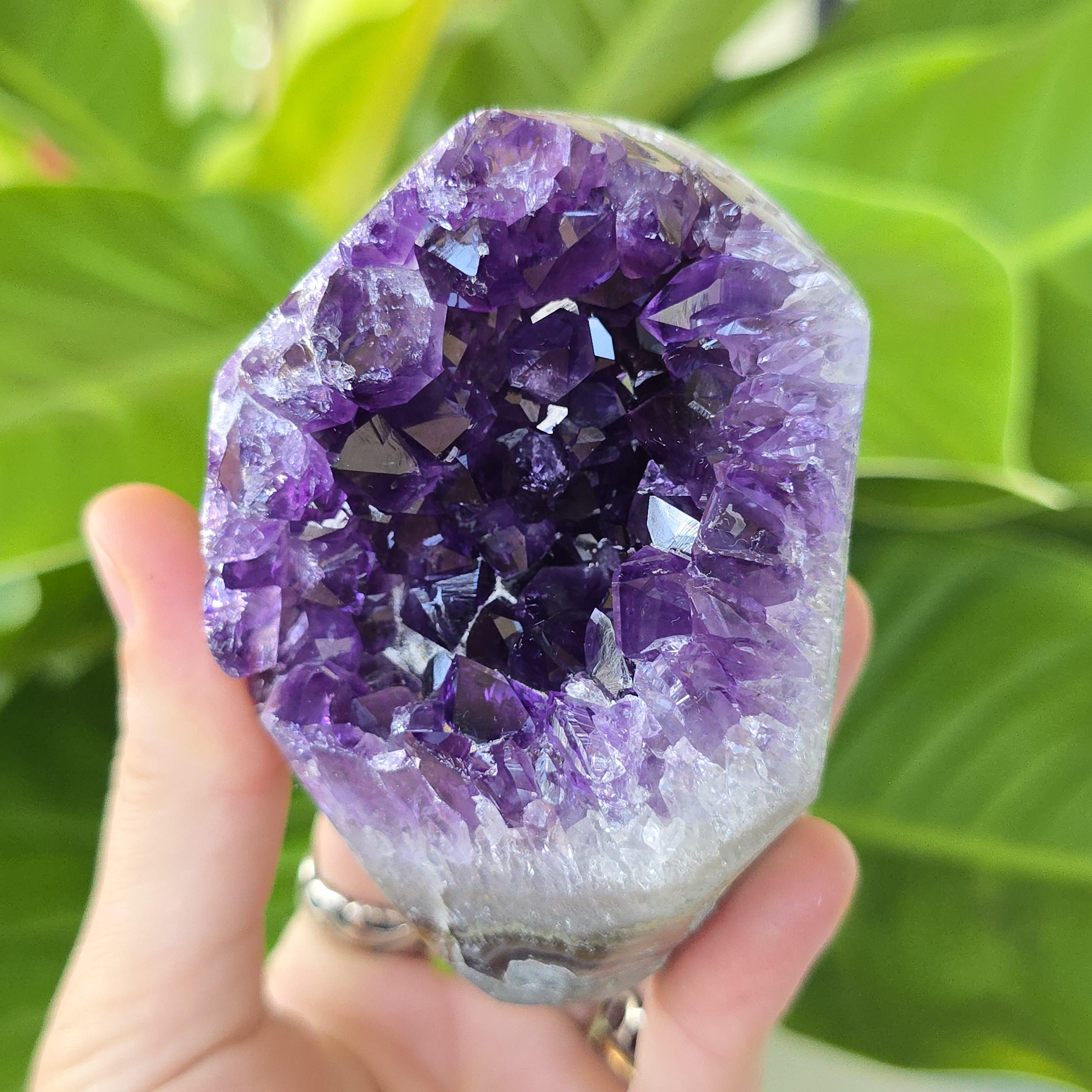 Amethyst is a natural purple quartz crystal known for its calming and protective properties. Many associate it with promoting relaxation, reducing stress and anxiety, supporting clarity of thought, and aiding meditation or spiritual work. This raw amethyst cluster features a cut base so it stands on its own. It is suitable for display, energy work, altars, or as home decor. Each cluster is natural and unique, with variations in shape, crystal formation, color depth, and size.