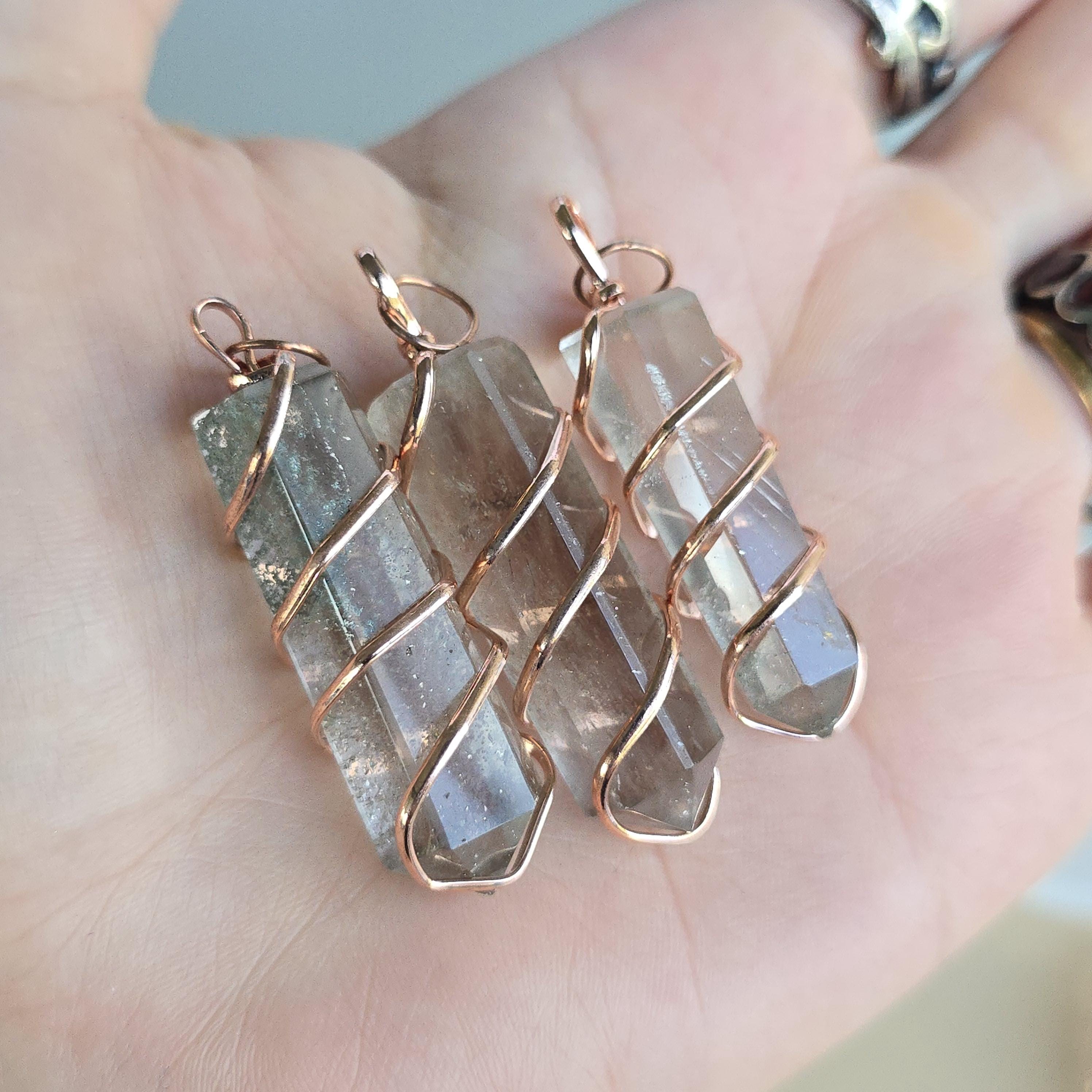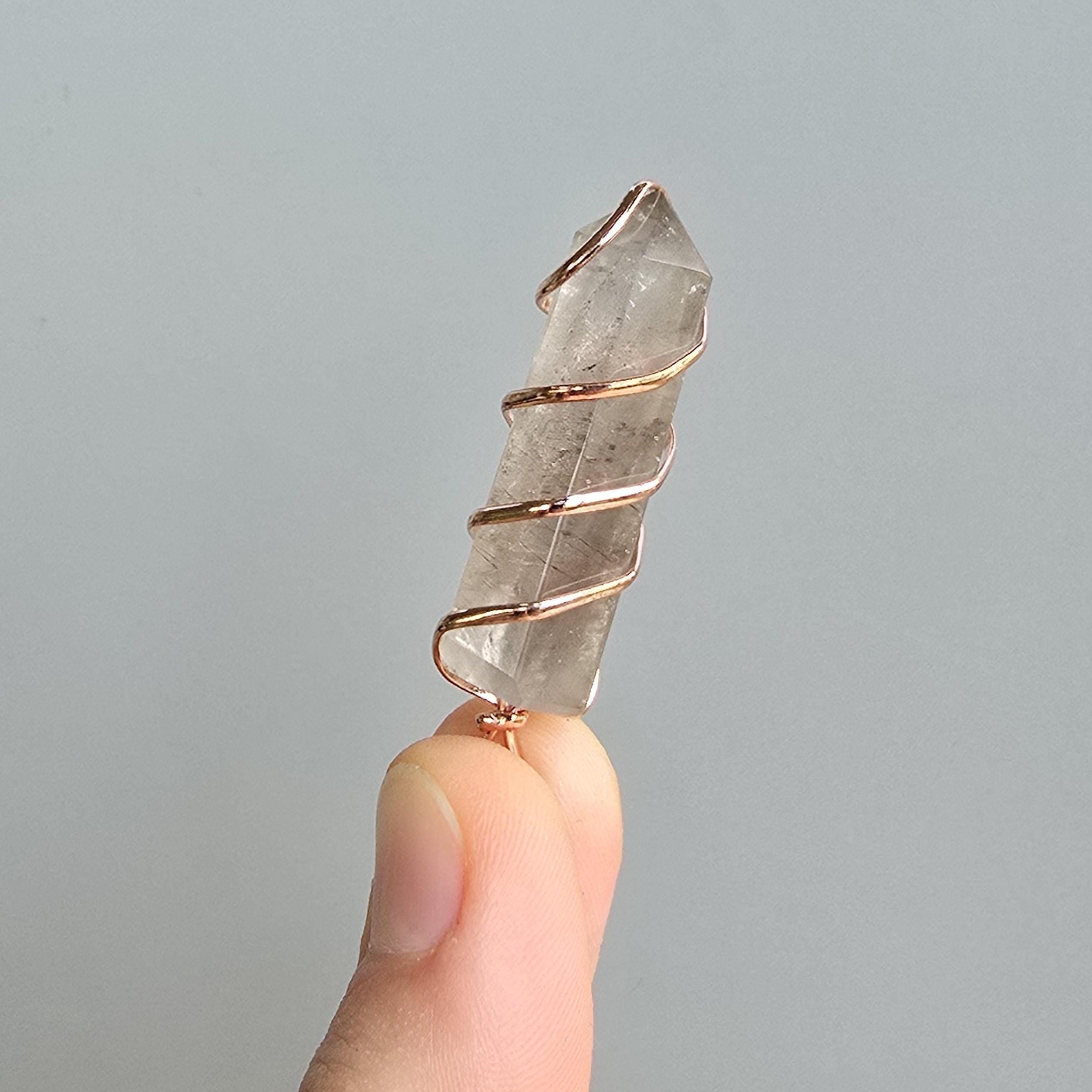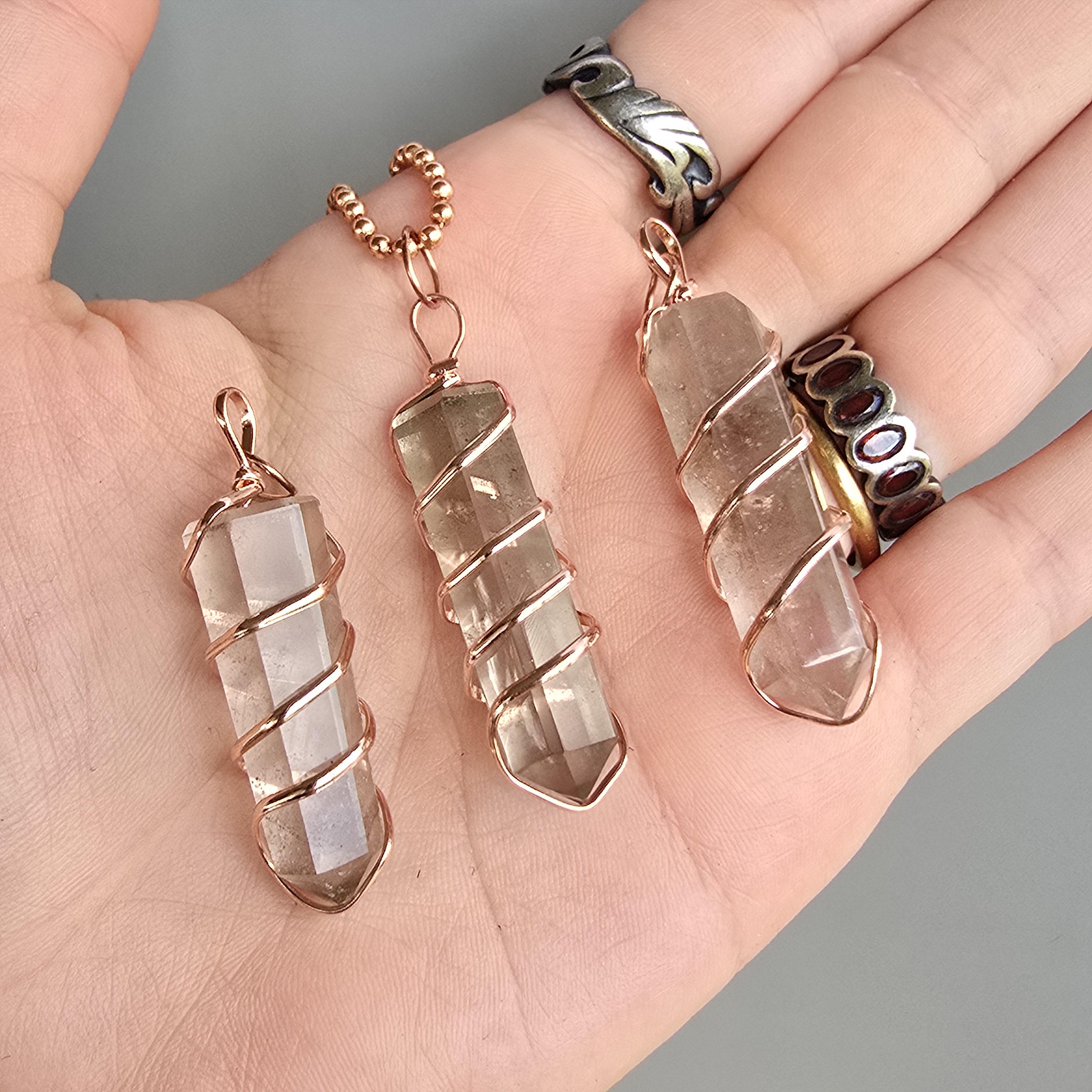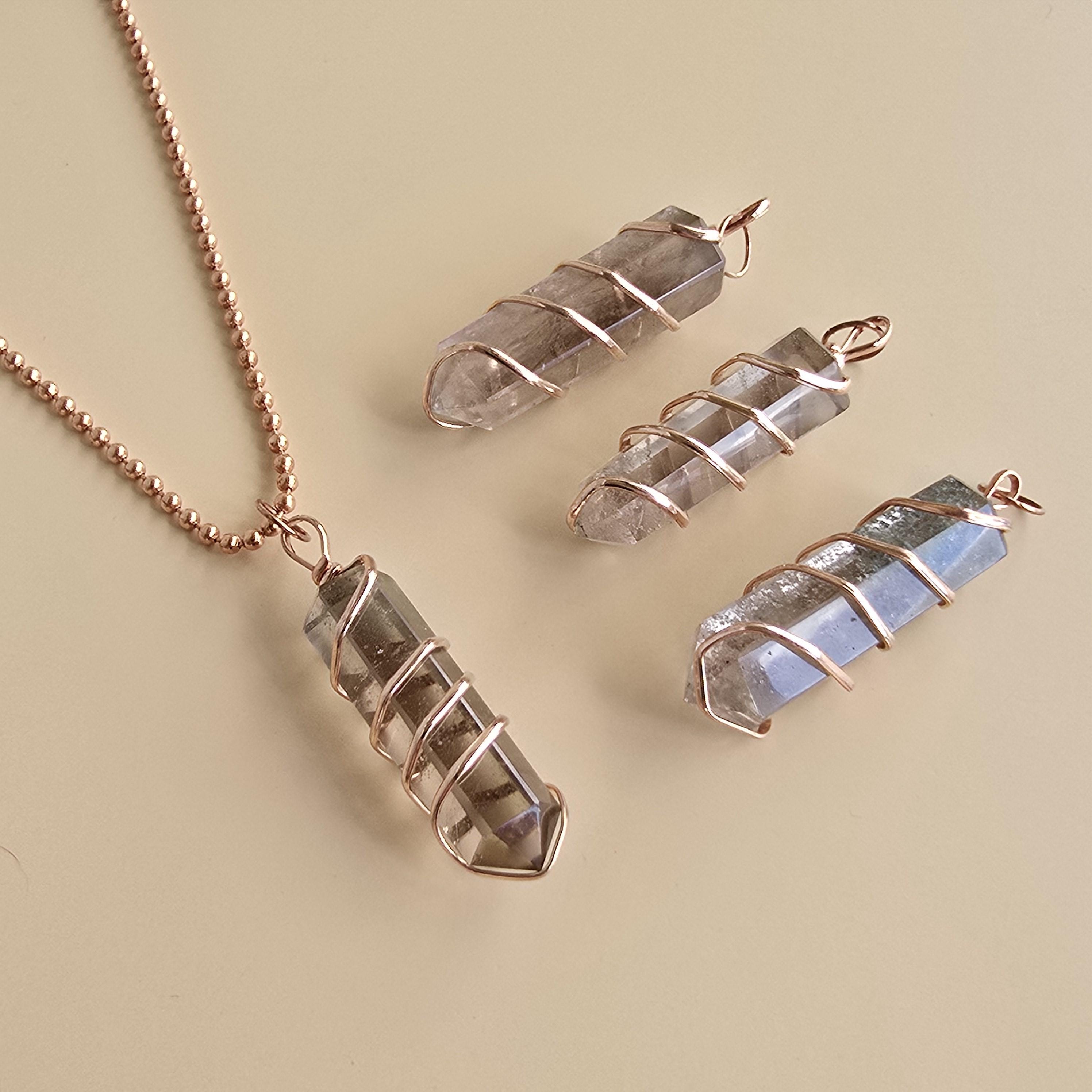 Smoky quartz is a natural grounding stone known for its protective and stabilizing properties. Many associate it with absorbing negative energy, reducing stress and anxiety, promoting emotional balance, and supporting clarity during challenging times.This polished smoky quartz point is hand-wrapped with copper wire. It is a simple, elegant piece suitable for daily wear or as a grounding accessory.Each pendant uses natural smoky quartz, so color depth, inclusions, and variations occur due to the authentic stone.
