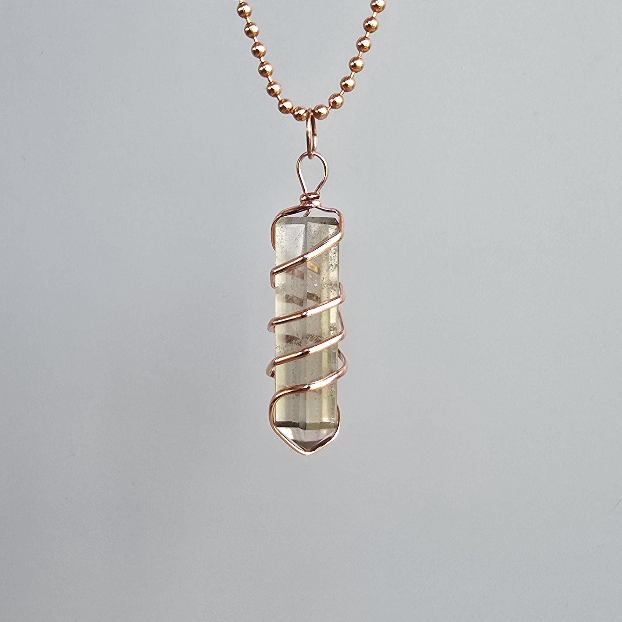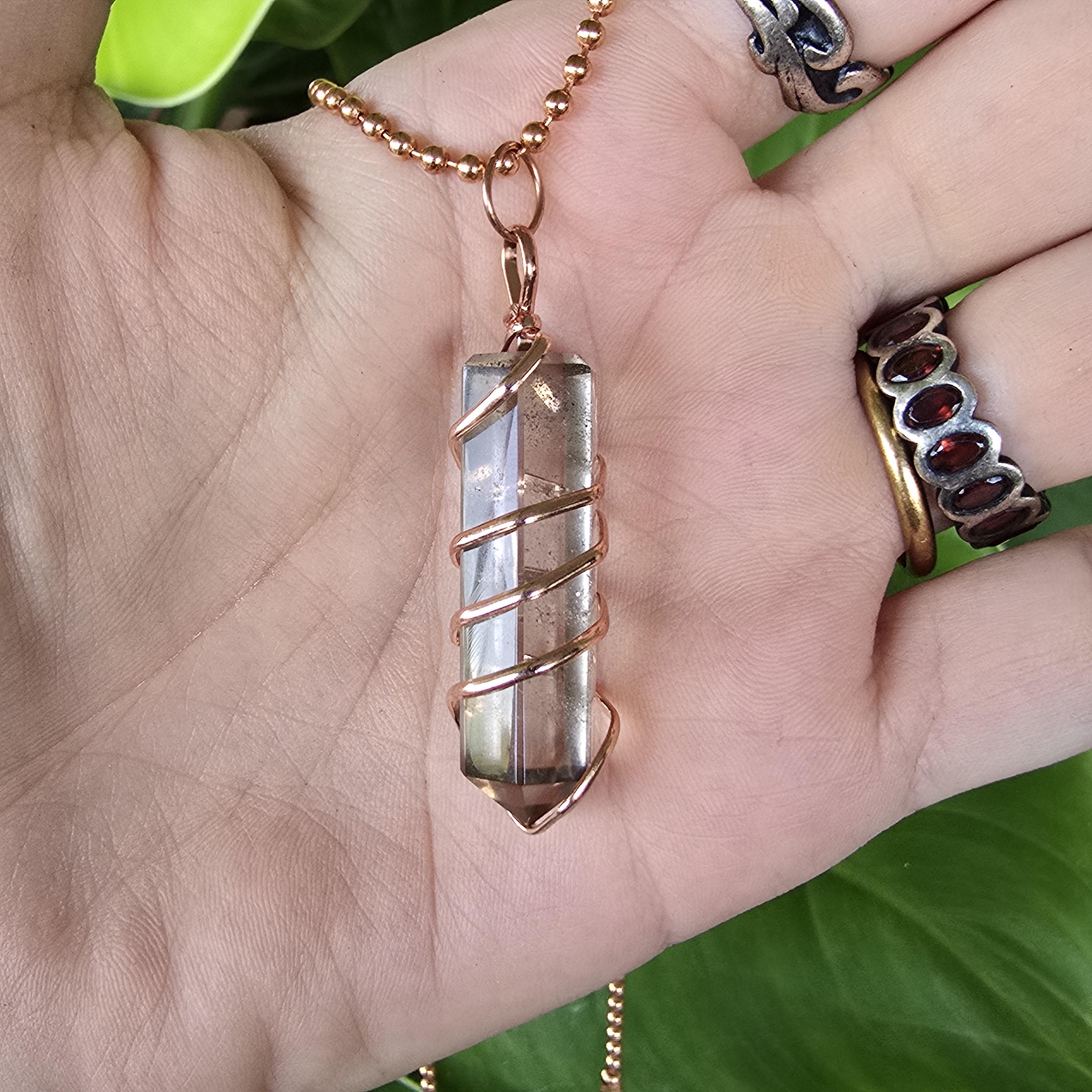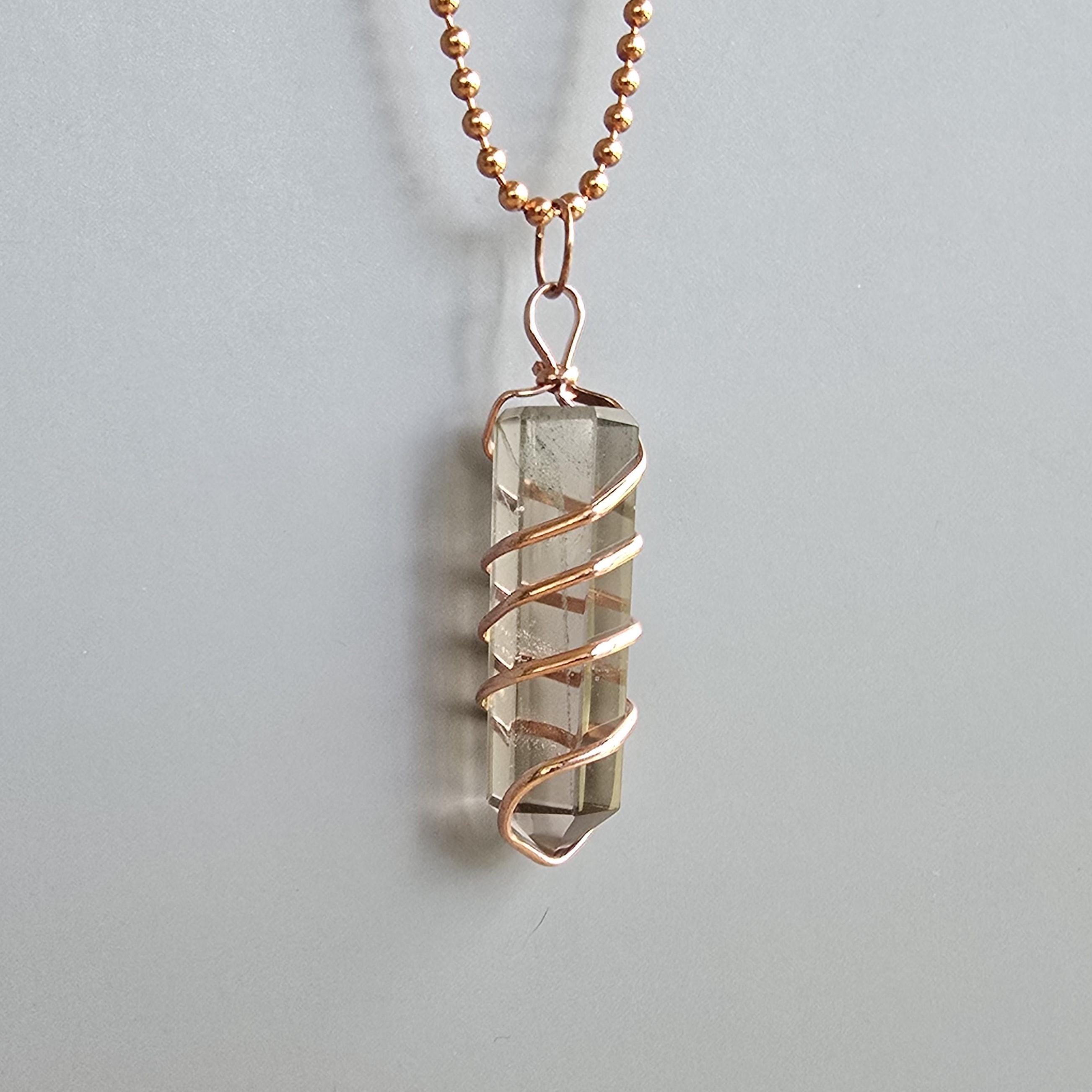 Smoky quartz is a natural grounding stone known for its protective and stabilizing properties. Many associate it with absorbing negative energy, reducing stress and anxiety, promoting emotional balance, and supporting clarity during challenging times.This polished smoky quartz point is hand-wrapped with copper wire. It is a simple, elegant piece suitable for daily wear or as a grounding accessory.Each pendant uses natural smoky quartz, so color depth, inclusions, and variations occur due to the authentic stone.