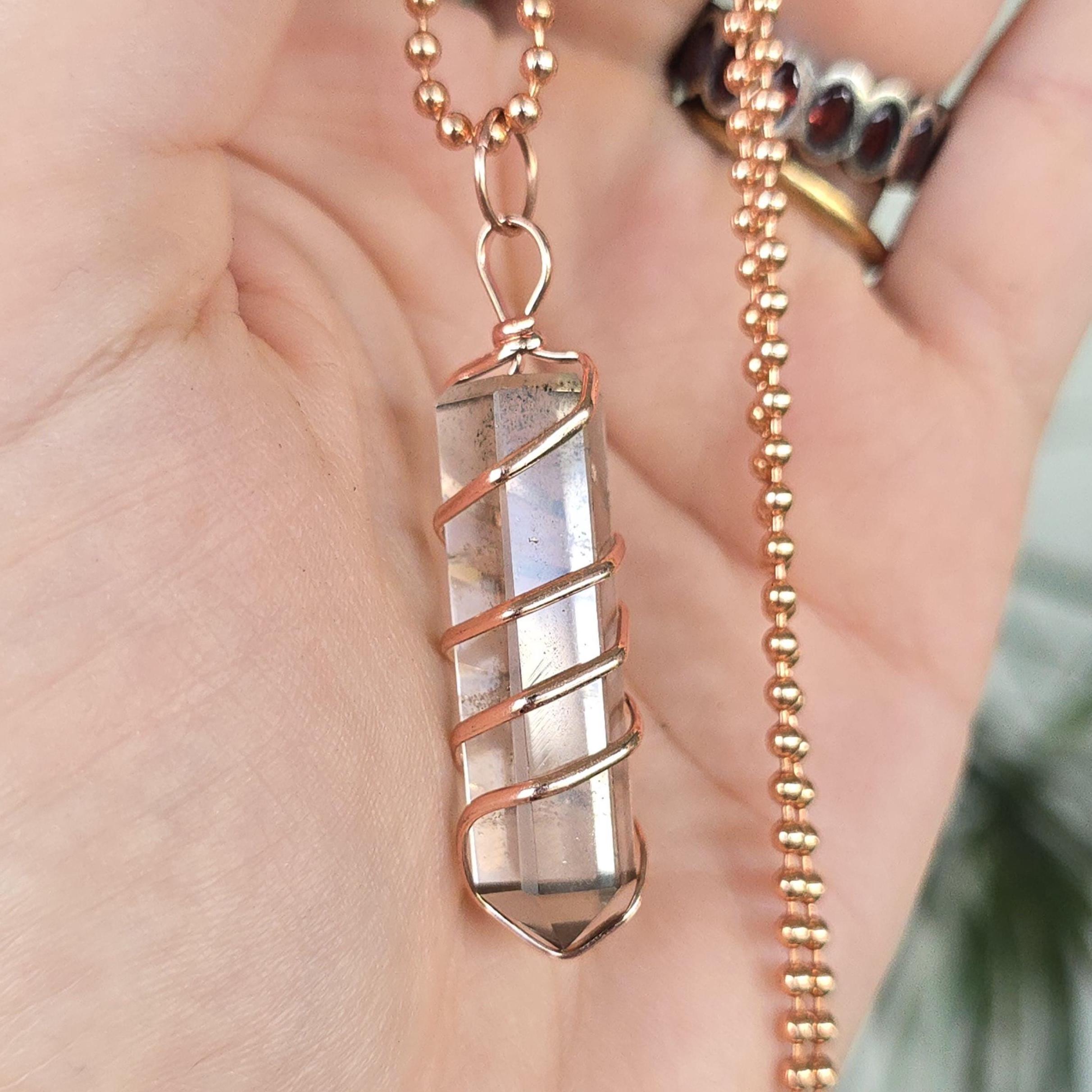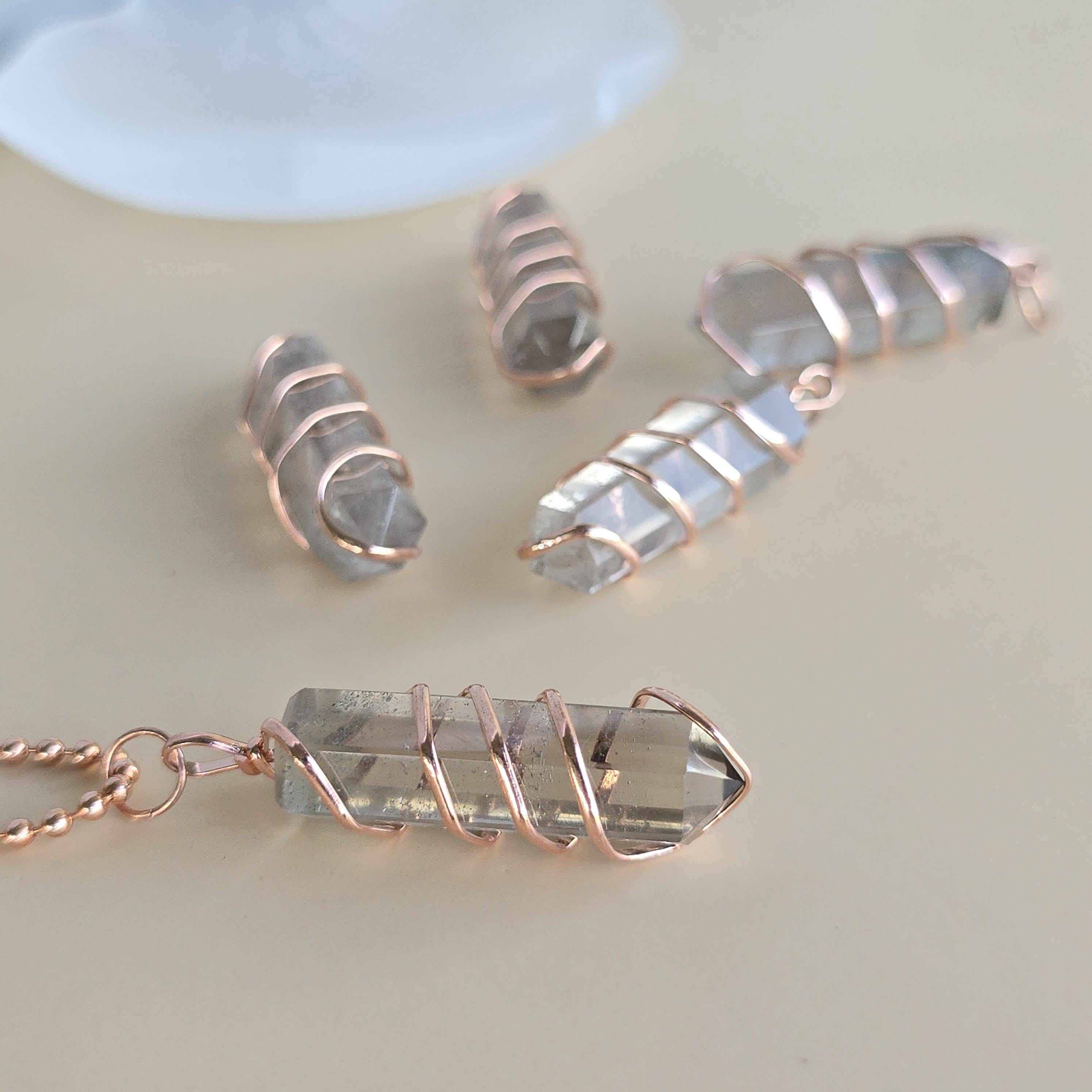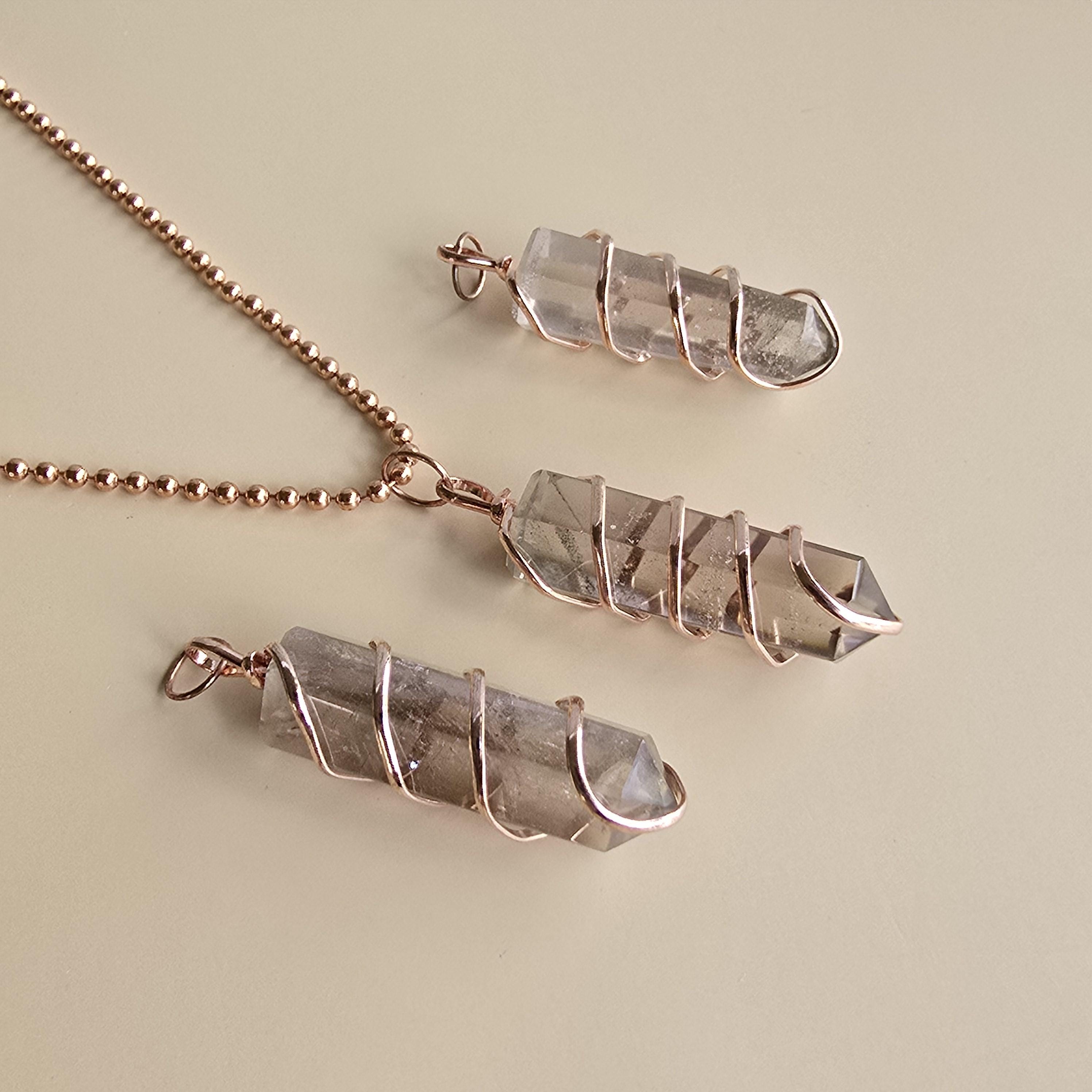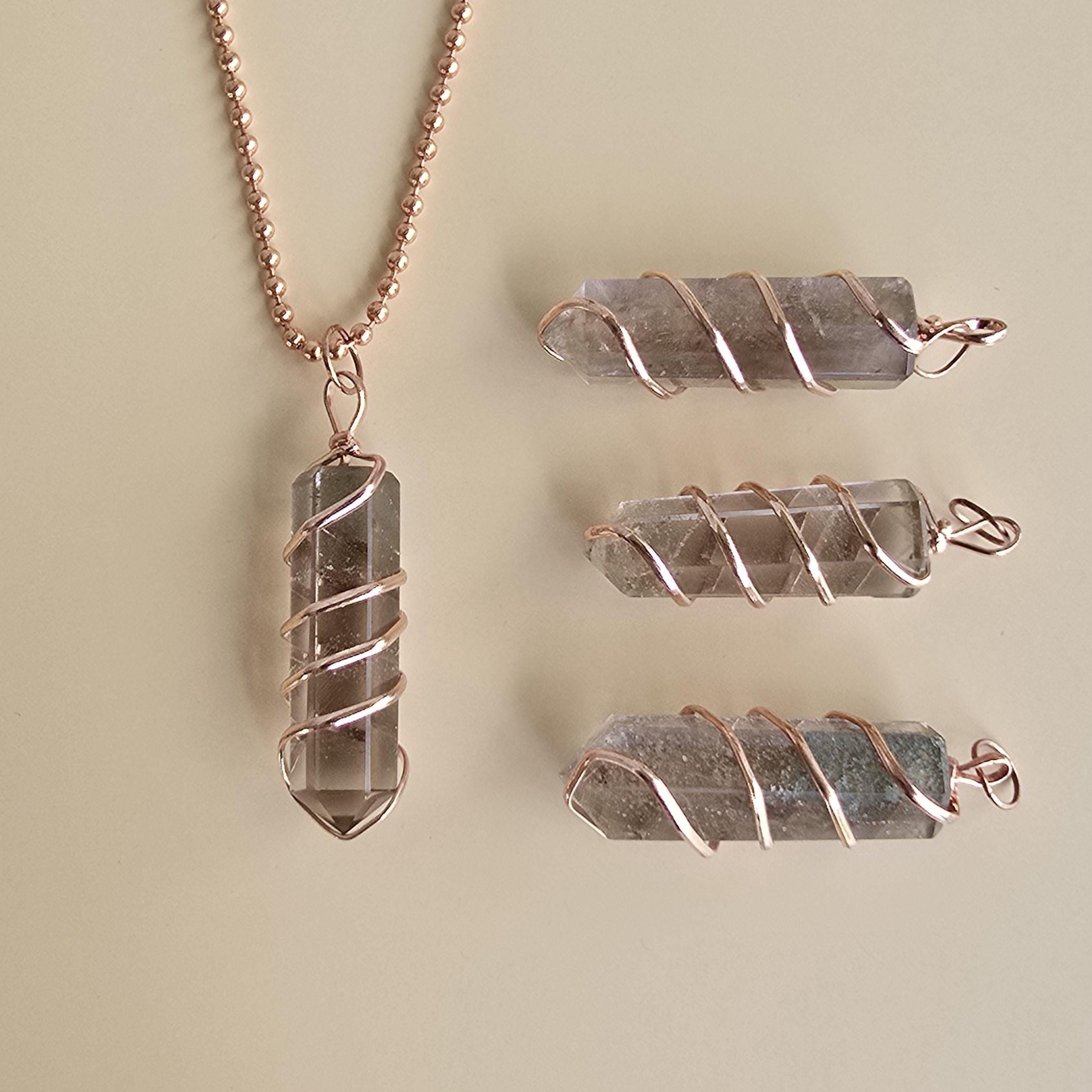 Smoky quartz is a natural grounding stone known for its protective and stabilizing properties. Many associate it with absorbing negative energy, reducing stress and anxiety, promoting emotional balance, and supporting clarity during challenging times.This polished smoky quartz point is hand-wrapped with copper wire. It is a simple, elegant piece suitable for daily wear or as a grounding accessory.Each pendant uses natural smoky quartz, so color depth, inclusions, and variations occur due to the authentic stone.