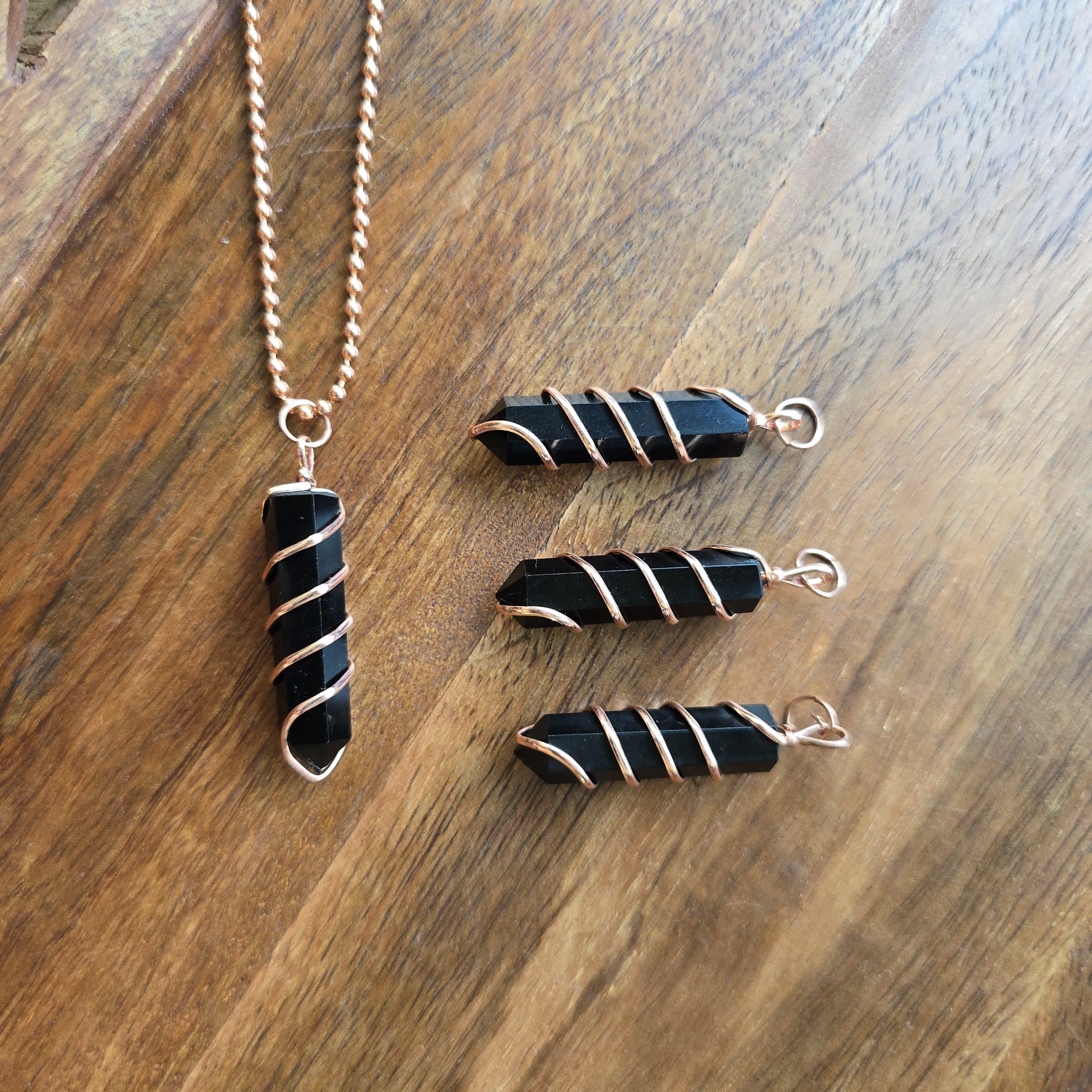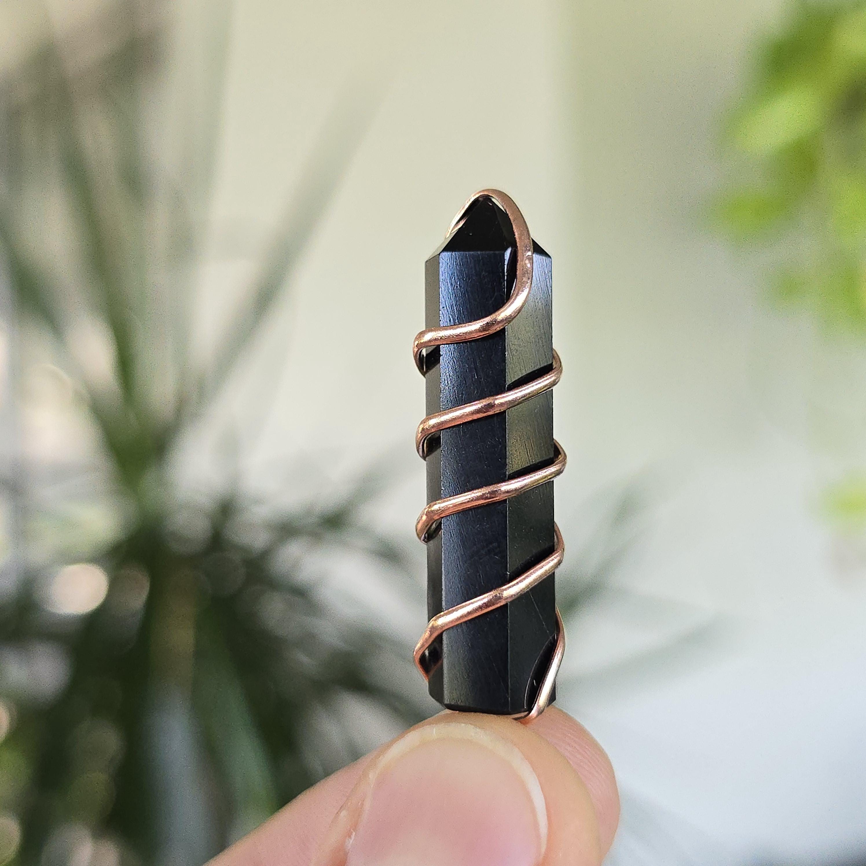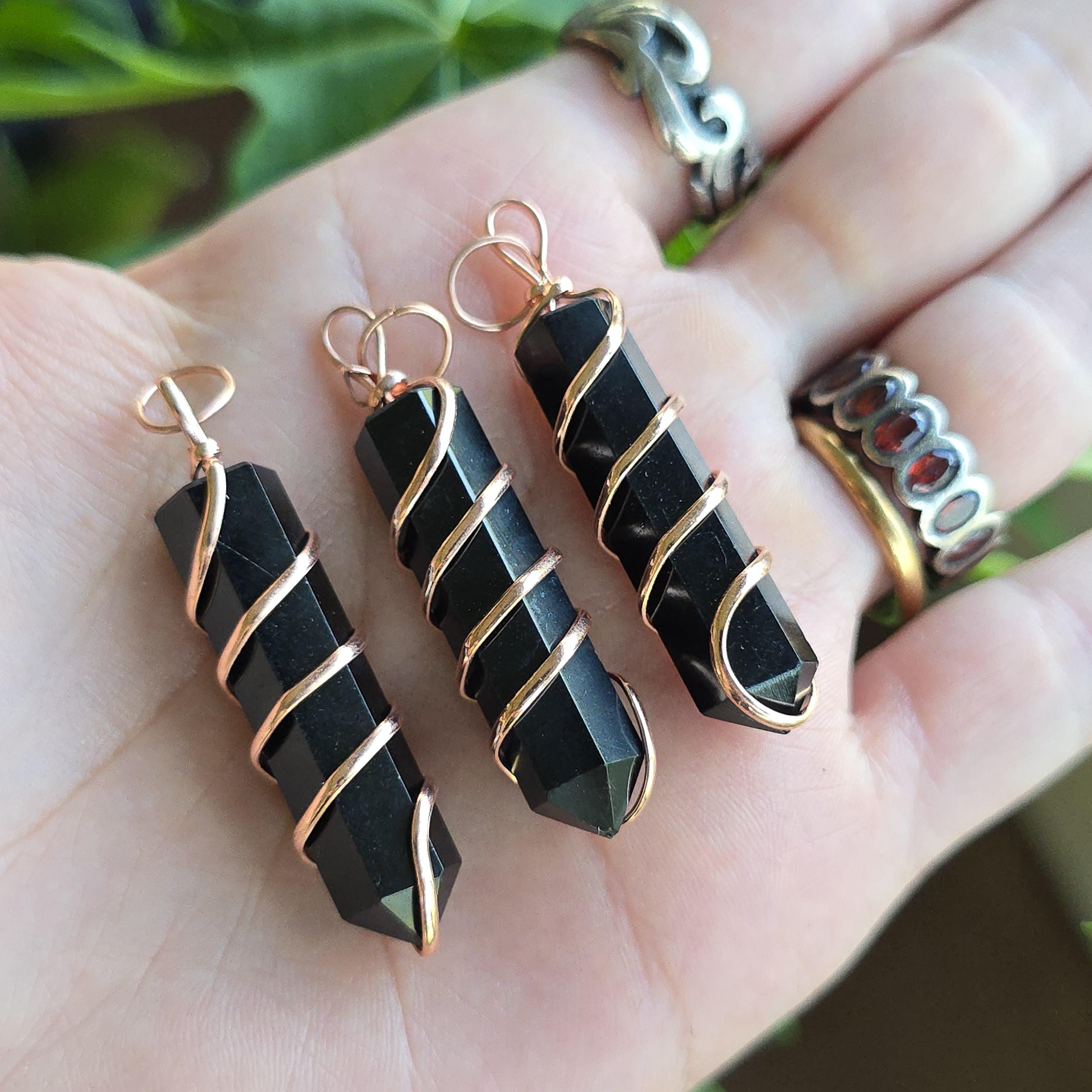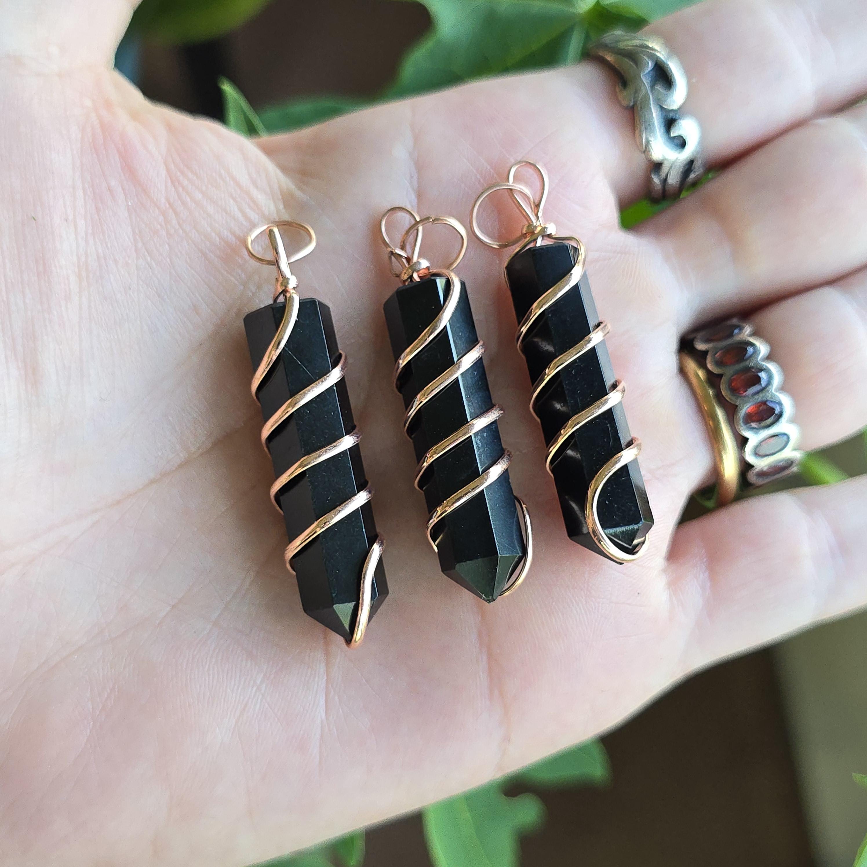 Black obsidian is a natural volcanic glass known for its strong protective and grounding properties. Many associate it with shielding against negative energy, emotional cleansing, releasing past traumas, and providing clarity during difficult times. This polished black obsidian point is hand-wrapped with copper wire. It is a simple, powerful piece suitable for daily wear or as a protective accessory. Each pendant uses natural black obsidian, so color, texture, inclusions, and variations occur due to the authentic stone.