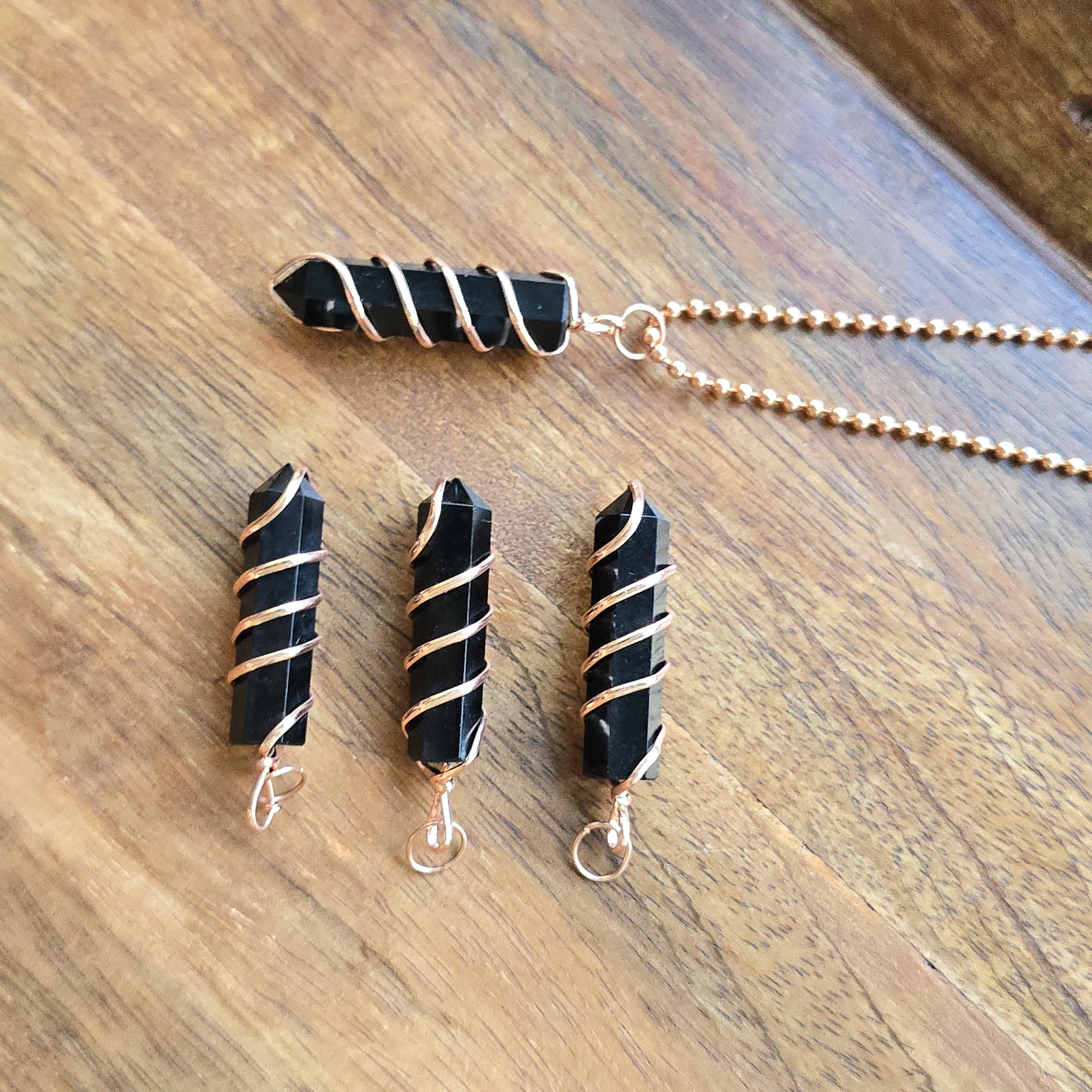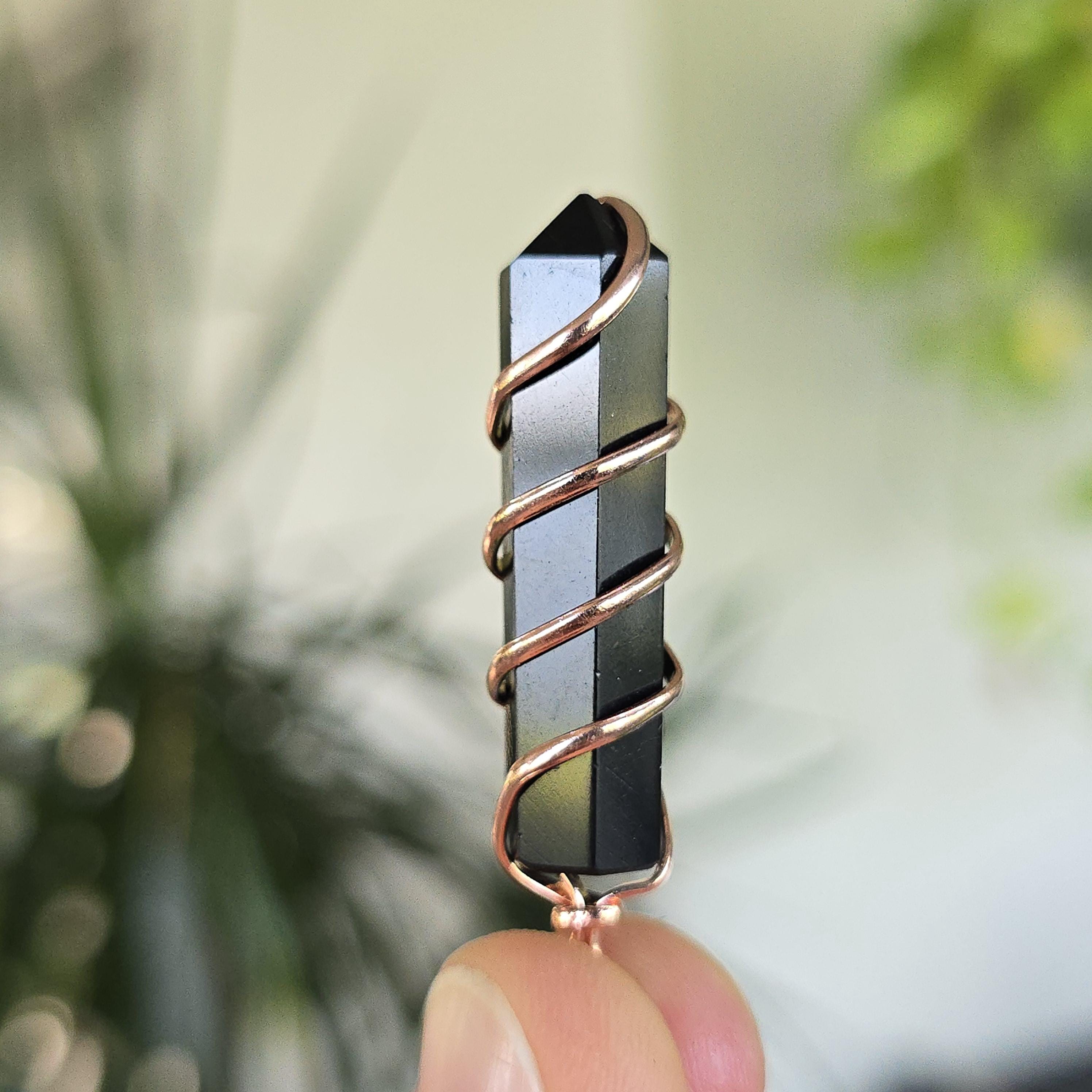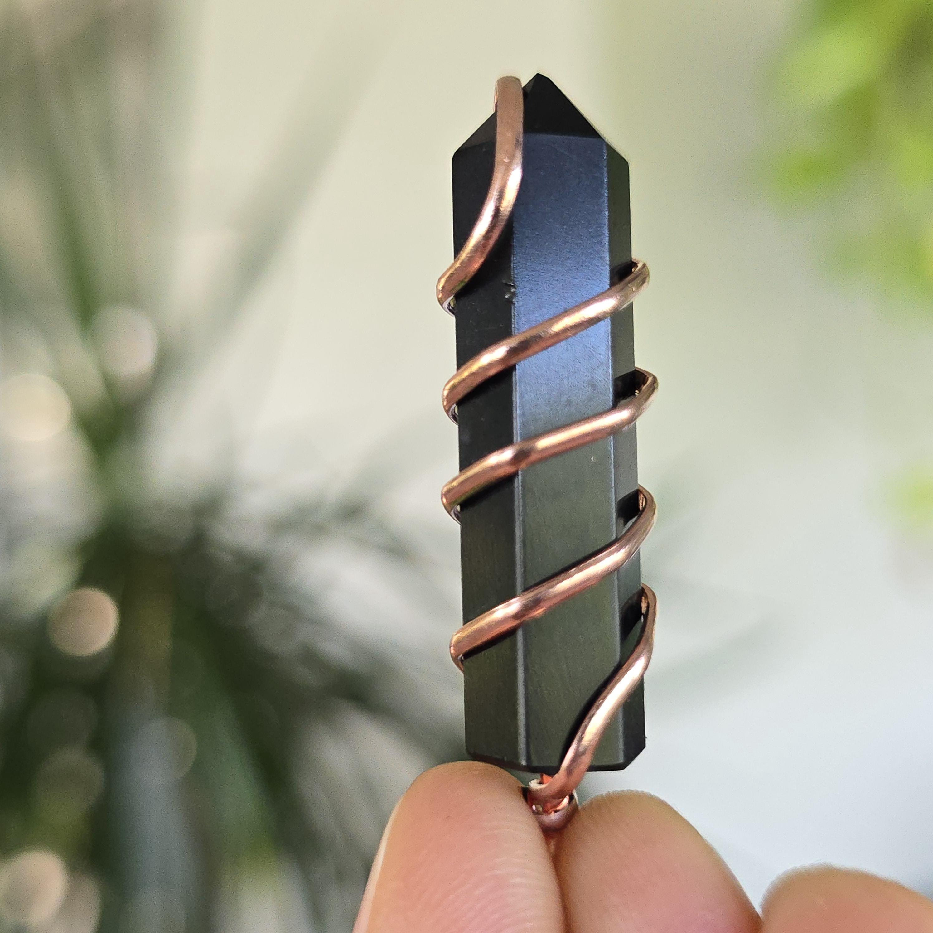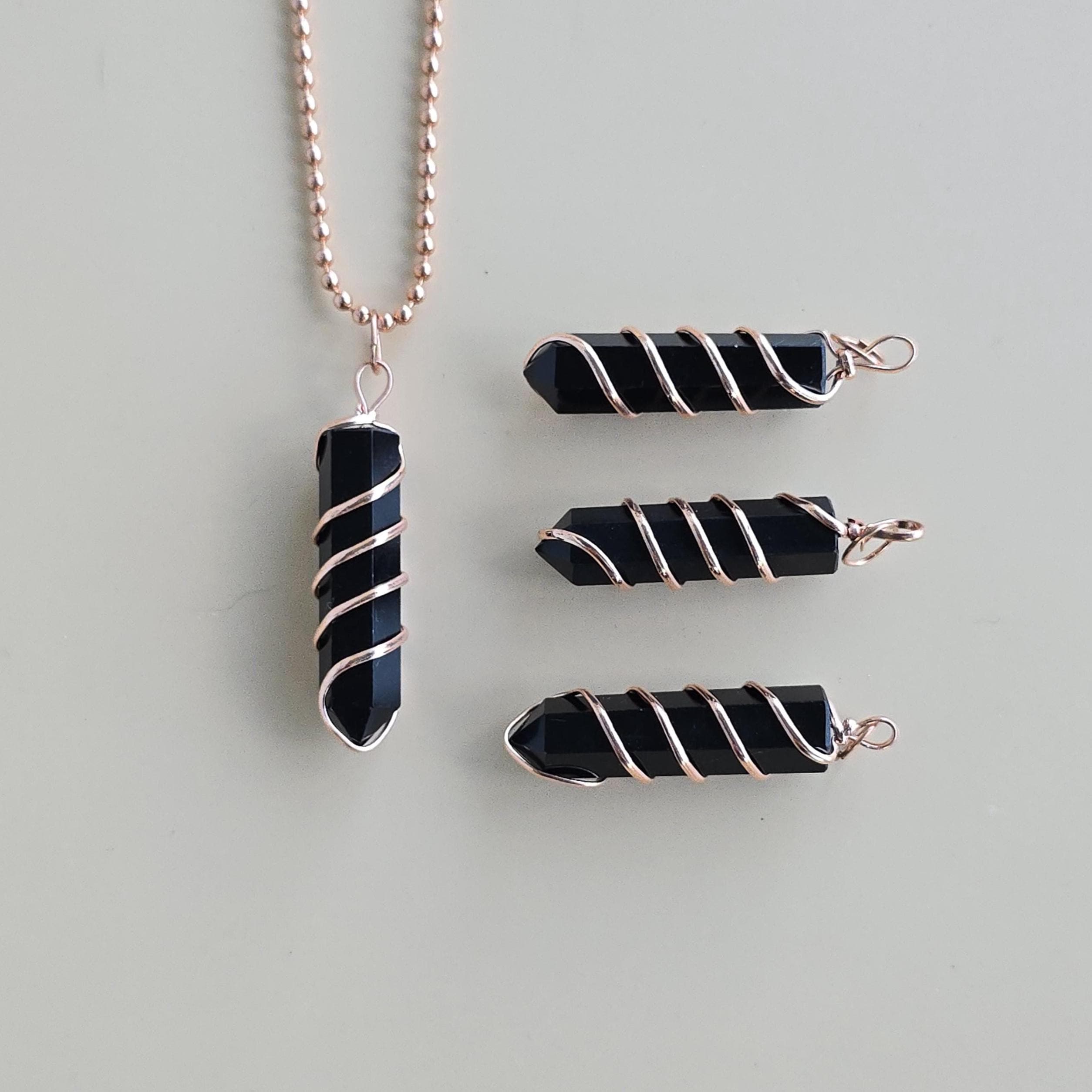 Black obsidian is a natural volcanic glass known for its strong protective and grounding properties. Many associate it with shielding against negative energy, emotional cleansing, releasing past traumas, and providing clarity during difficult times. This polished black obsidian point is hand-wrapped with copper wire. It is a simple, powerful piece suitable for daily wear or as a protective accessory. Each pendant uses natural black obsidian, so color, texture, inclusions, and variations occur due to the authentic stone.