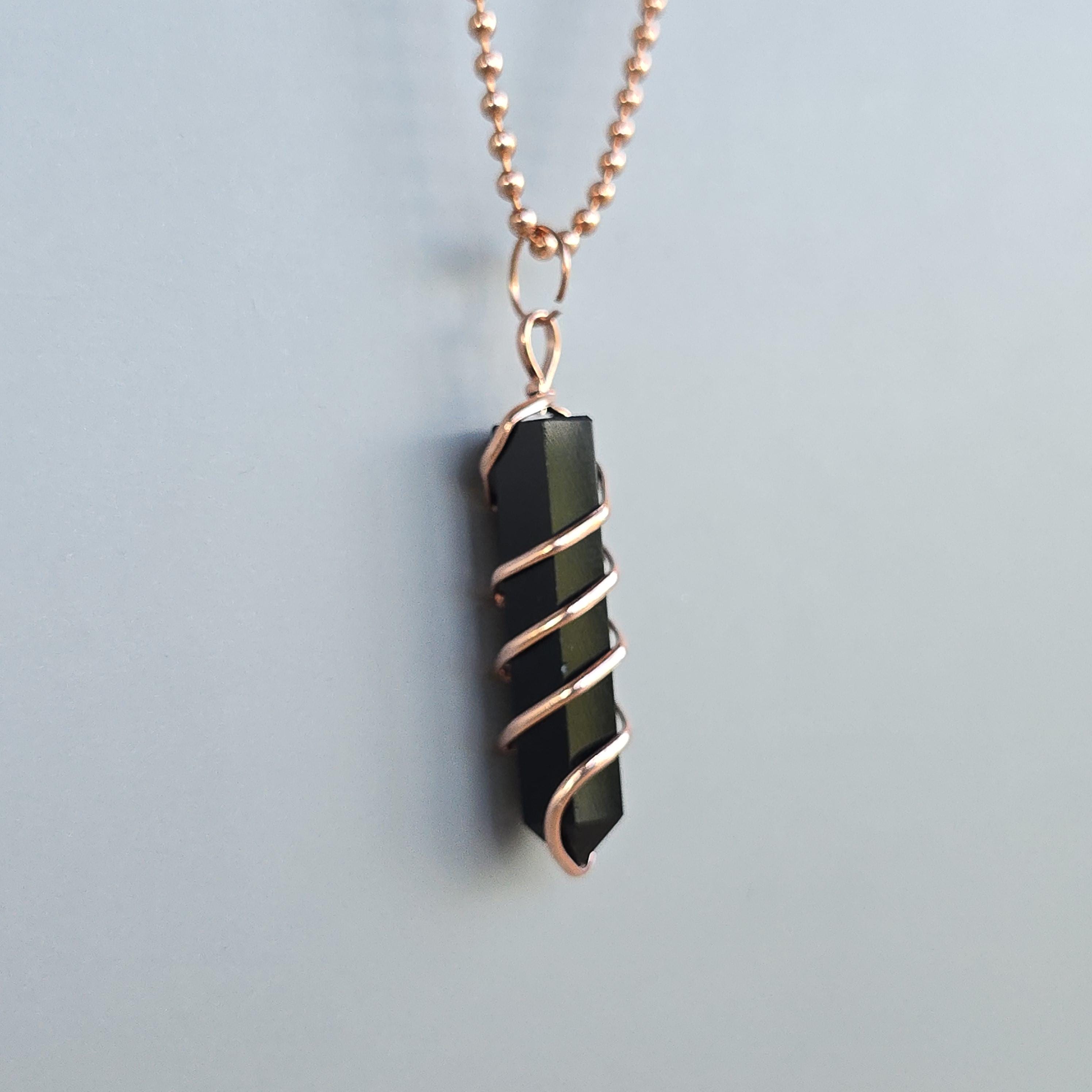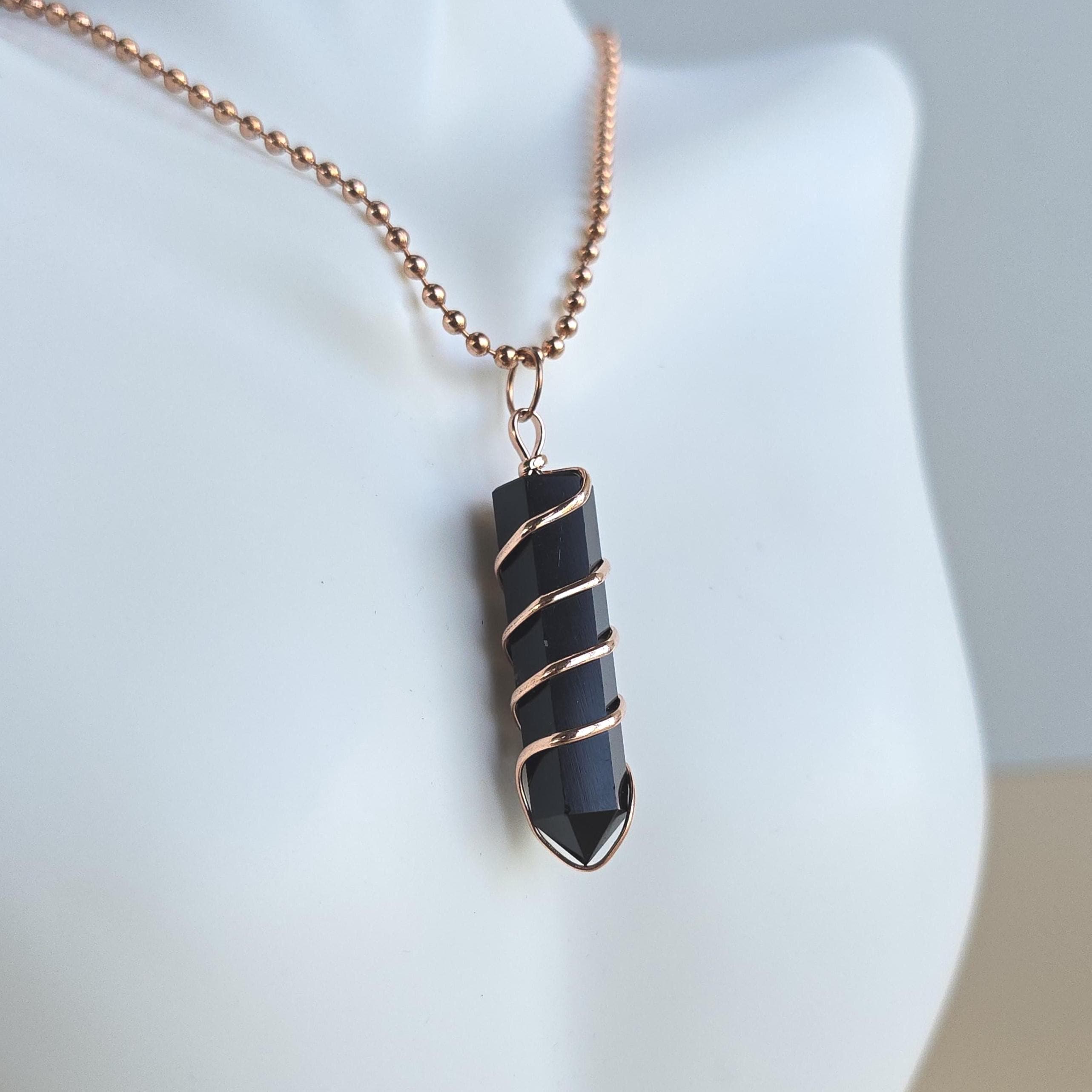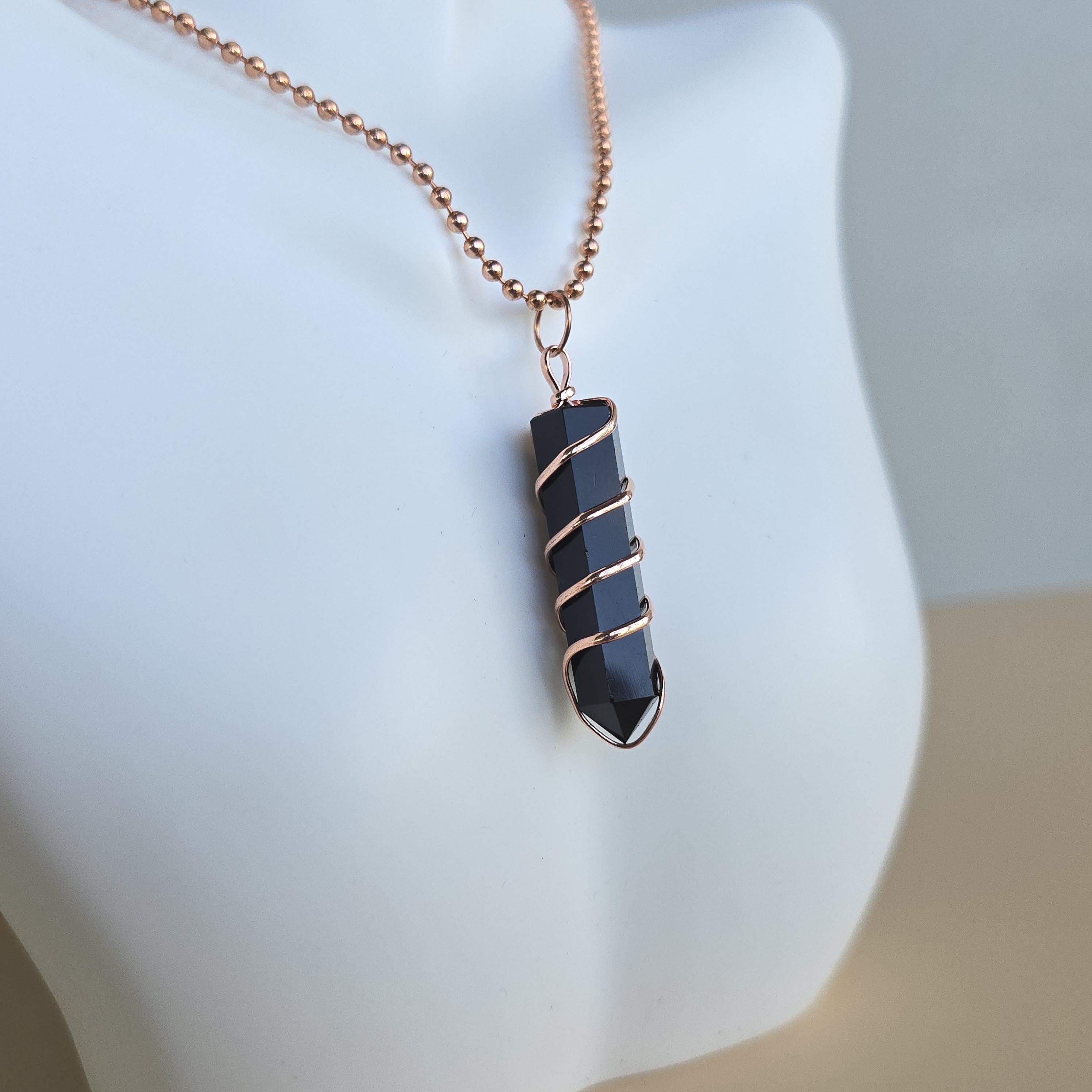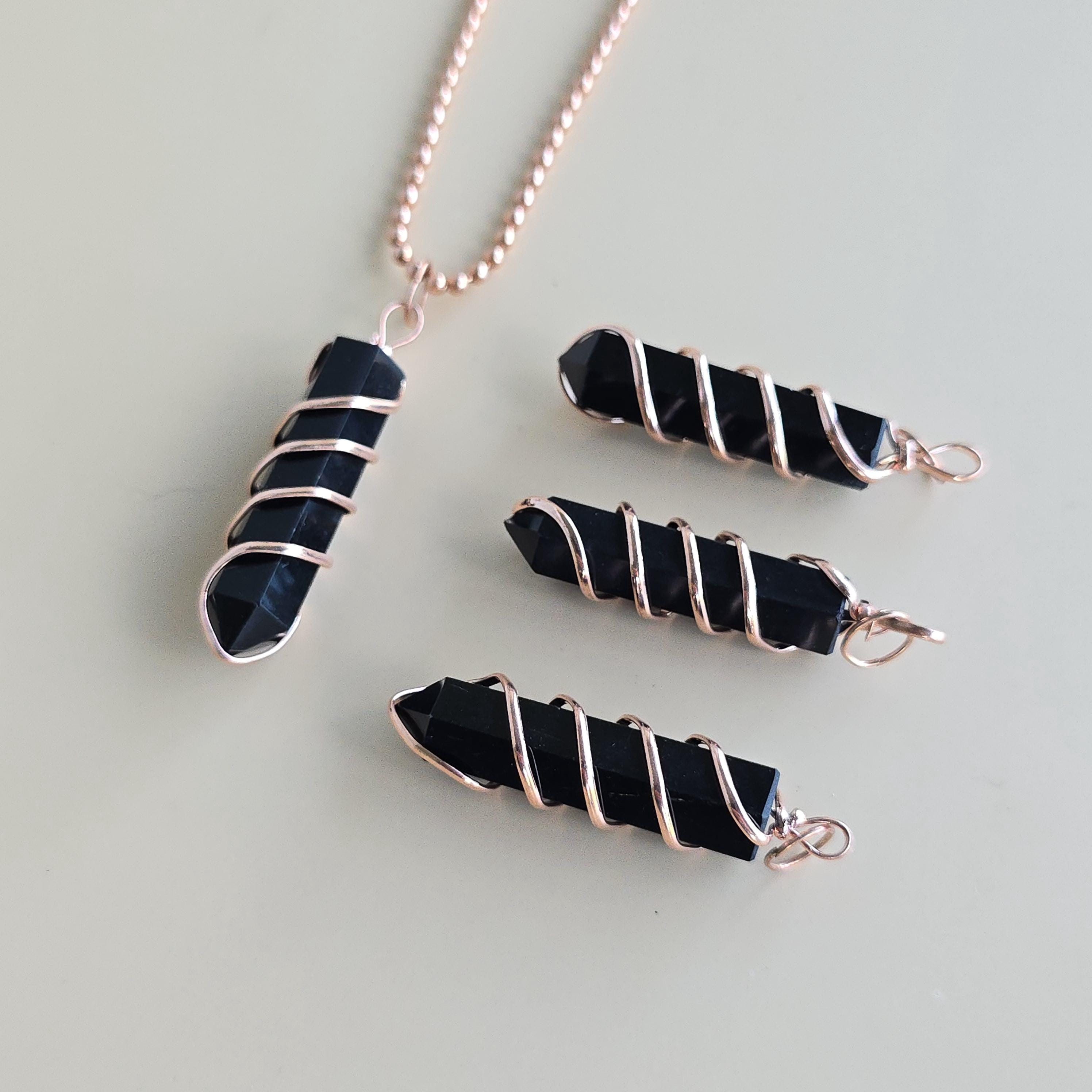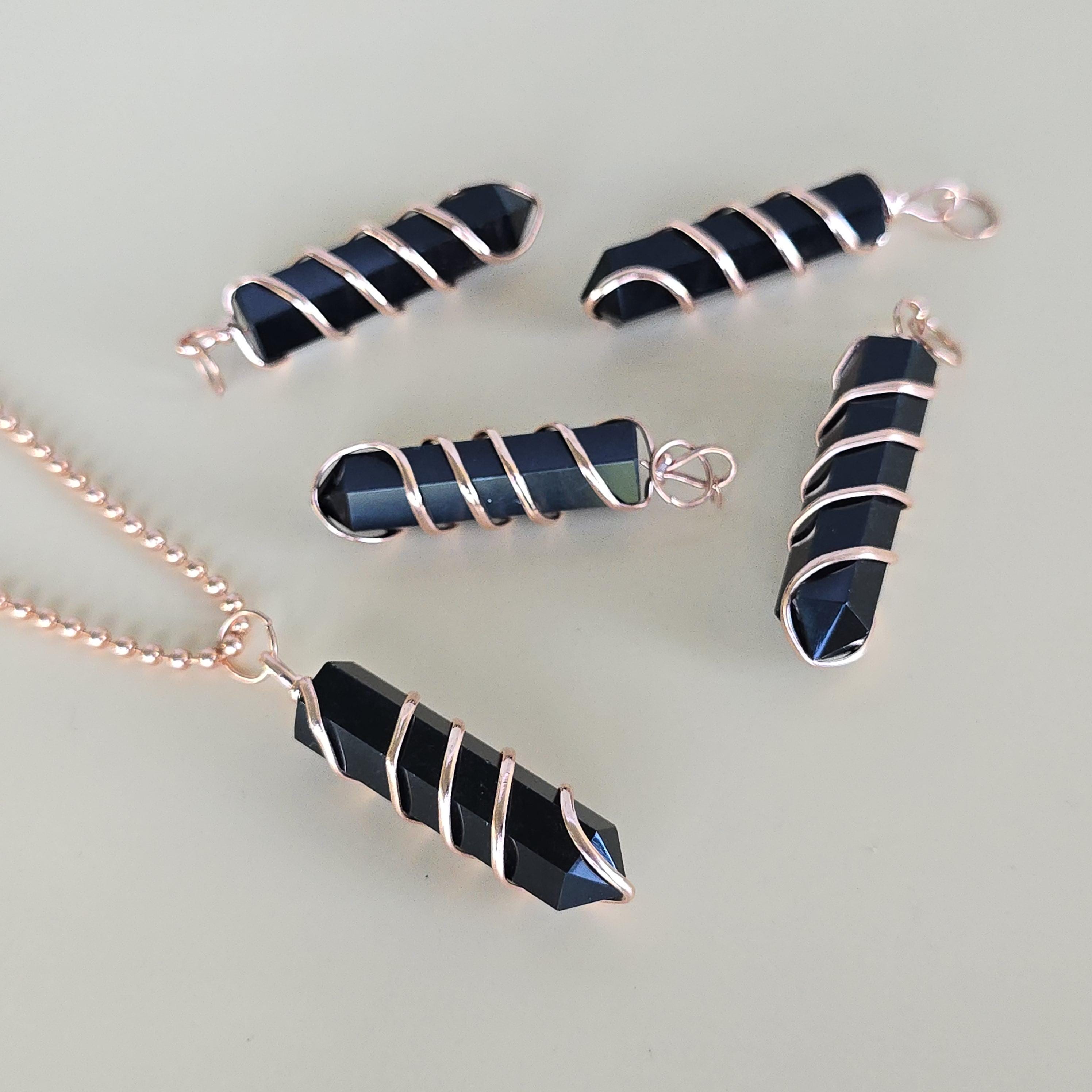 Black obsidian is a natural volcanic glass known for its strong protective and grounding properties. Many associate it with shielding against negative energy, emotional cleansing, releasing past traumas, and providing clarity during difficult times. This polished black obsidian point is hand-wrapped with copper wire. It is a simple, powerful piece suitable for daily wear or as a protective accessory. Each pendant uses natural black obsidian, so color, texture, inclusions, and variations occur due to the authentic stone.