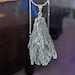 Available in two sizes, this handmade pendant necklace showcases a unique fan-shaped Black Kyanite crystal, known for its raw and natural allure. This pendant makes a bold statement with its distinctive shape and raw finish. Kyanite crystal jewelry is associated with grounding and protection, making this necklace not only a fashion statement but also a source of strength and balance. The pendant hangs from an 18-inch Snake Chain, providing a classic and versatile look that complements a variety of styles. With its raw finish and silver-plated accent, this necklace adds an edgy and elegant touch to your attire.