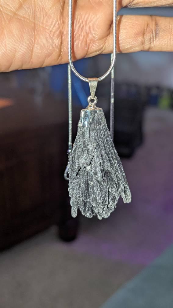 Black Kyanite Pendant Necklace, Black Kyanite Crystal Pendant with Free Chain