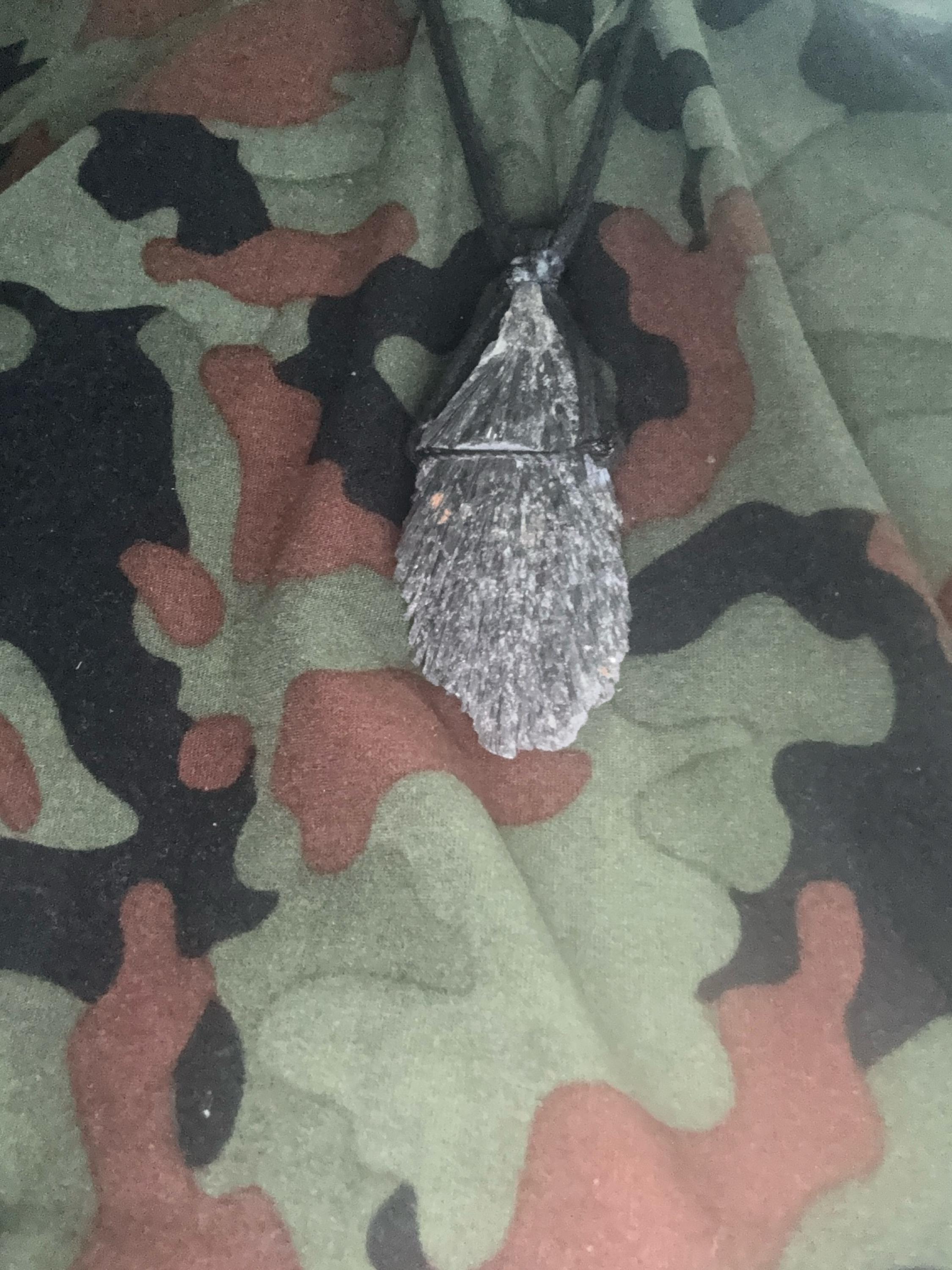 Raw Black Kyanite Pendant Necklace, Black Kyanite Gemstone Cord Necklace