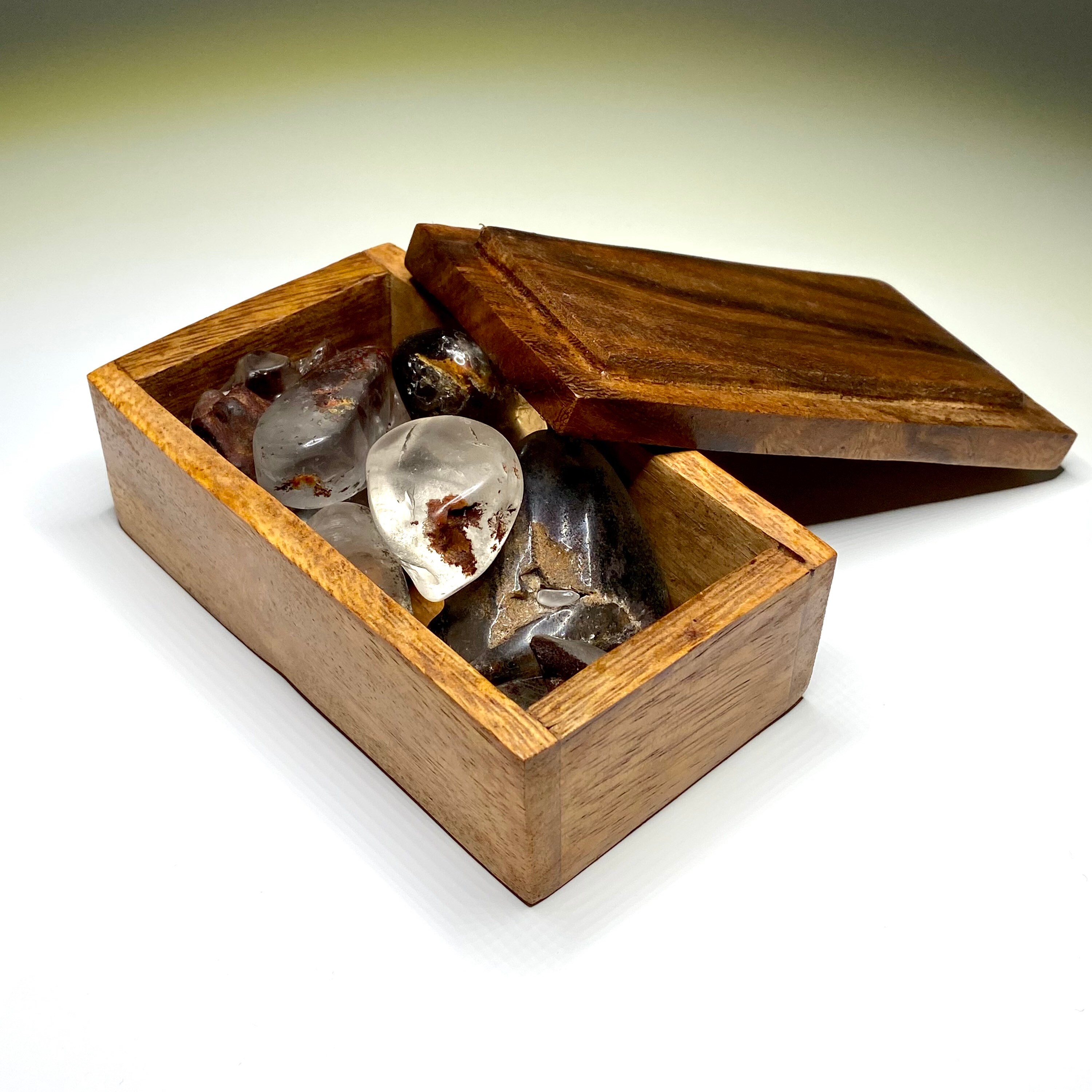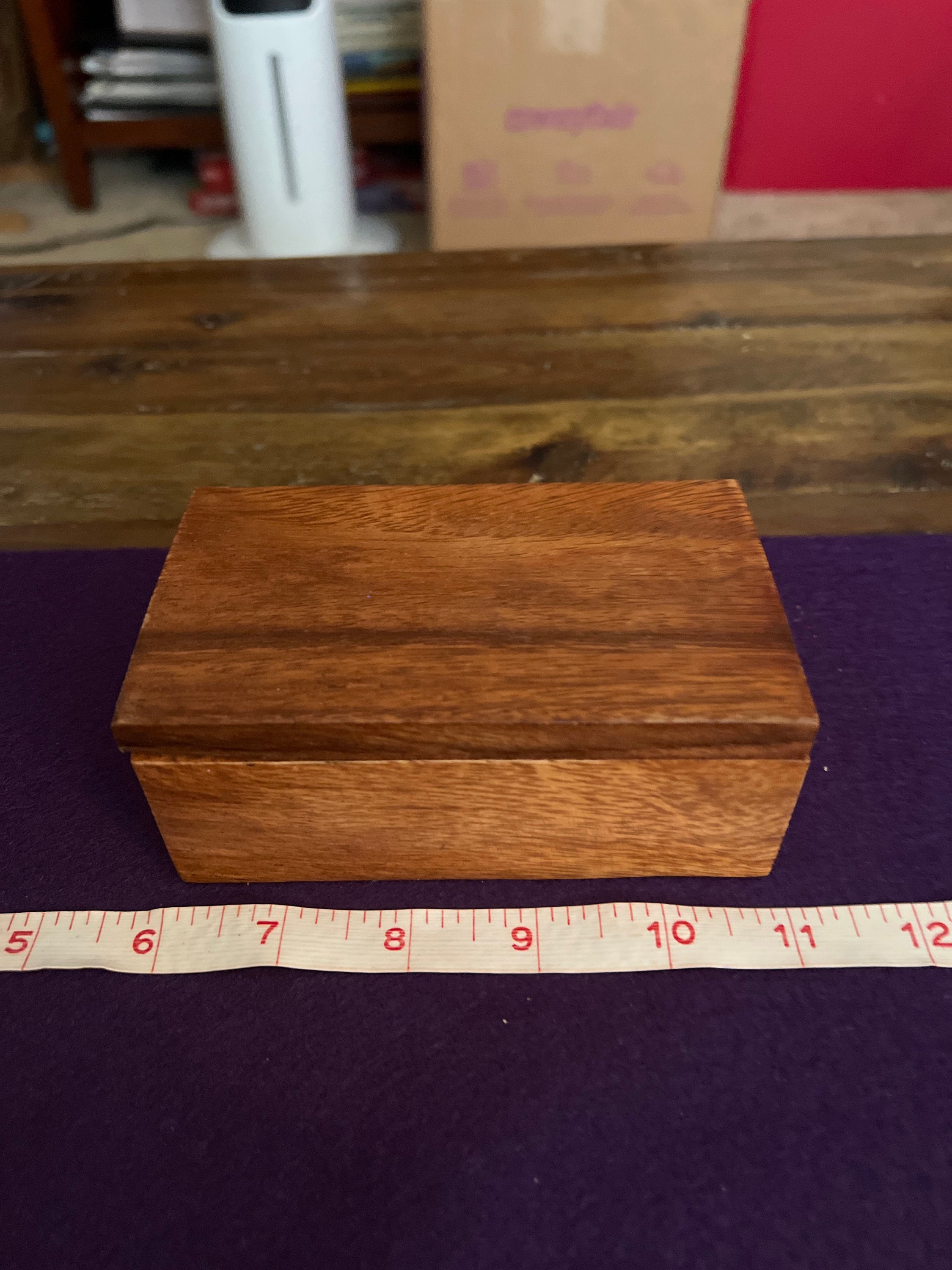 Must have piece to store your loved items. Just right for storing crystals, bracelets, jewelry, coins etc. This wooden keepsake box is the perfect gift for him or her
