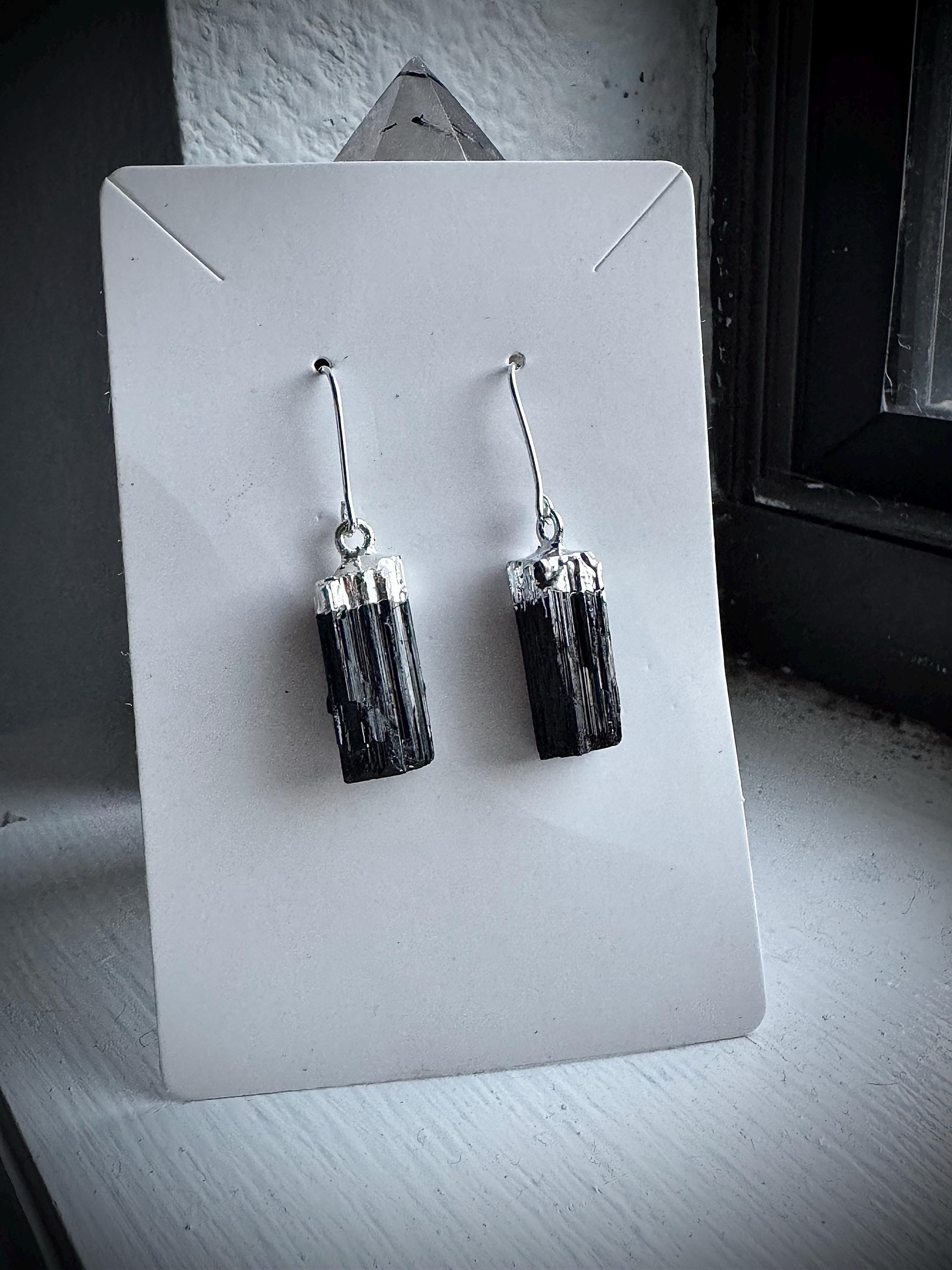 Black Tourmaline Crystal Dangle Earrings