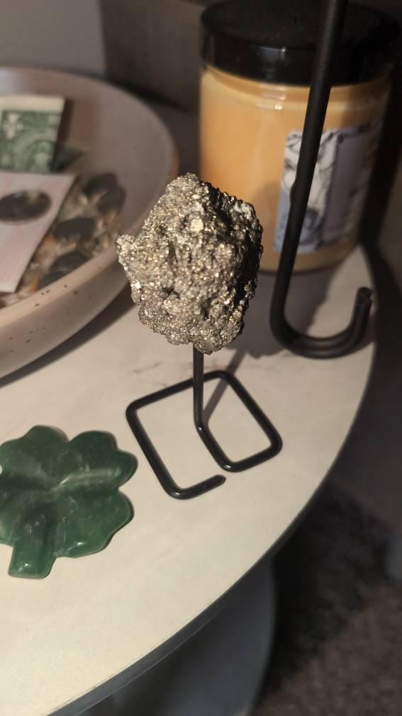 This listing is for 1 (ONE) Pyrite Cluster on Metal Stand